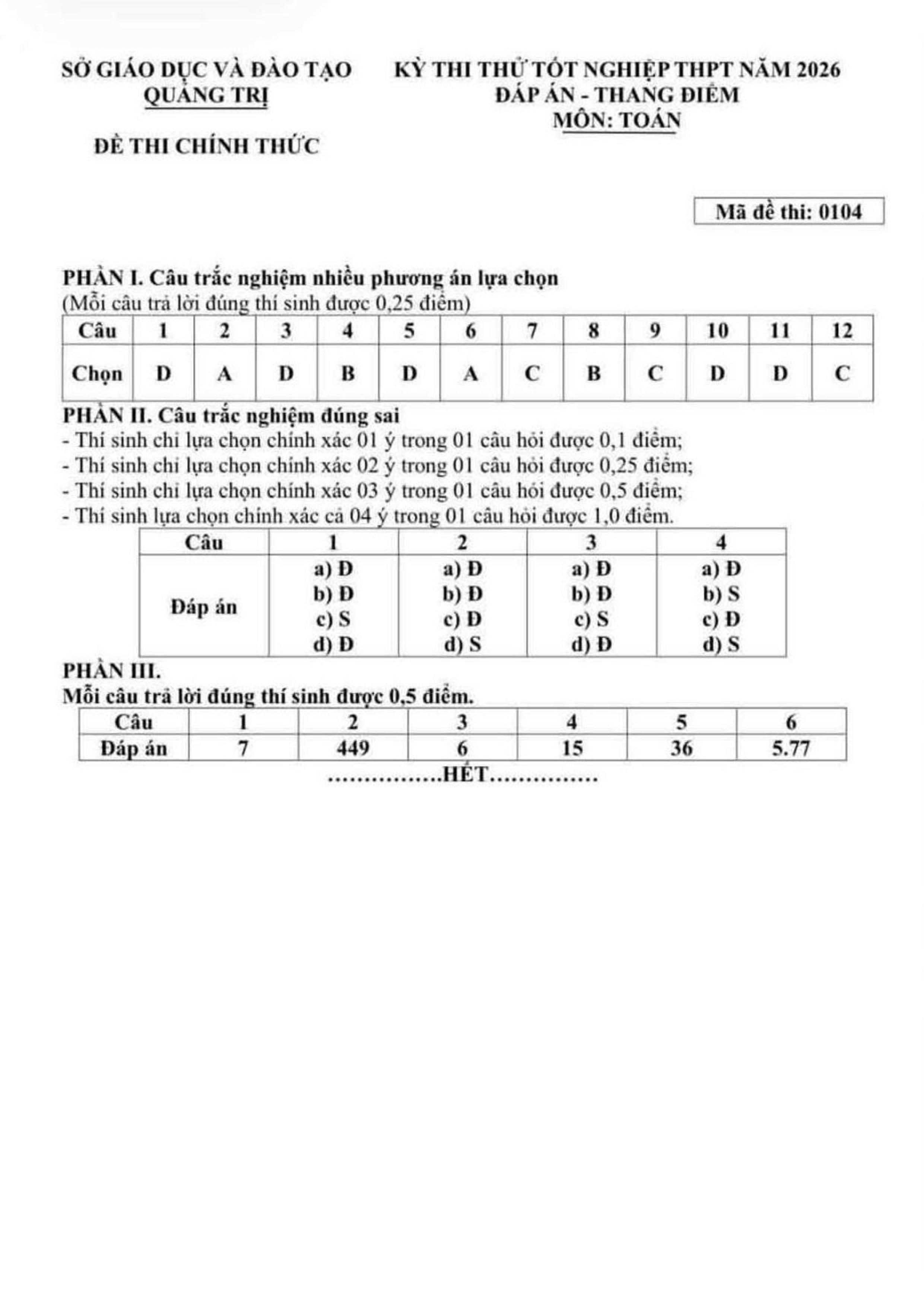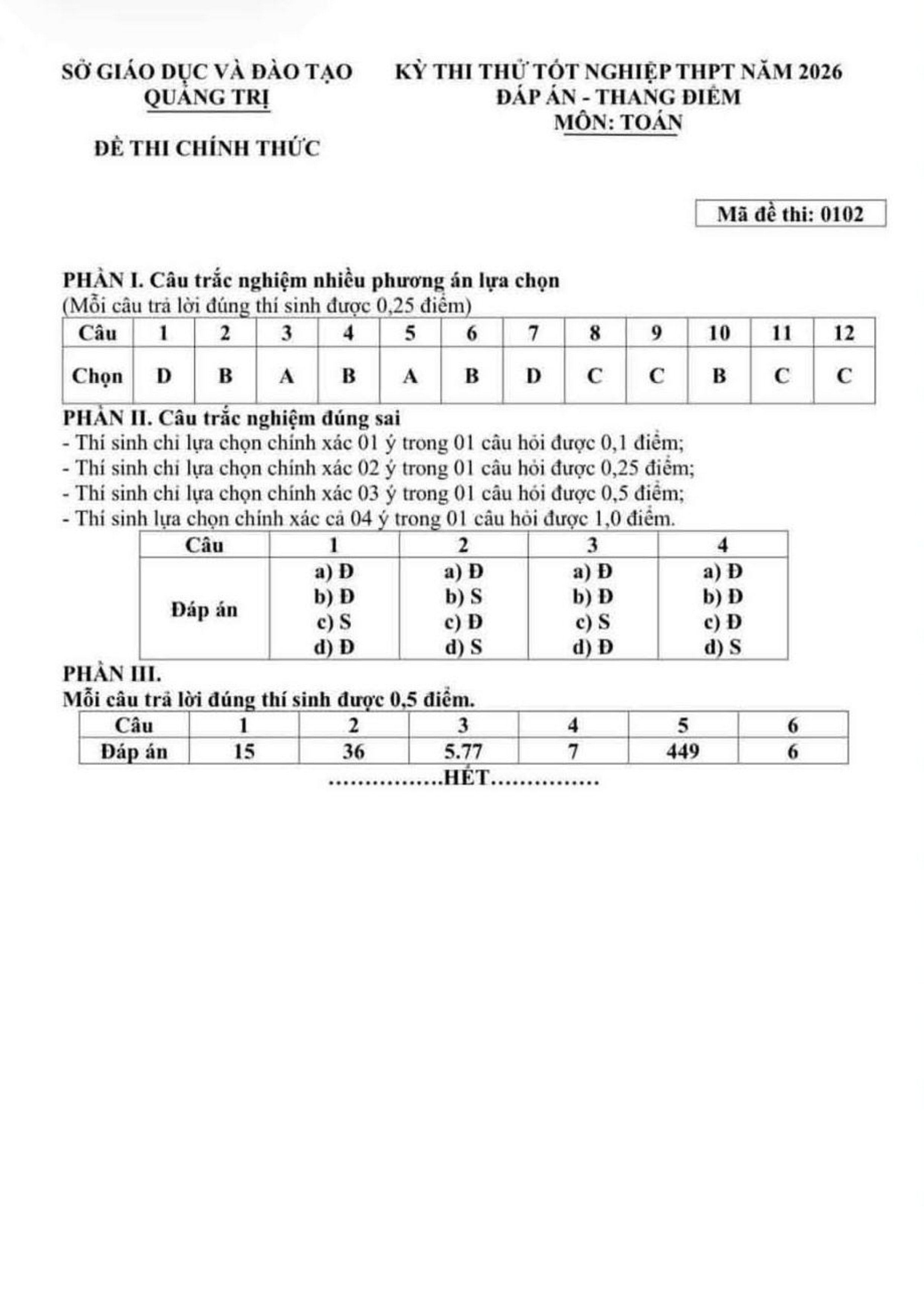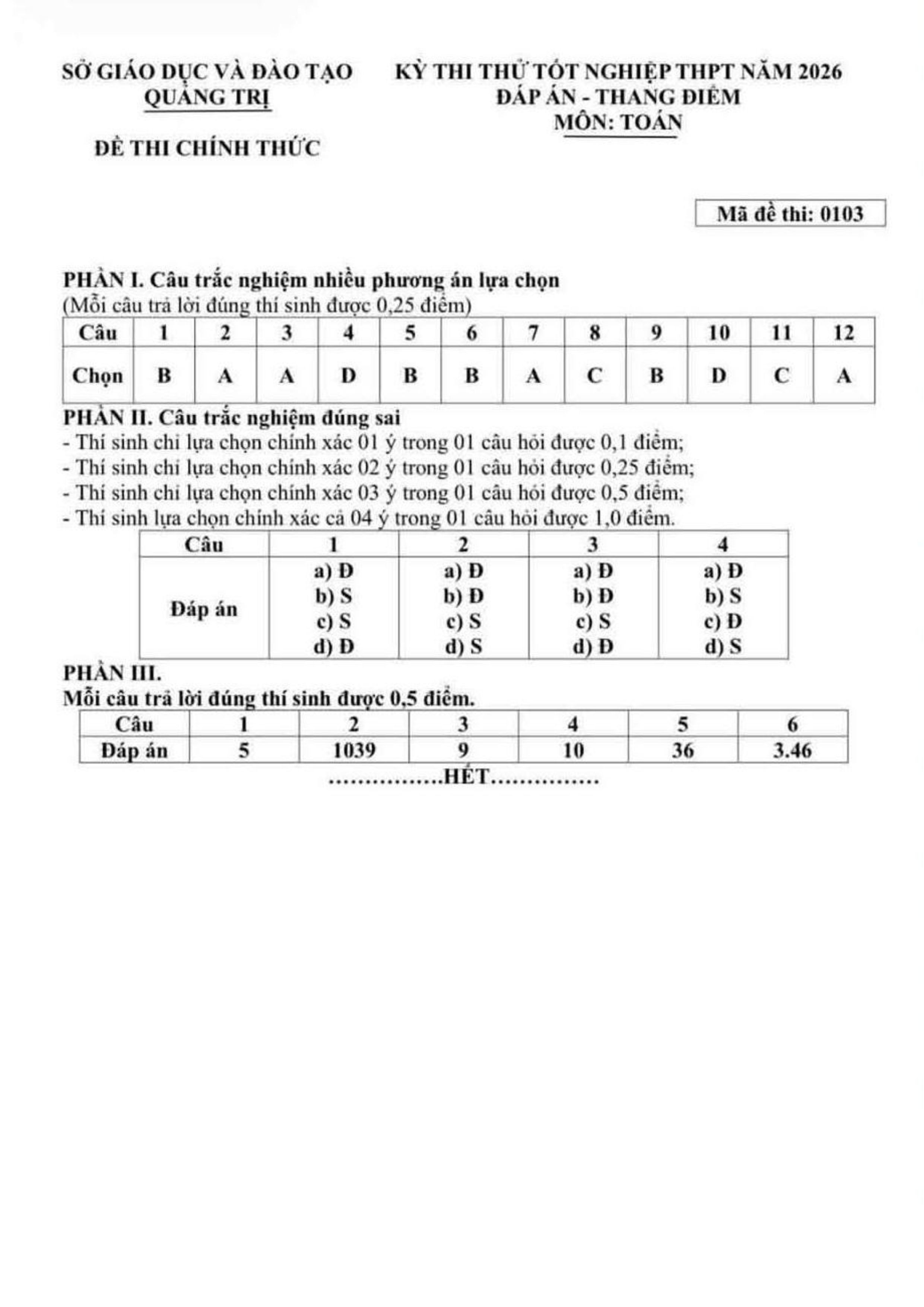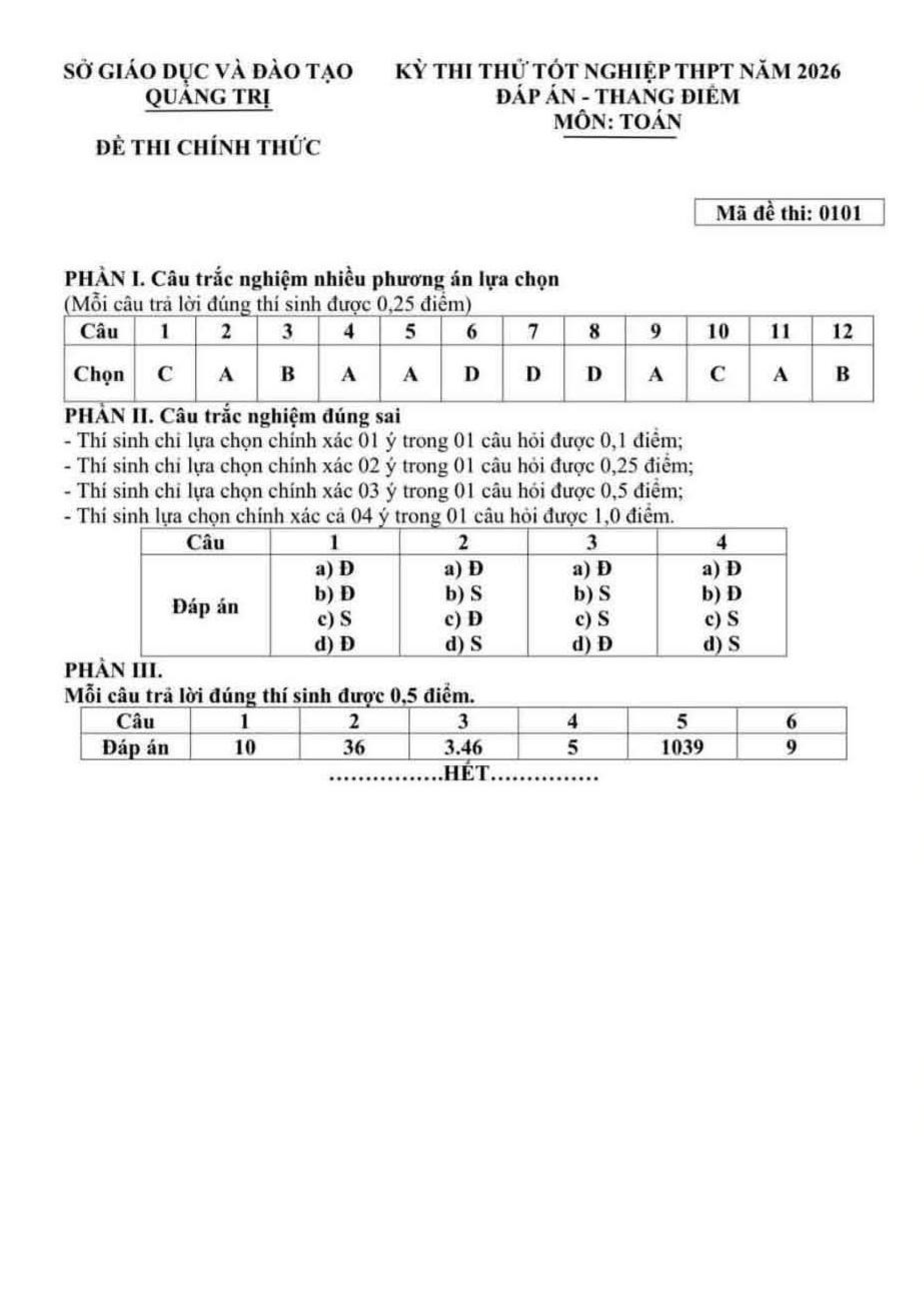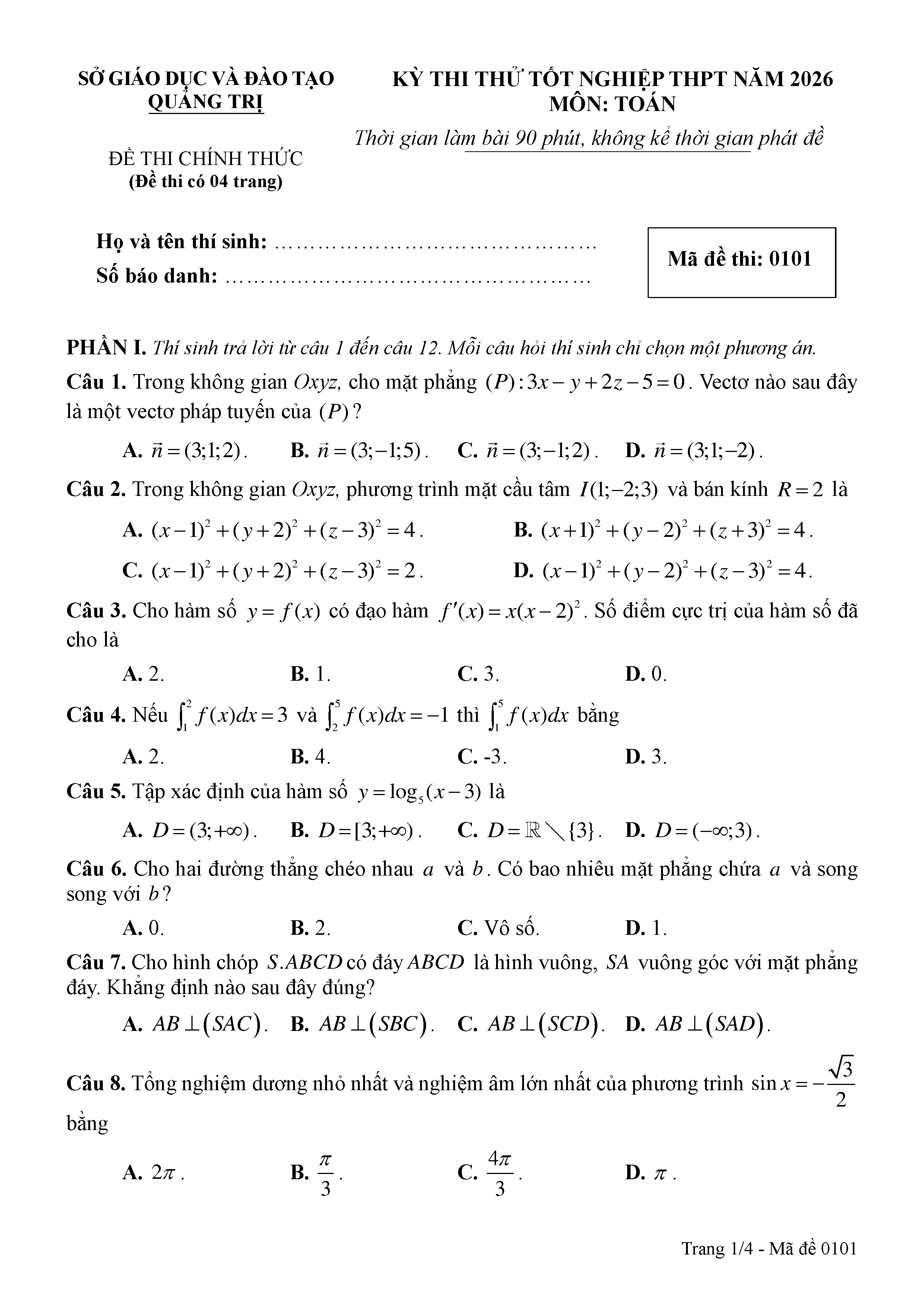 Đề thi thử tốt nghiệp THPT năm 2026 môn Toán sở GD&ĐT Quảng Trị kèm đáp án
