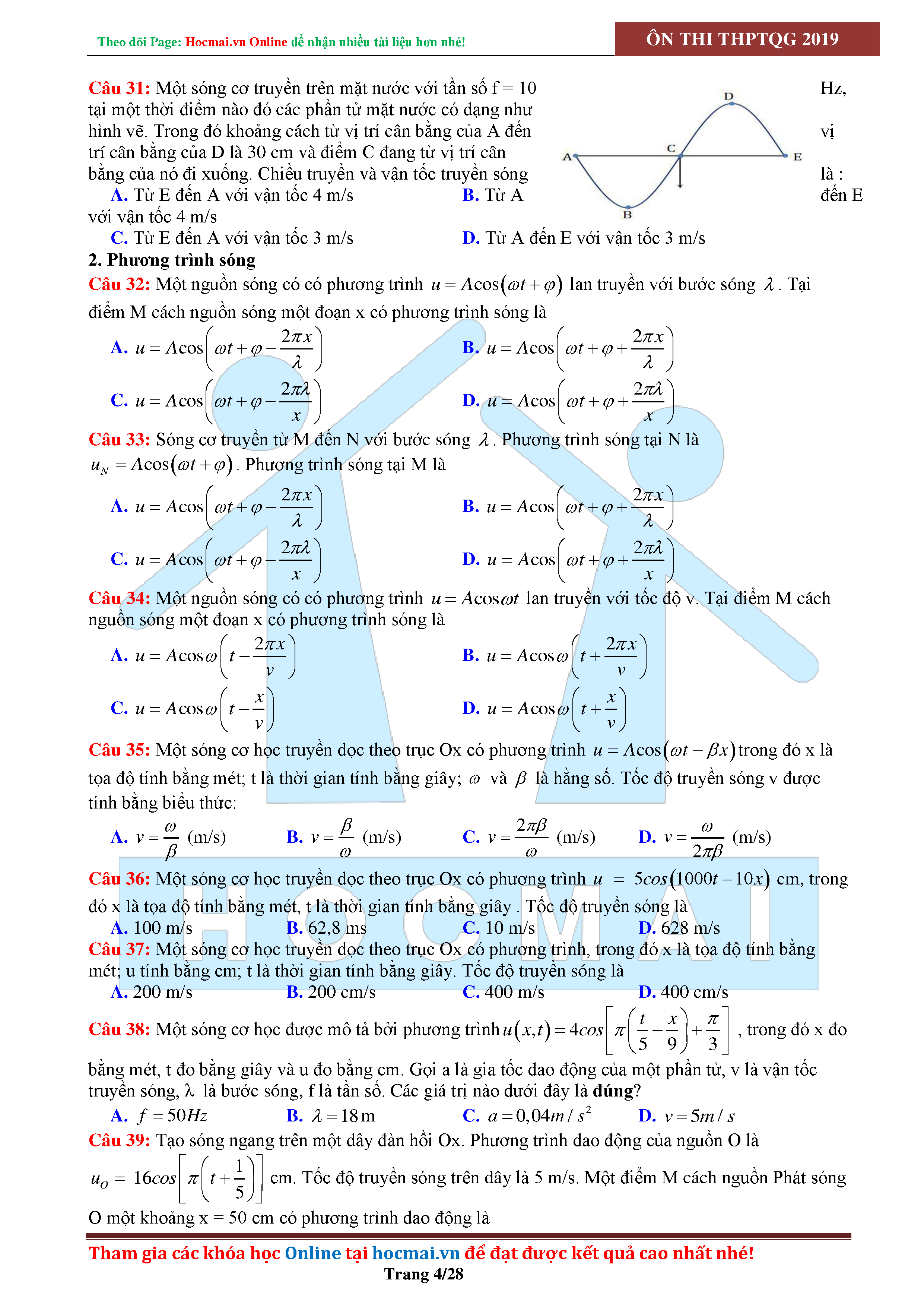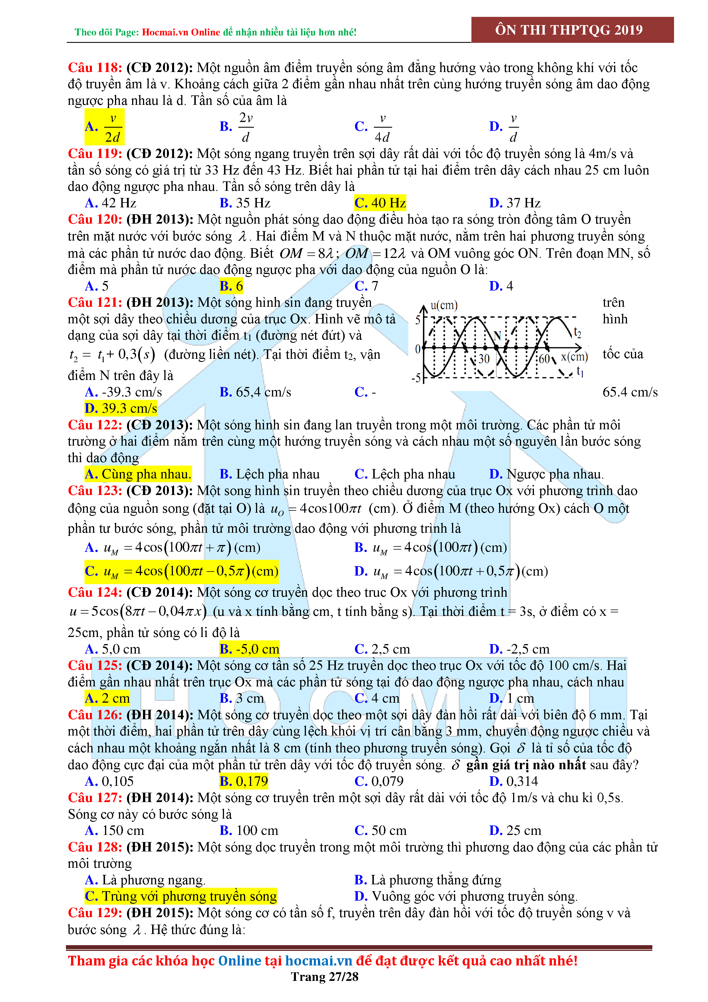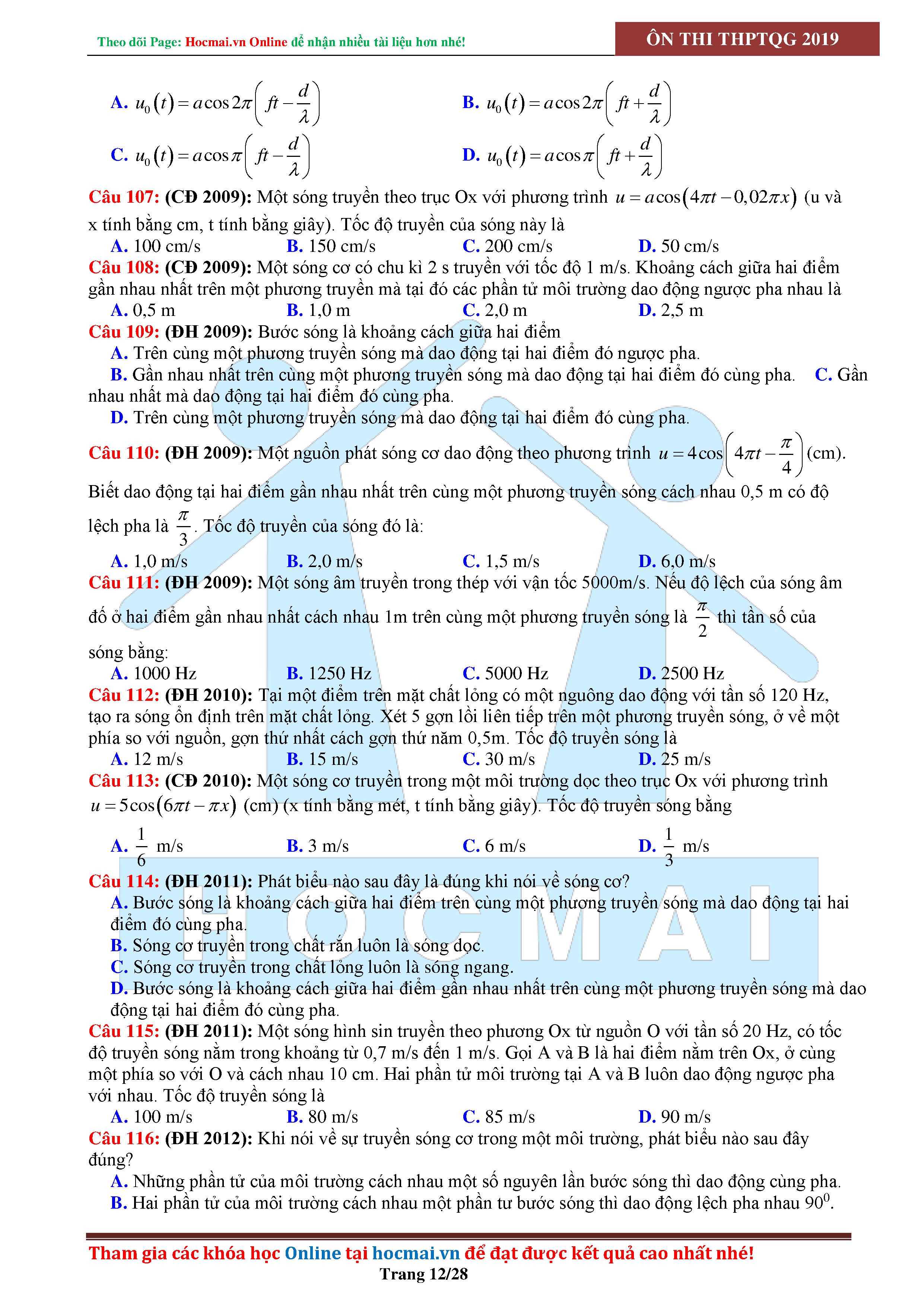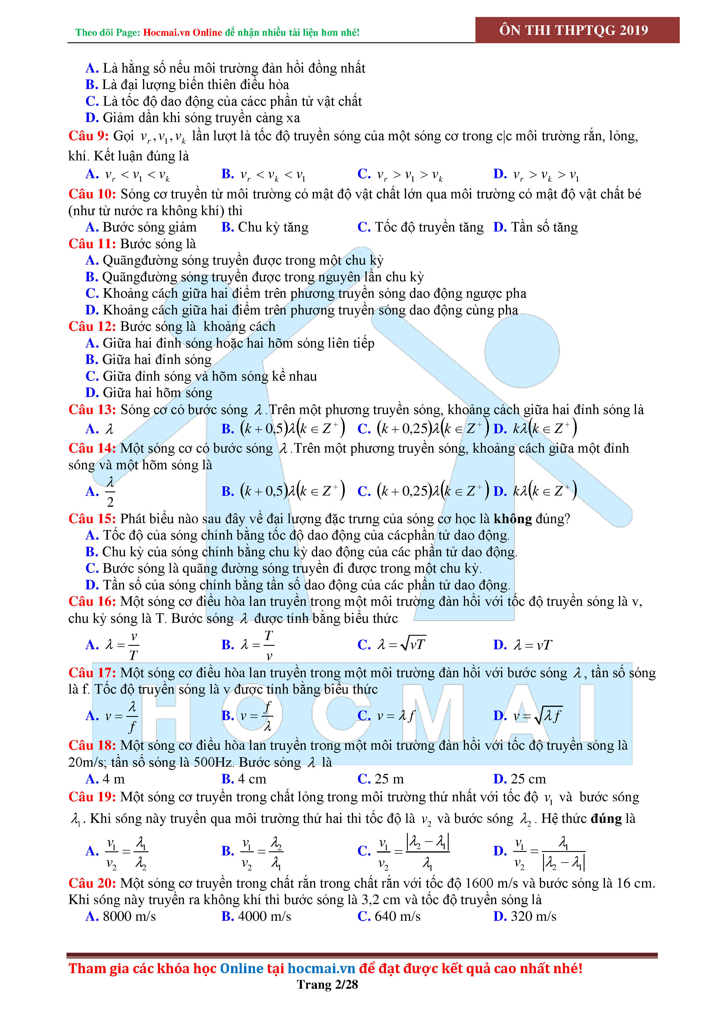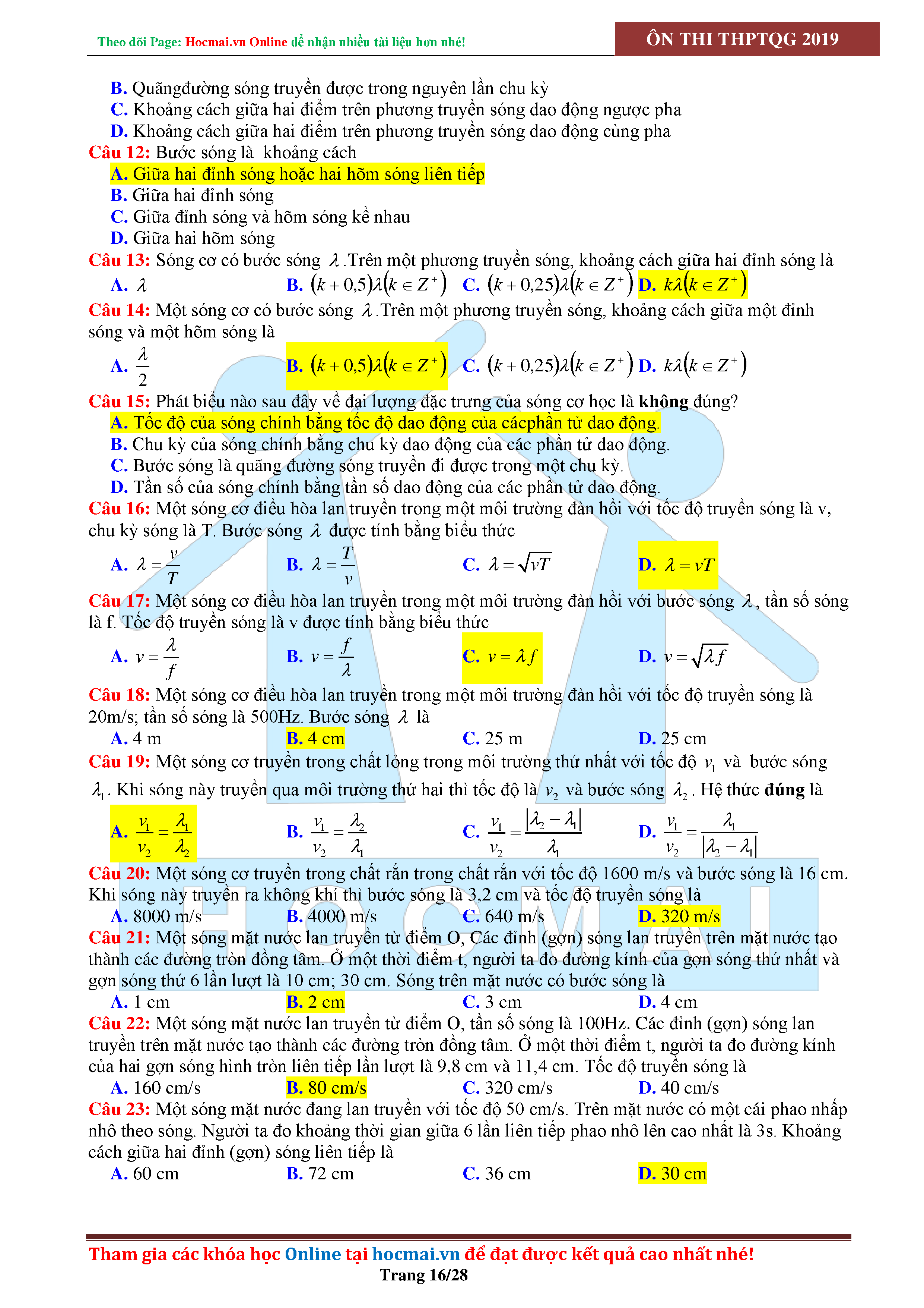 Tuyển tập câu hỏi đại cương về sóng cơ - có đáp án Lớp 12