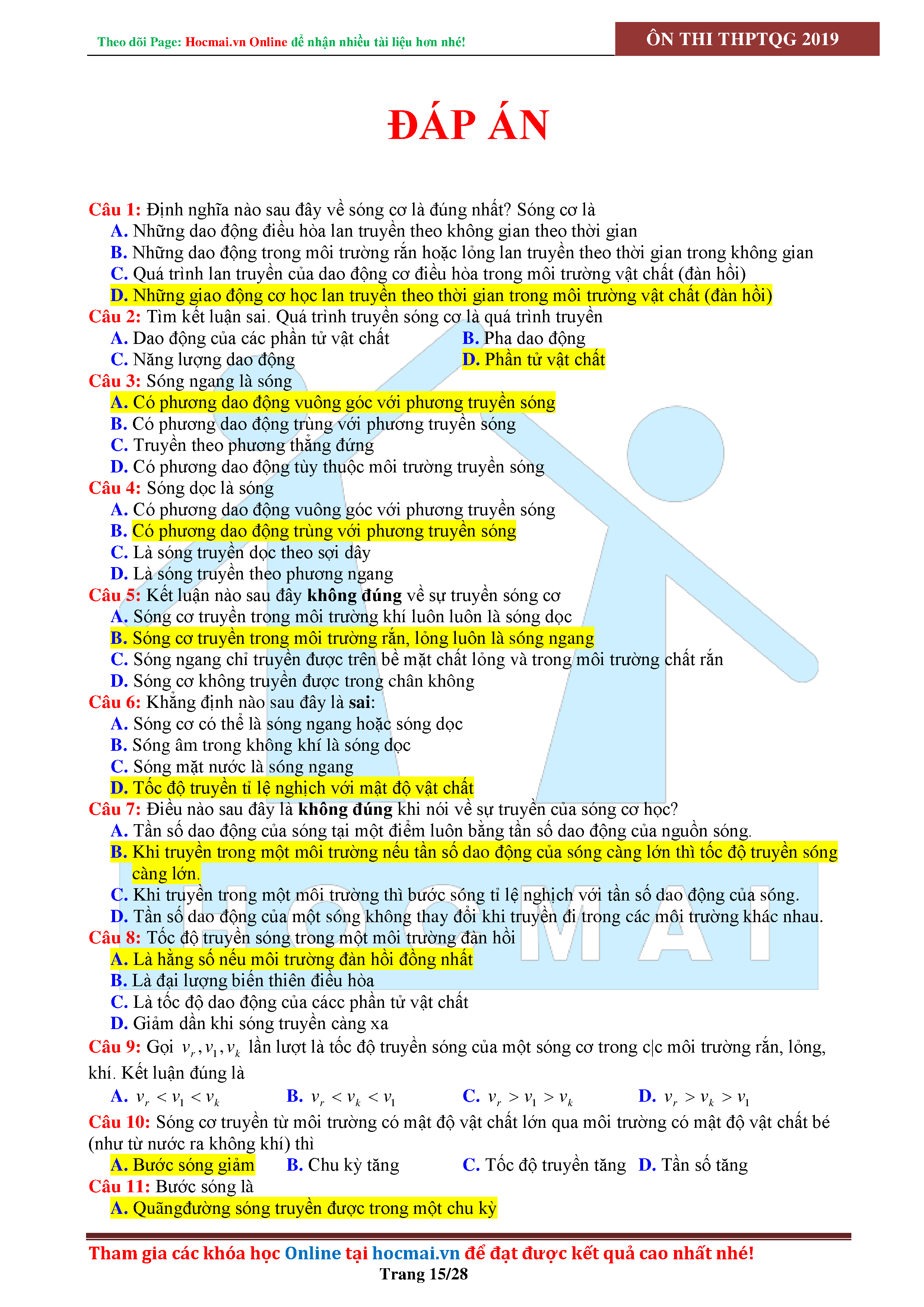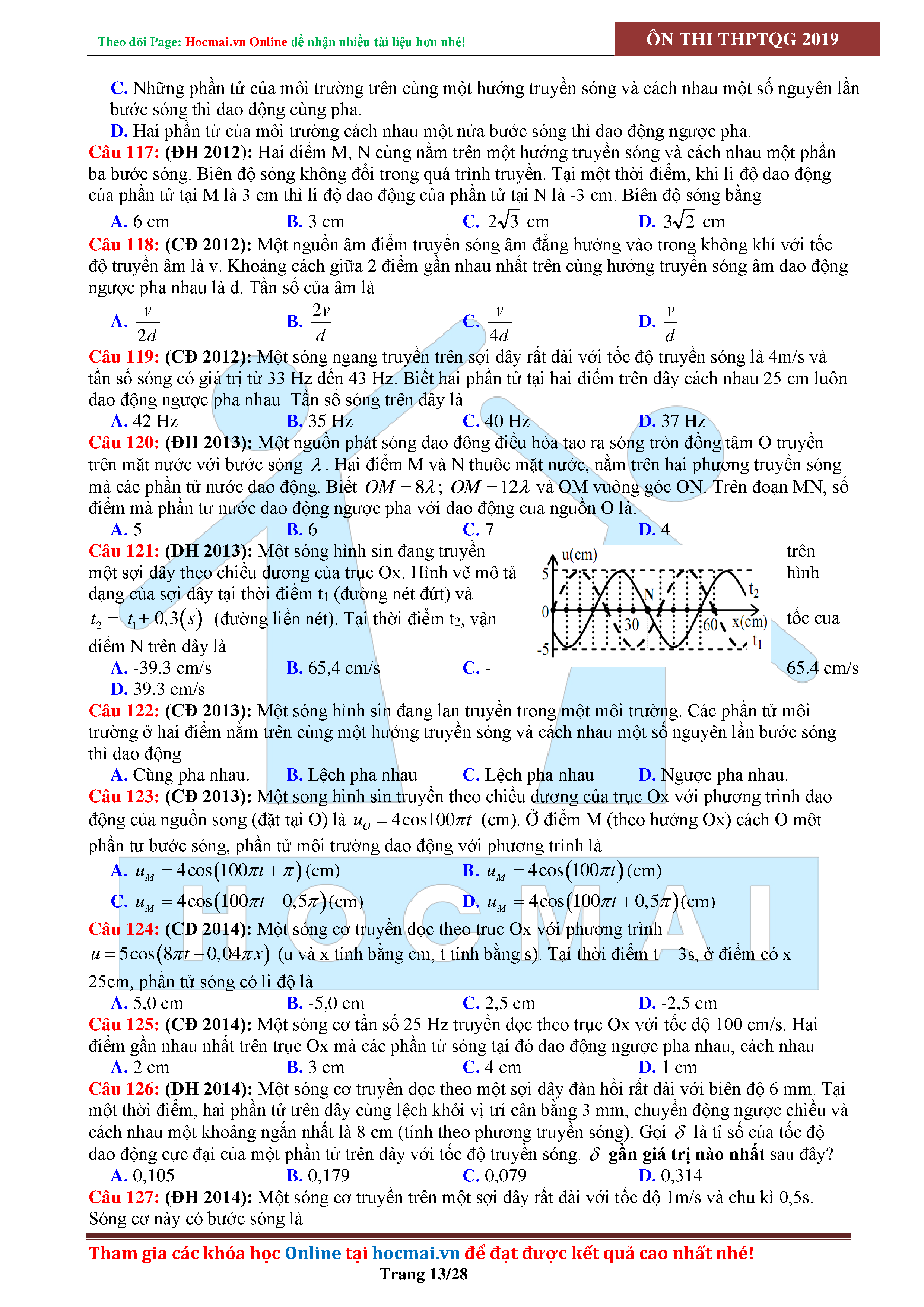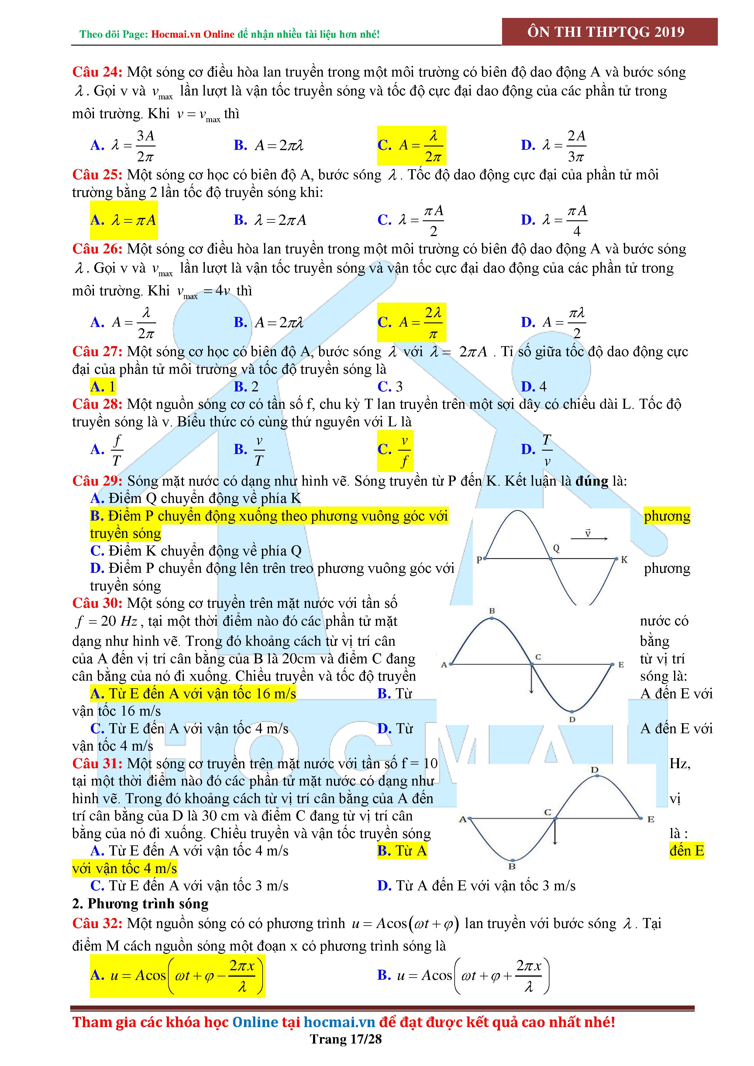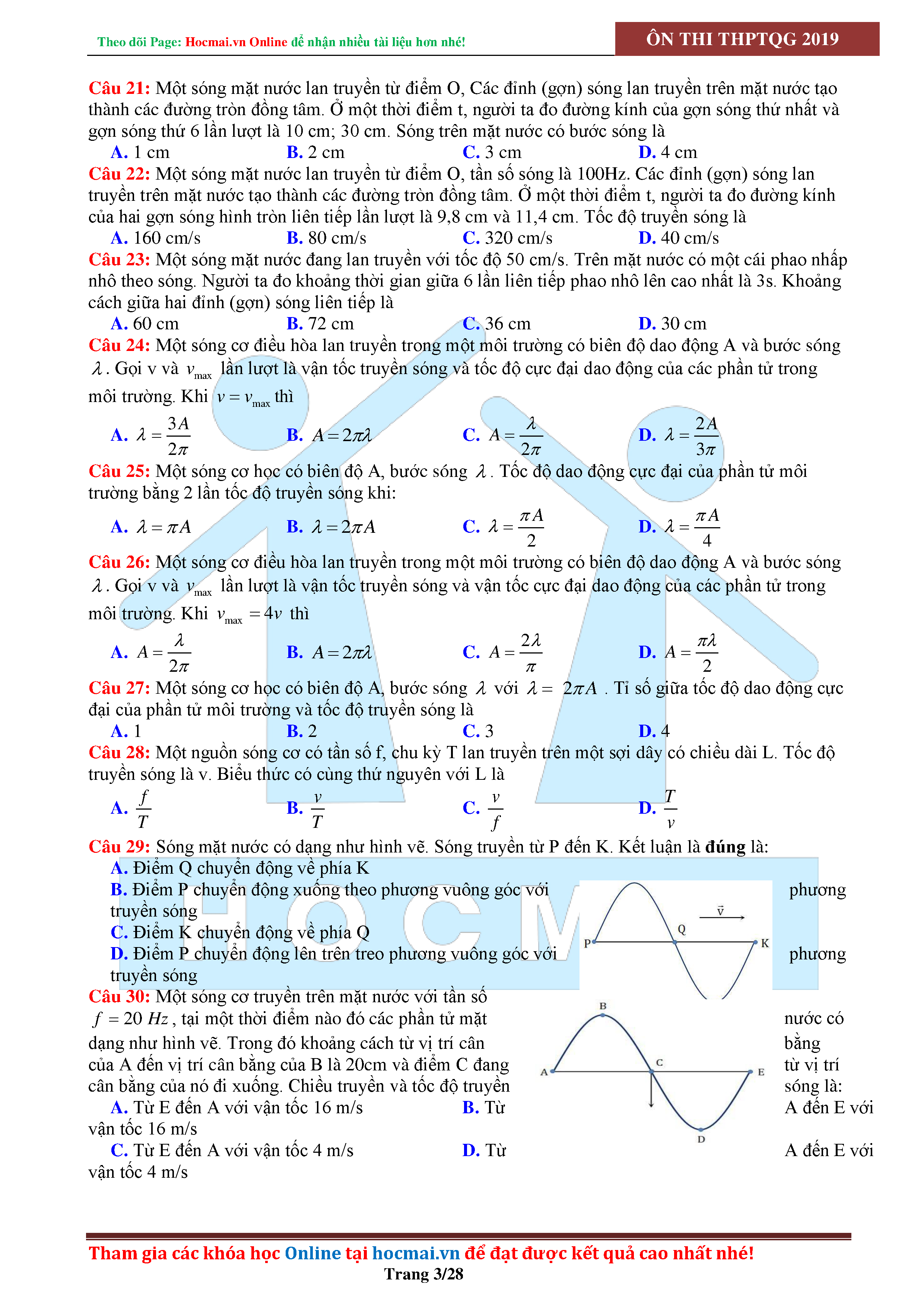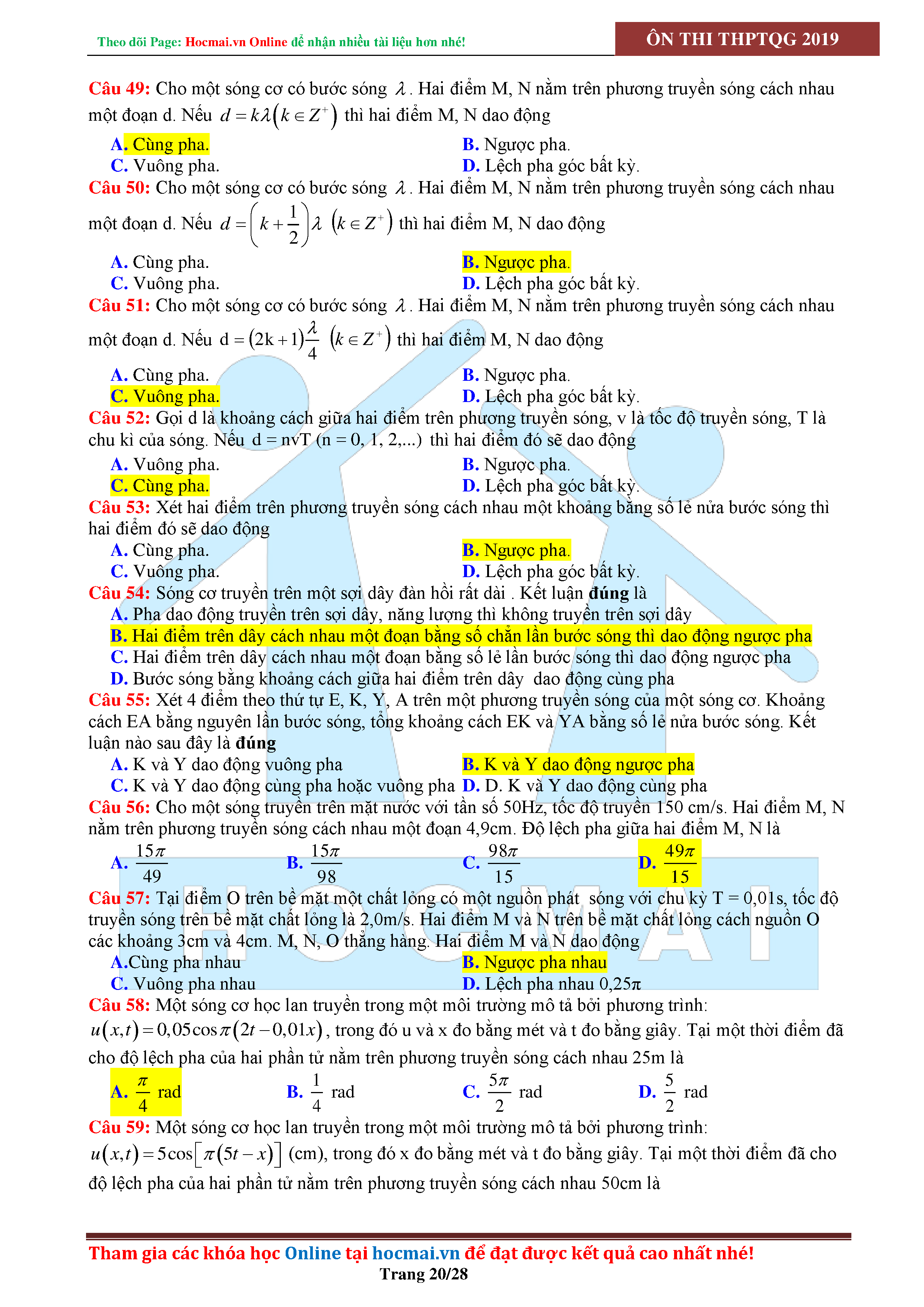Tuyển tập câu hỏi đại cương về sóng cơ - có đáp án Lớp 12
