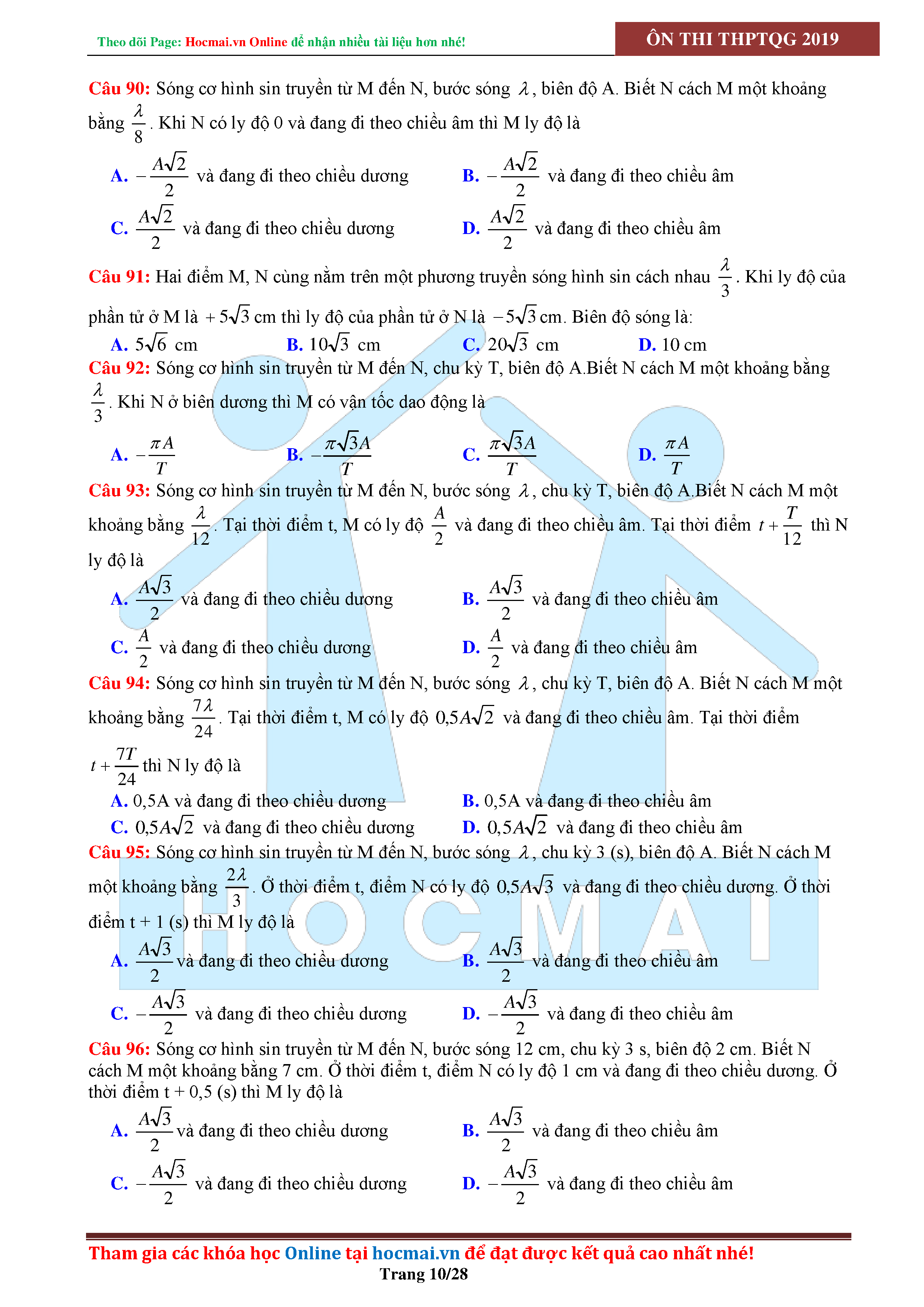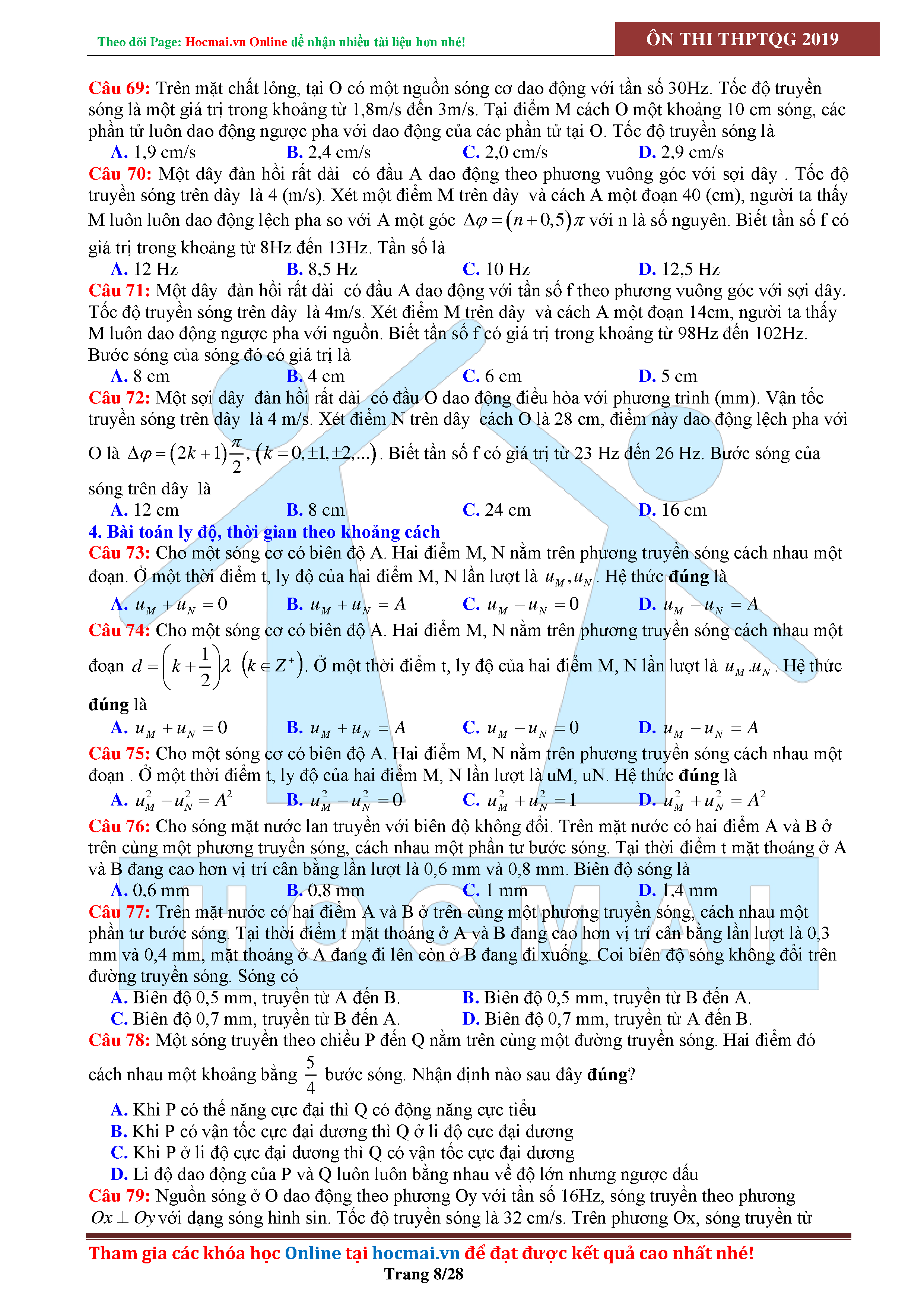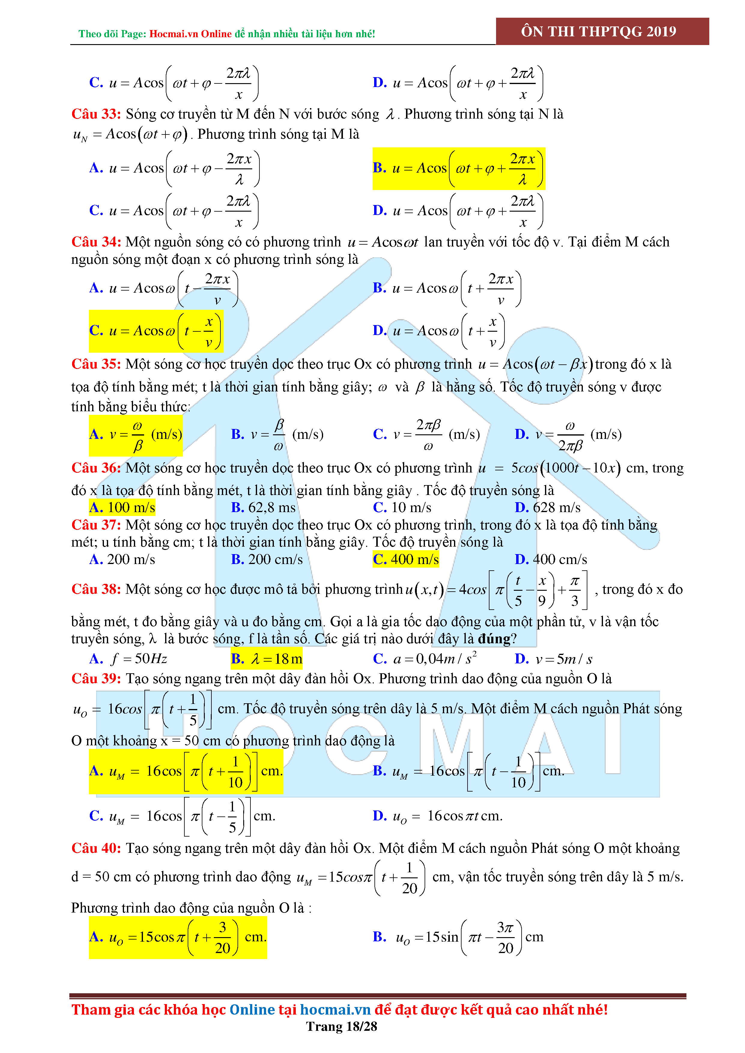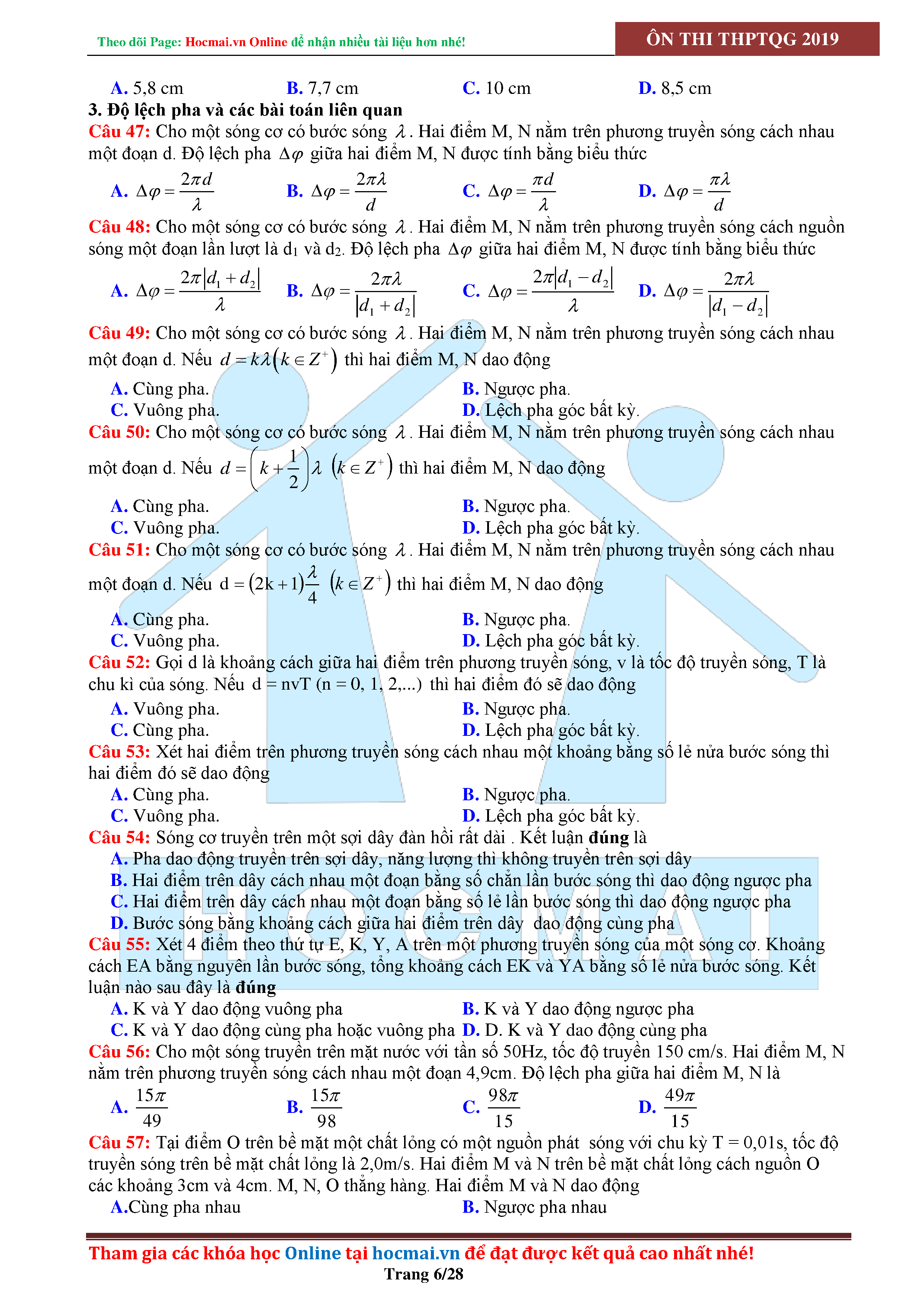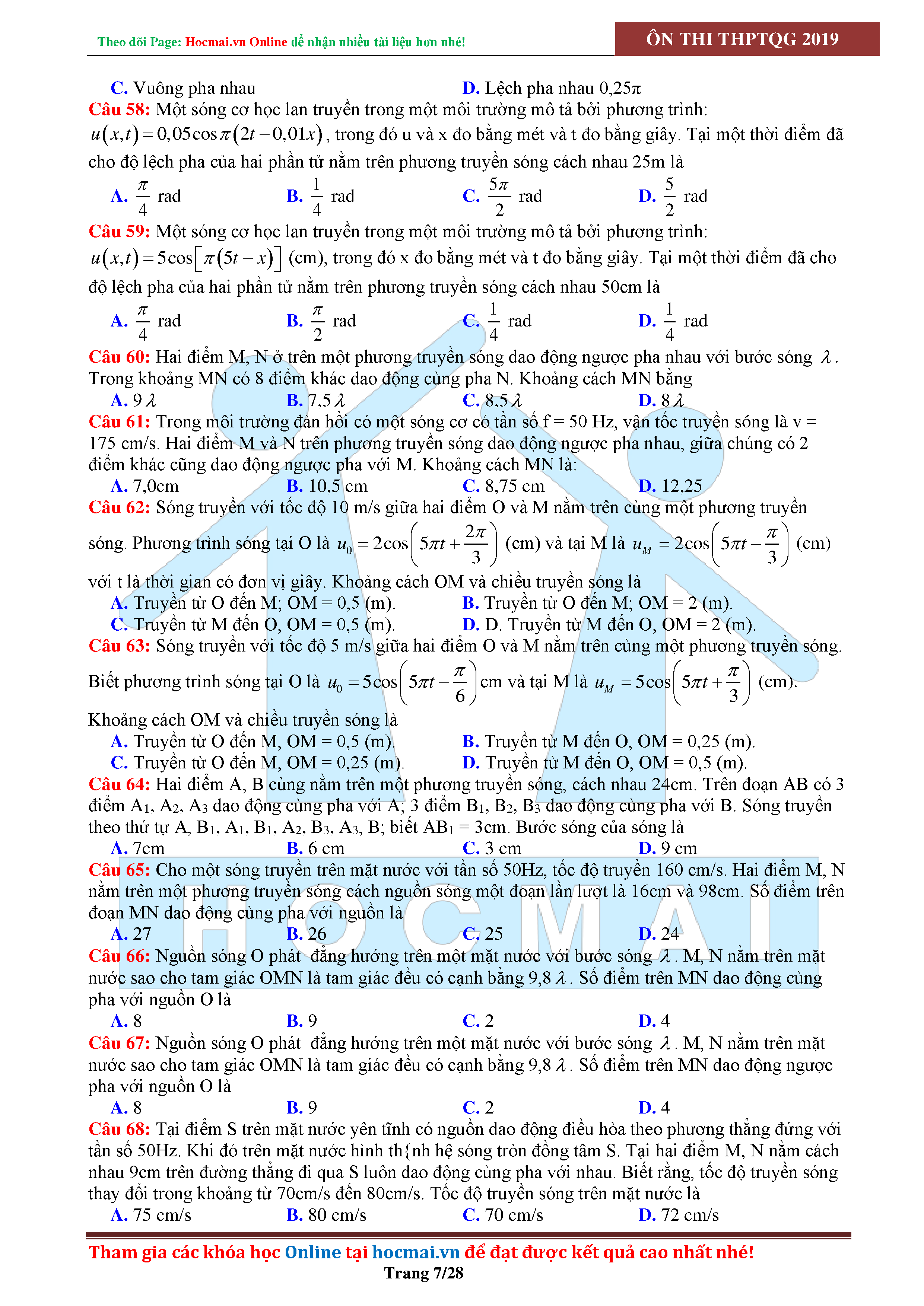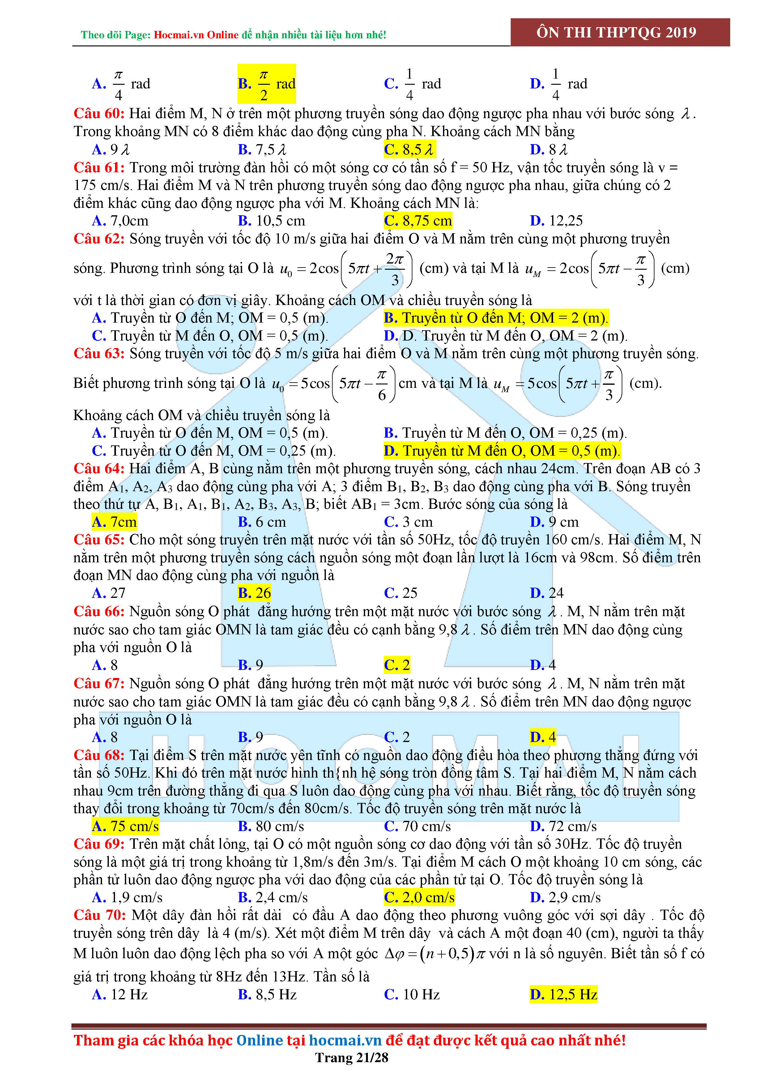 Tuyển tập câu hỏi đại cương về sóng cơ - có đáp án Lớp 12