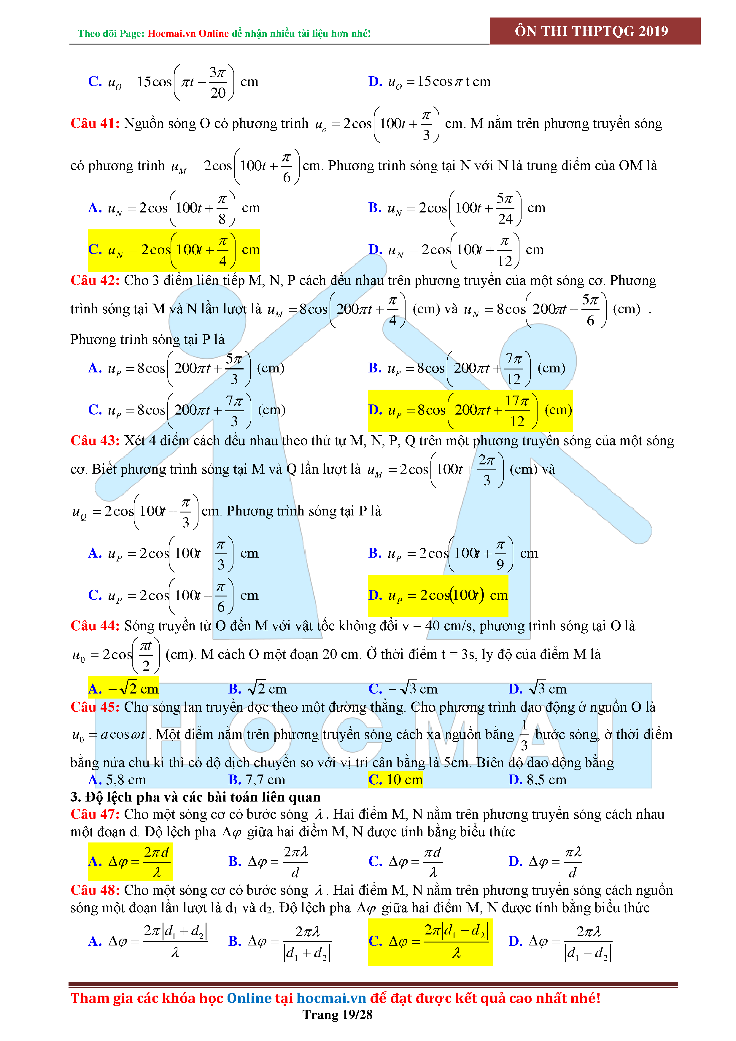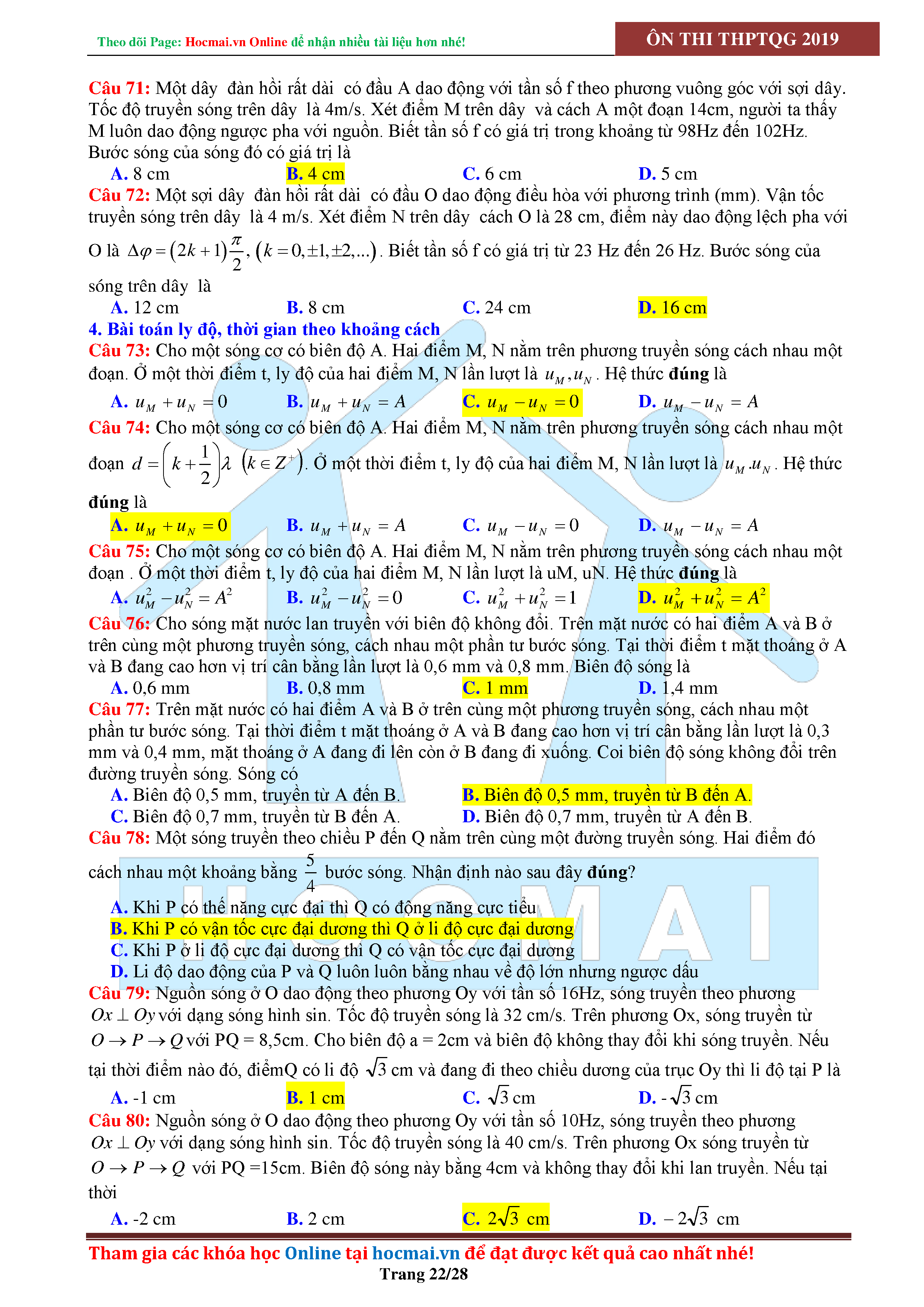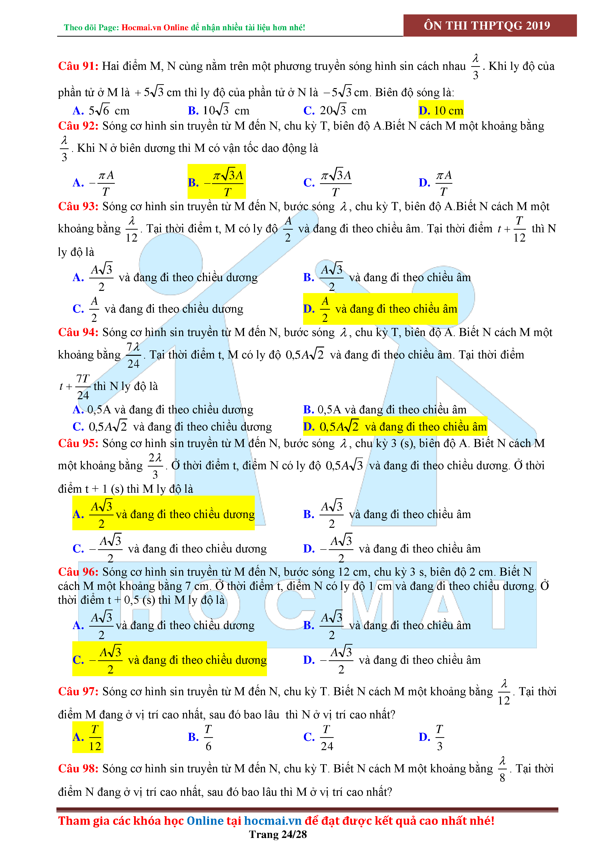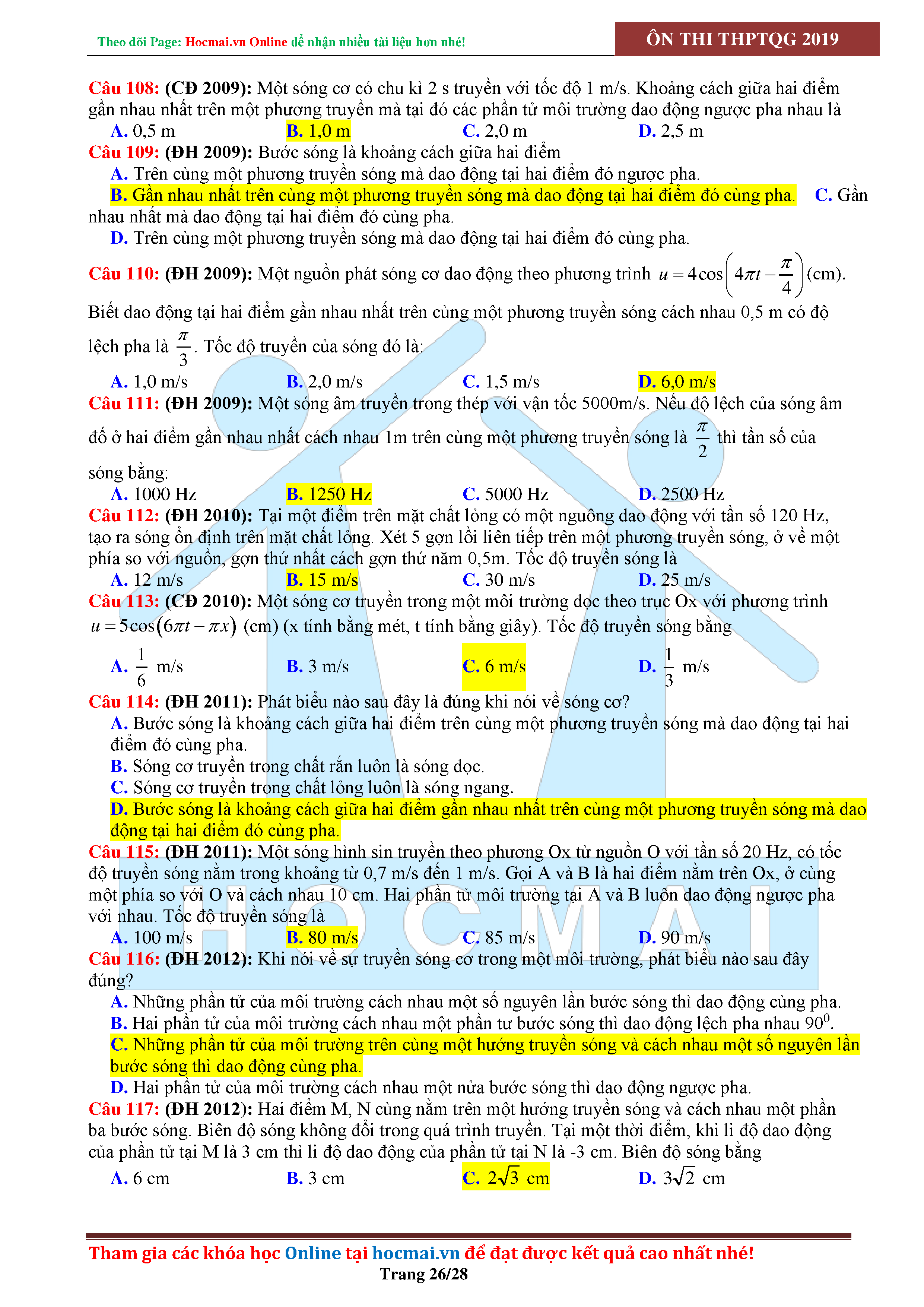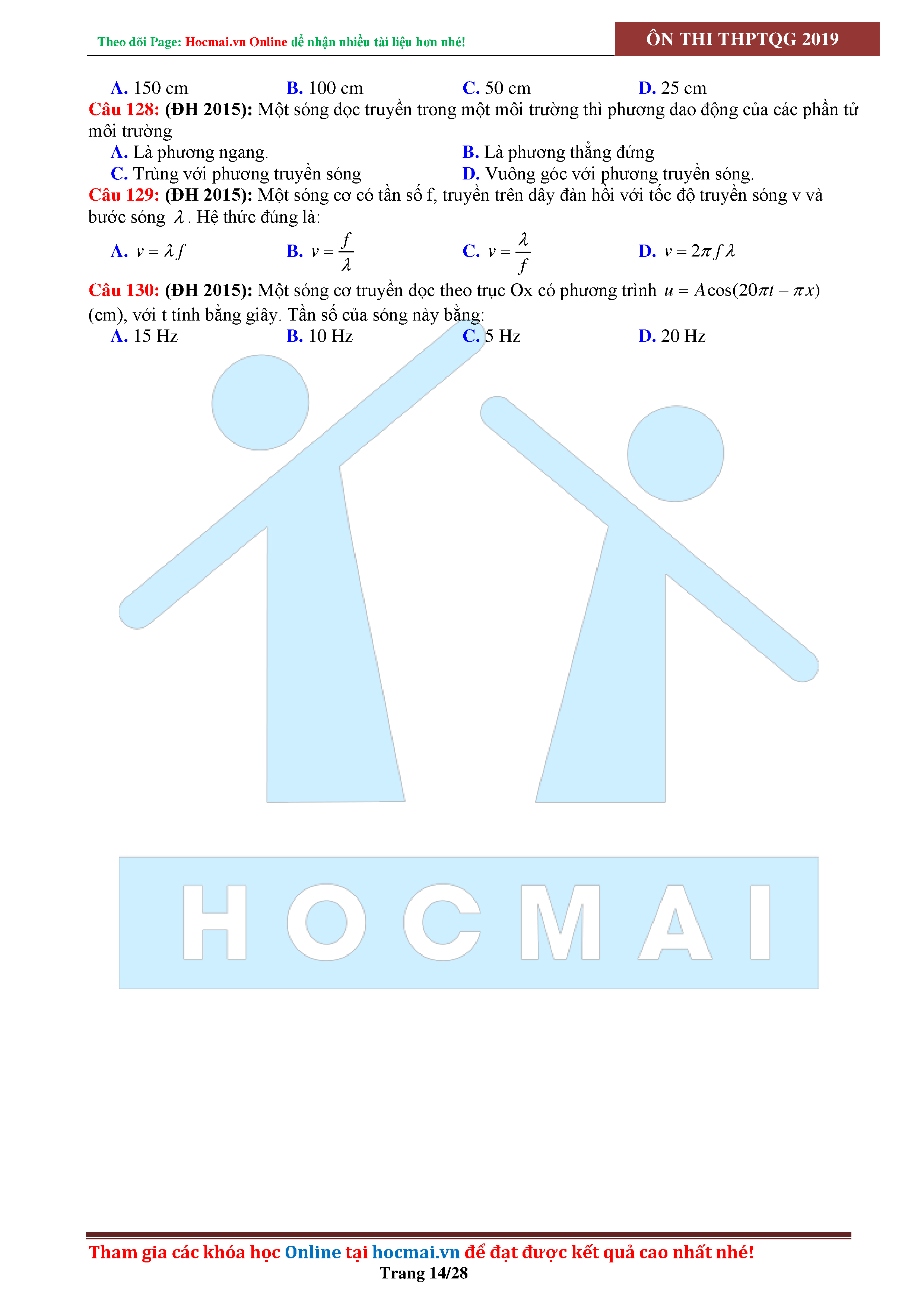 Tuyển tập câu hỏi đại cương về sóng cơ - có đáp án Lớp 12