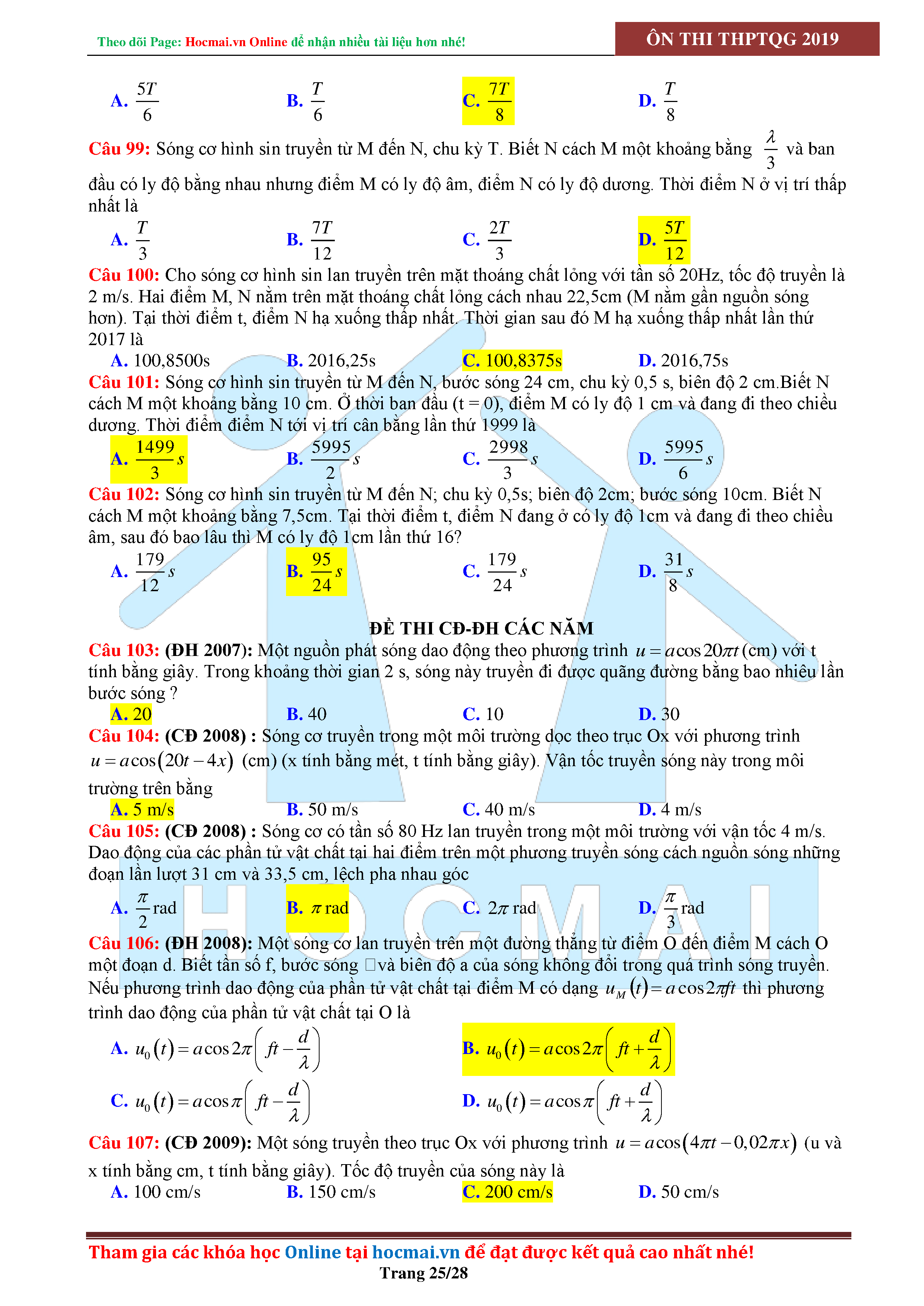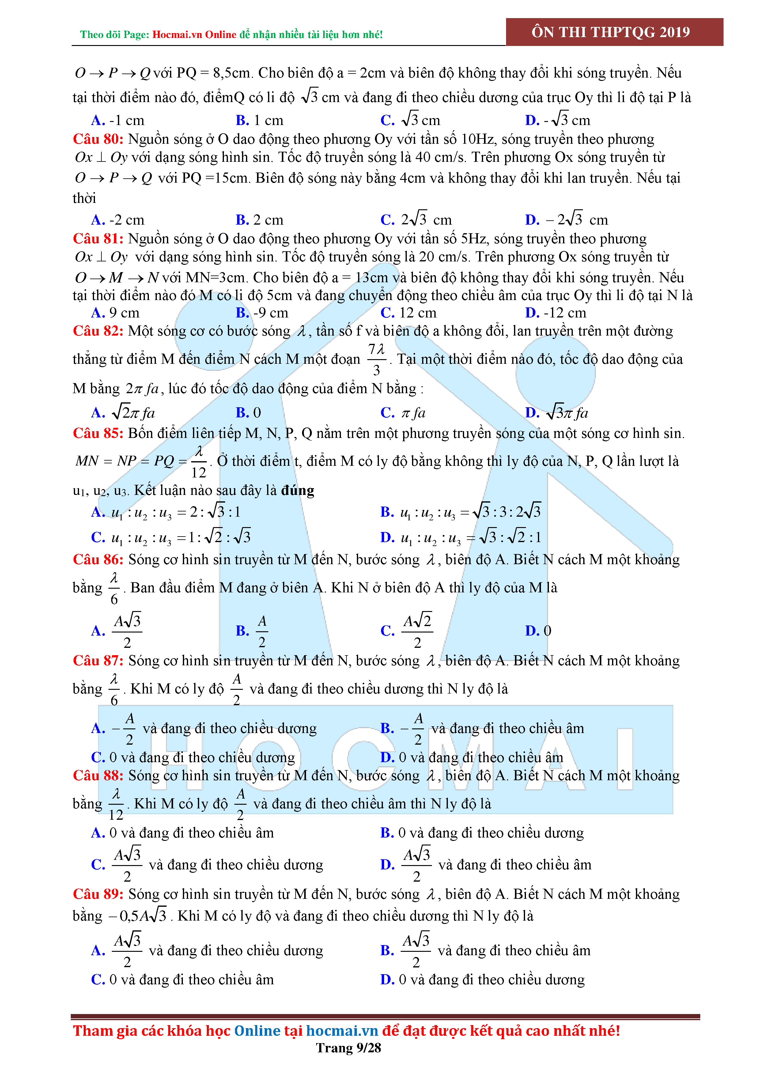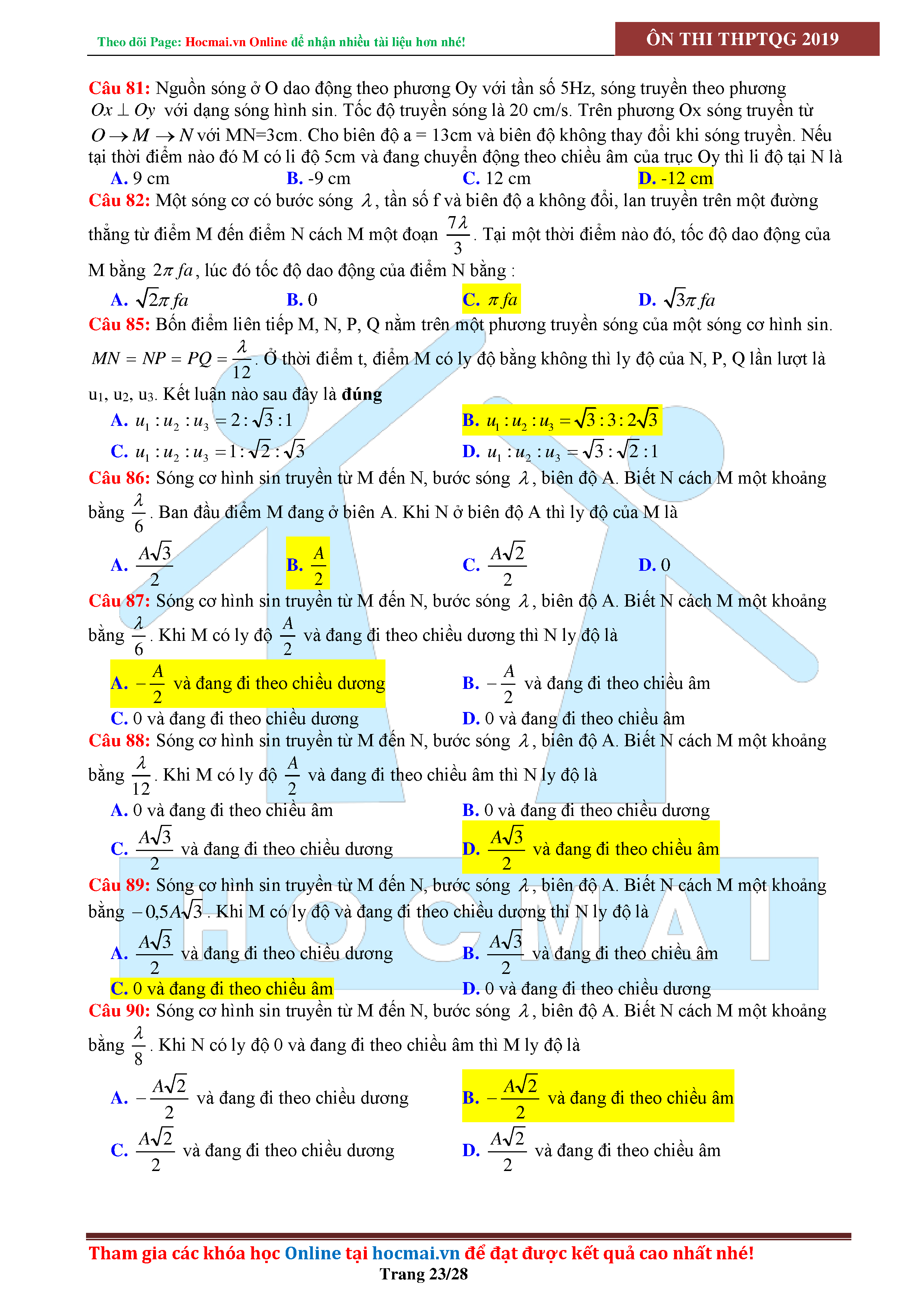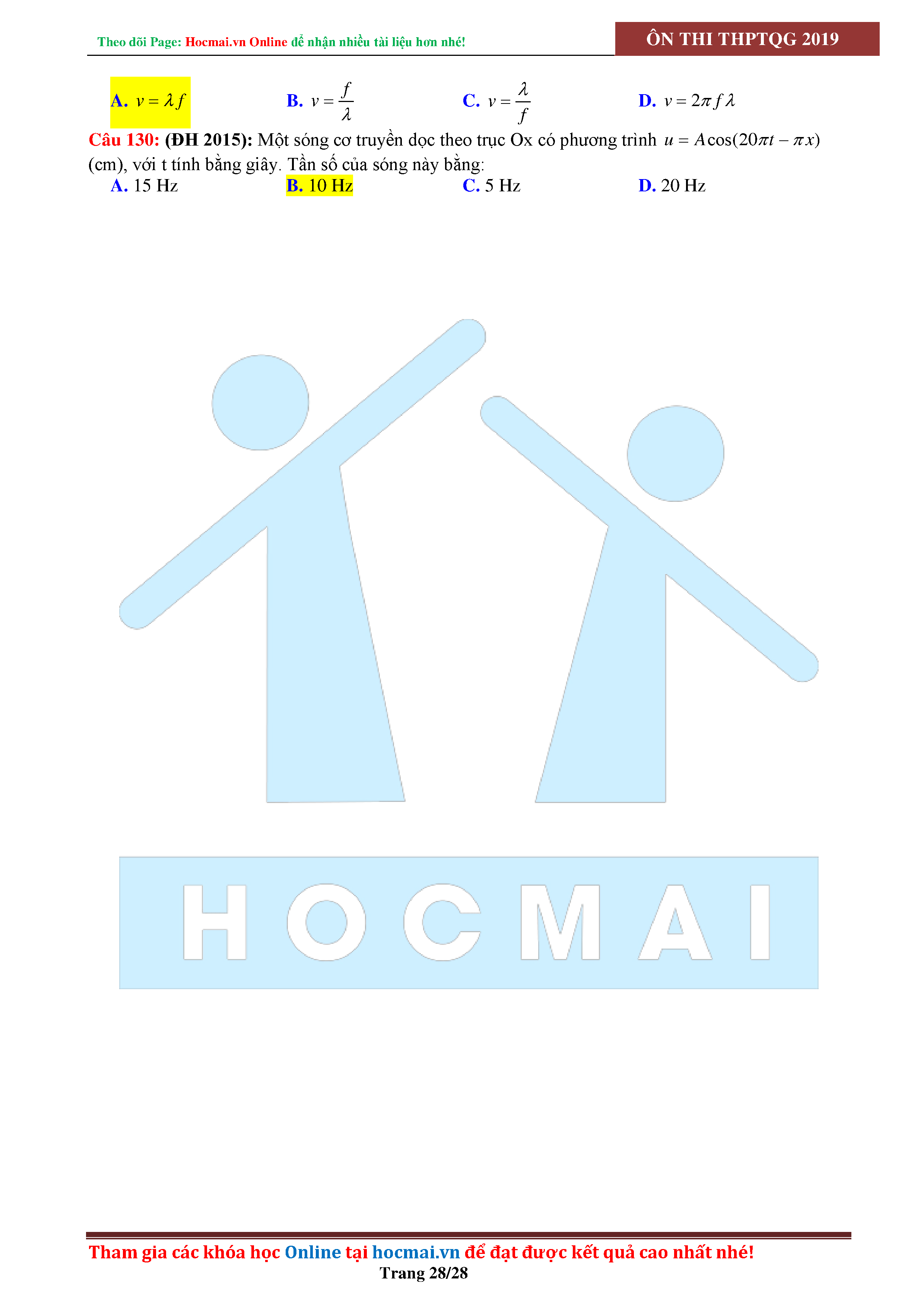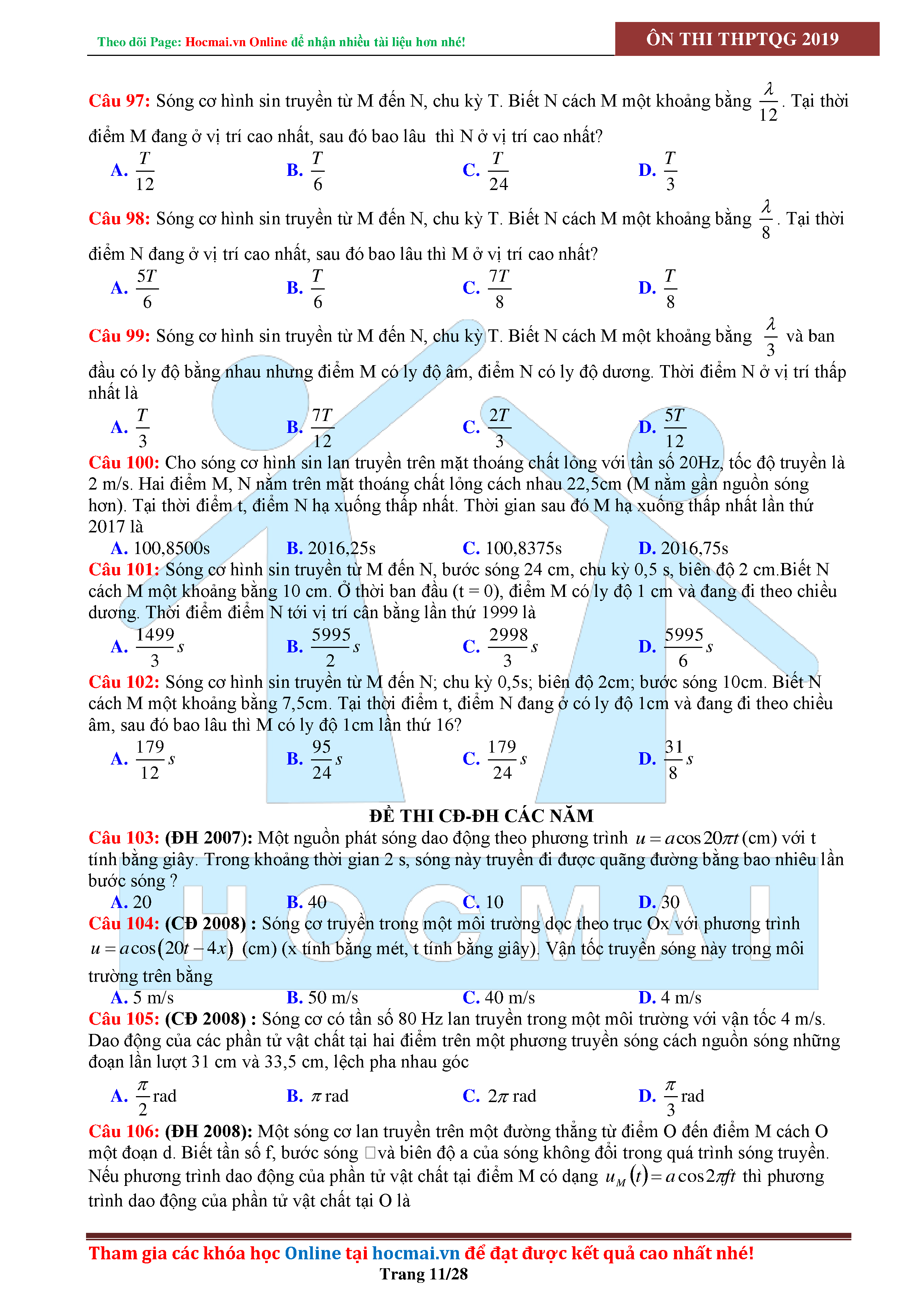 Tuyển tập câu hỏi đại cương về sóng cơ - có đáp án Lớp 12