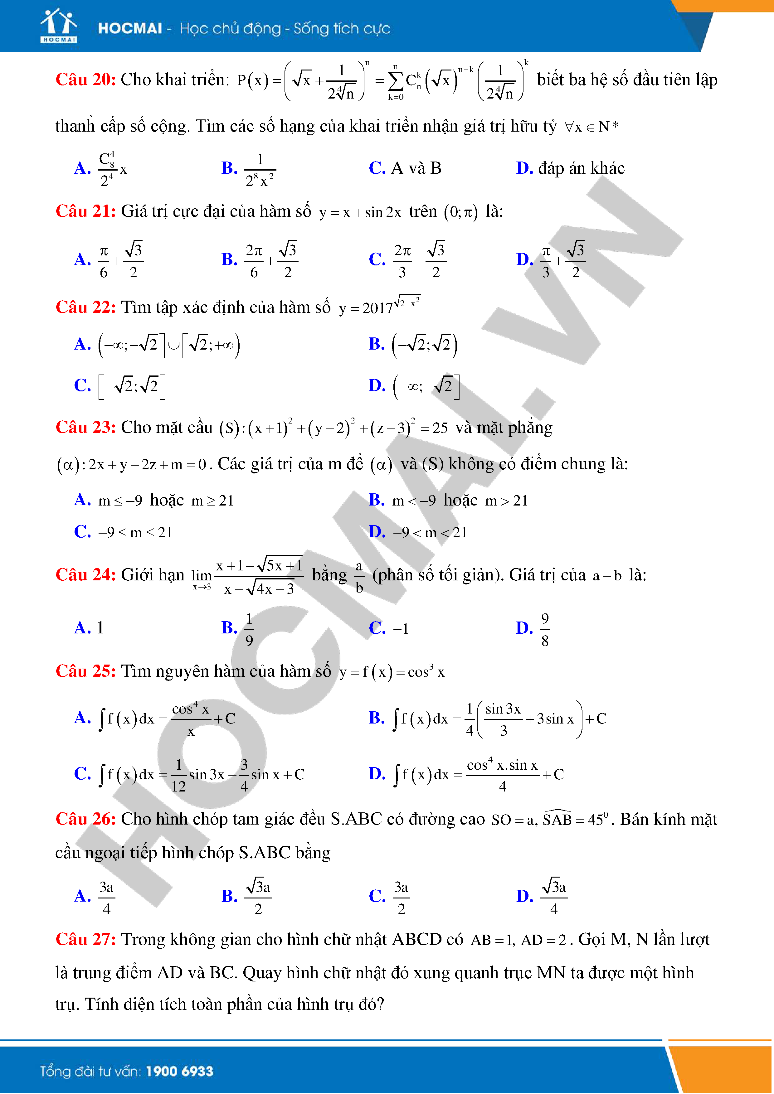 Đề thi thử THPT QG môn Toán học - Năm 2018 - Lần 2 là bộ đề do HOCMAI sưu tầm, đề gồm 50 câu dưới hình thức trắc nghiệm, phạm vi kiến thức trong chương trình học lớp 12. Các bạn cùng nhau tham khảo nhé!