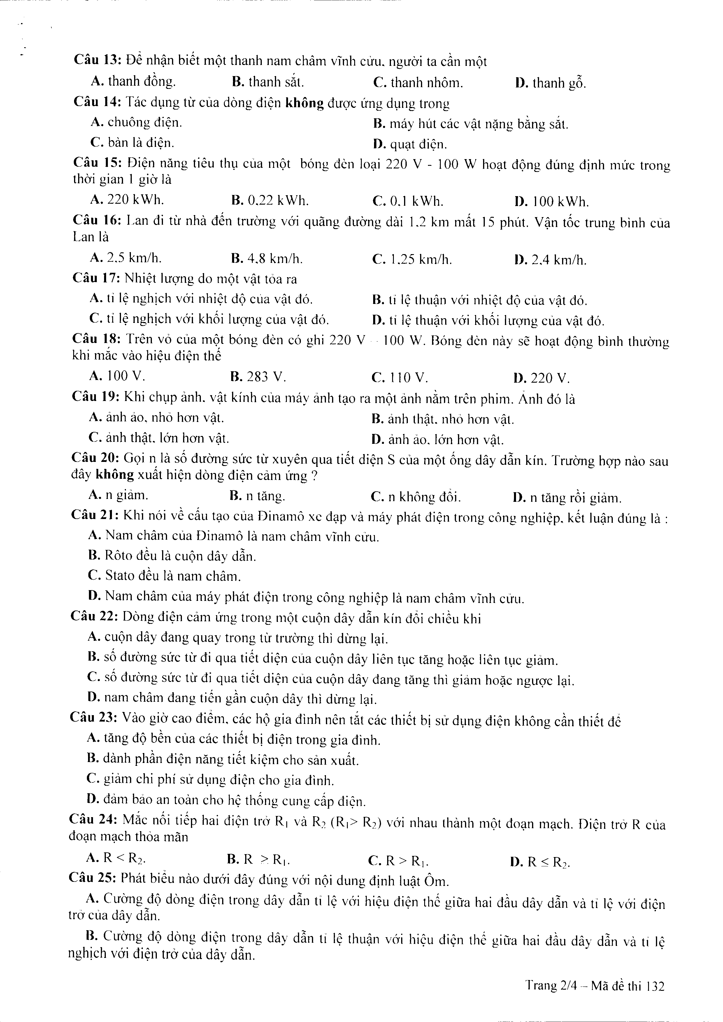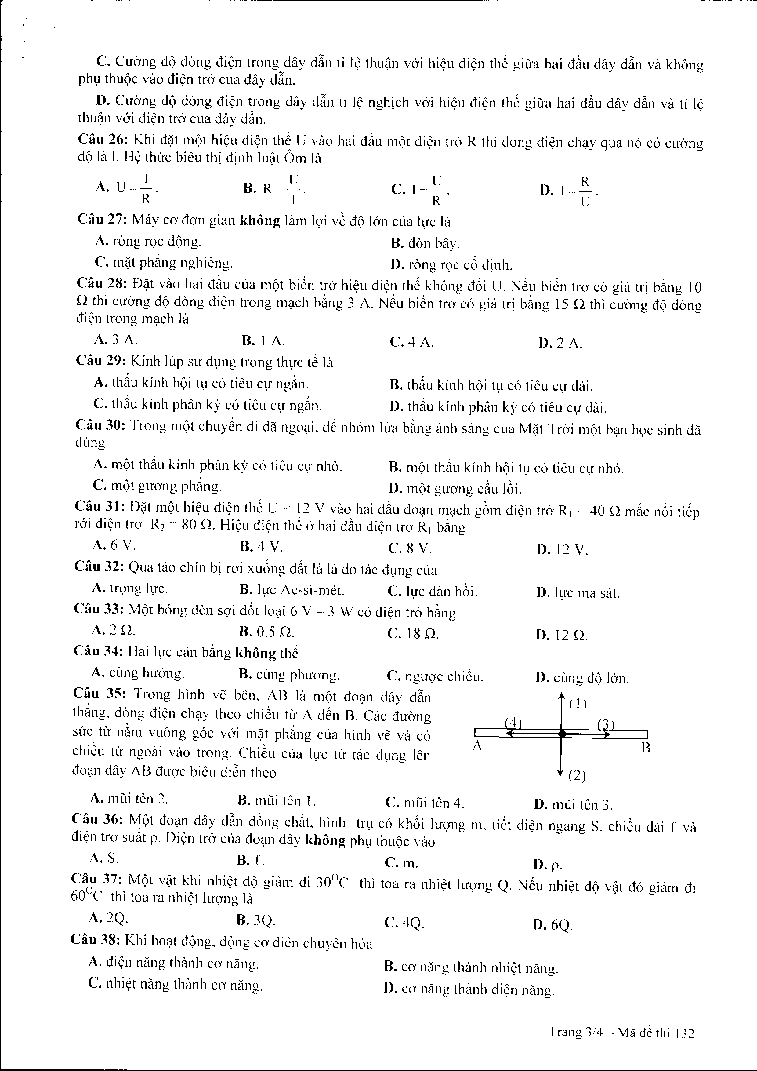 ĐỀ THI THAM KHẢO KỲ THI TUYỂN SINH VÀO LỚP 10 THPT NĂM 2018 - MÔN VẬT LÍ - HÀ NỘI