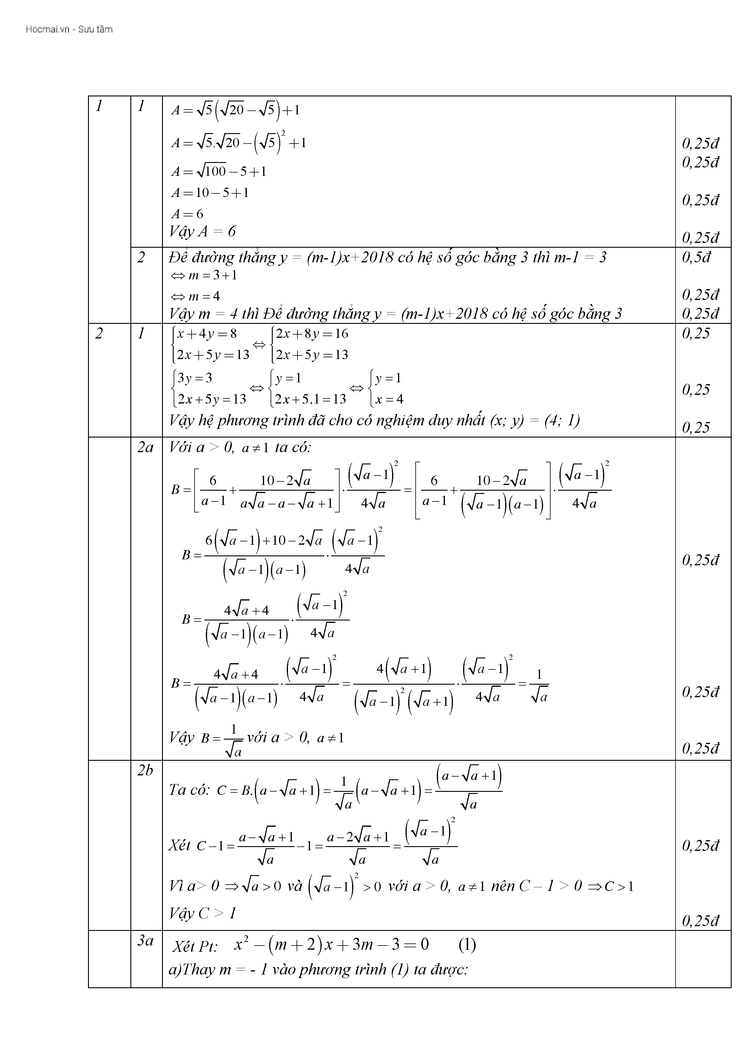 ĐỀ THI CHÍNH THỨC VÀ HDG VÀO 10 NĂM 2018 _2019 MÔN TOÁN TỈNH BẮC GIANG