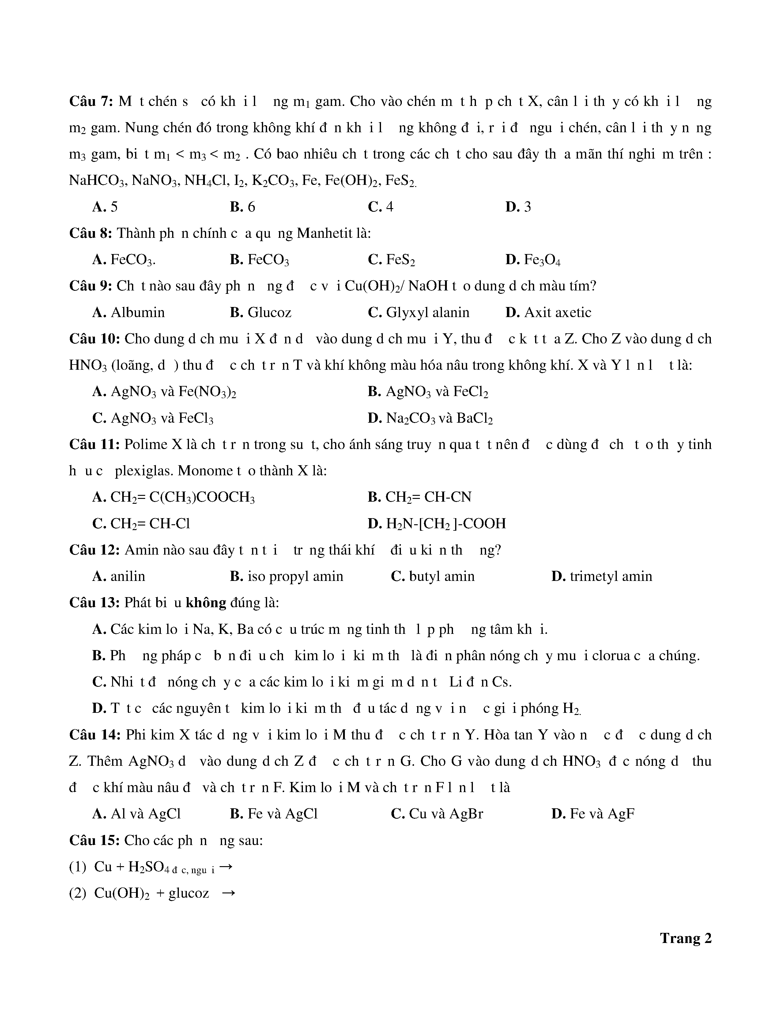 Đề thi thử THPTQG năm 2017 - Môn Hóa Học - THPT Chuyên KHTN - Hà Nội - Lần 1
