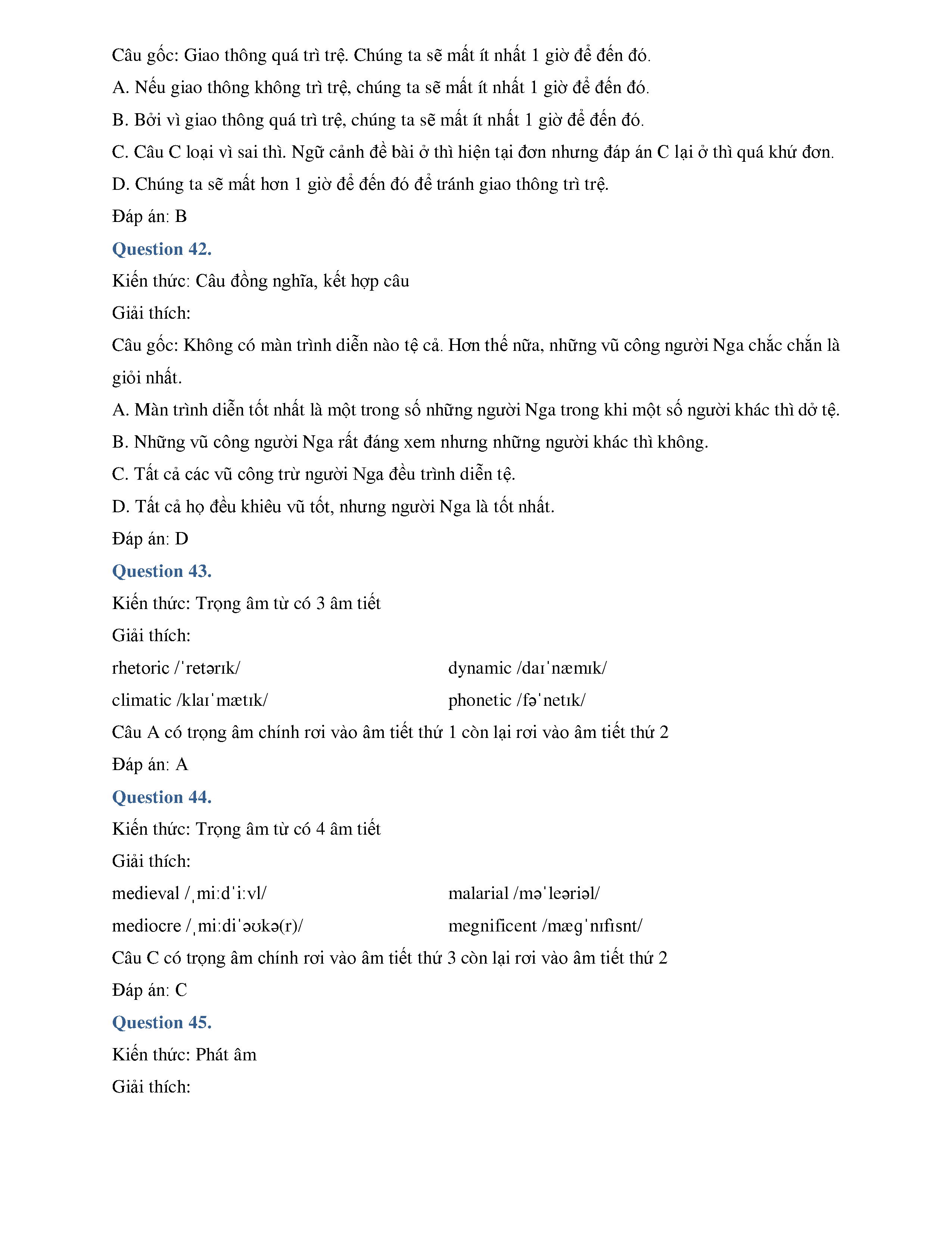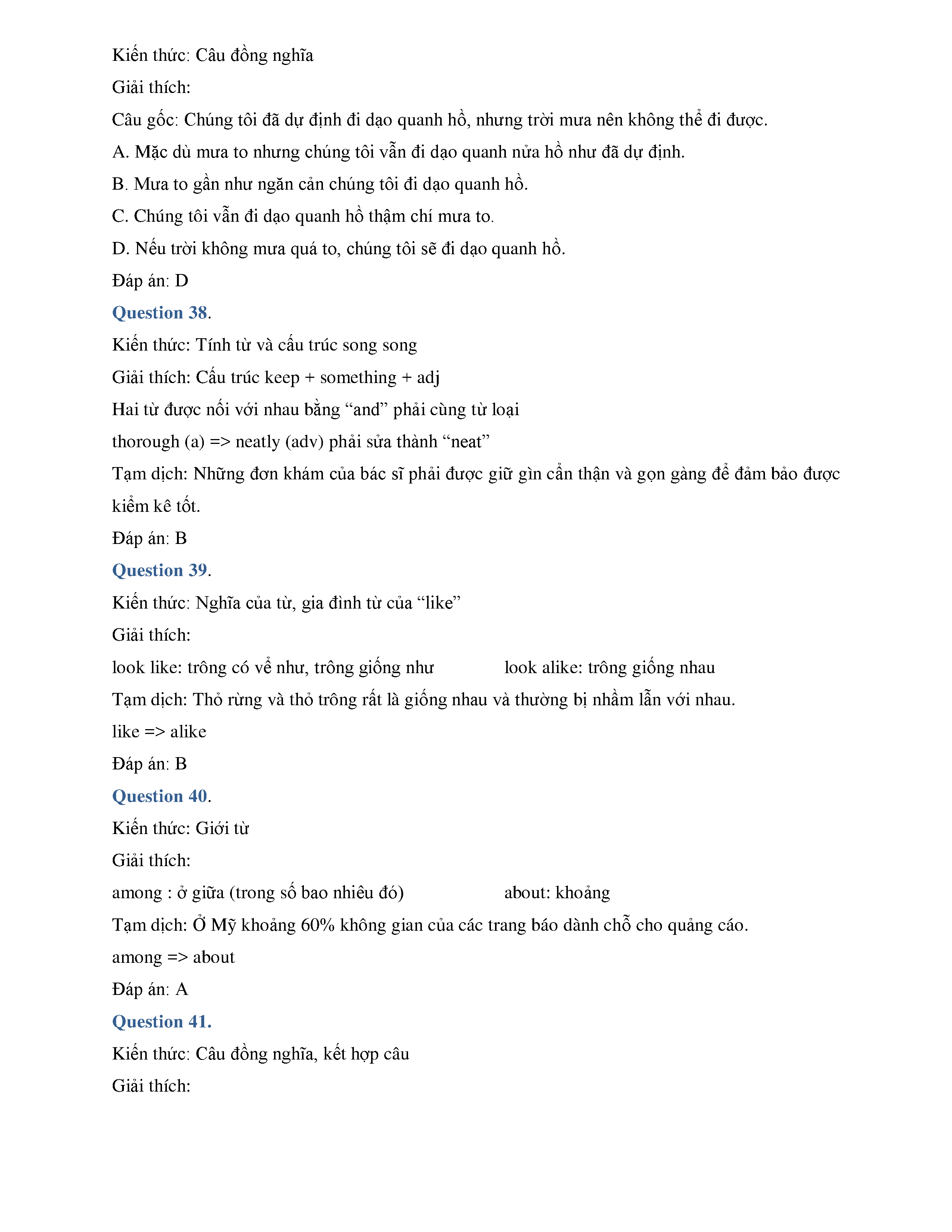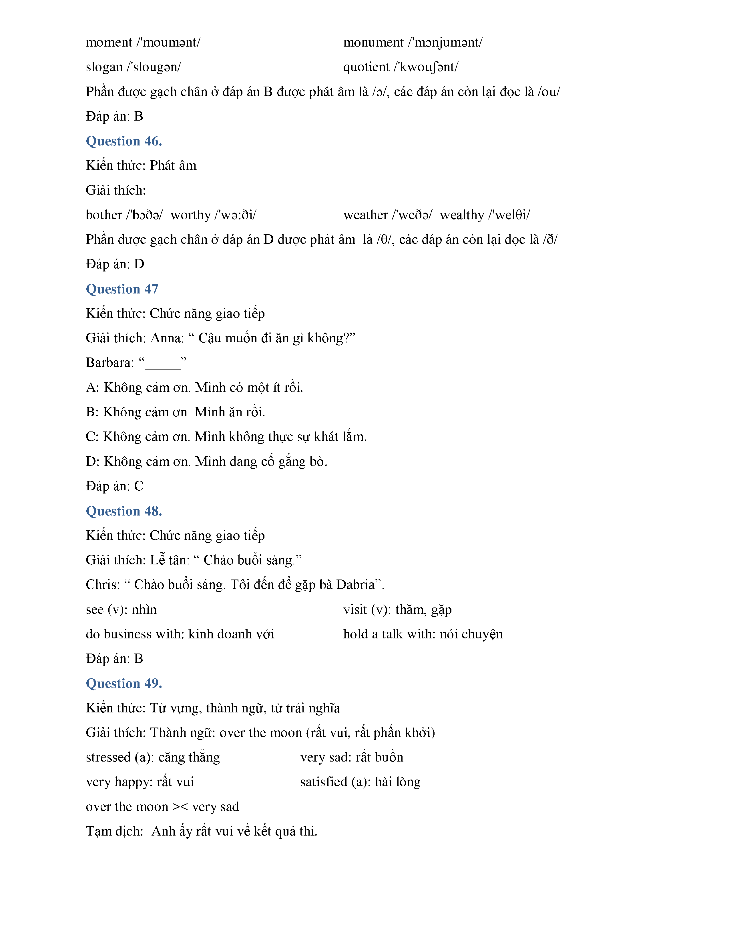 ĐÁP ÁN CHI TIẾT ĐỀ THI THỬ THPTQG - MÔN TIẾNG ANH - THPT CHUYÊN LAM SƠN - THANH HÓA - LẦN 1