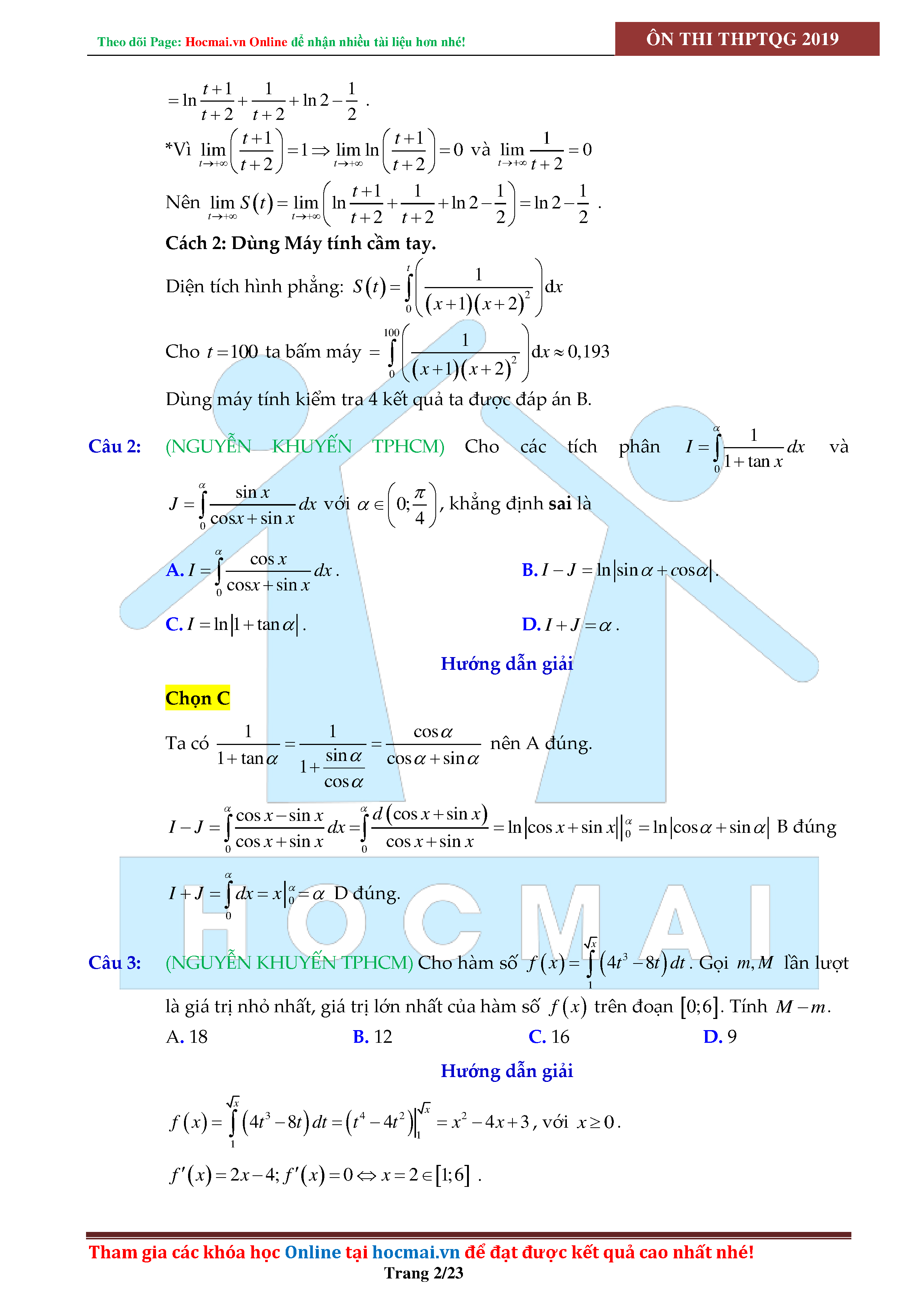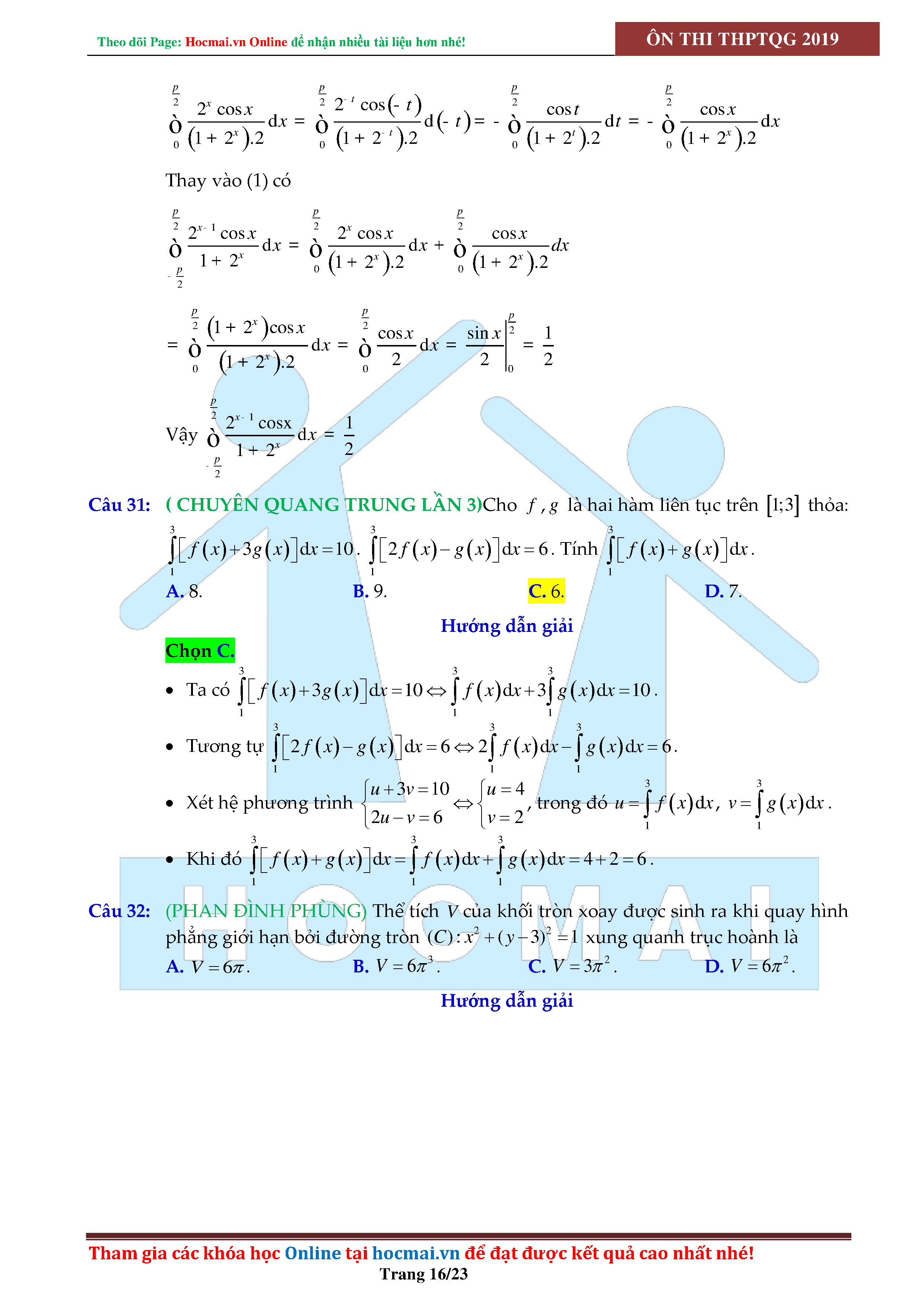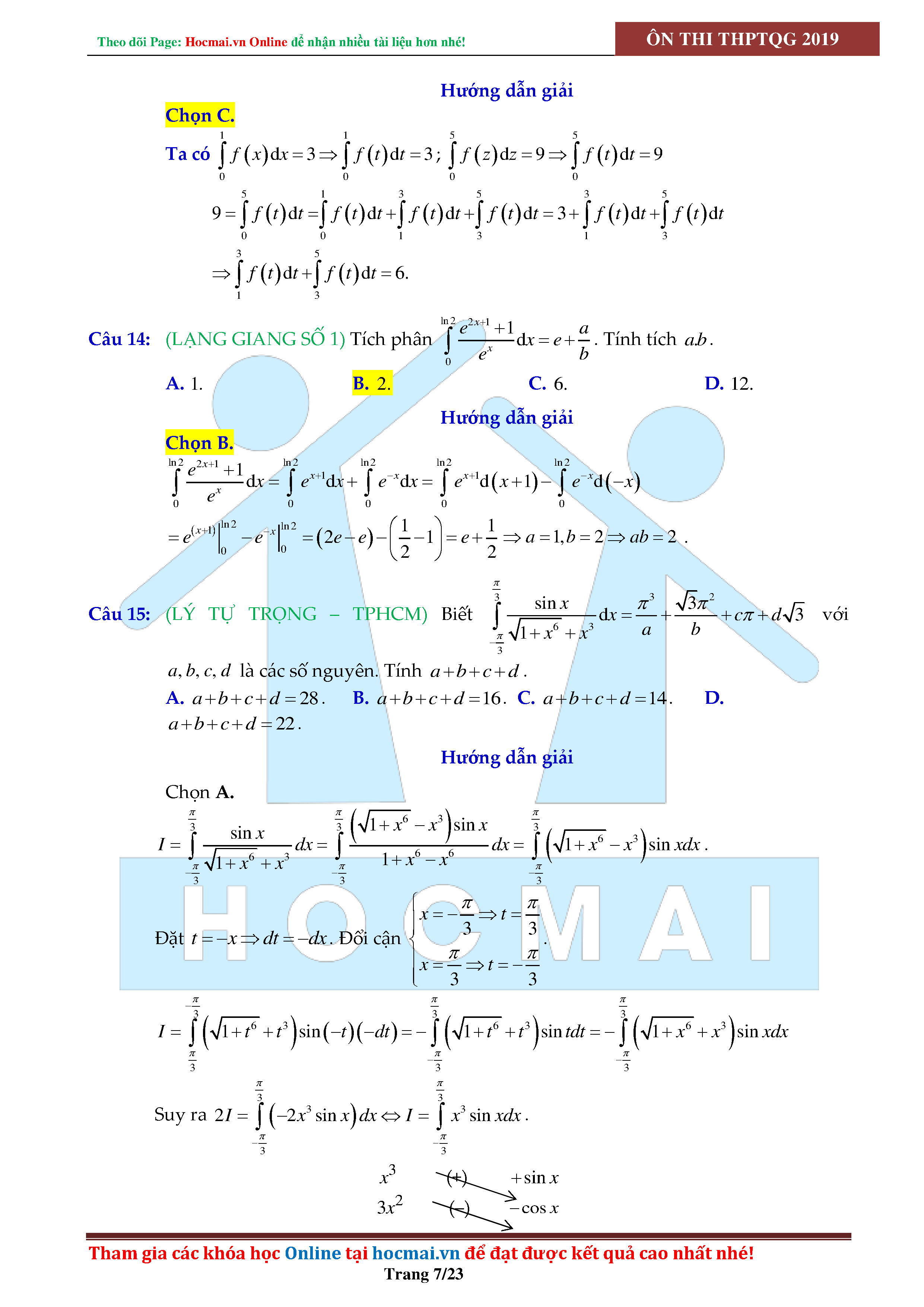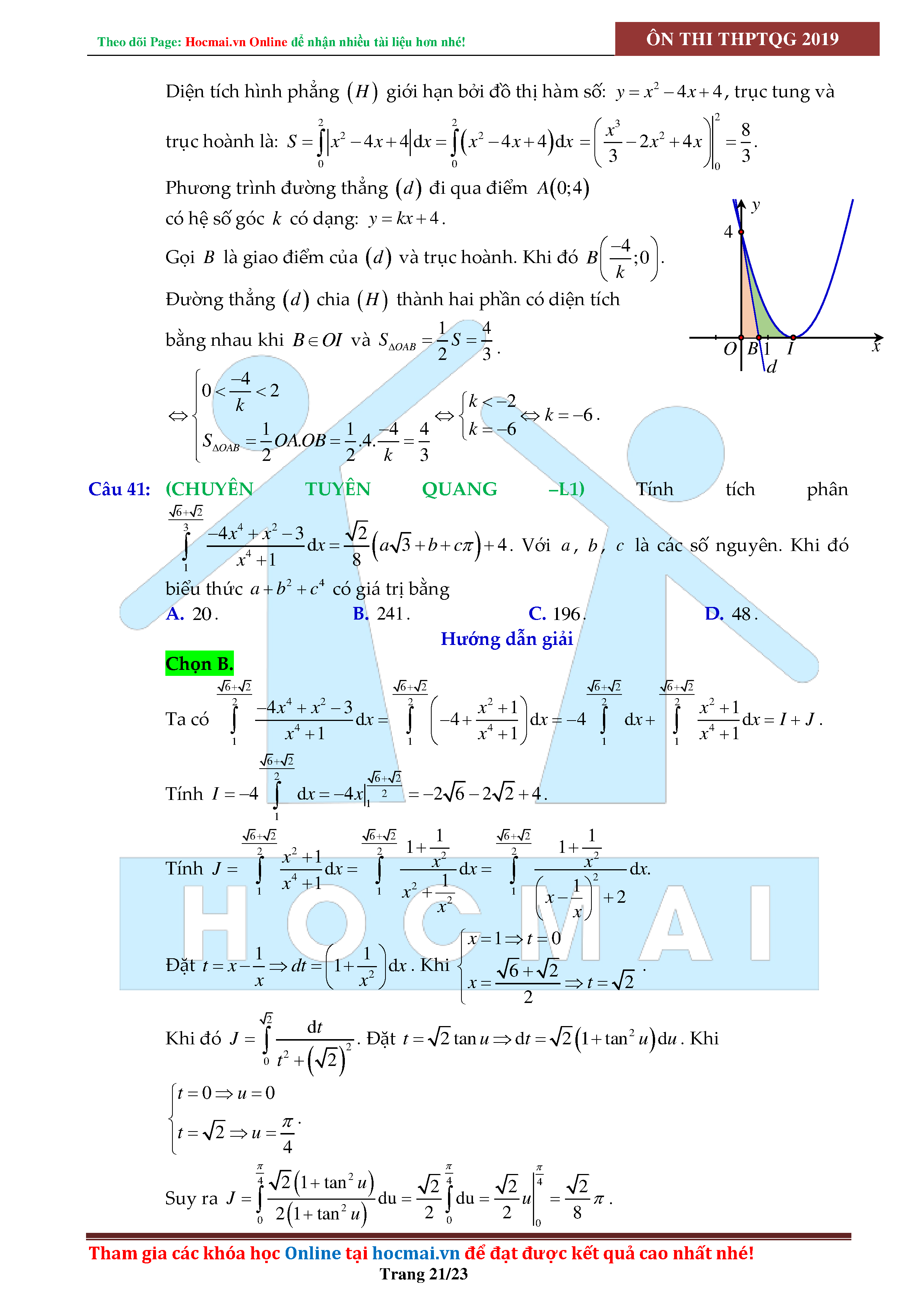 Bài toán vận dụng cao Nguyên Hàm - Tích Phân - Ứng dụng có hướng dẫn giải chi tiết