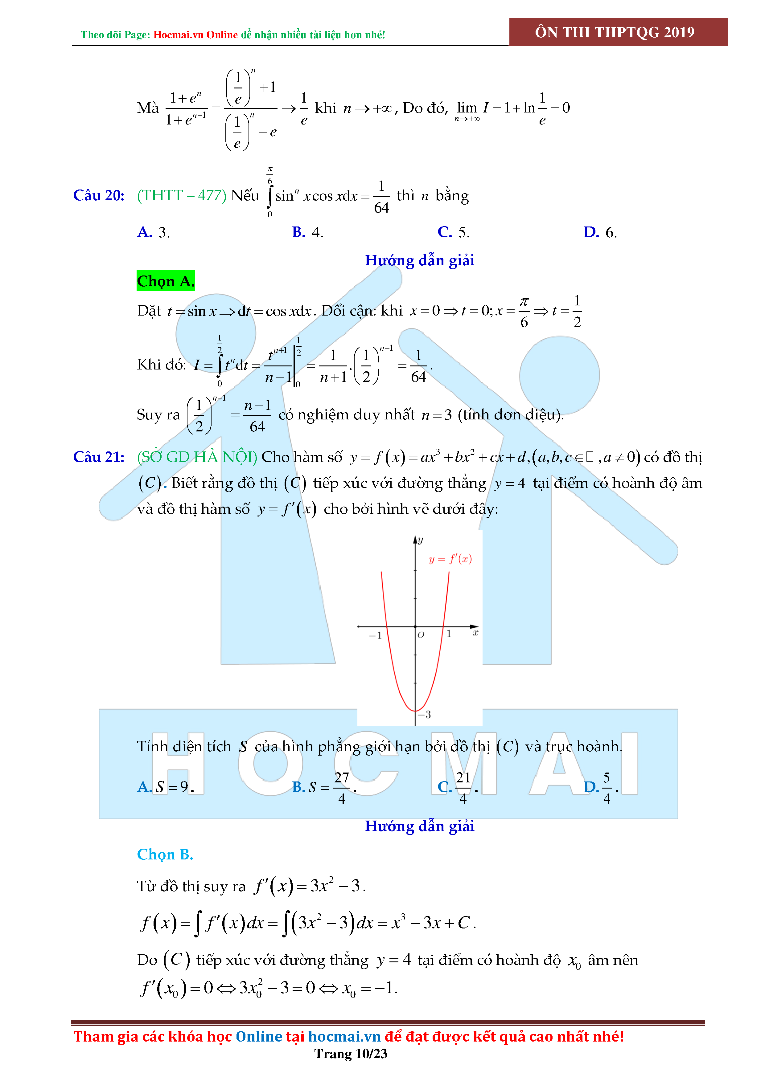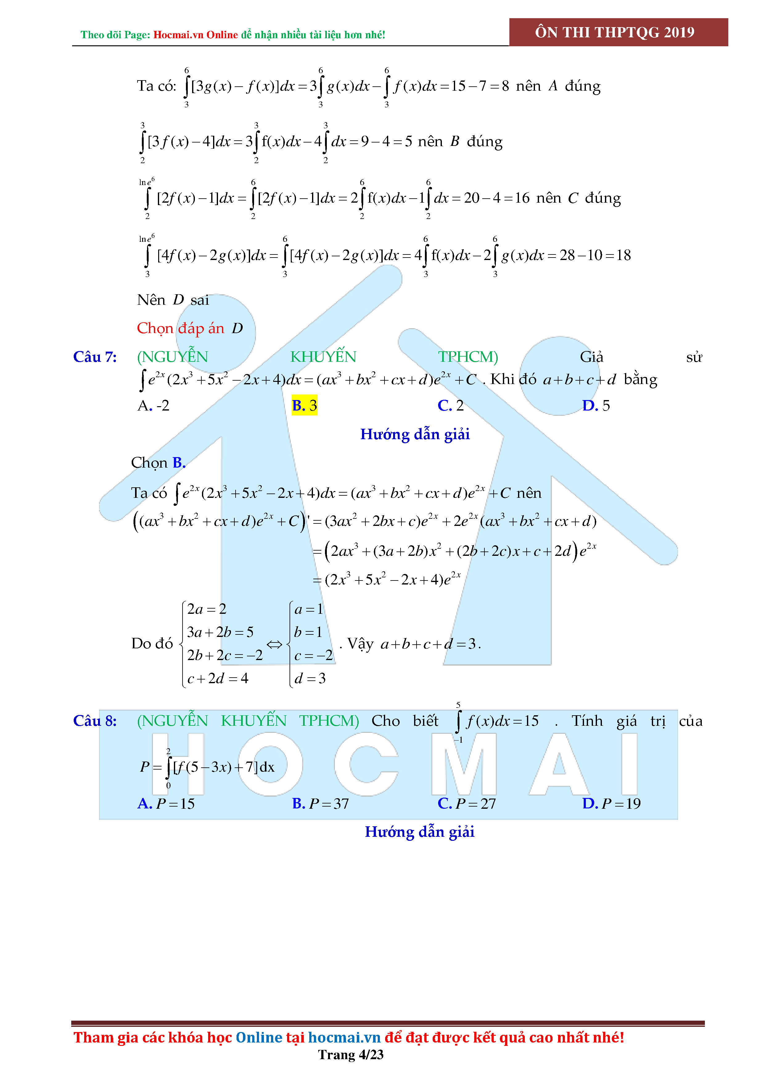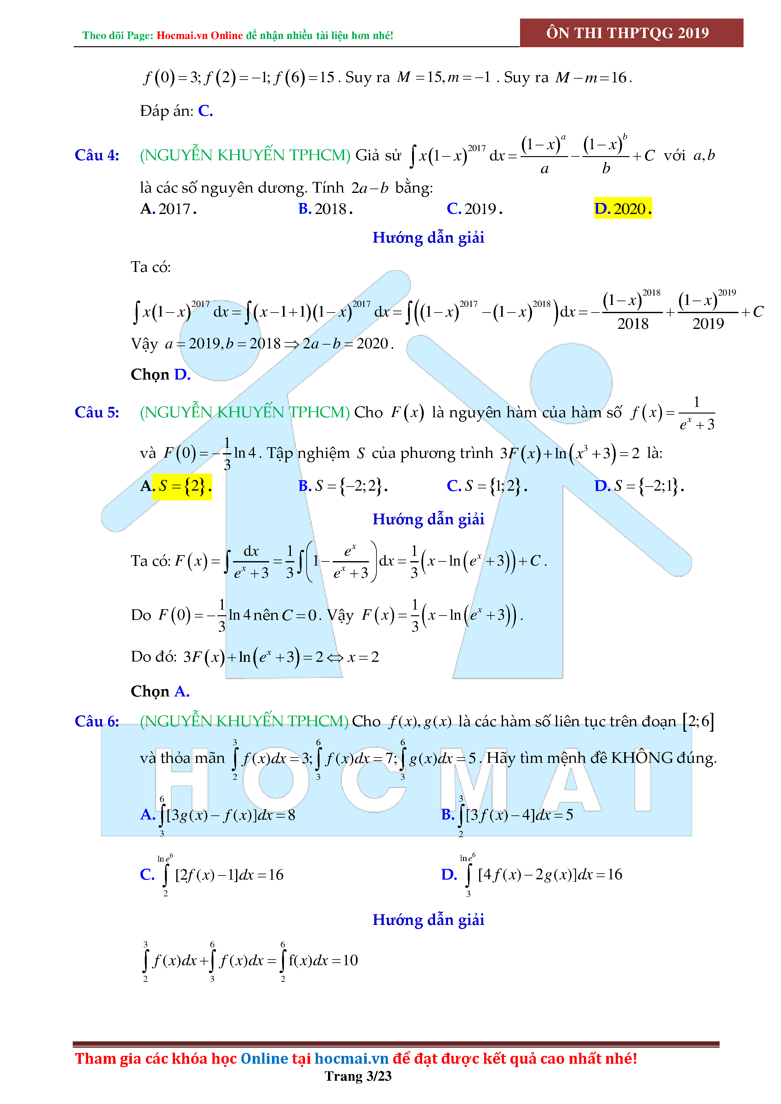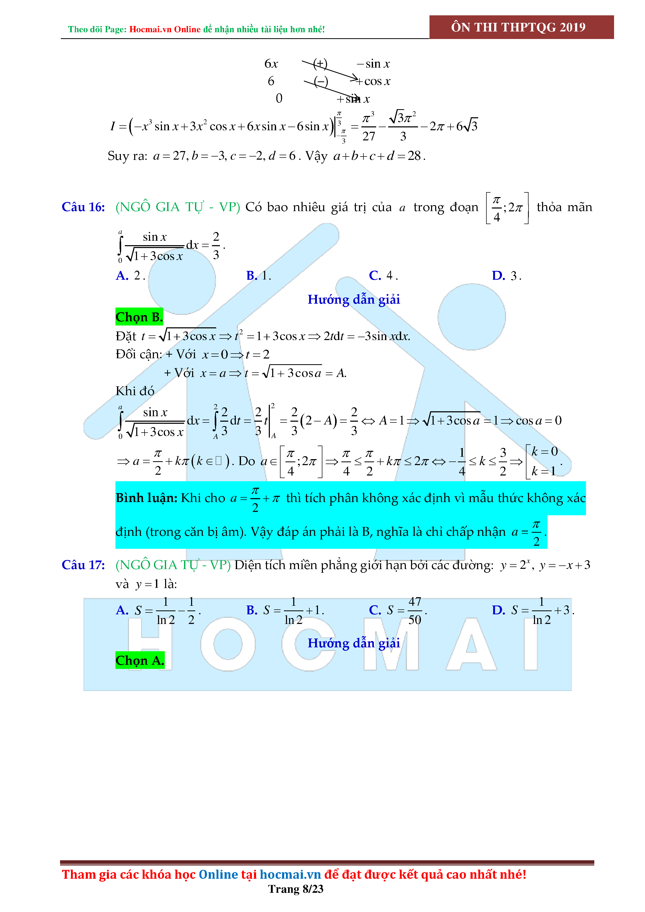 Bài toán vận dụng cao Nguyên Hàm - Tích Phân - Ứng dụng có hướng dẫn giải chi tiết