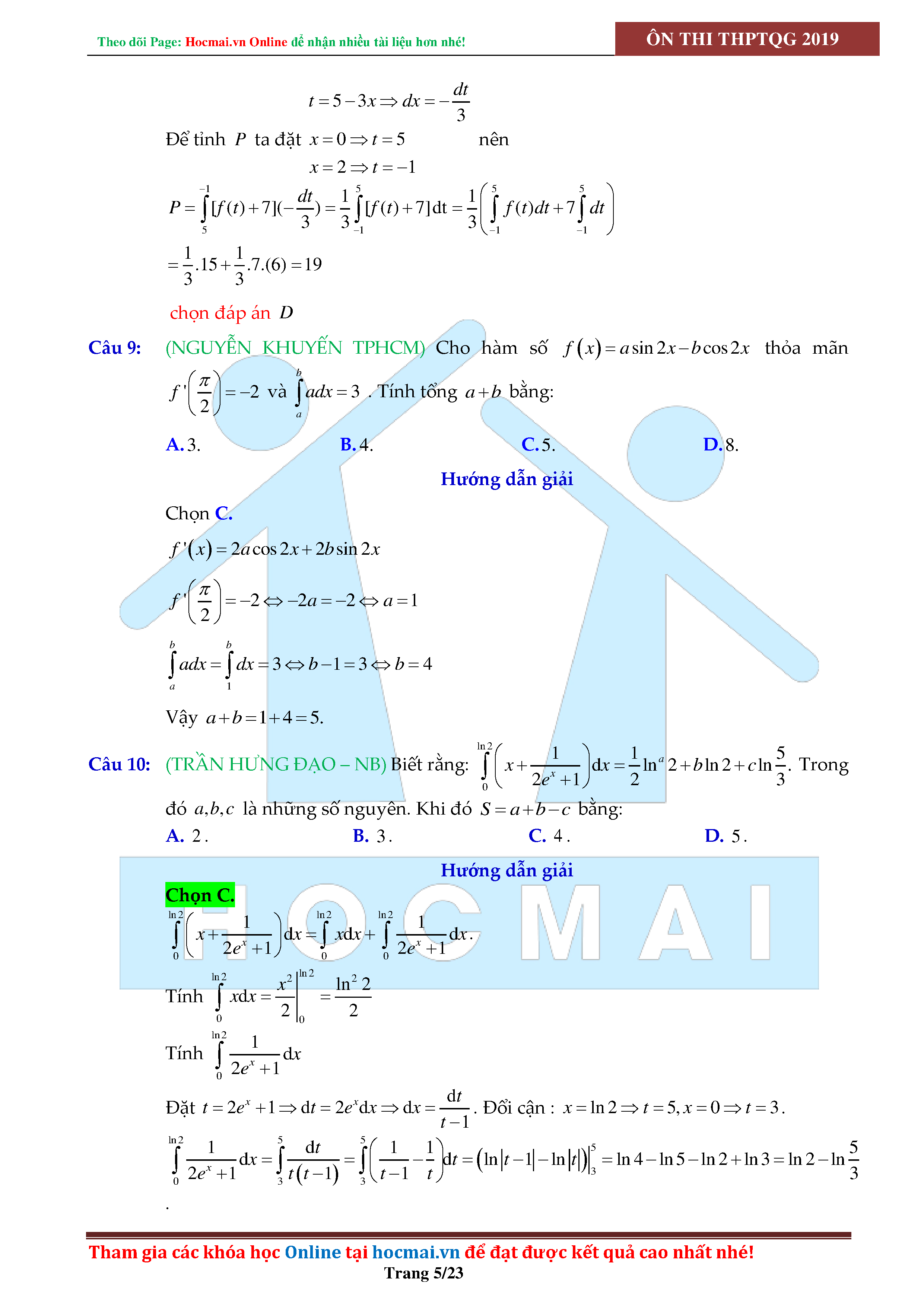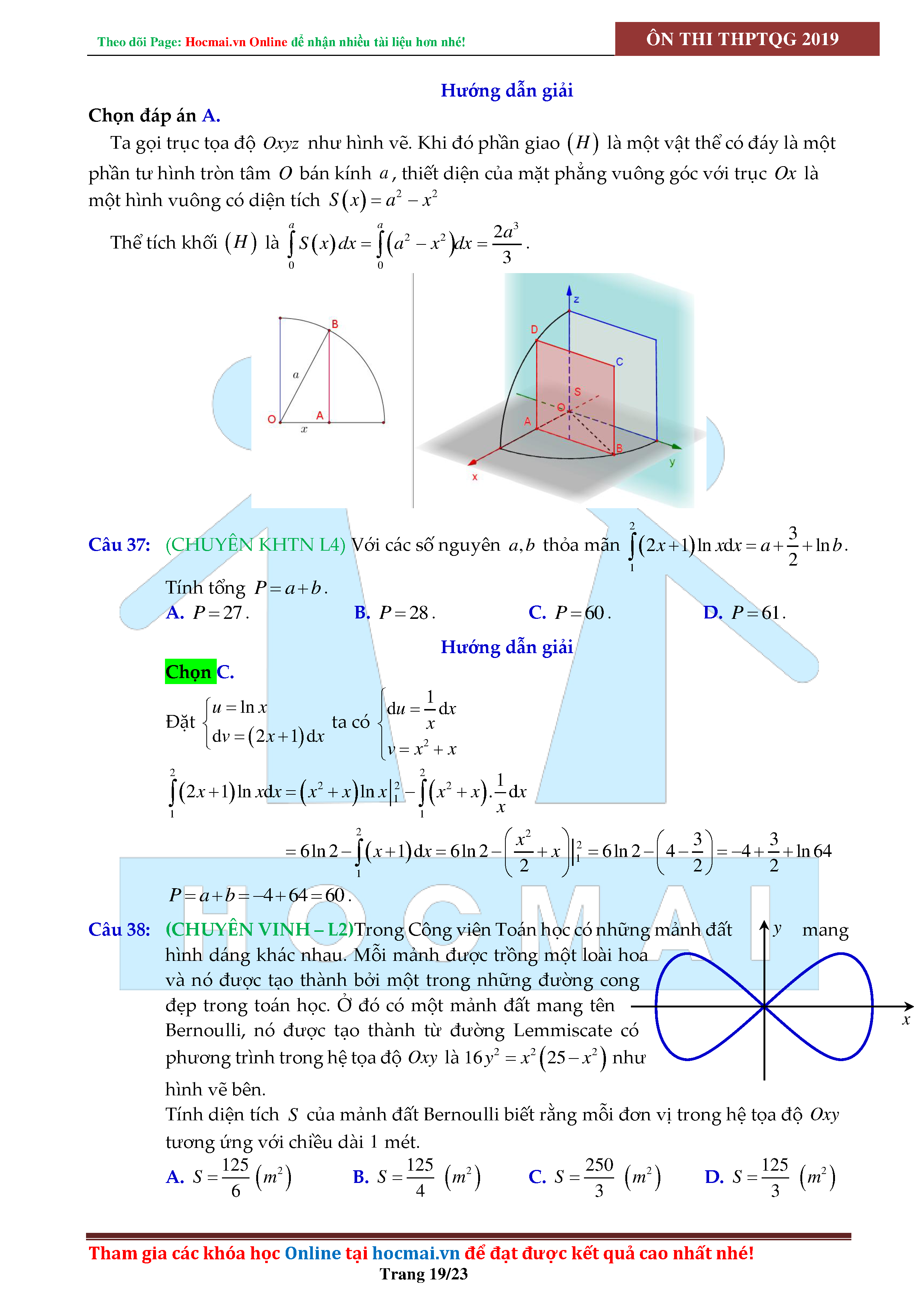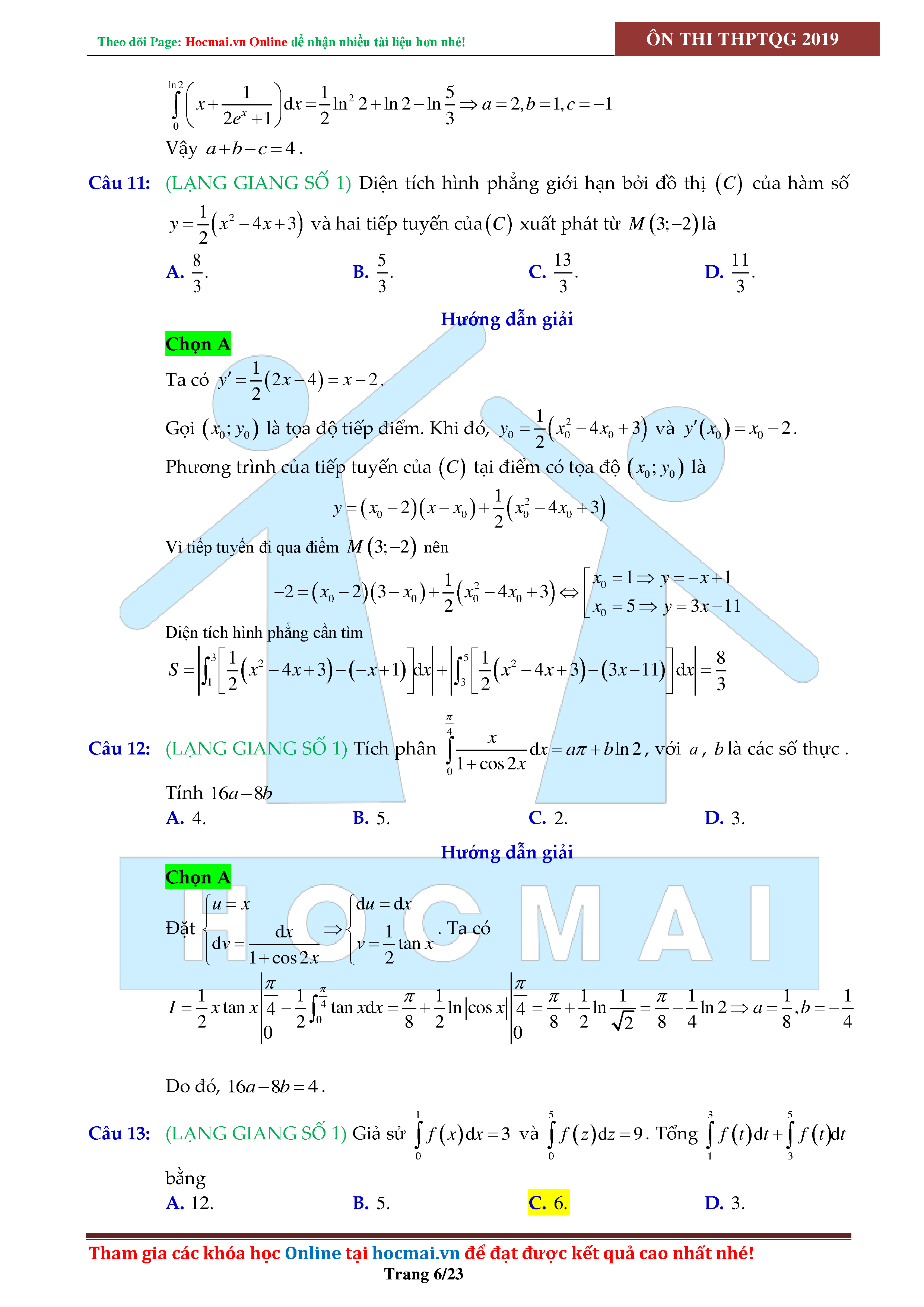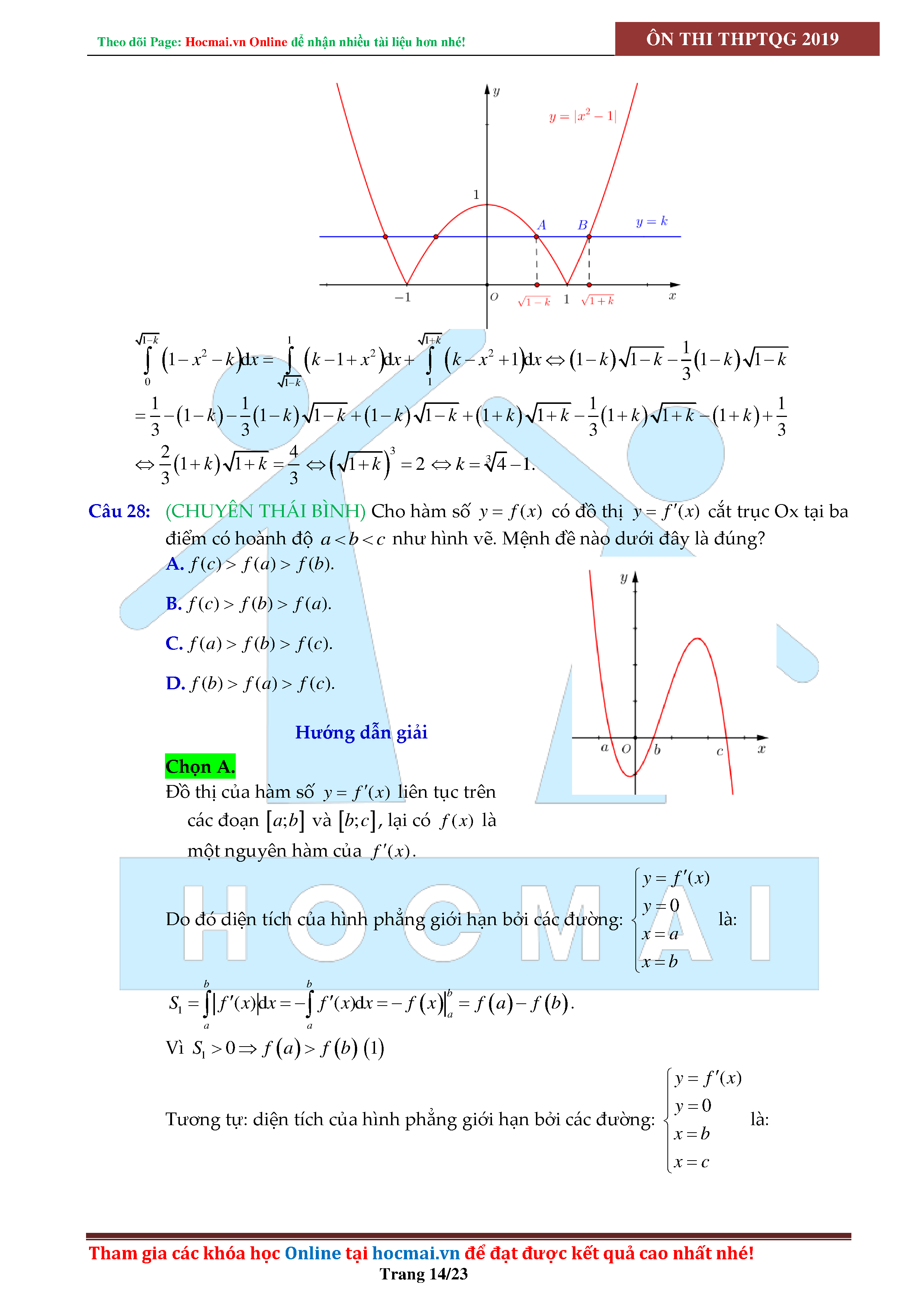 Bài toán vận dụng cao Nguyên Hàm - Tích Phân - Ứng dụng có hướng dẫn giải chi tiết