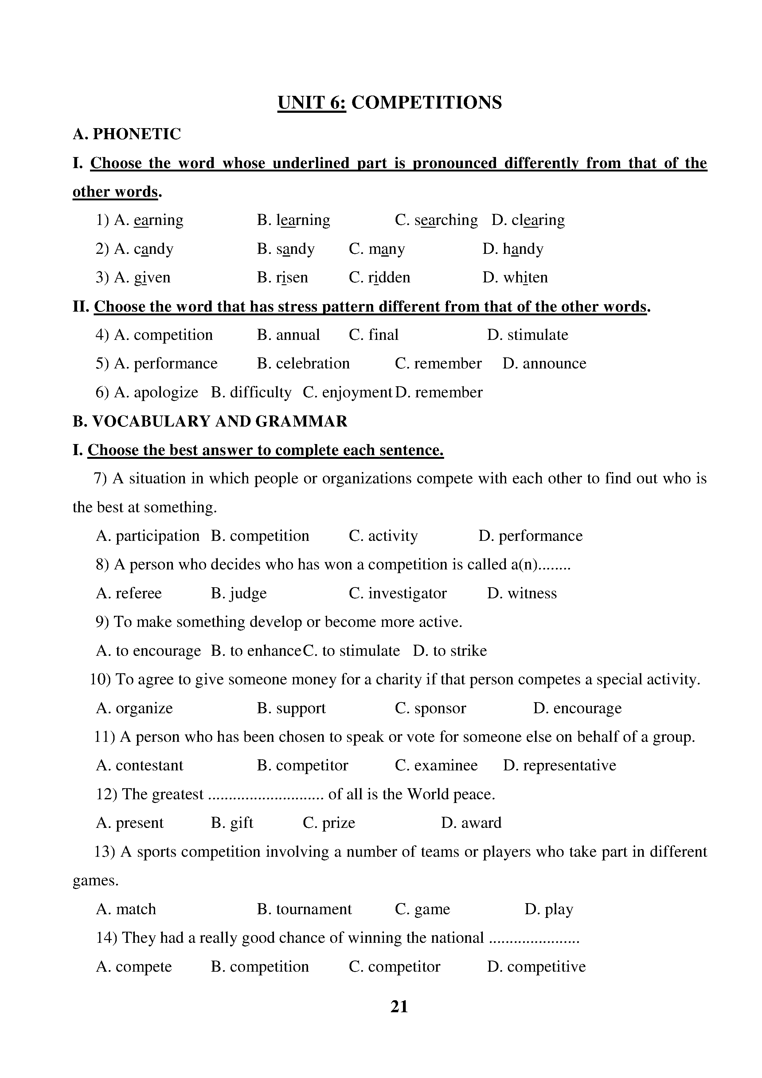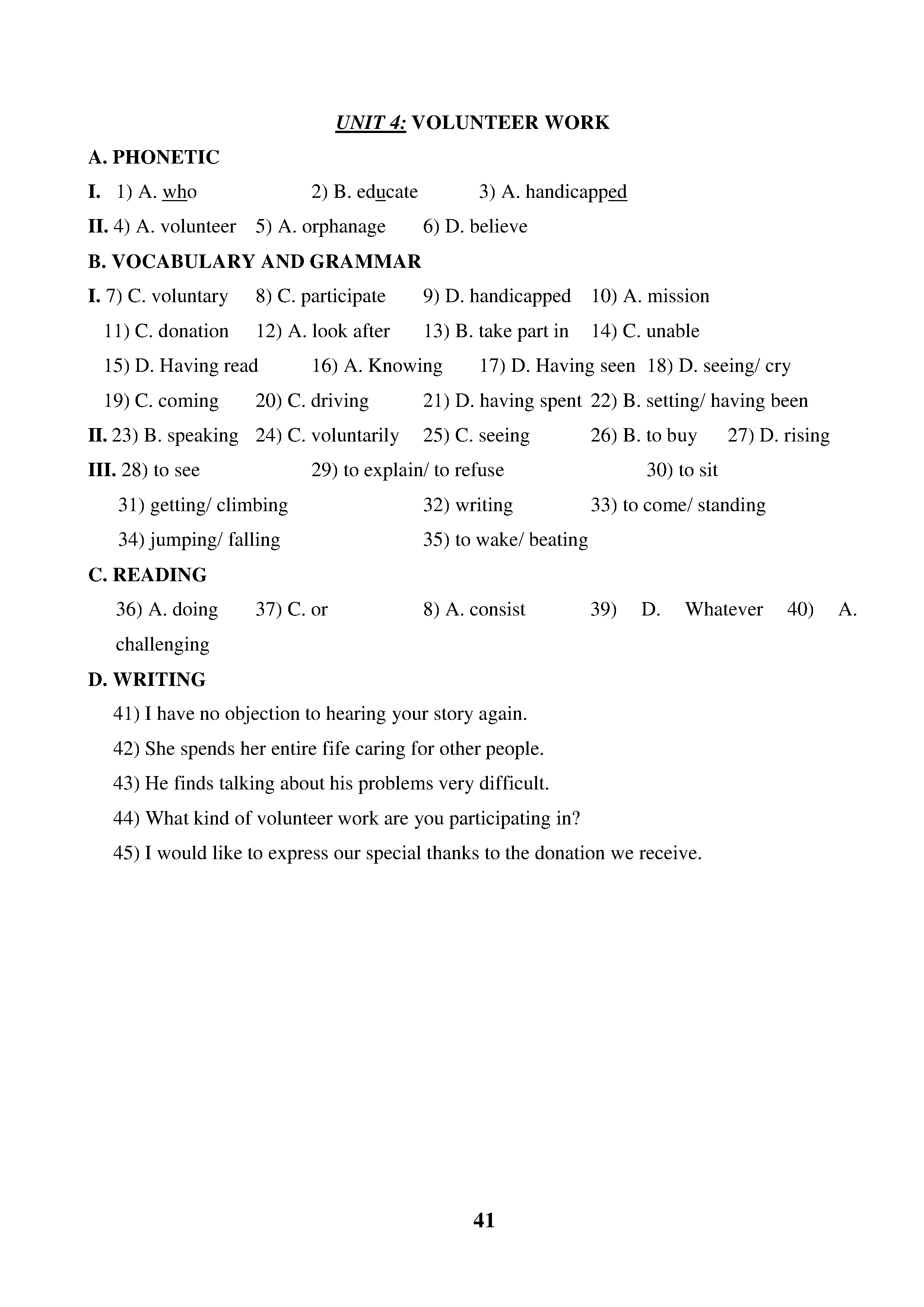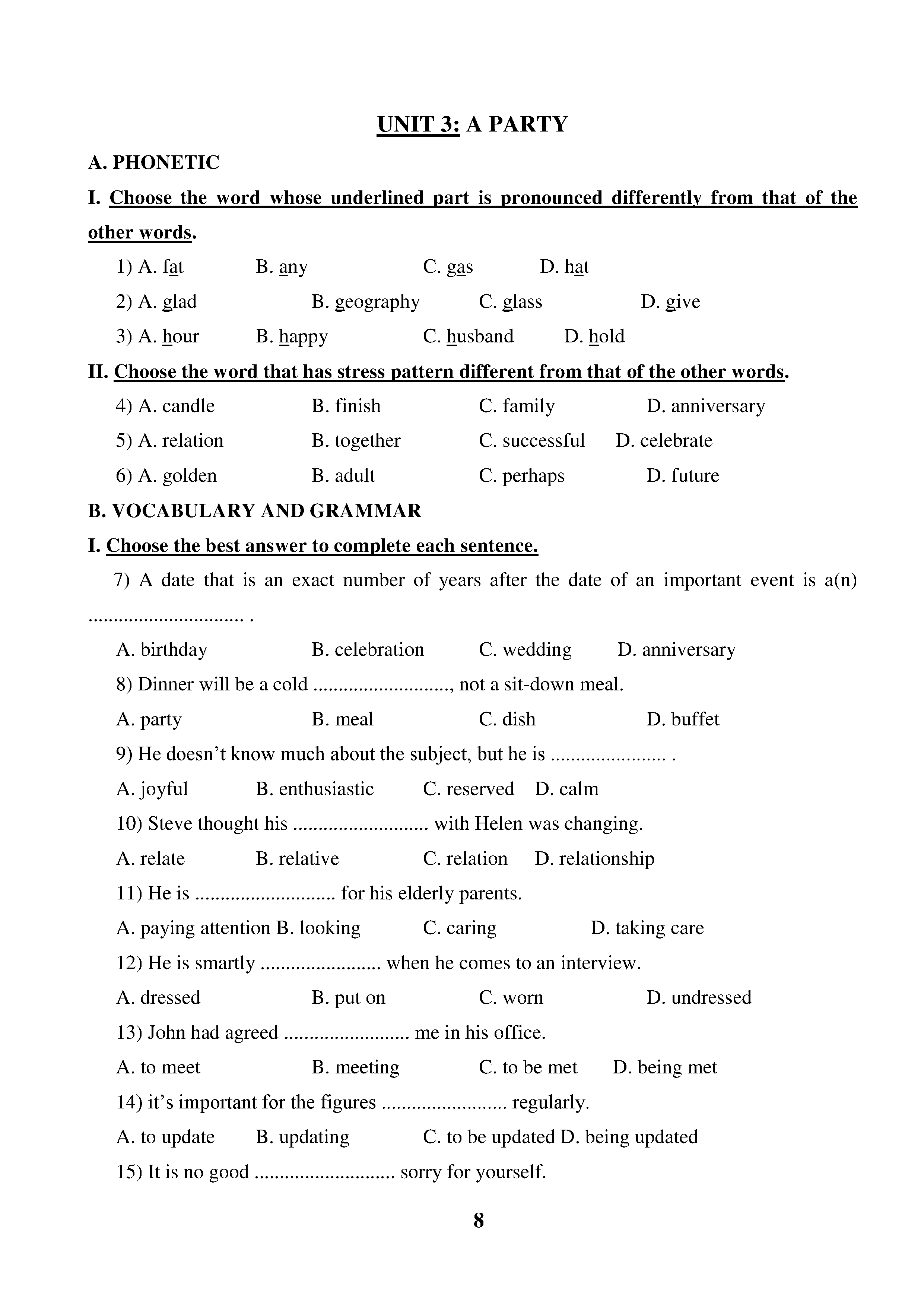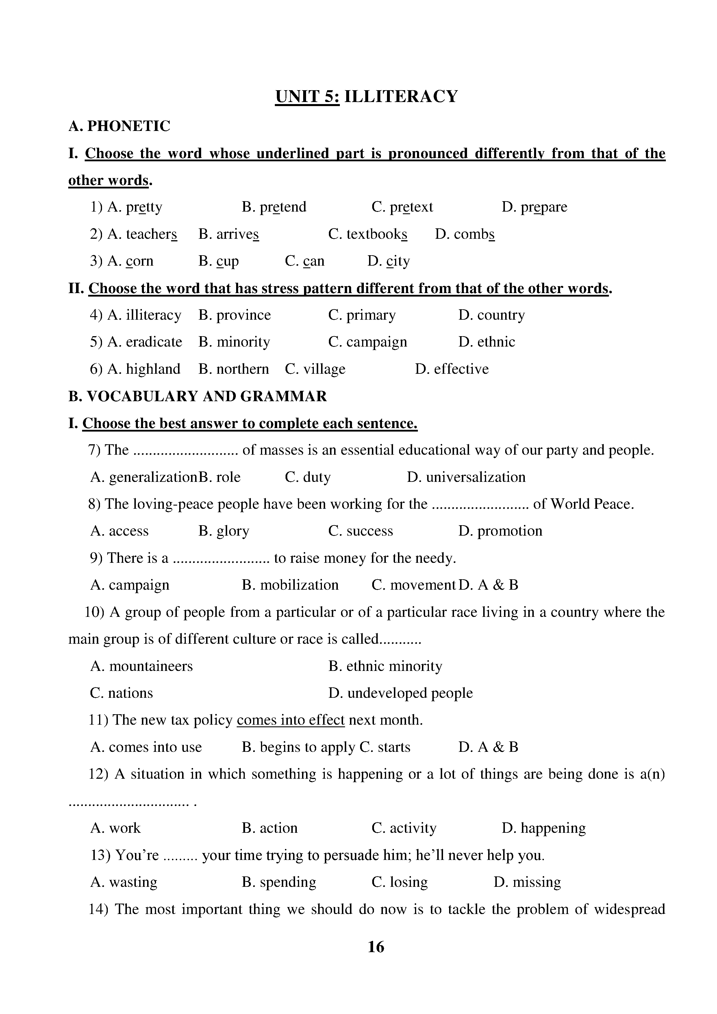 Bài tập trắc nghiệm Tiếng Anh 11 theo từng Unit (học kì 1)