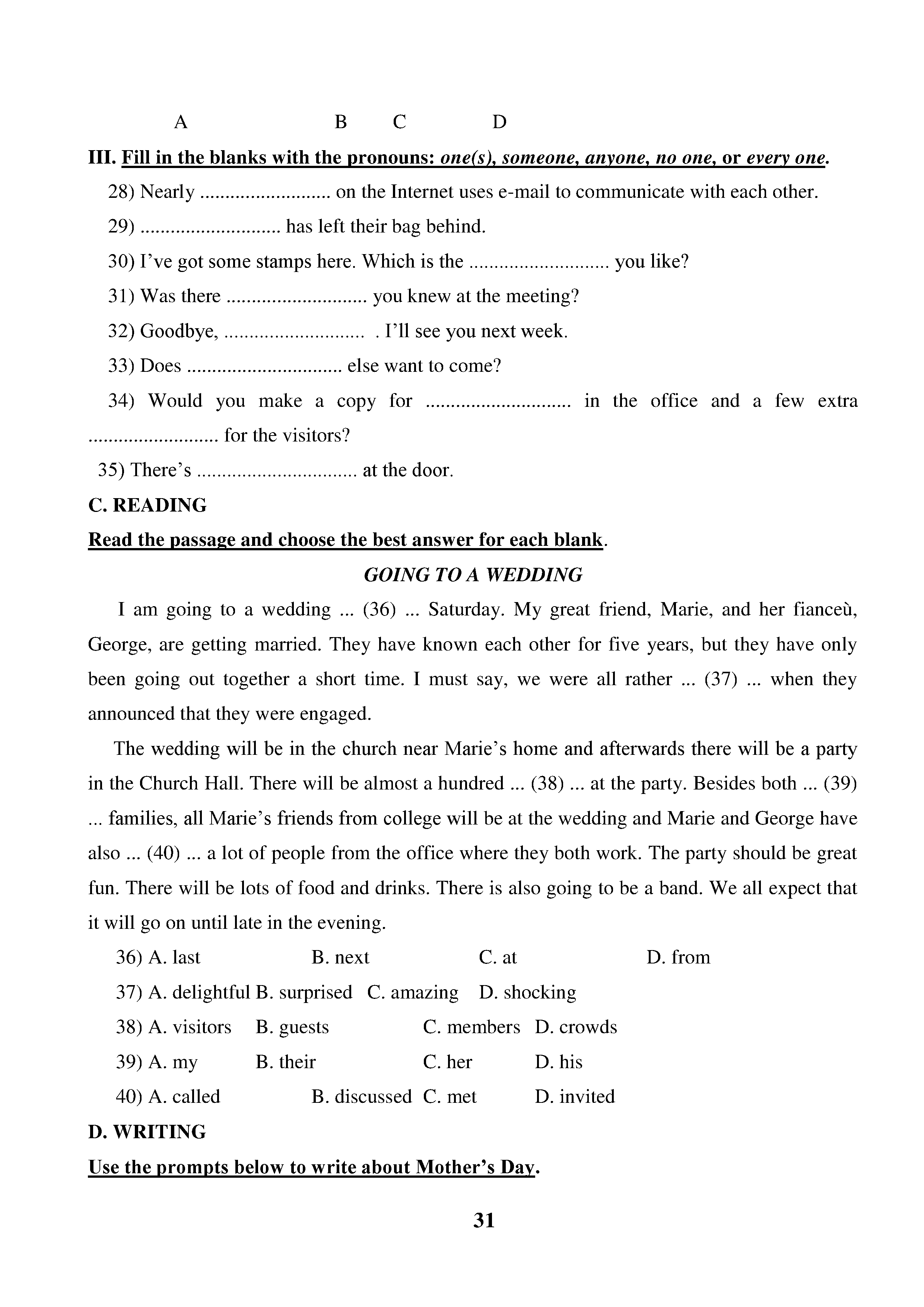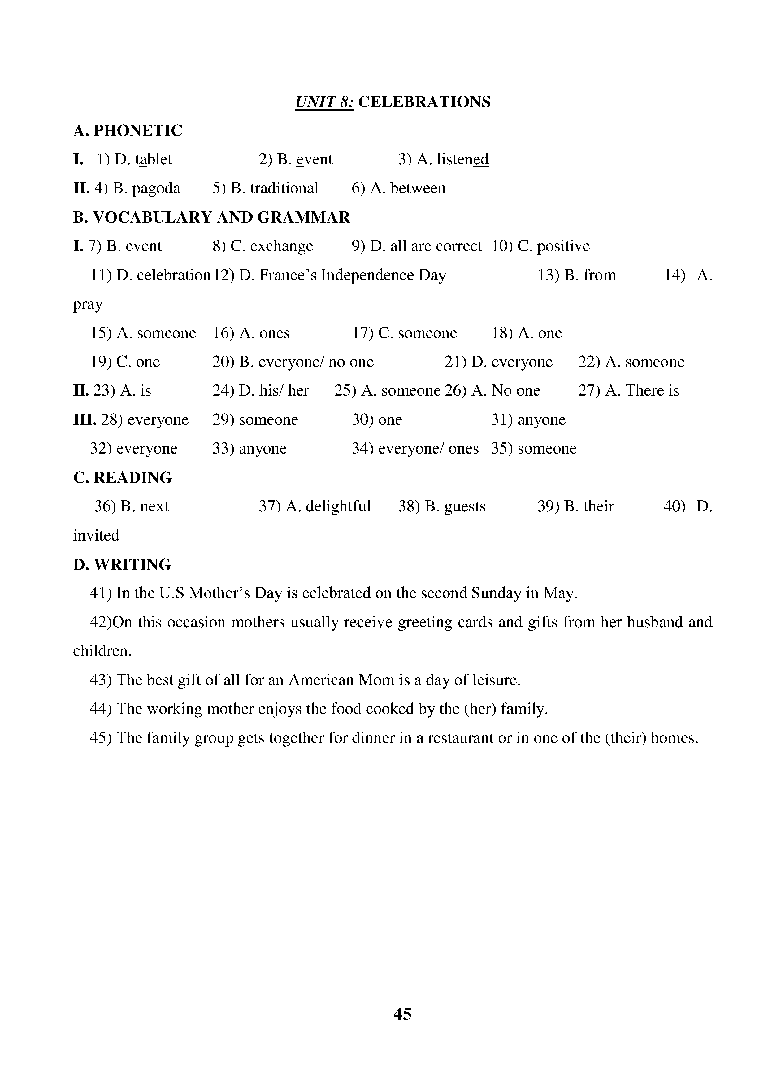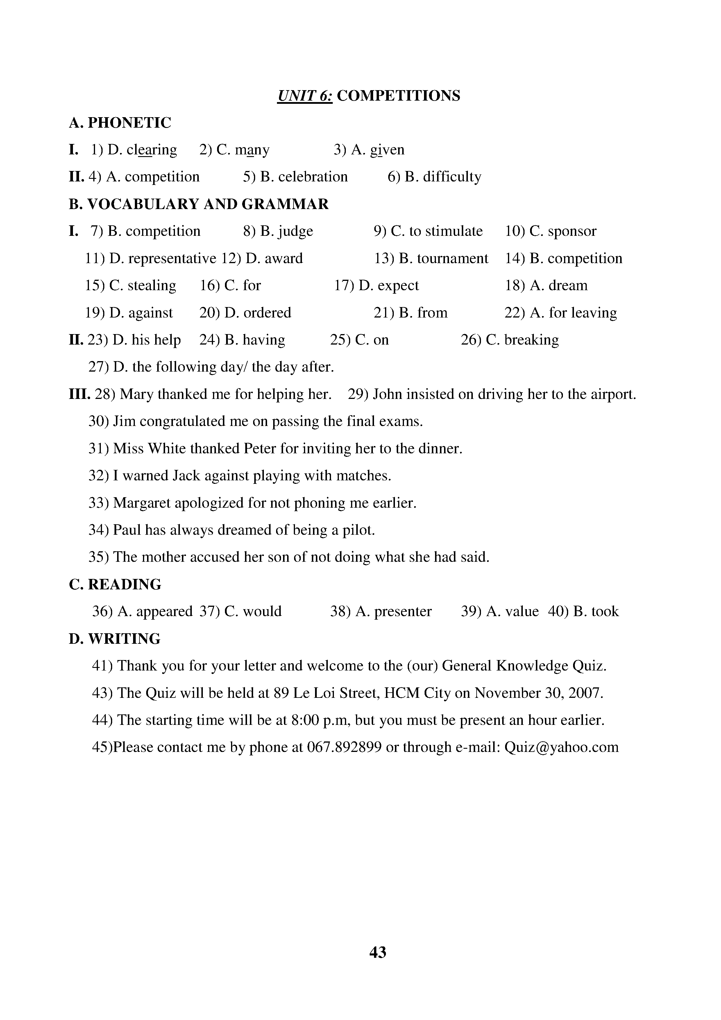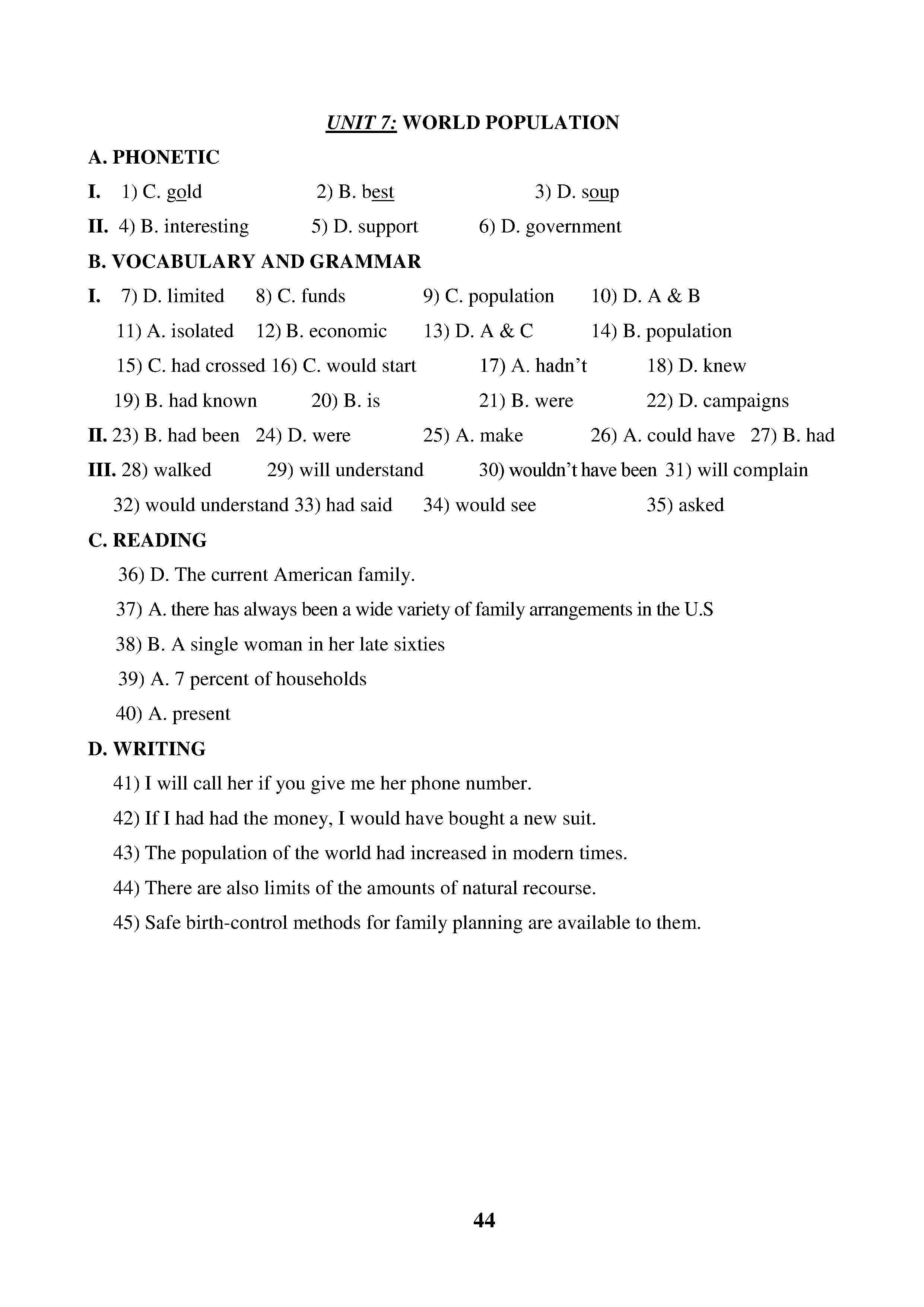 Bài tập trắc nghiệm Tiếng Anh 11 theo từng Unit (học kì 1)