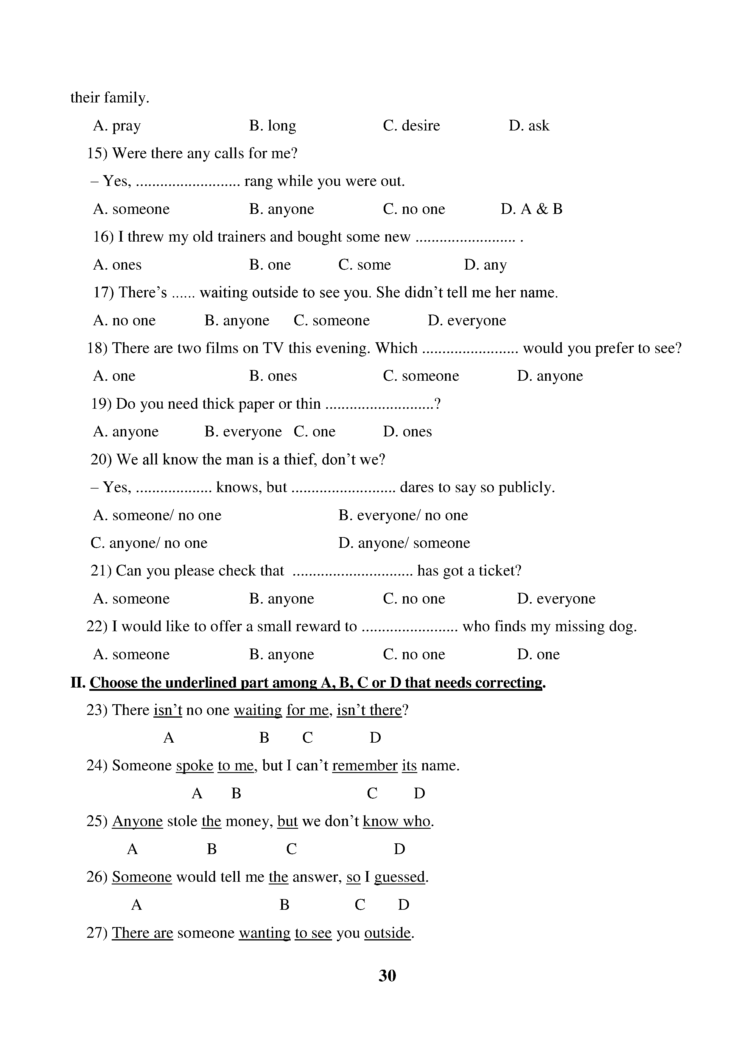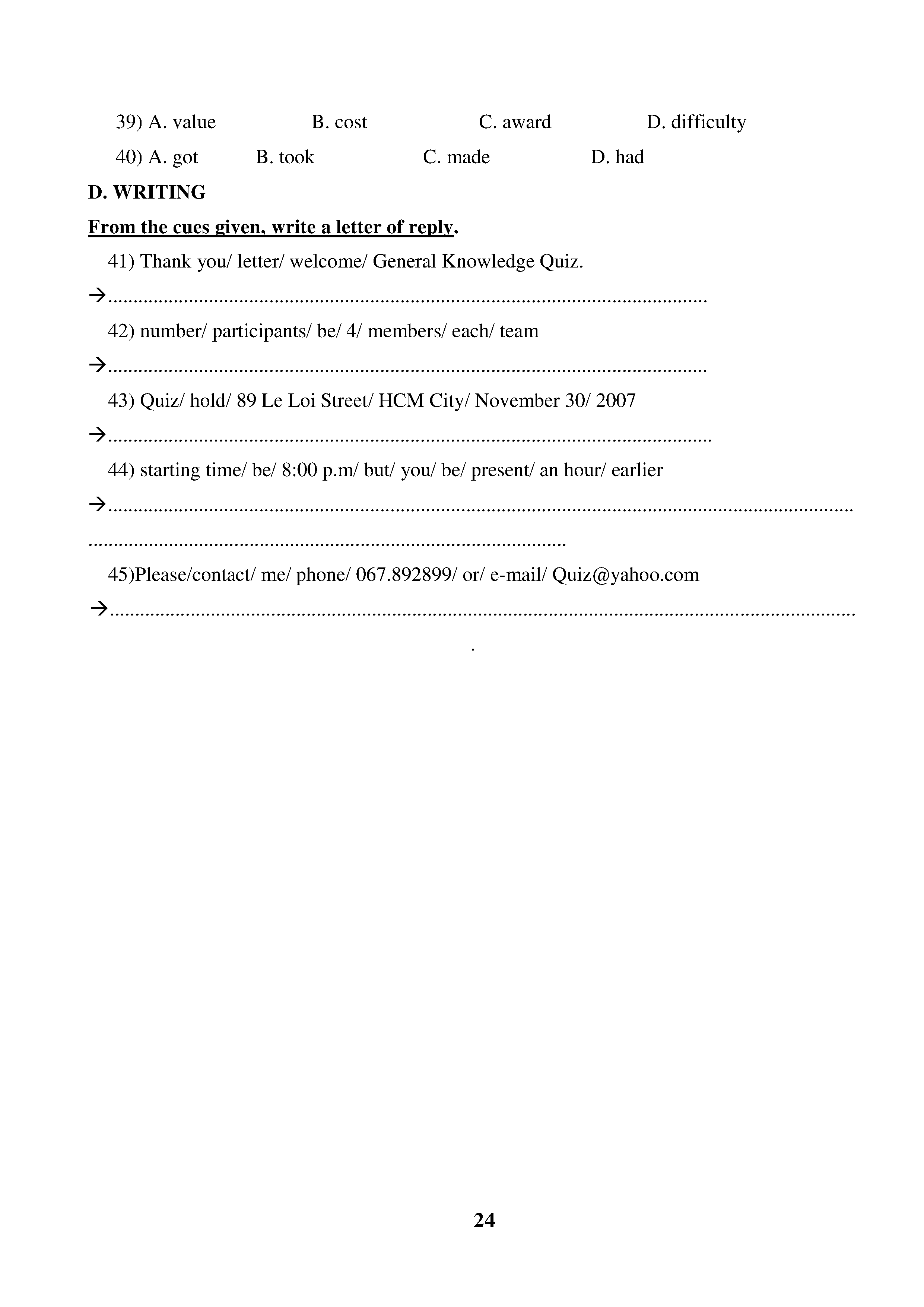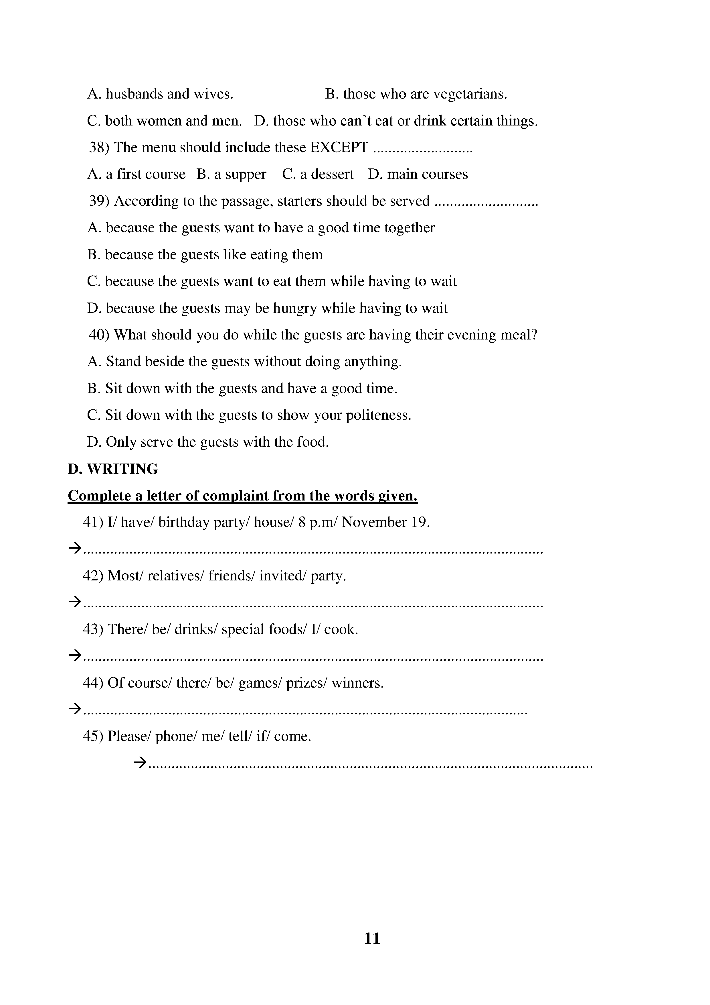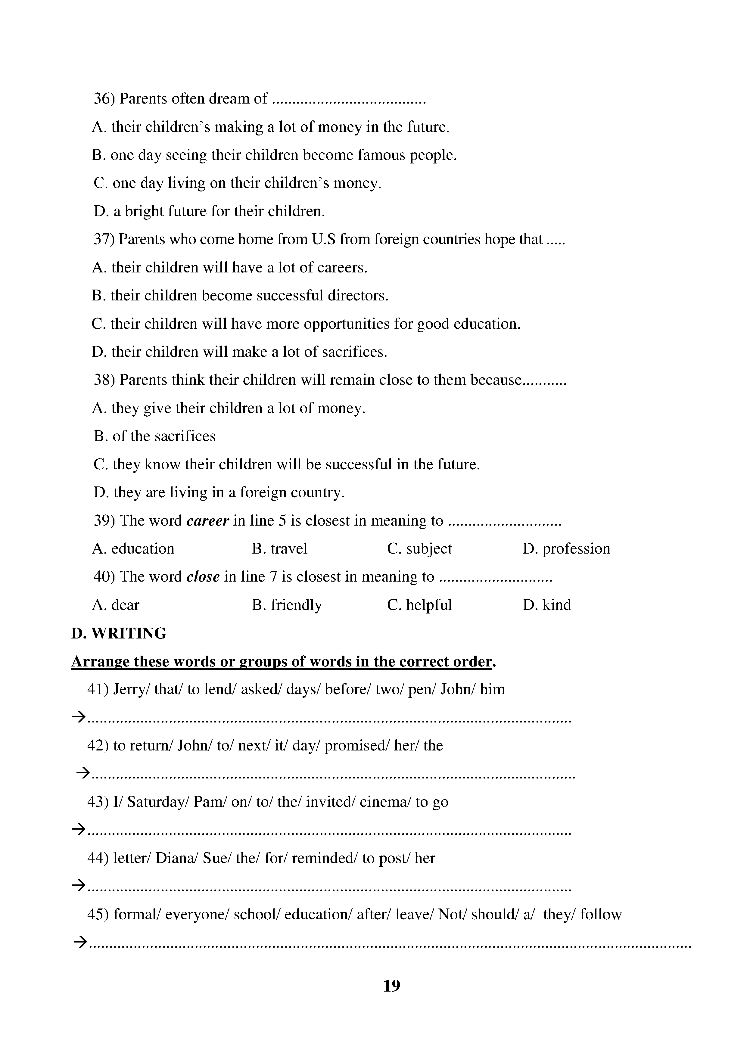 Bài tập trắc nghiệm Tiếng Anh 11 theo từng Unit (học kì 1)