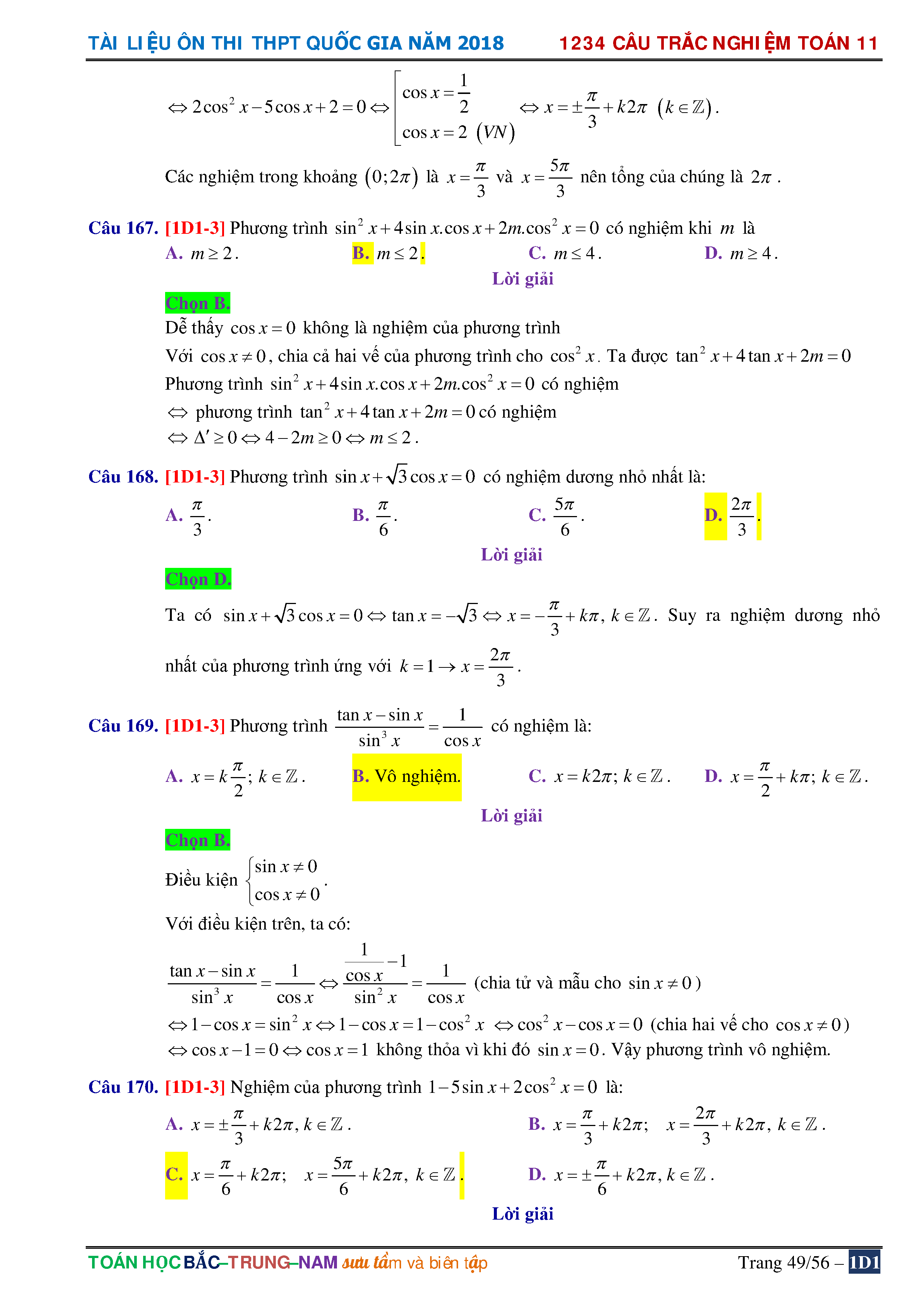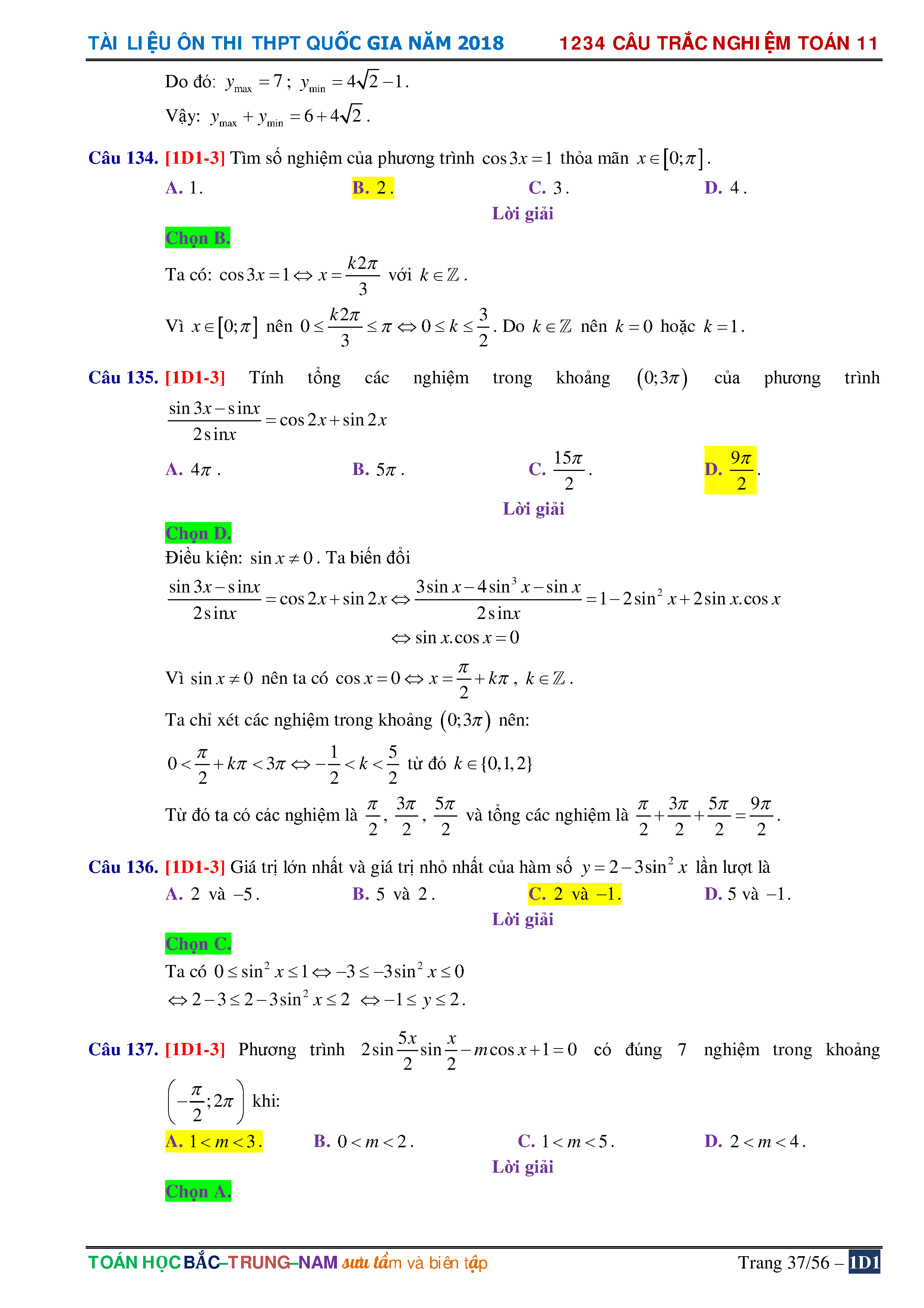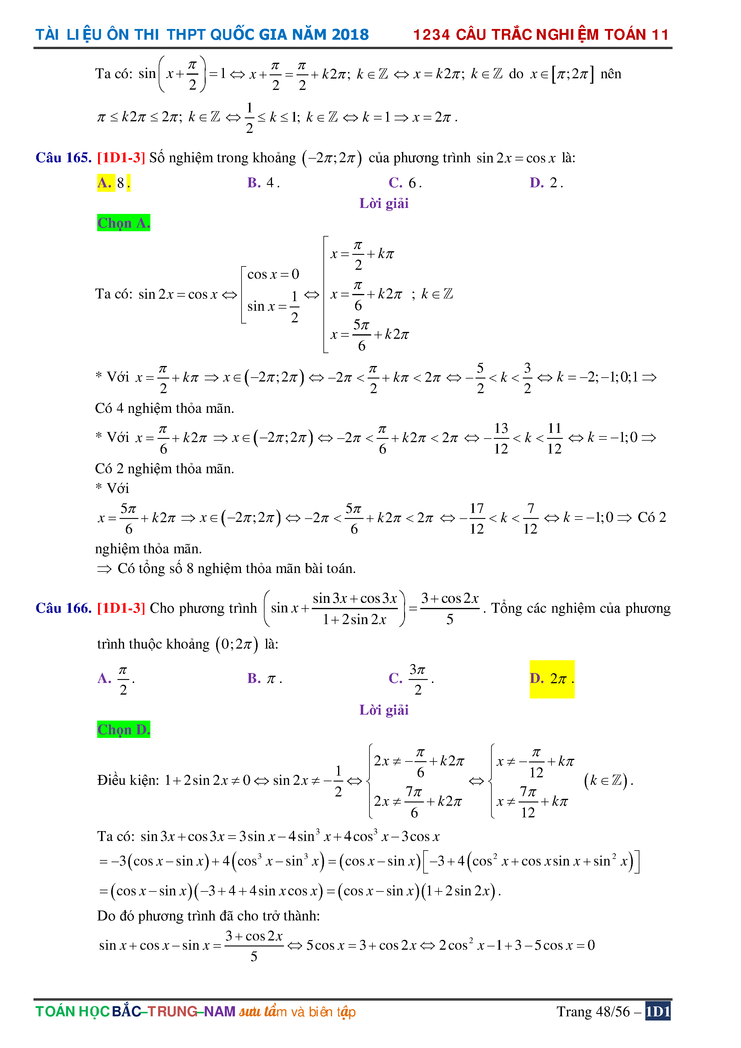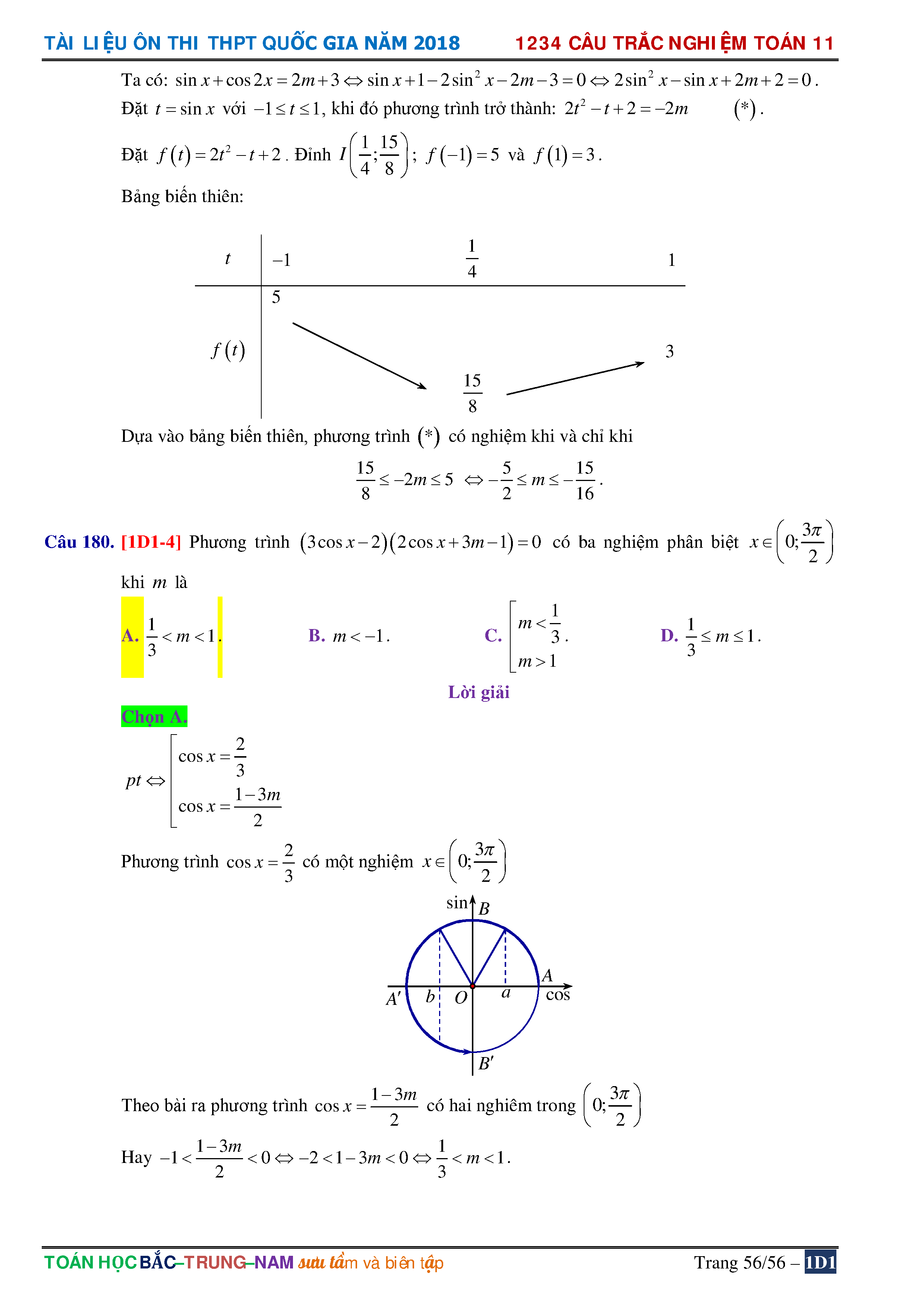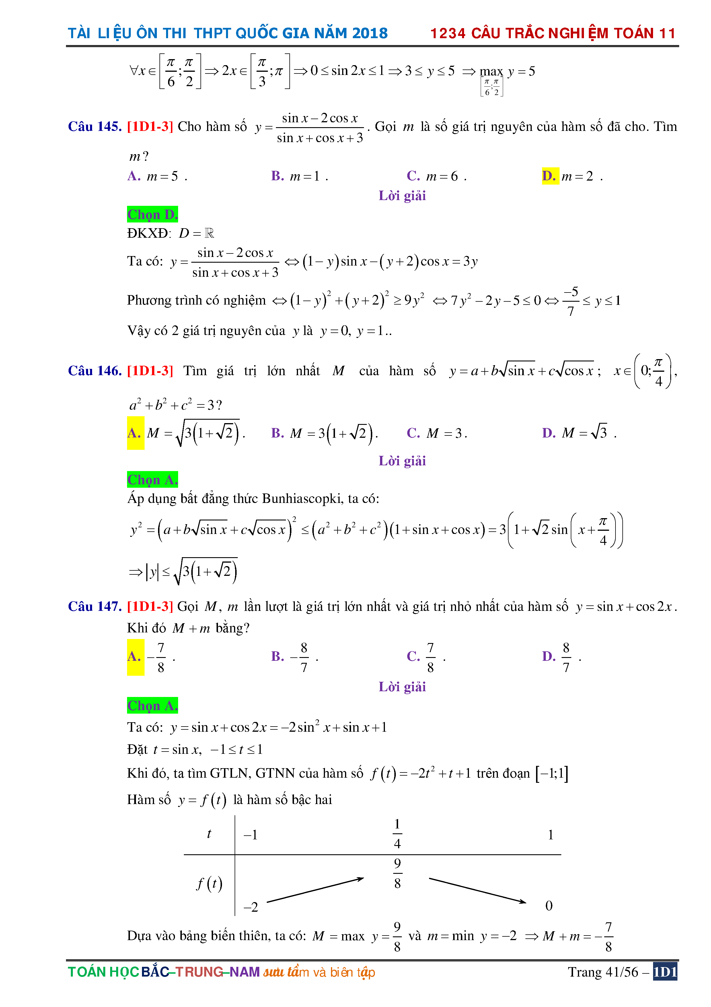 TRẮC NGHIỆM HÀM SỐ LƯỢNG GIÁC PHƯƠNG TRÌNH LƯỢNG GIÁC TOÁN LỚP 11