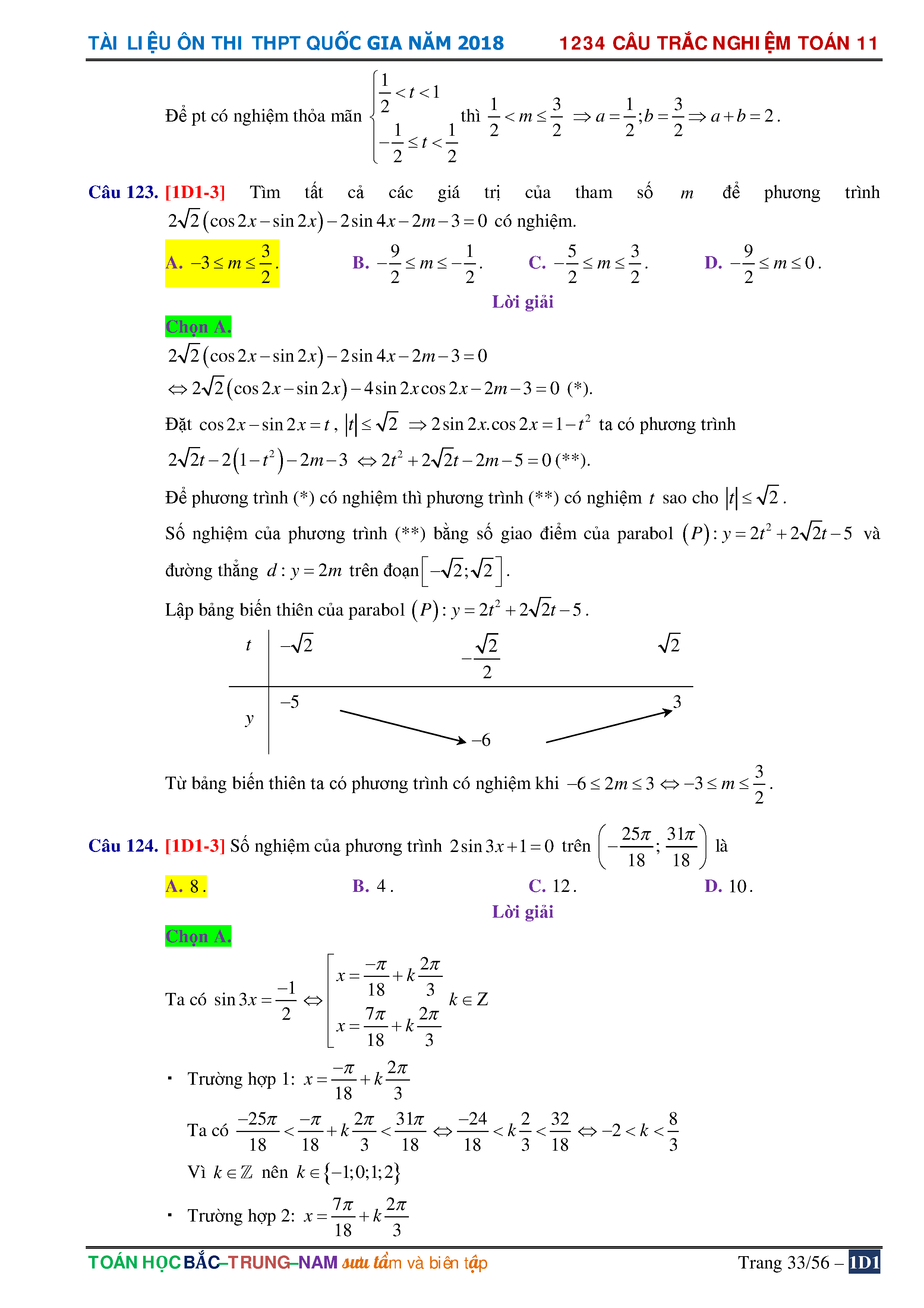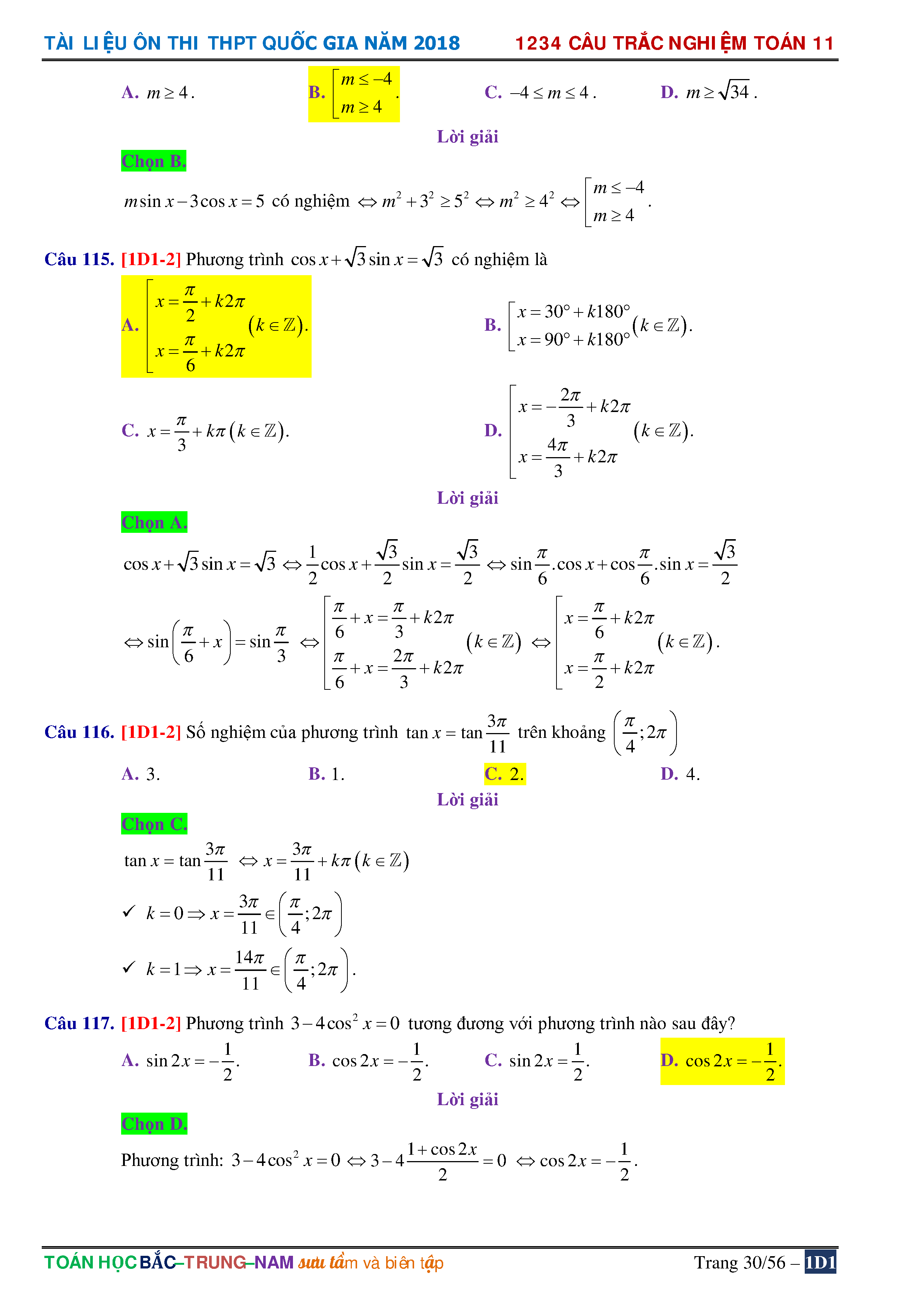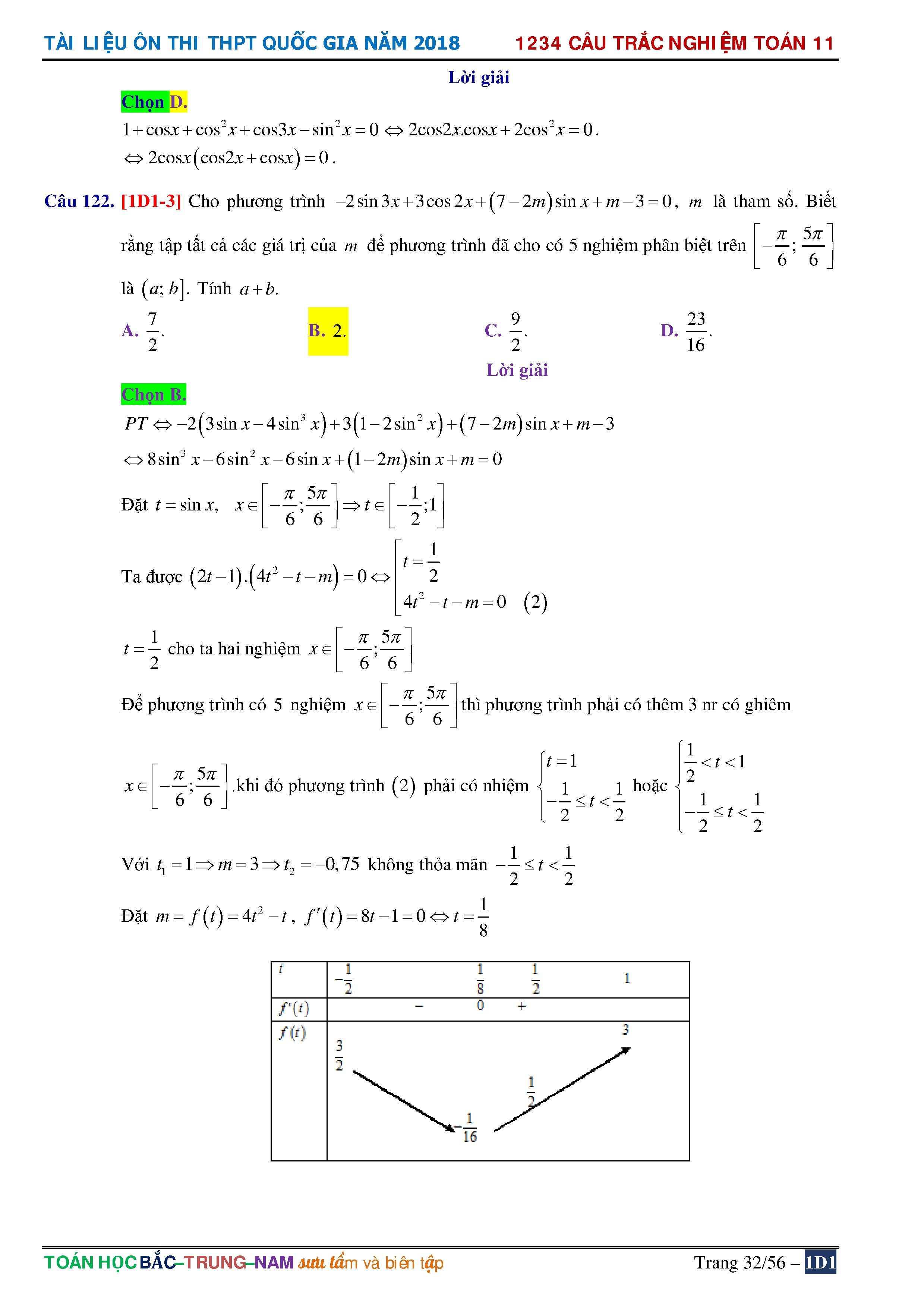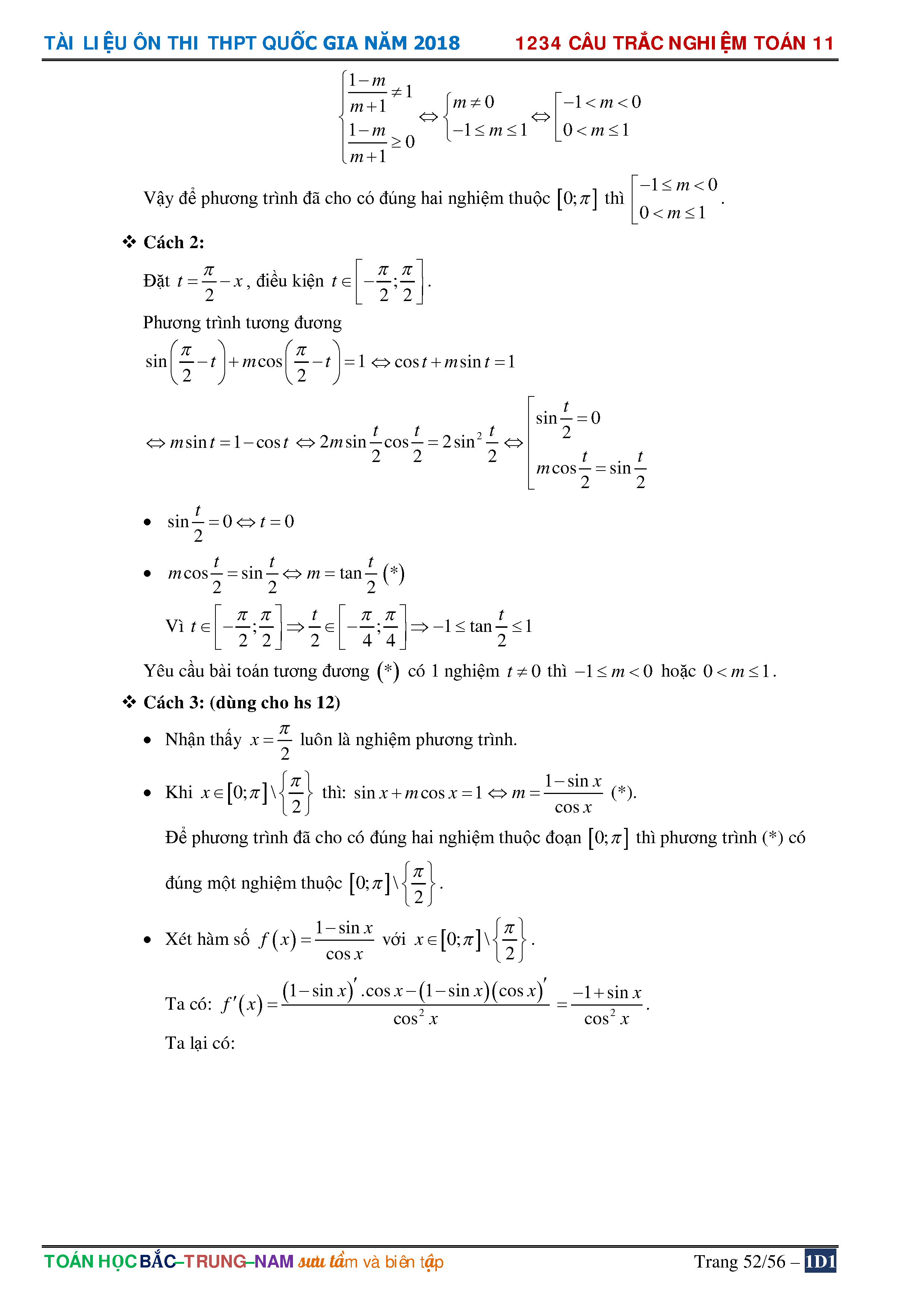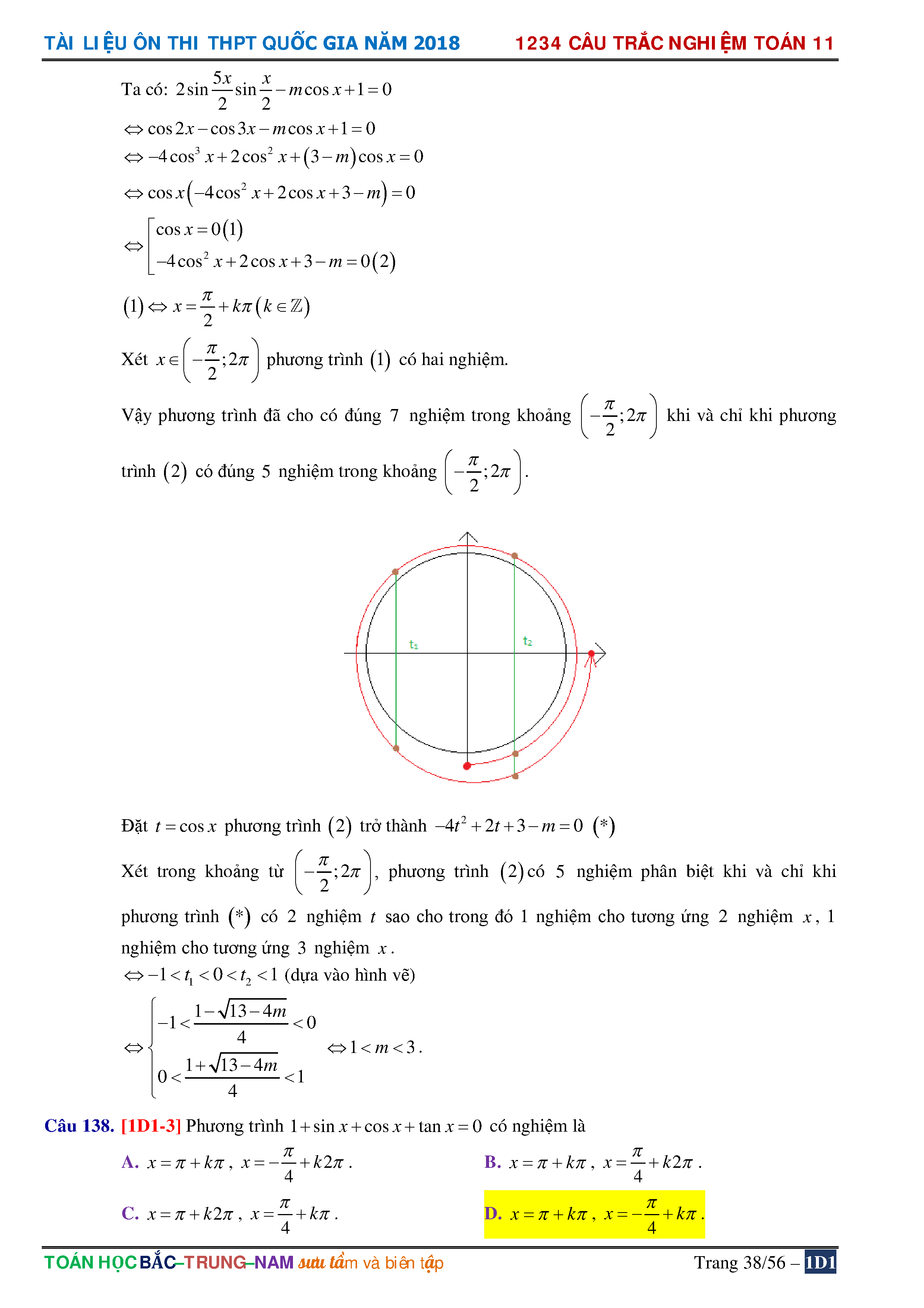 TRẮC NGHIỆM HÀM SỐ LƯỢNG GIÁC PHƯƠNG TRÌNH LƯỢNG GIÁC TOÁN LỚP 11