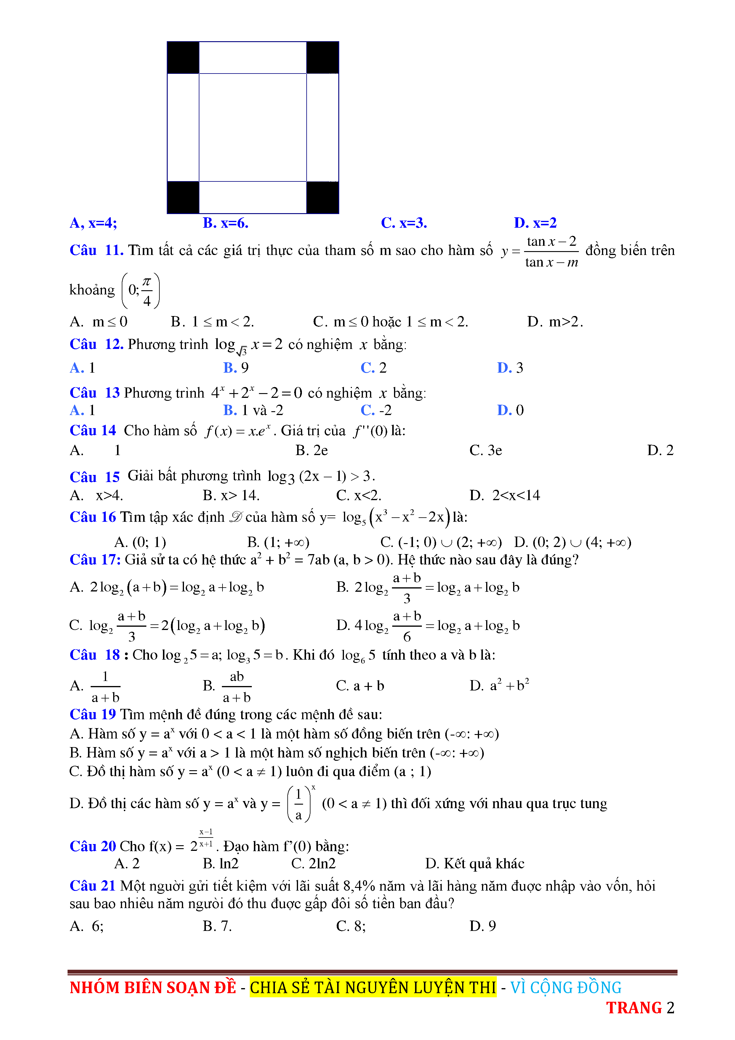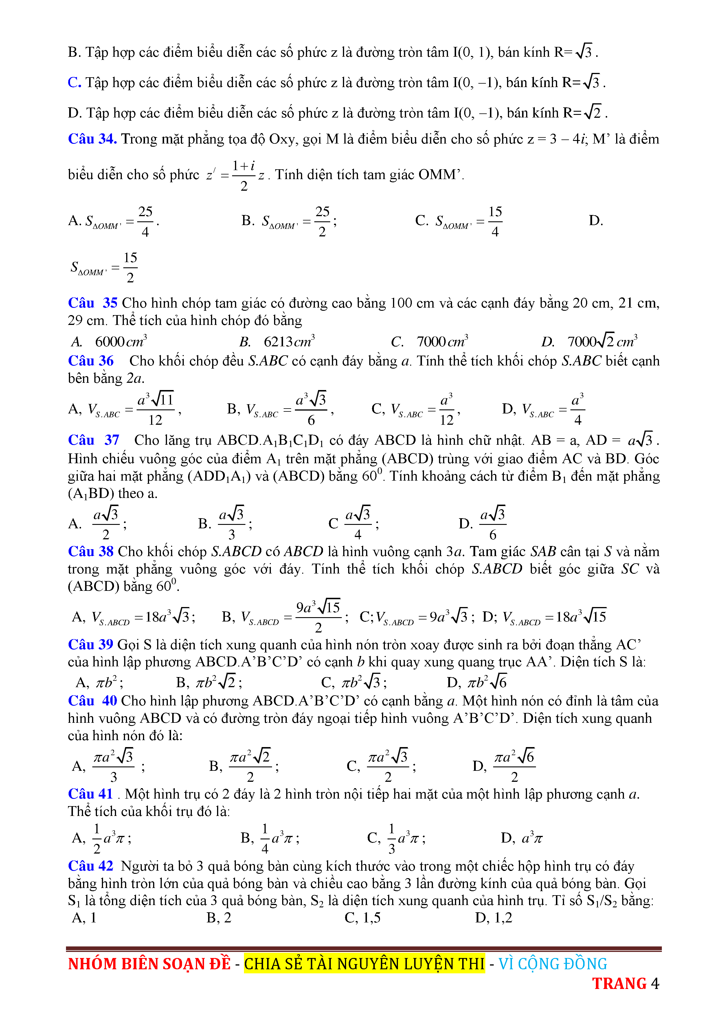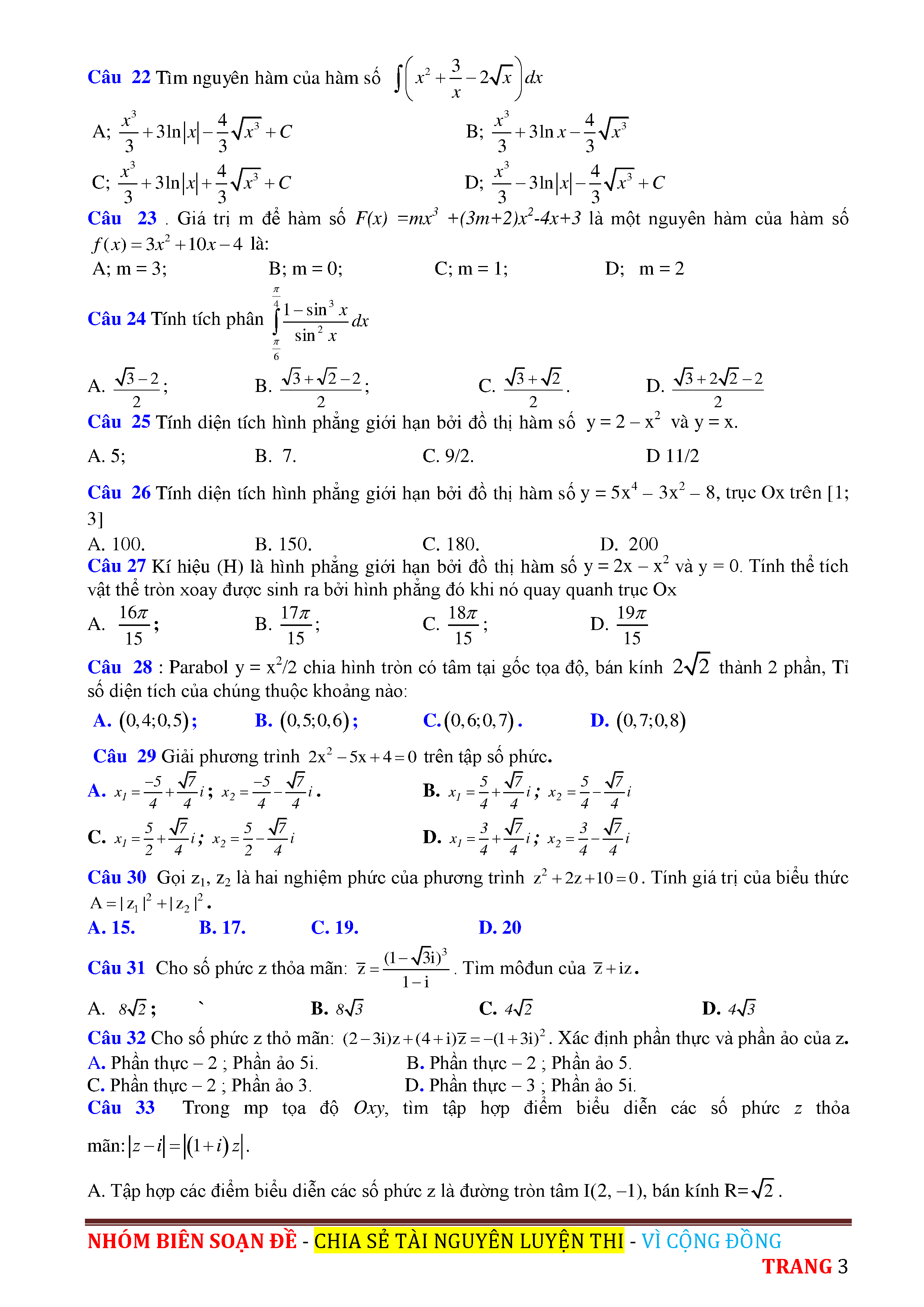 ĐỀ THI THỬ THPT QUỐC GIA 2017 - MÔN TOÁN - THPT HÀM RỒNG