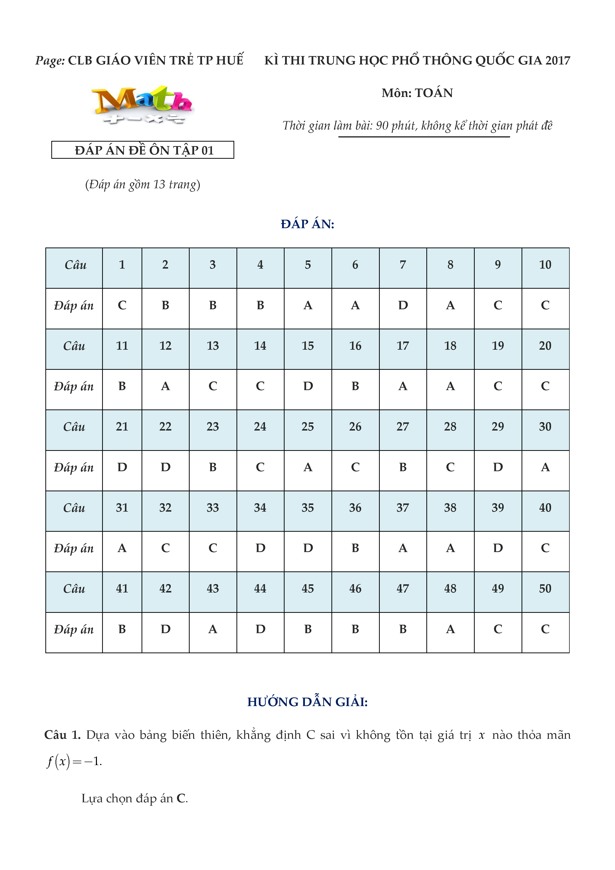 ĐỀ THI THỬ THPT QUỐC GIA 2017 - MÔN TOÁN - CLB GV TRẺ - HUẾ - LẦN 1