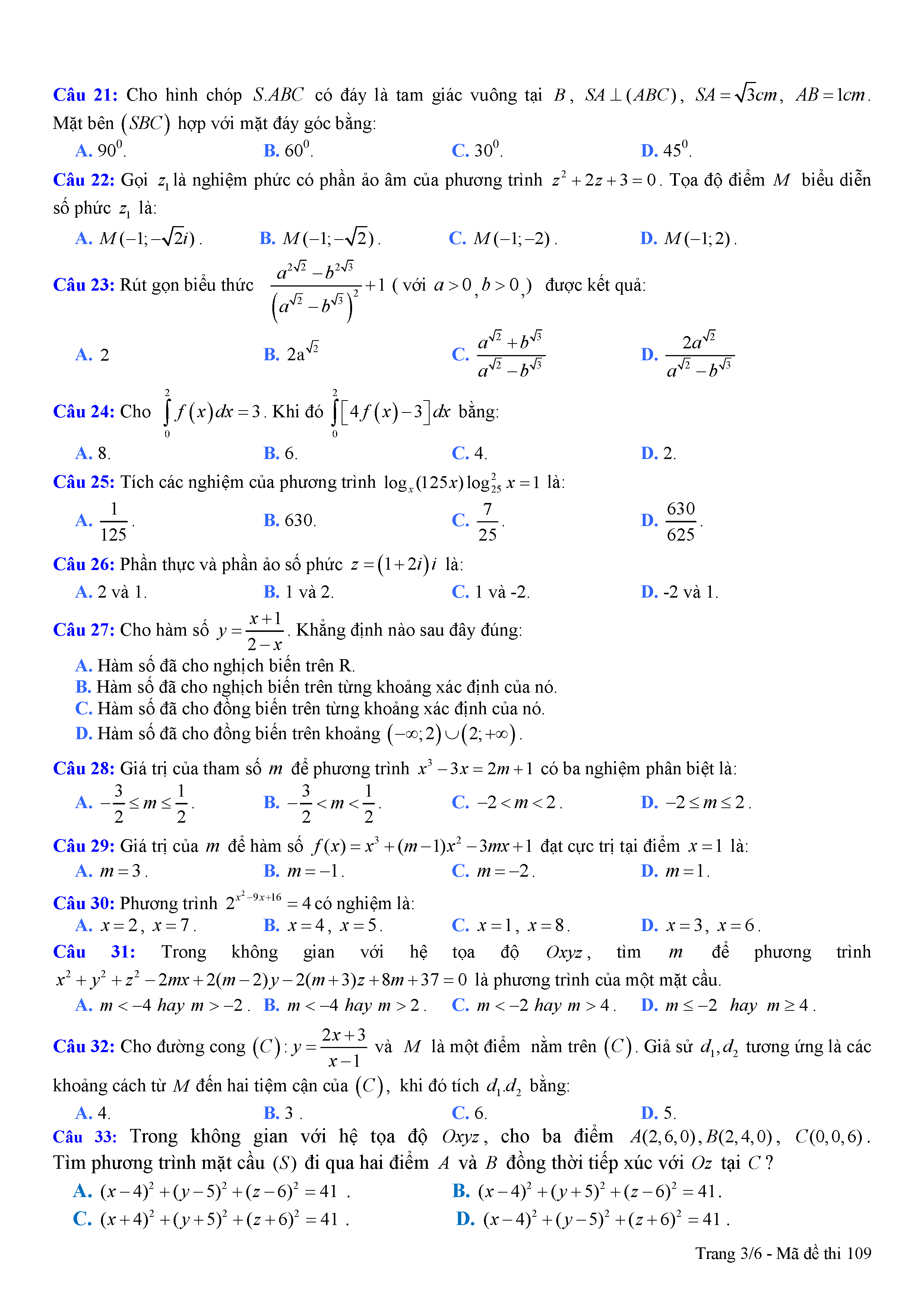 ĐỀ THI THỬ THPT QUỐC GIA 2017 - MÔN TOÁN -TTLT ĐH DIỆU HIỀN - CẦN THƠ - LẦN 2