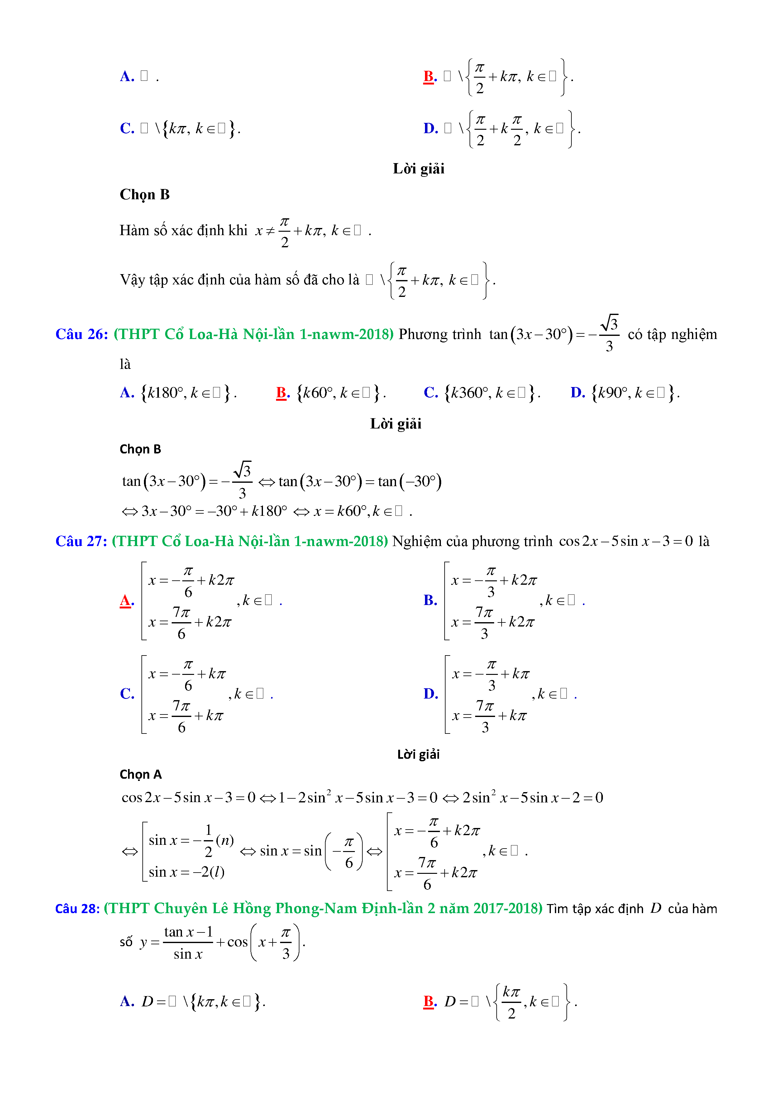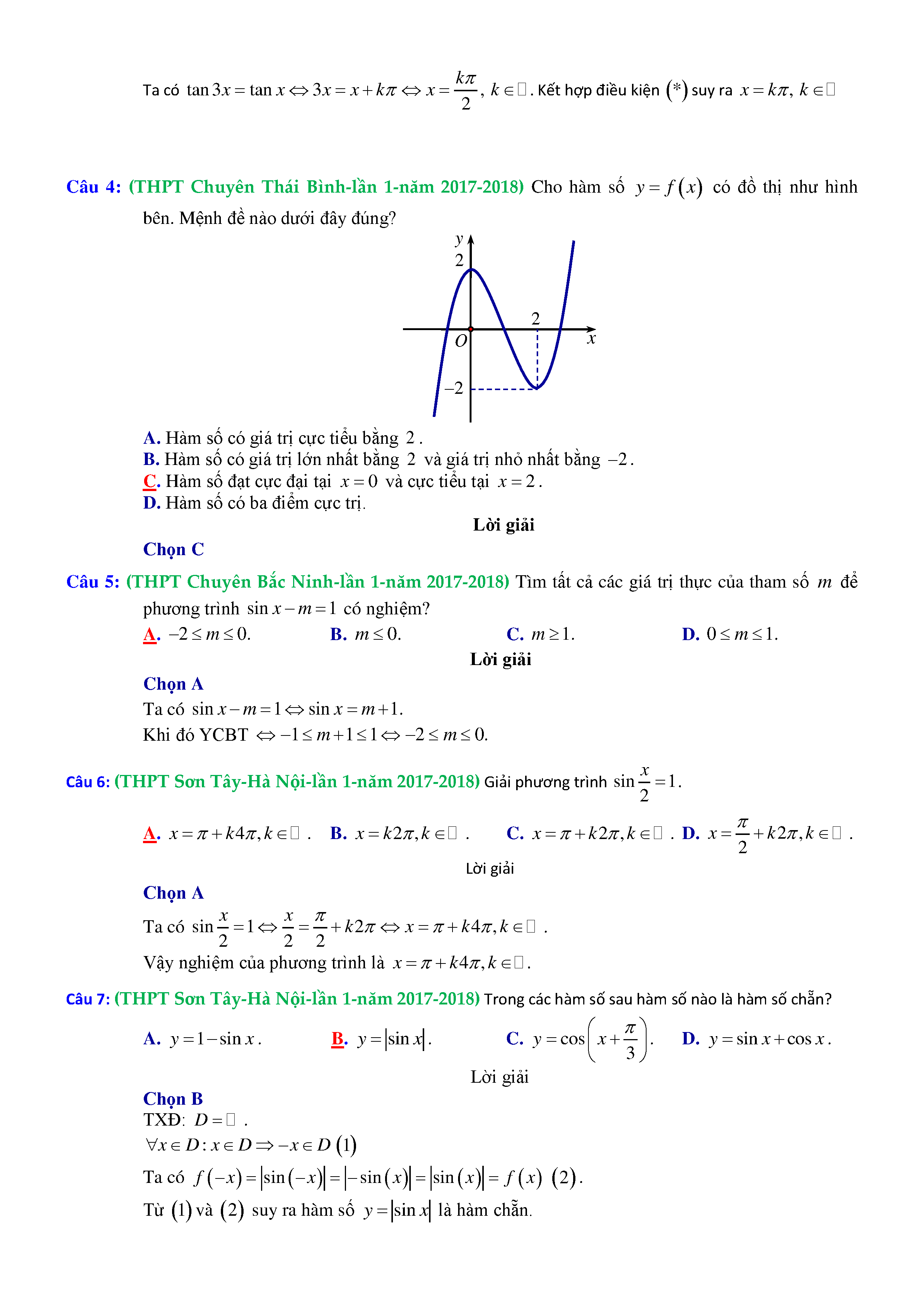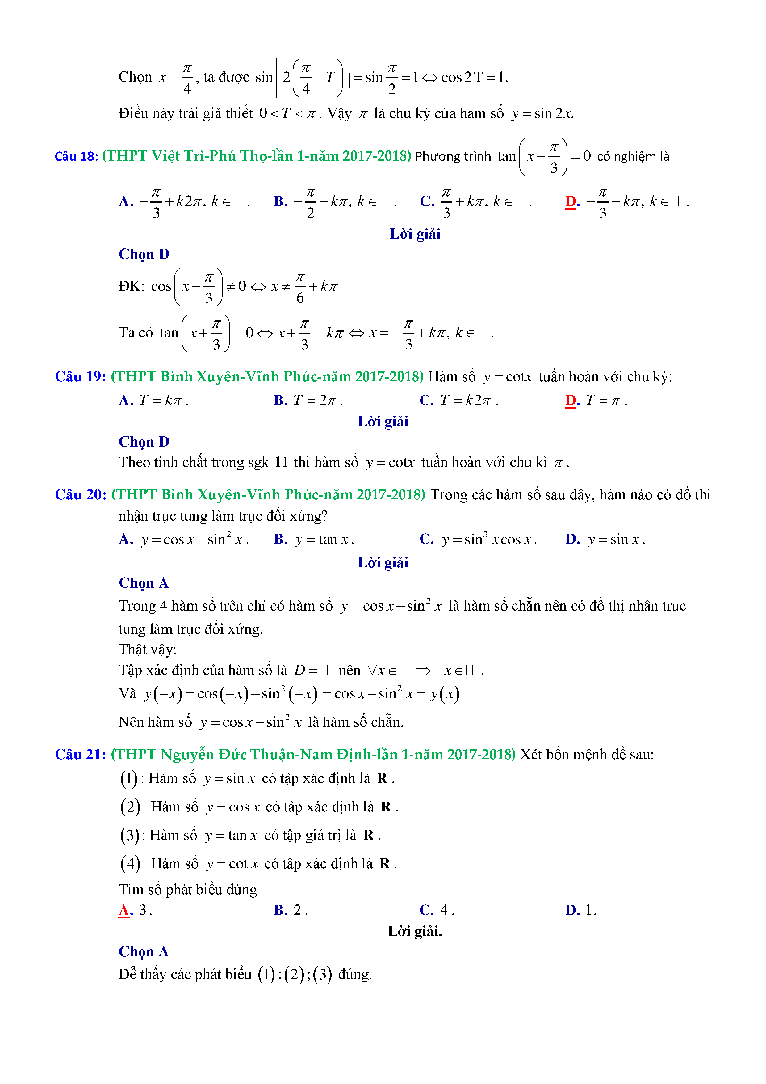 TRẮC NGHIỆM HÀM SỐ LƯỢNG GIÁC VÀ PHƯƠNG TRÌNH LƯỢNG GIÁC TRONG ĐỀ THI THỬ THPT QG NĂM 2018 - PHẦN 1