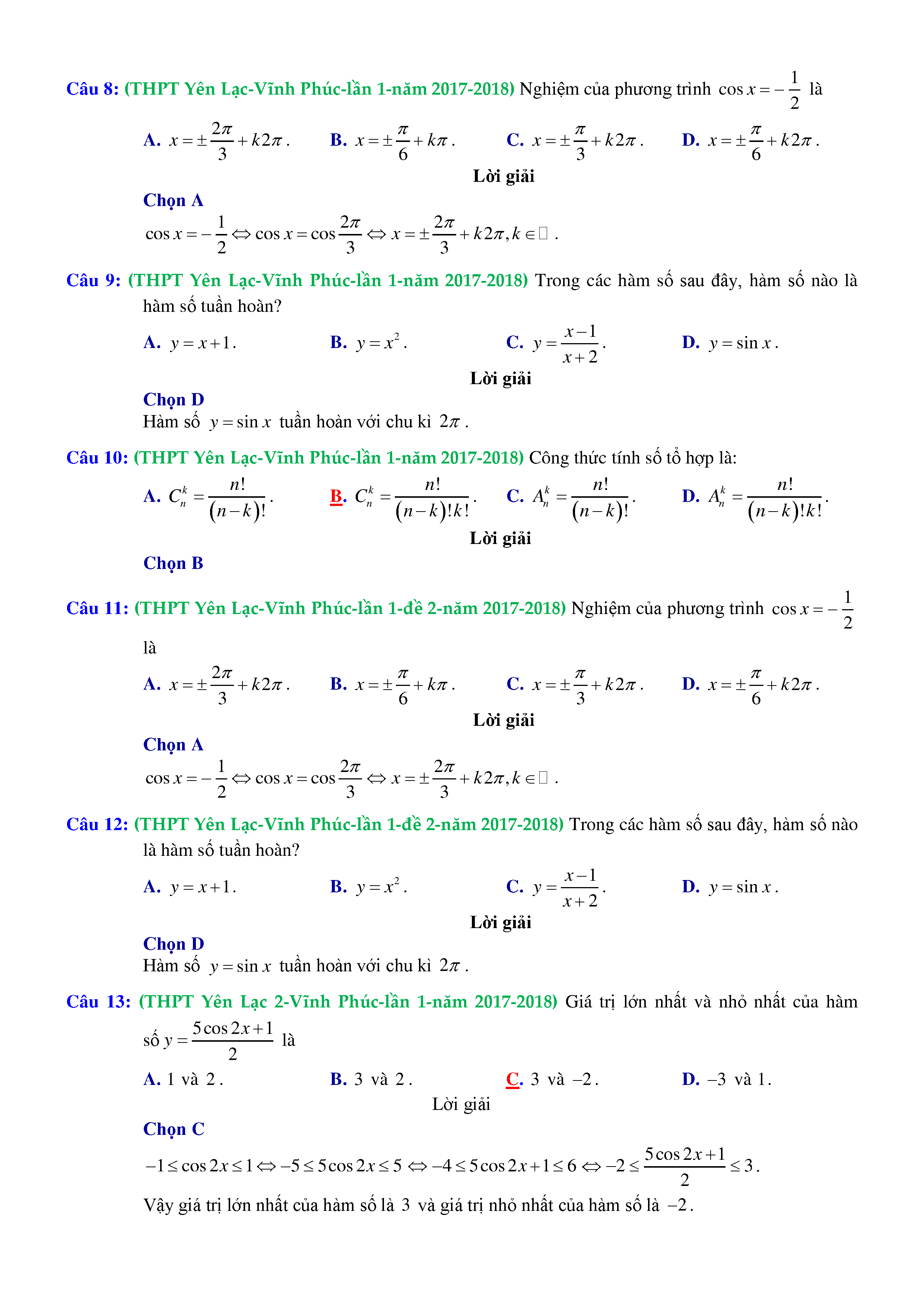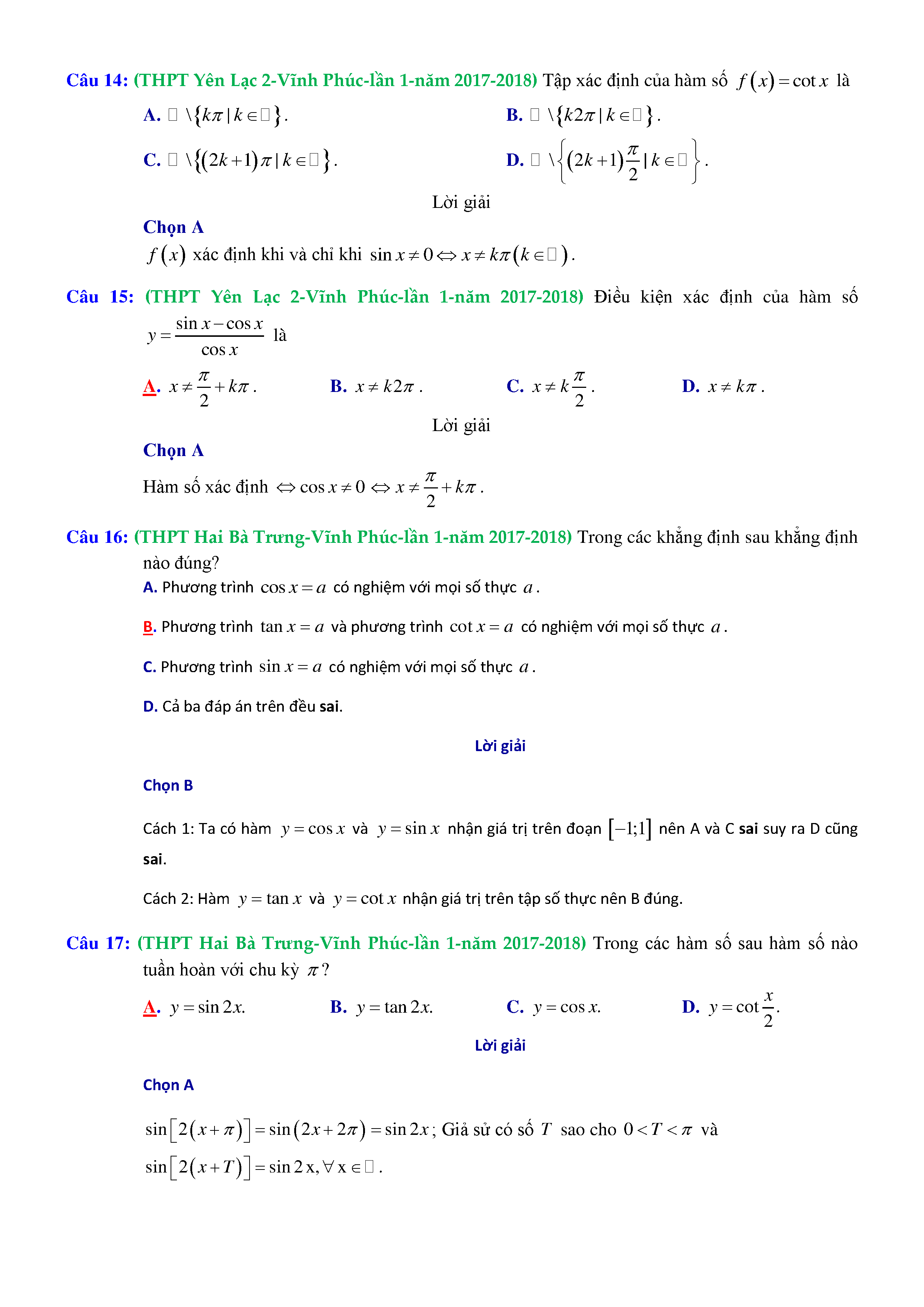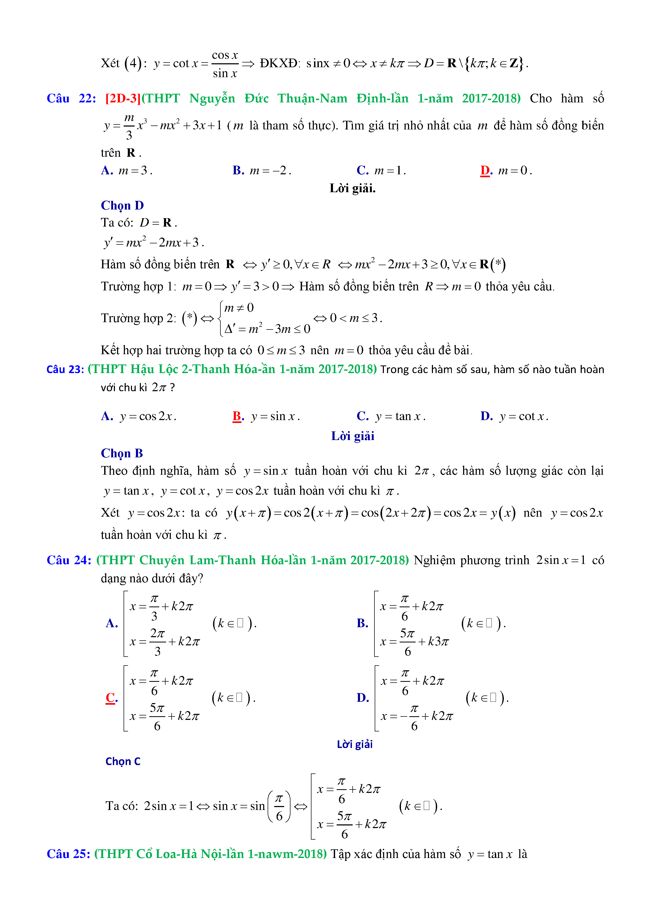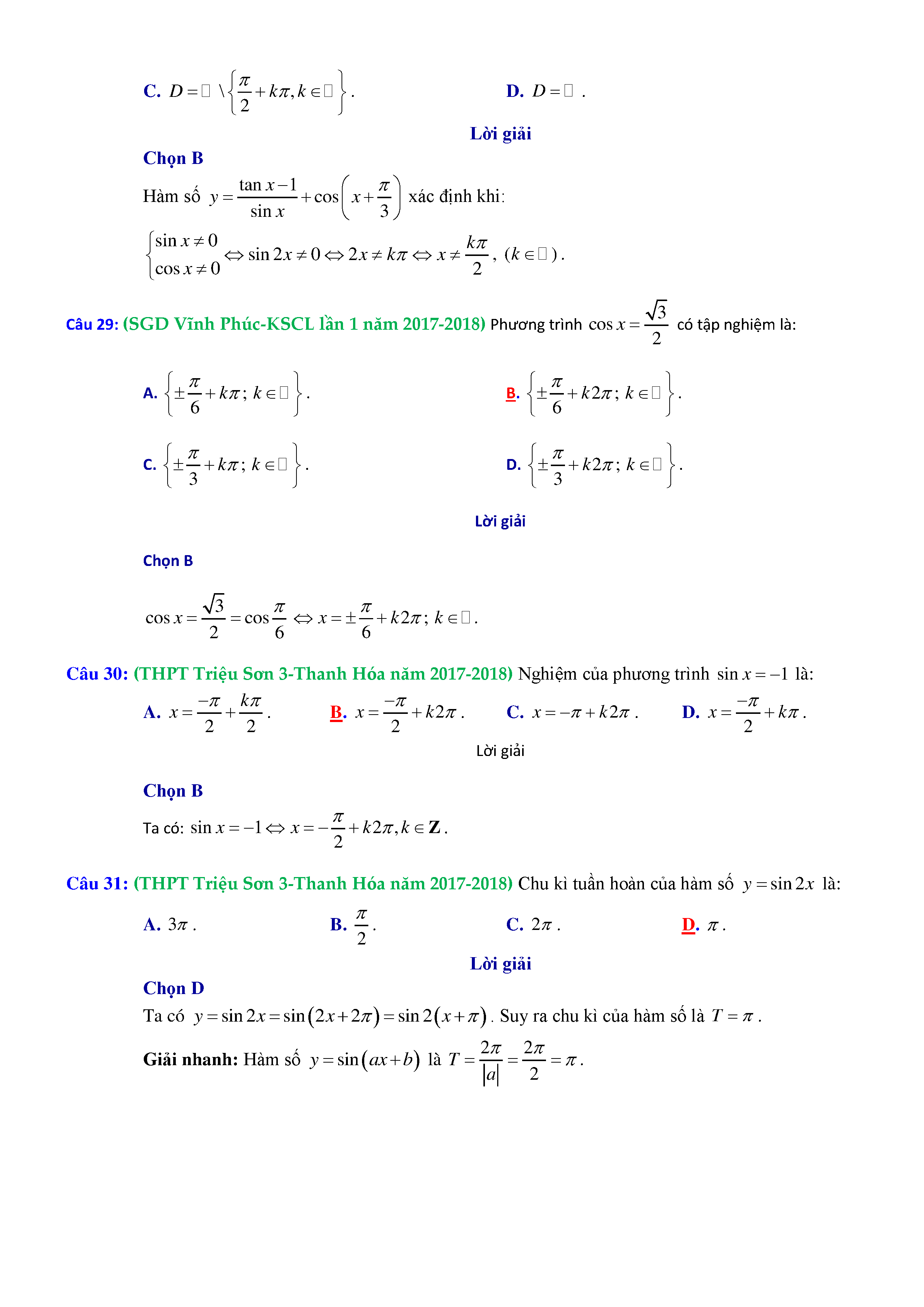 TRẮC NGHIỆM HÀM SỐ LƯỢNG GIÁC VÀ PHƯƠNG TRÌNH LƯỢNG GIÁC TRONG ĐỀ THI THỬ THPT QG NĂM 2018 - PHẦN 1