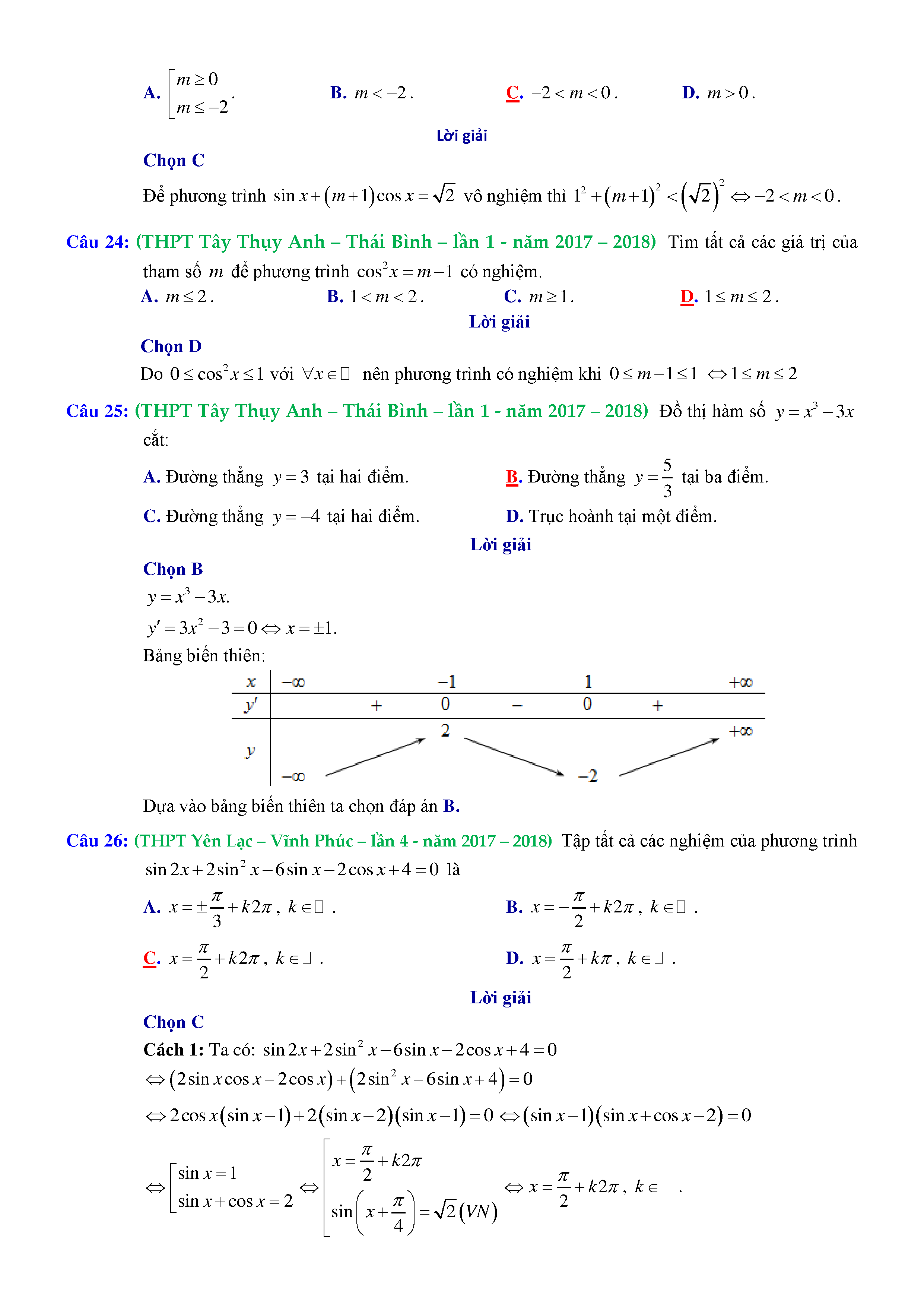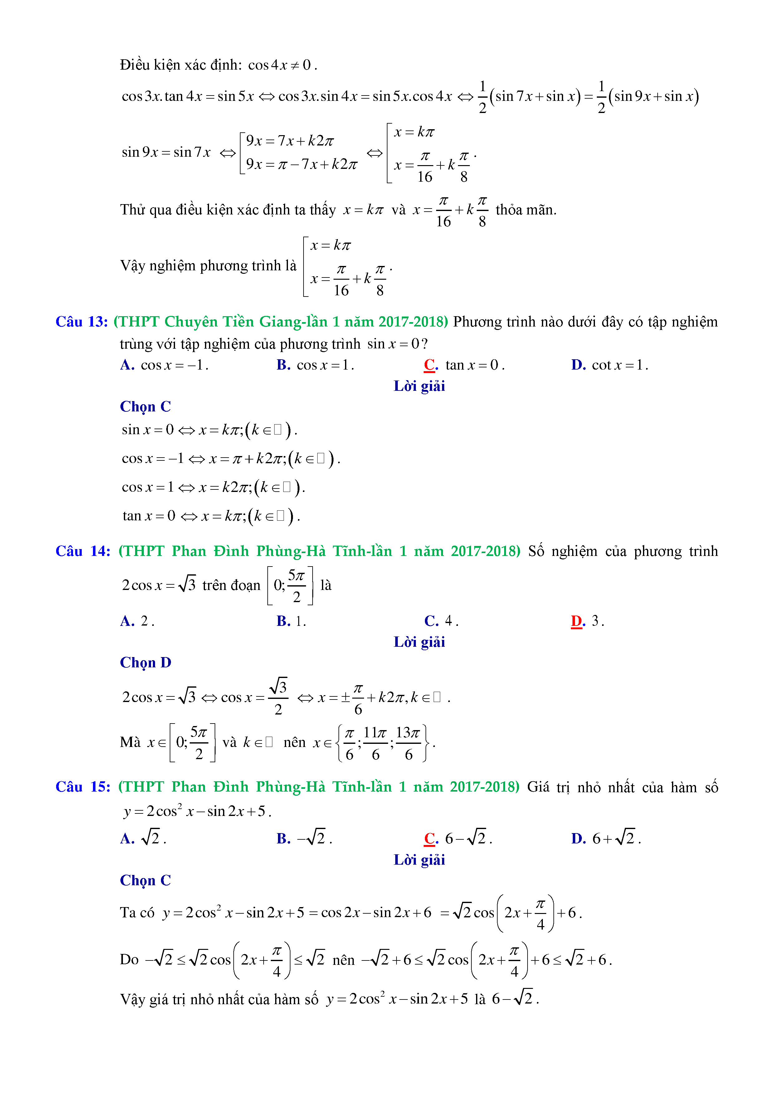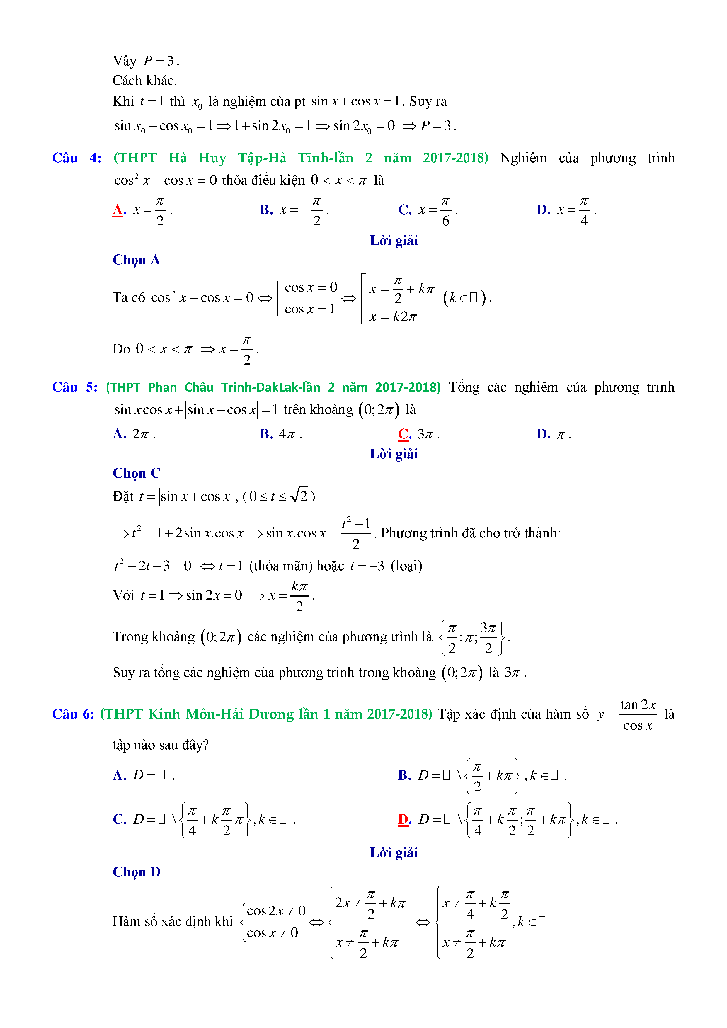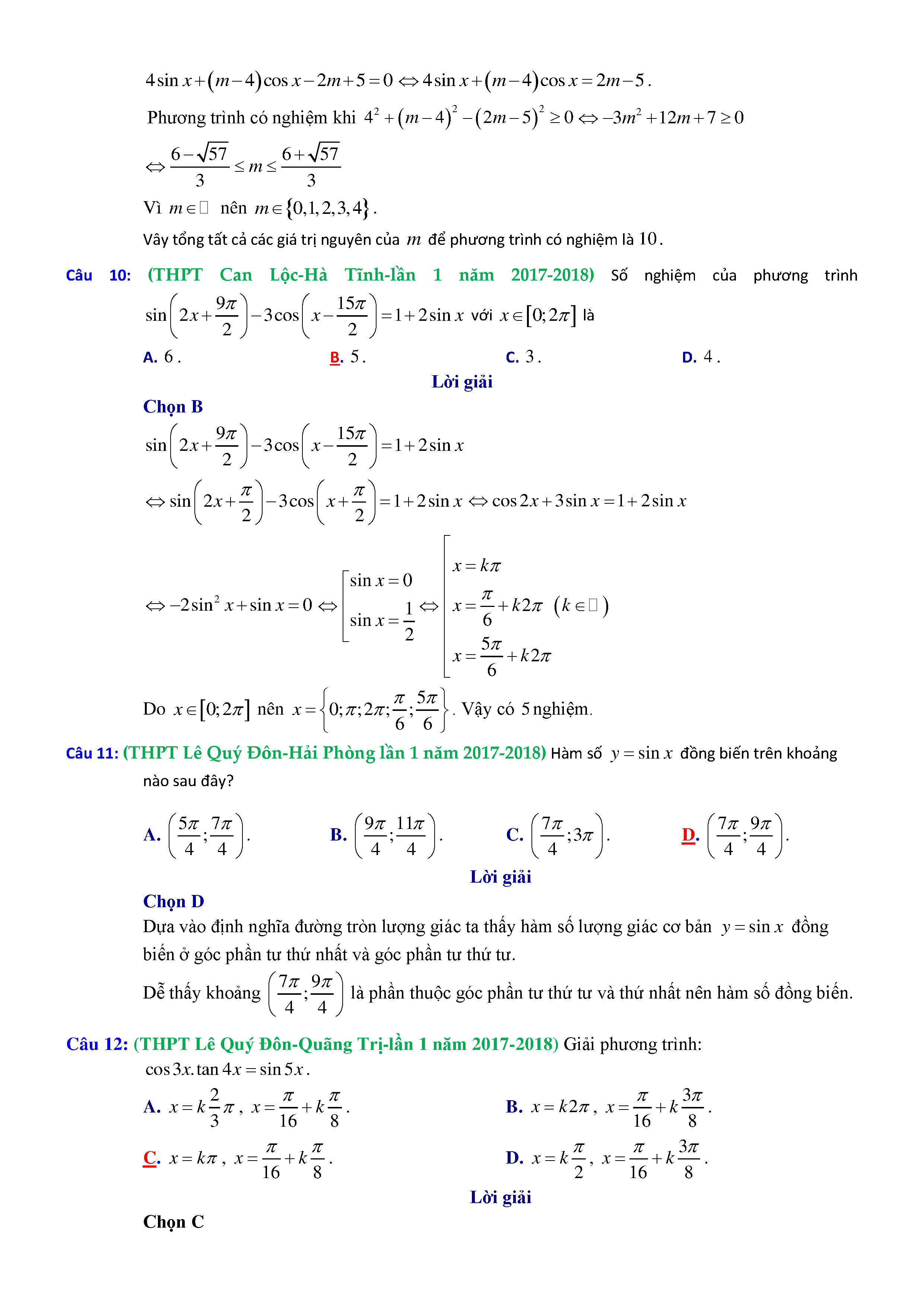 TRẮC NGHIỆM HÀM SỐ LƯỢNG GIÁC VÀ PHƯƠNG TRÌNH LƯỢNG GIÁC TRONG ĐỀ THI THỬ THPT QG NĂM 2018 - PHẦN 2