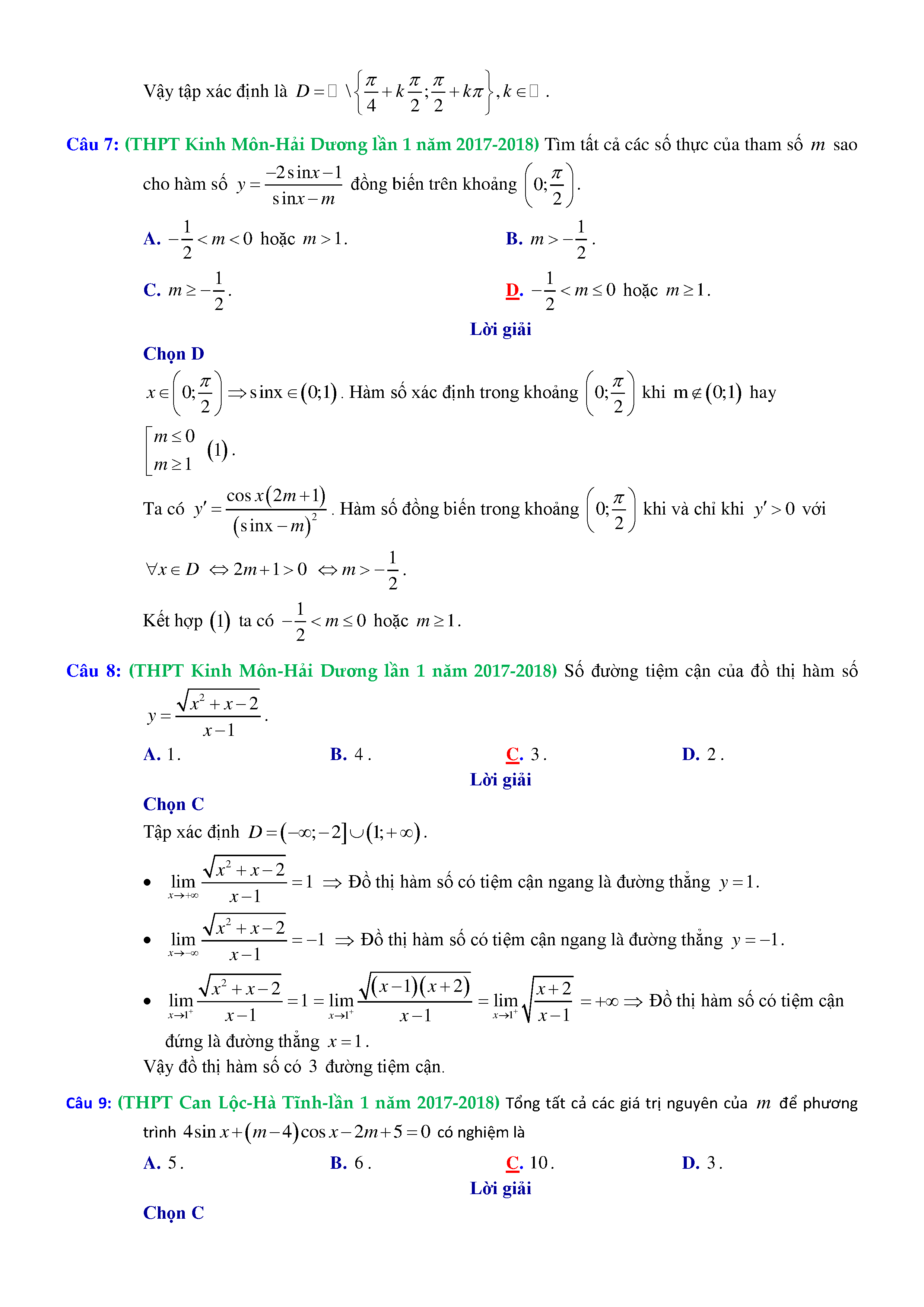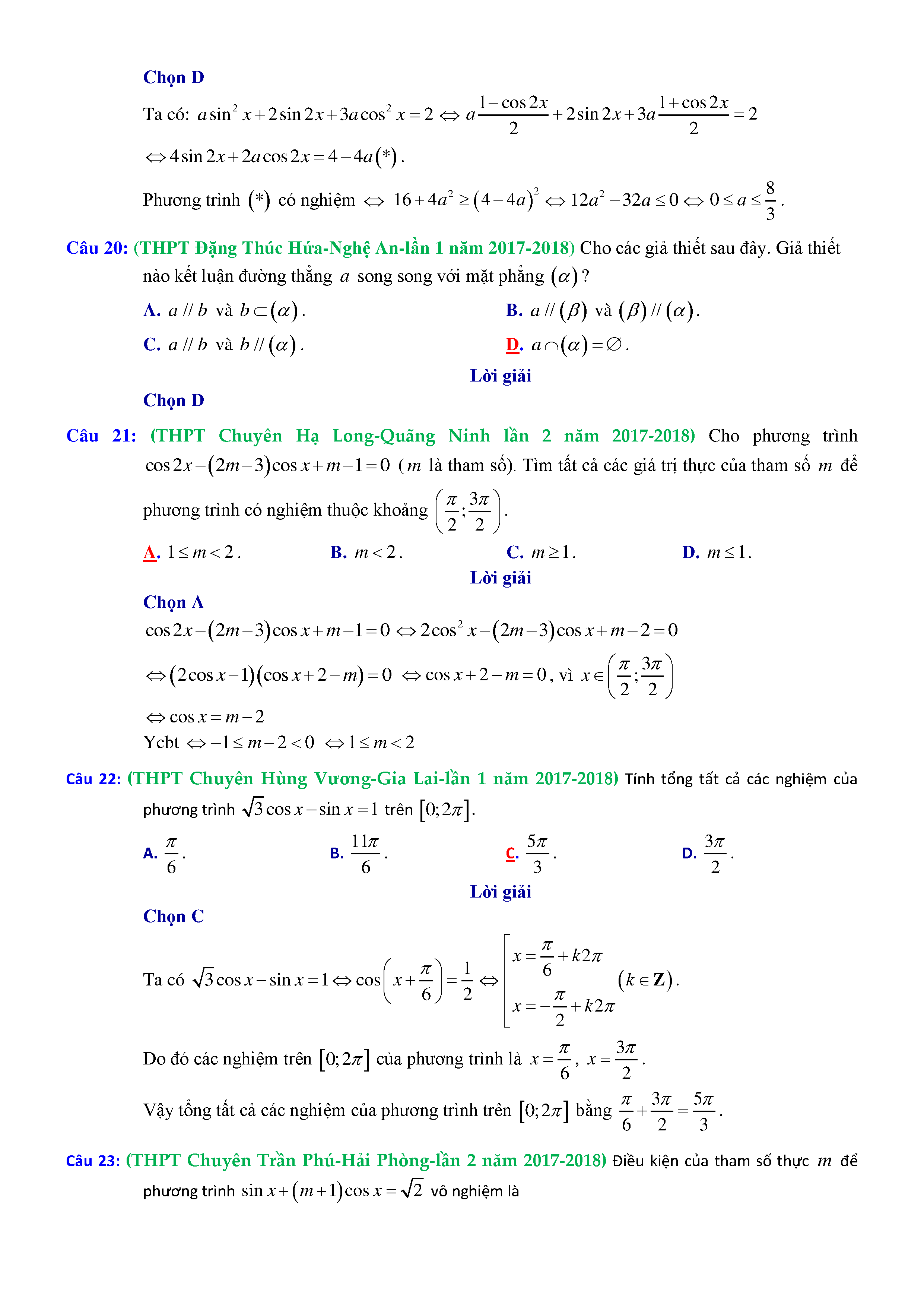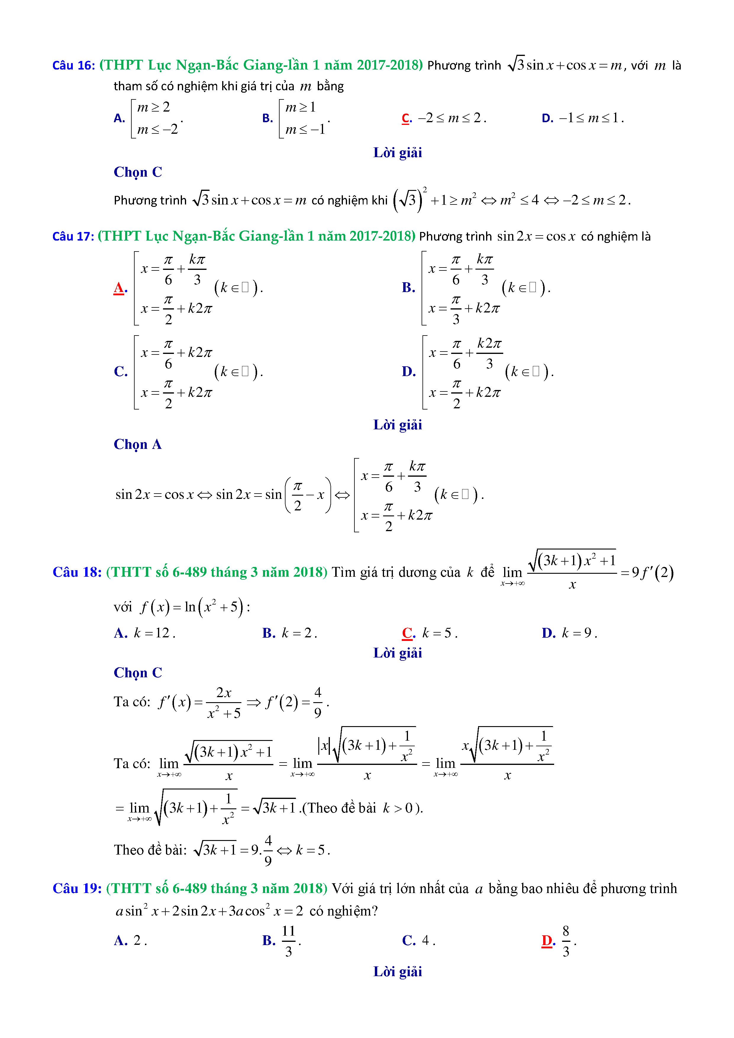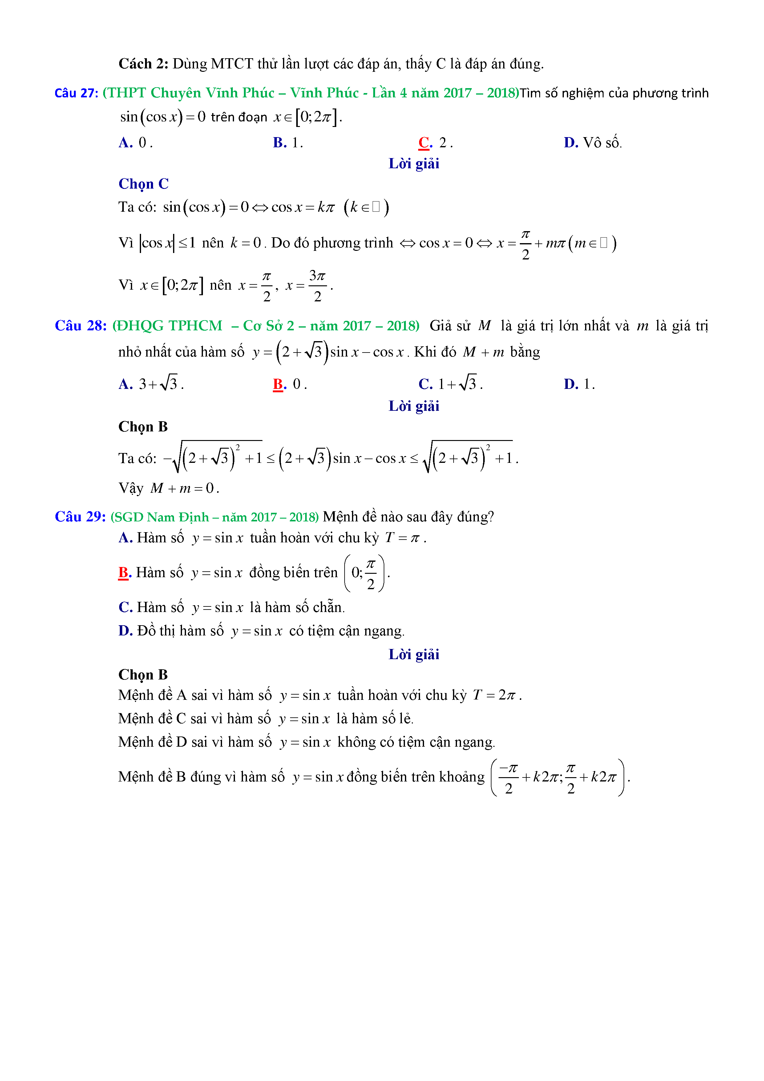 TRẮC NGHIỆM HÀM SỐ LƯỢNG GIÁC VÀ PHƯƠNG TRÌNH LƯỢNG GIÁC TRONG ĐỀ THI THỬ THPT QG NĂM 2018 - PHẦN 2