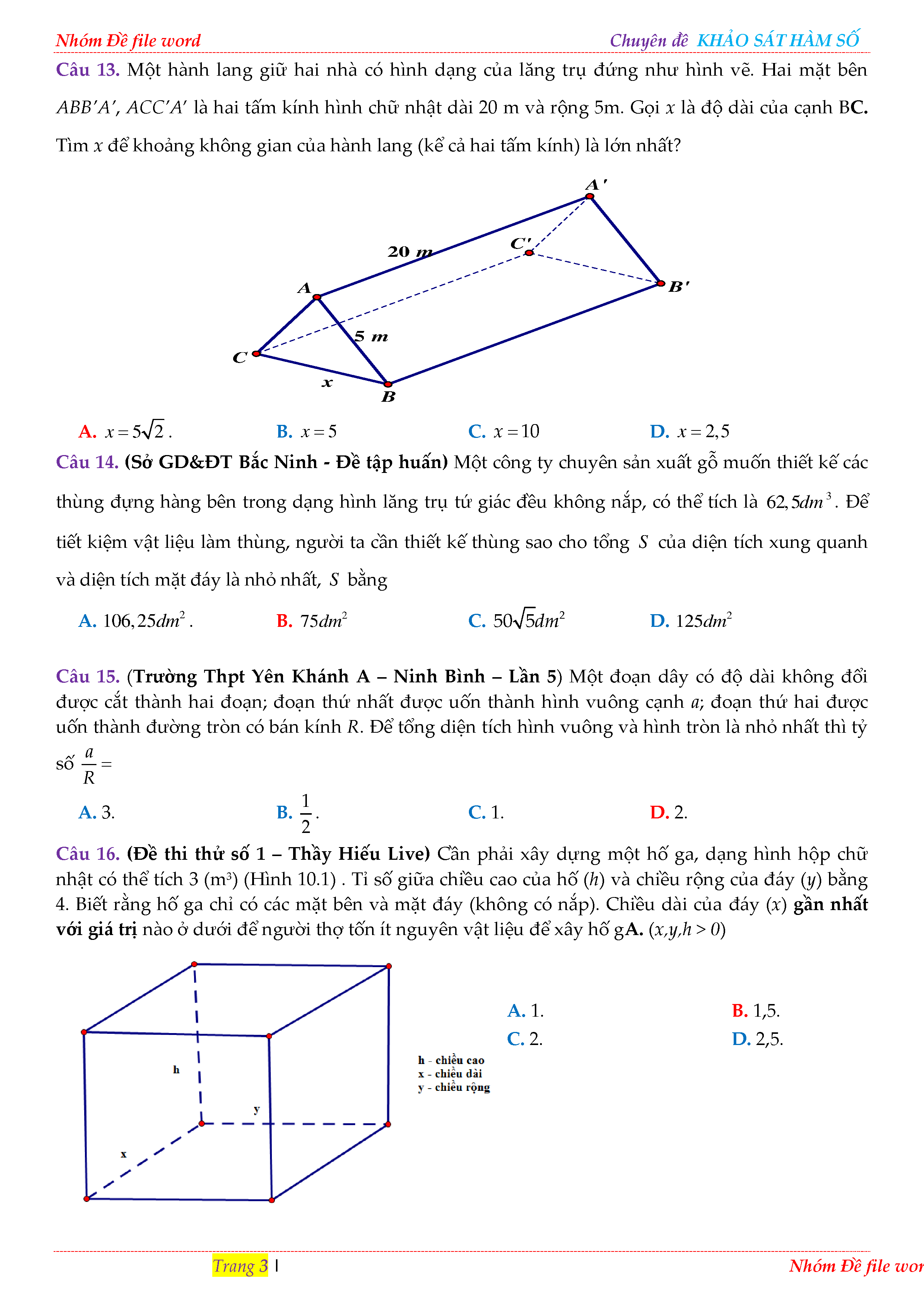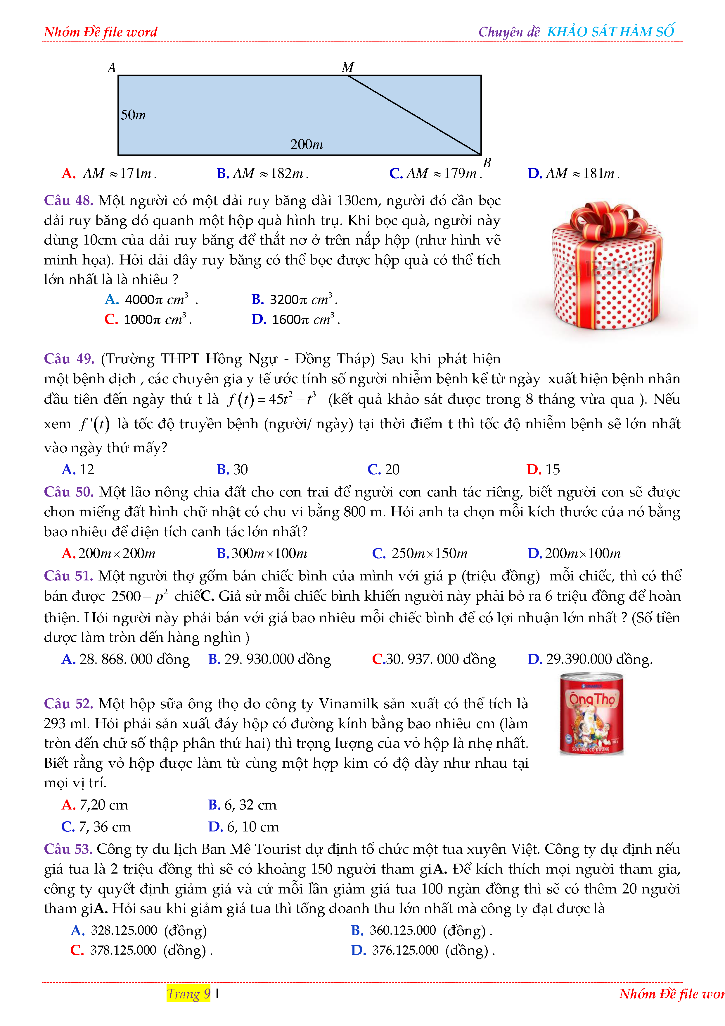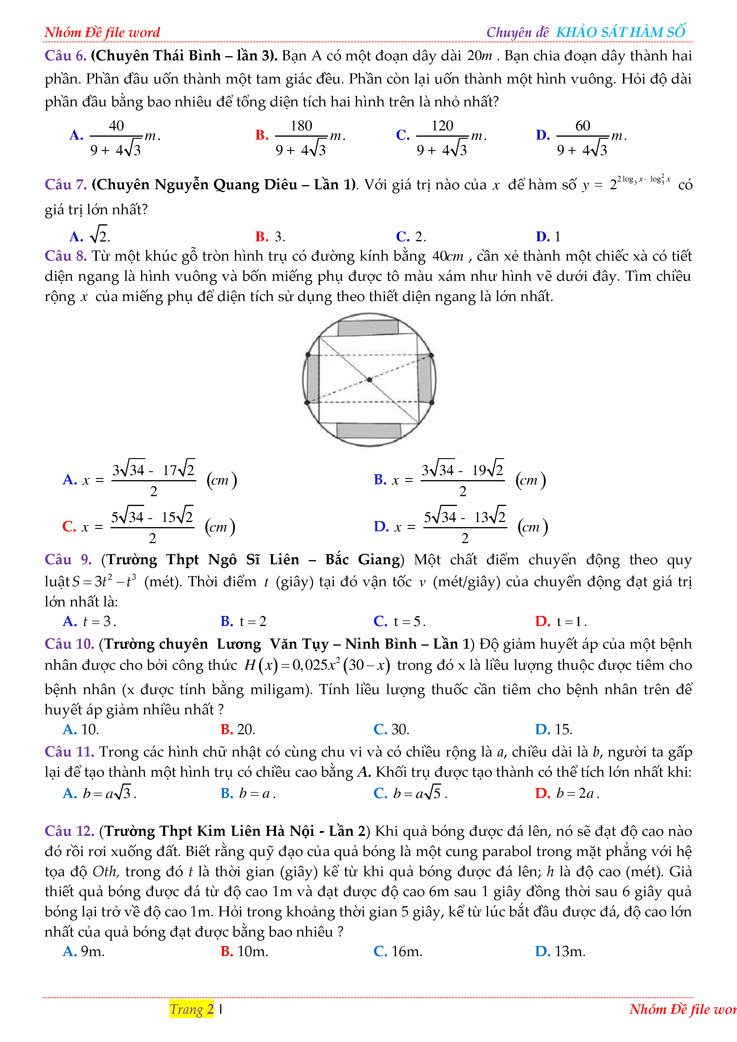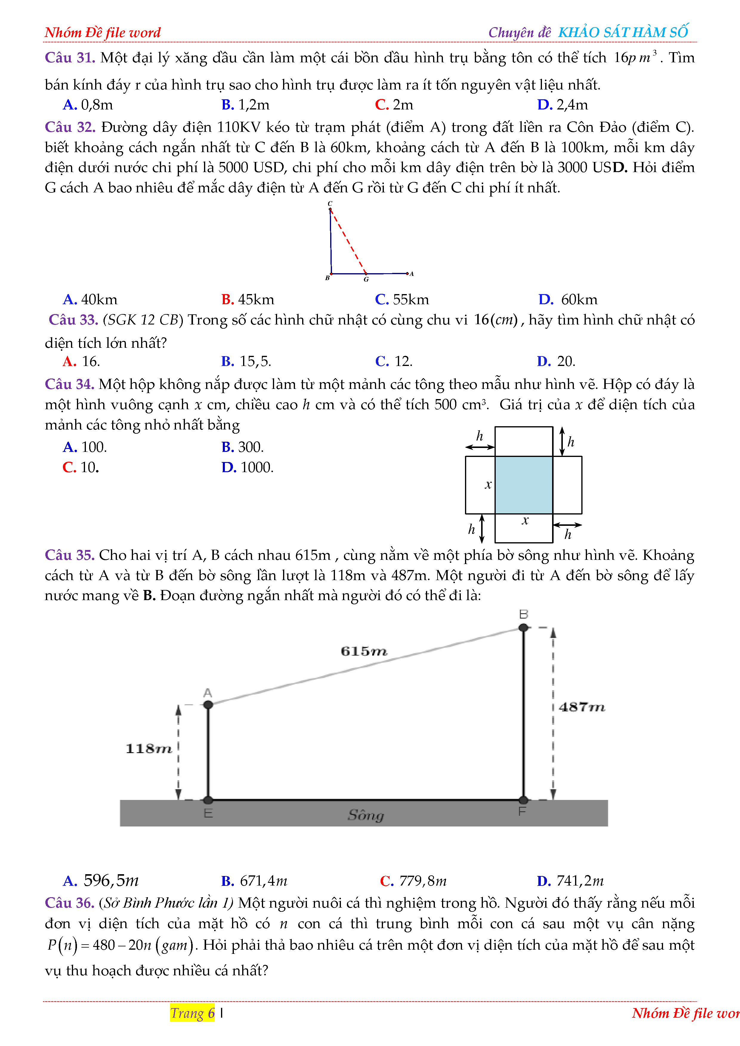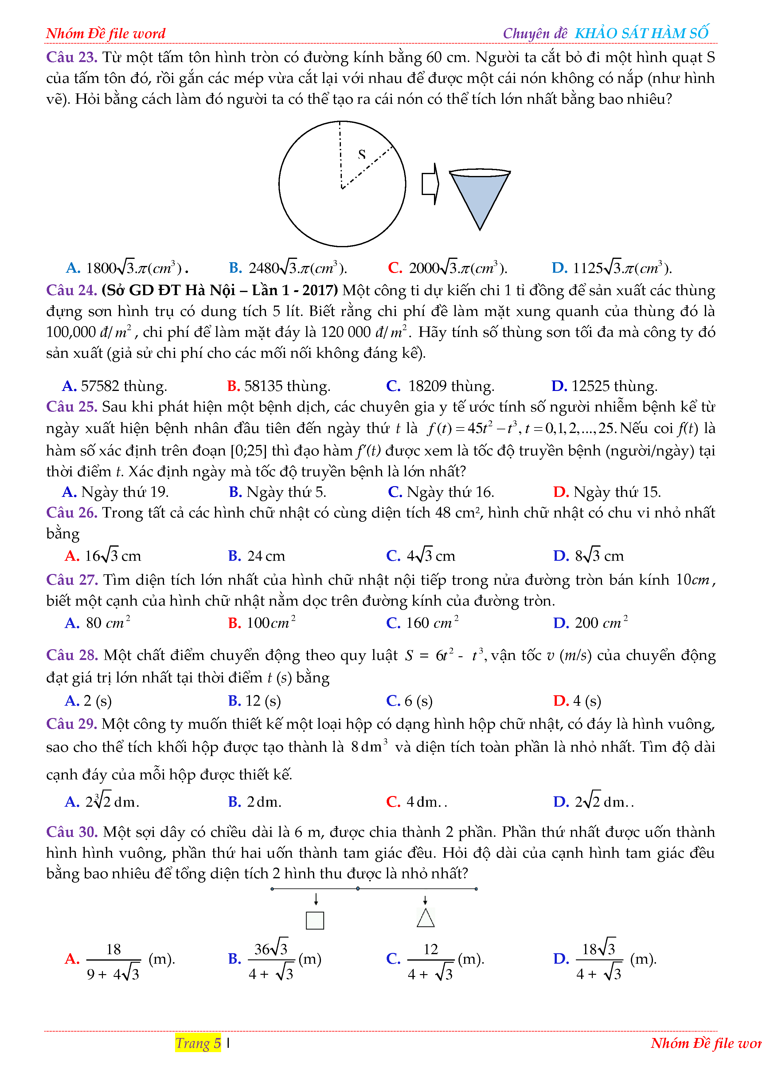 TRẮC NGHIỆM ỨNG DỤNG MAX – MIN TRONG BÀI TOÁN KHẢO SÁT HÀM SỐ - ĐỀ THI THỬ THPT QG 2018 - ĐỀ BÀI