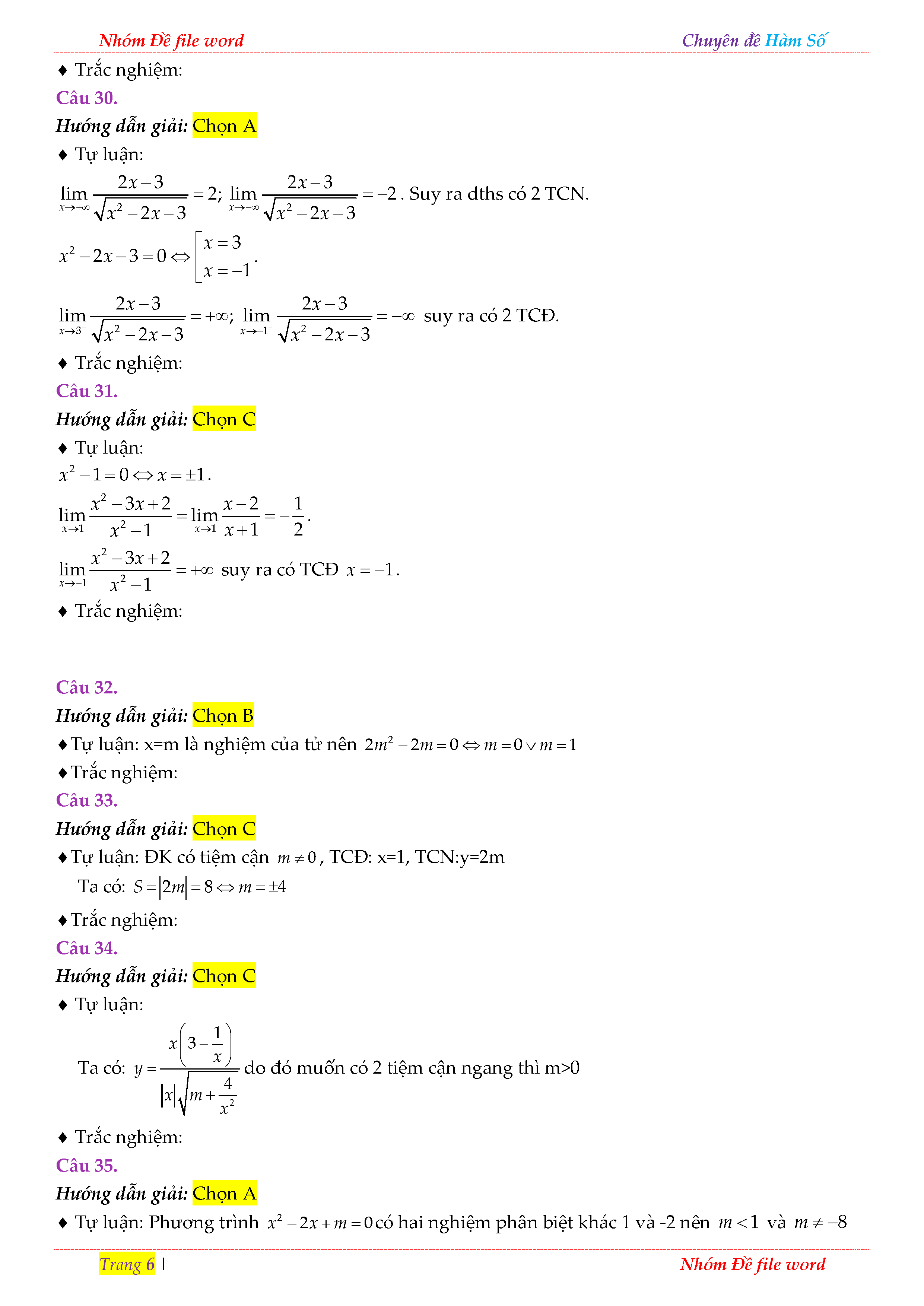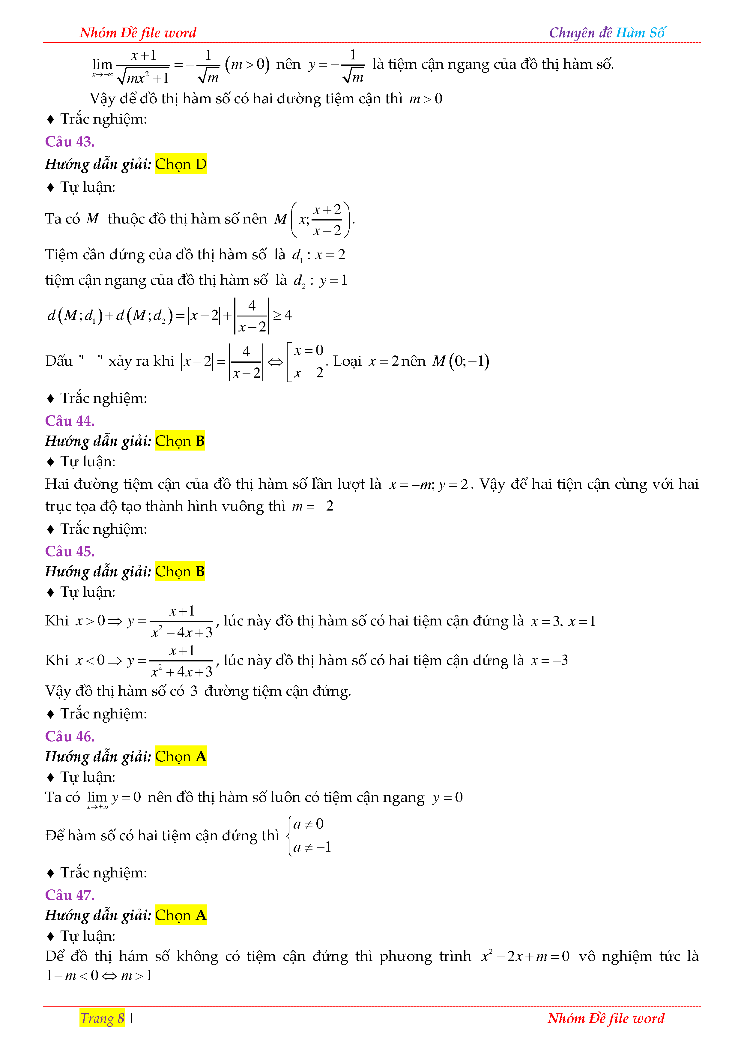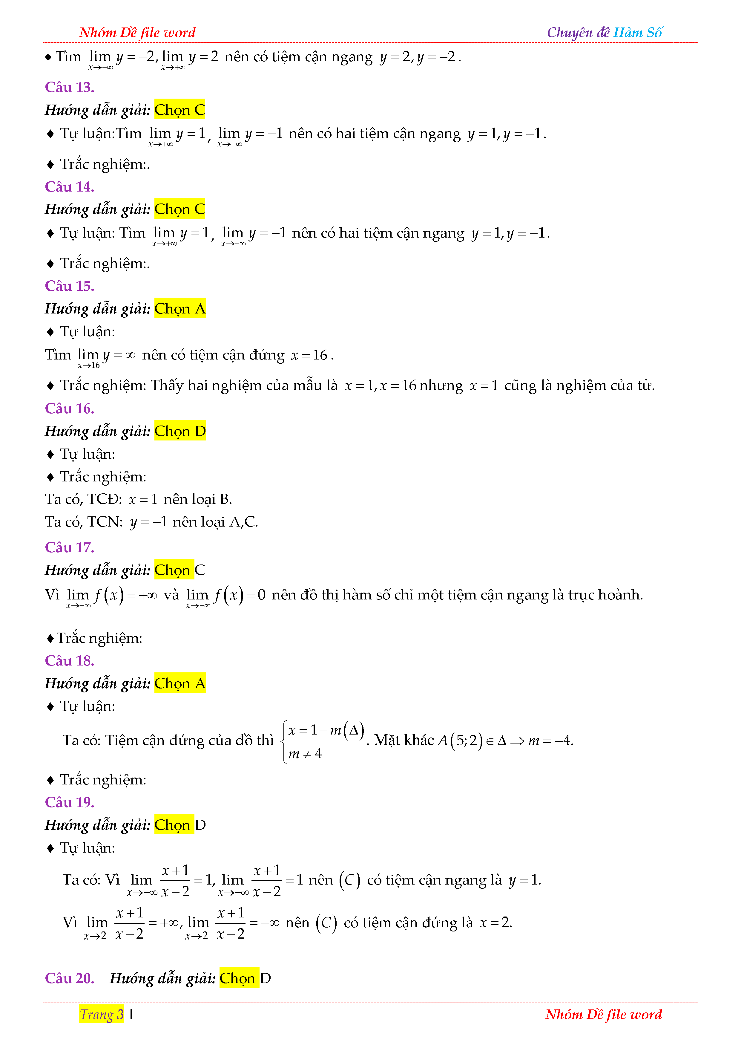 TRẮC NGHIỆM CHUYÊN ĐỀ TIỆM CẬN CỦA ĐỒ THỊ HÀM SỐ TRONG ĐỀ THI THỬ THPT QUỐC GIA 2018 - LỜI GIẢI