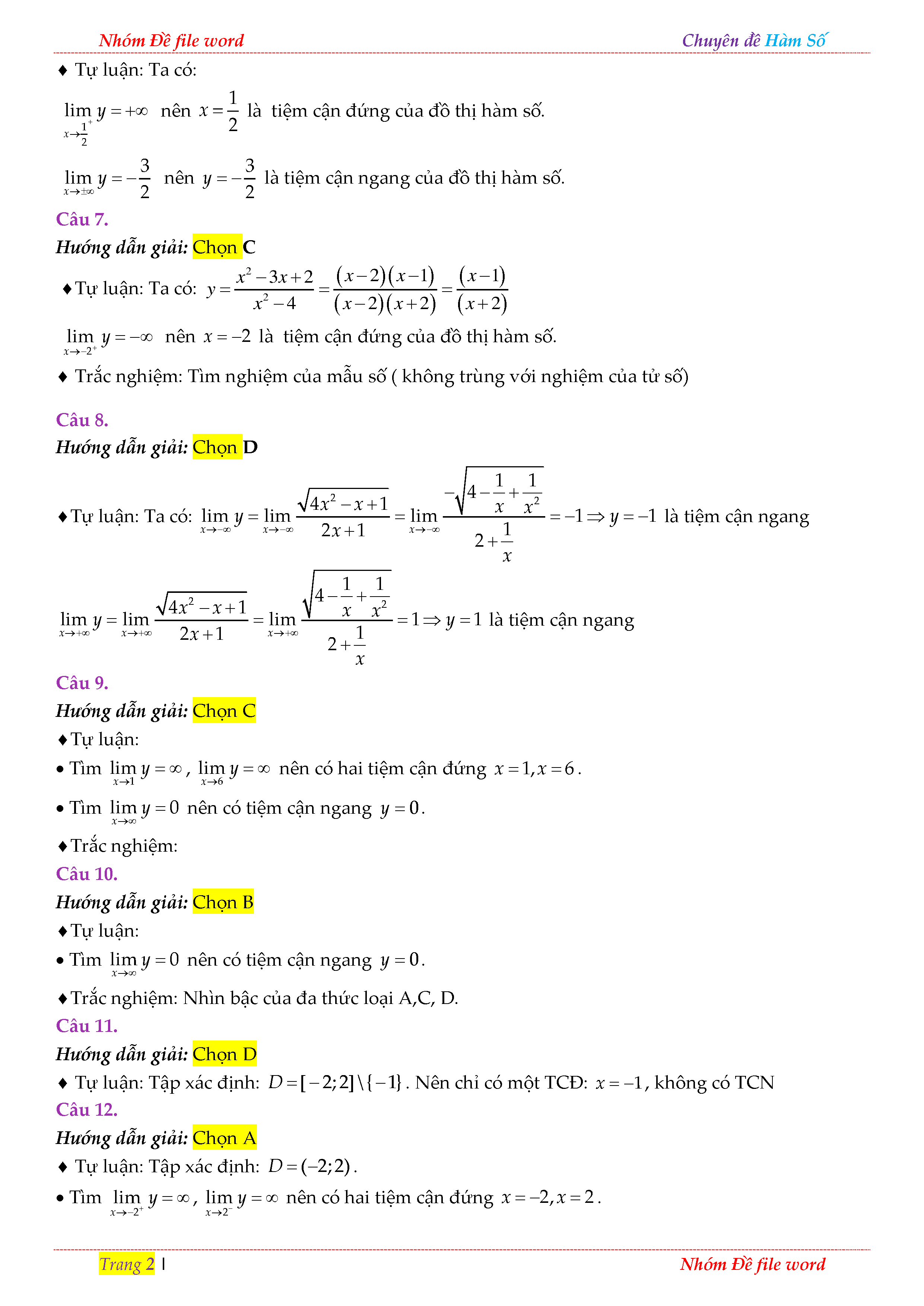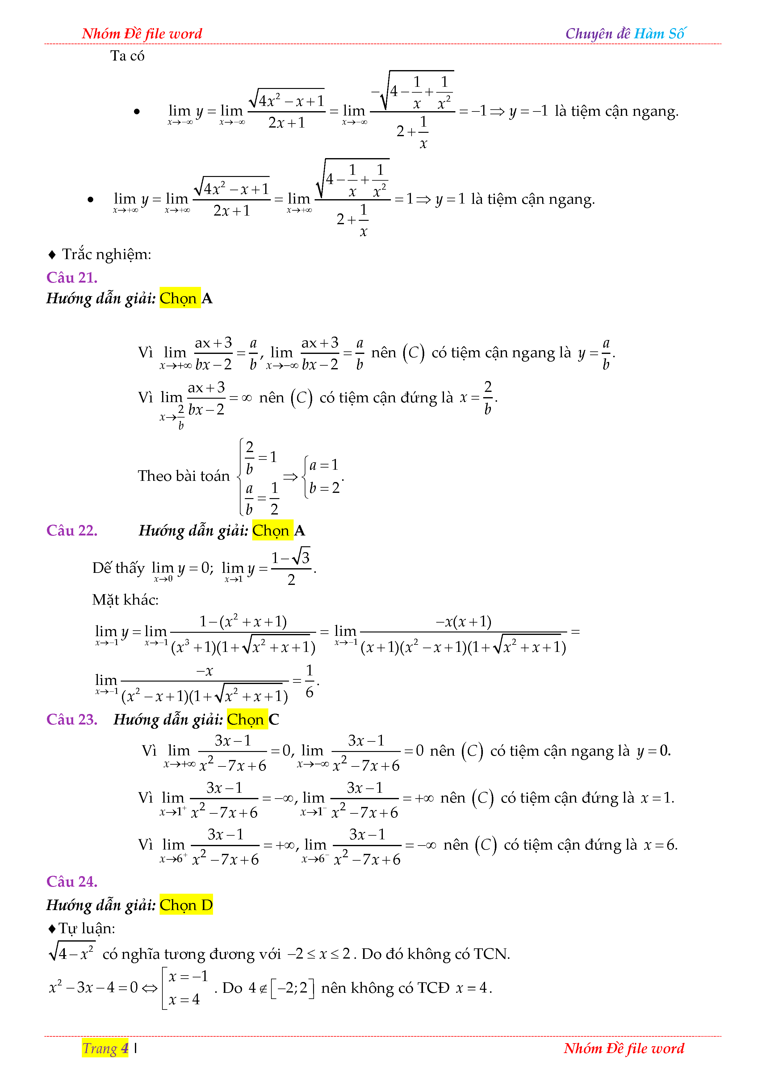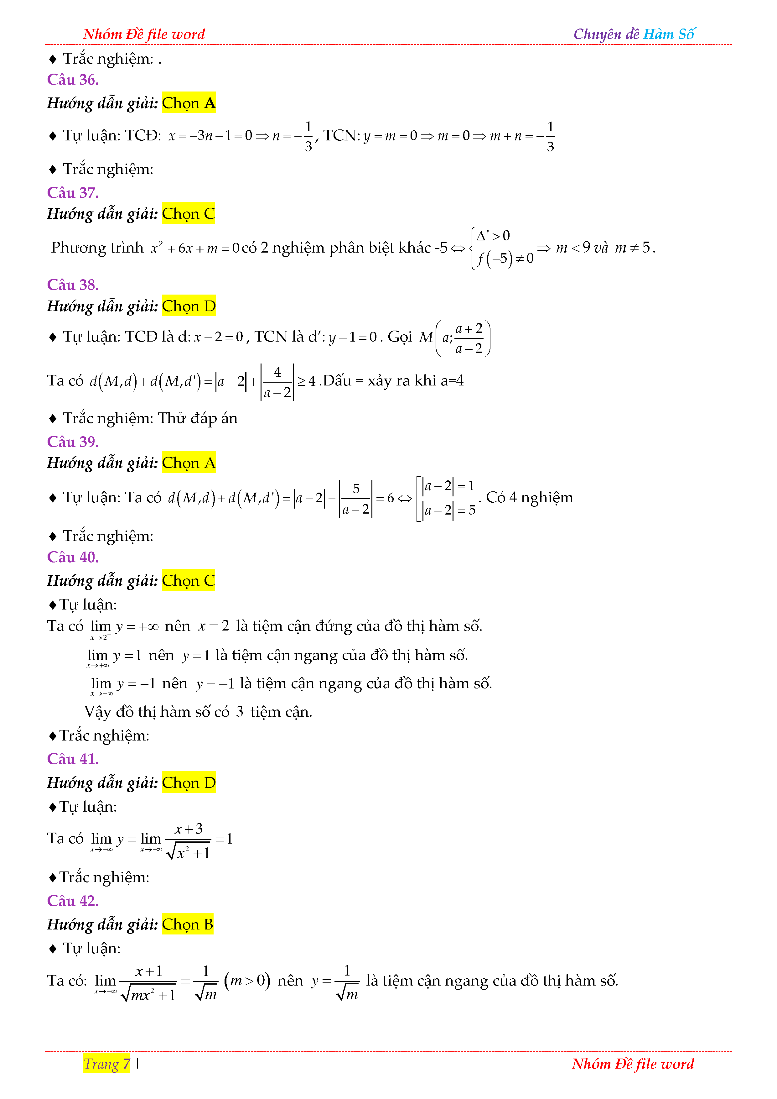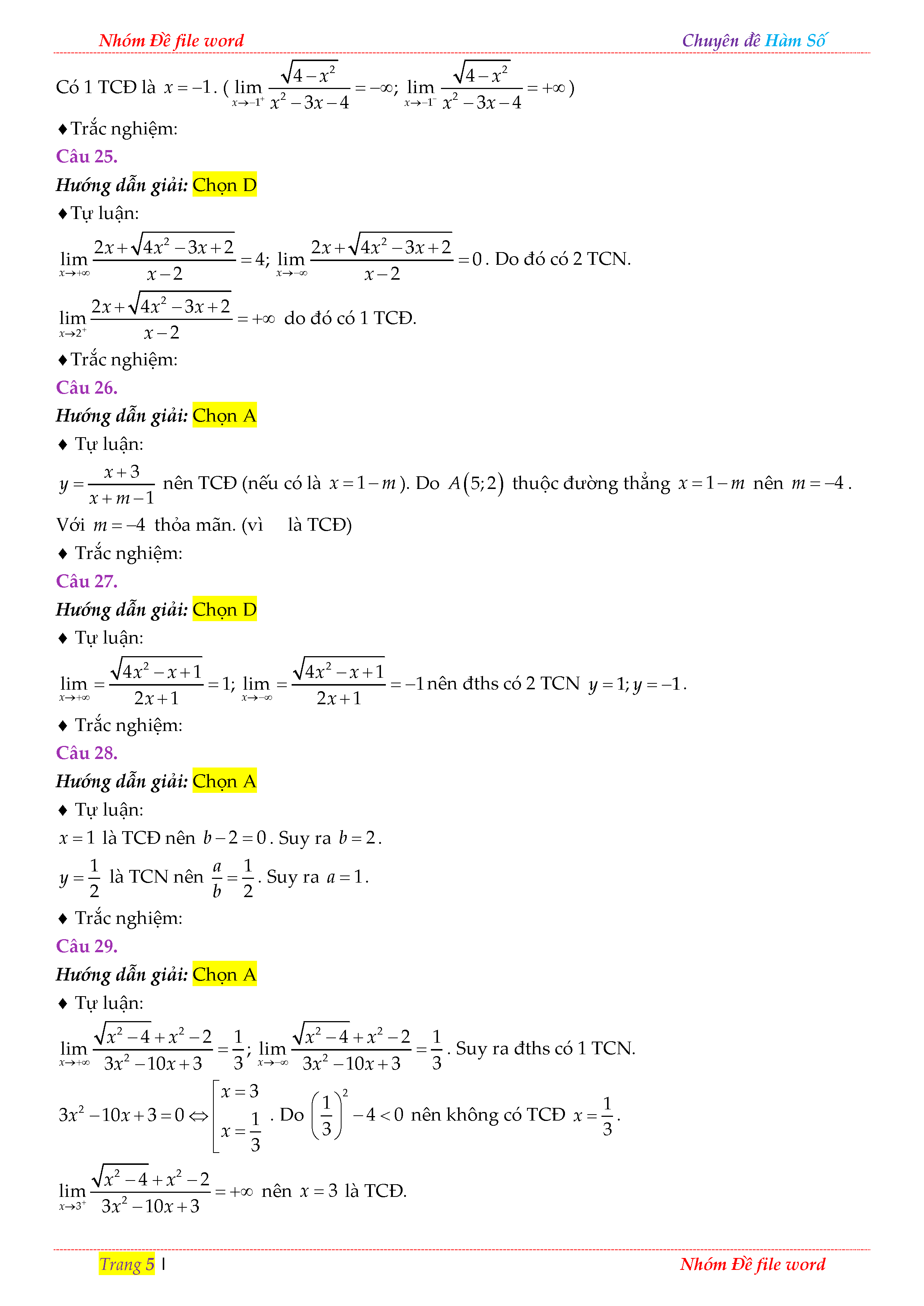 TRẮC NGHIỆM CHUYÊN ĐỀ TIỆM CẬN CỦA ĐỒ THỊ HÀM SỐ TRONG ĐỀ THI THỬ THPT QUỐC GIA 2018 - LỜI GIẢI
