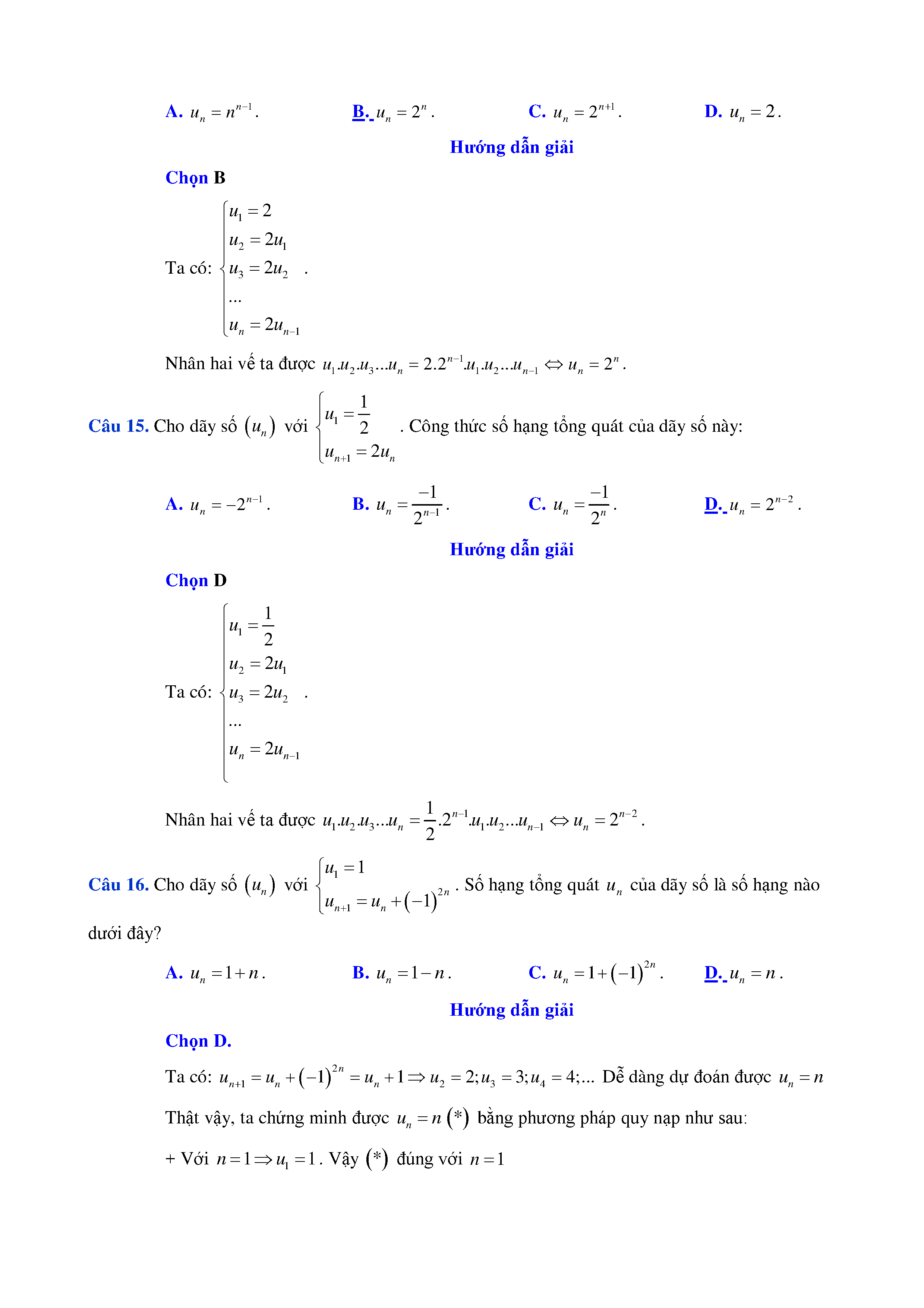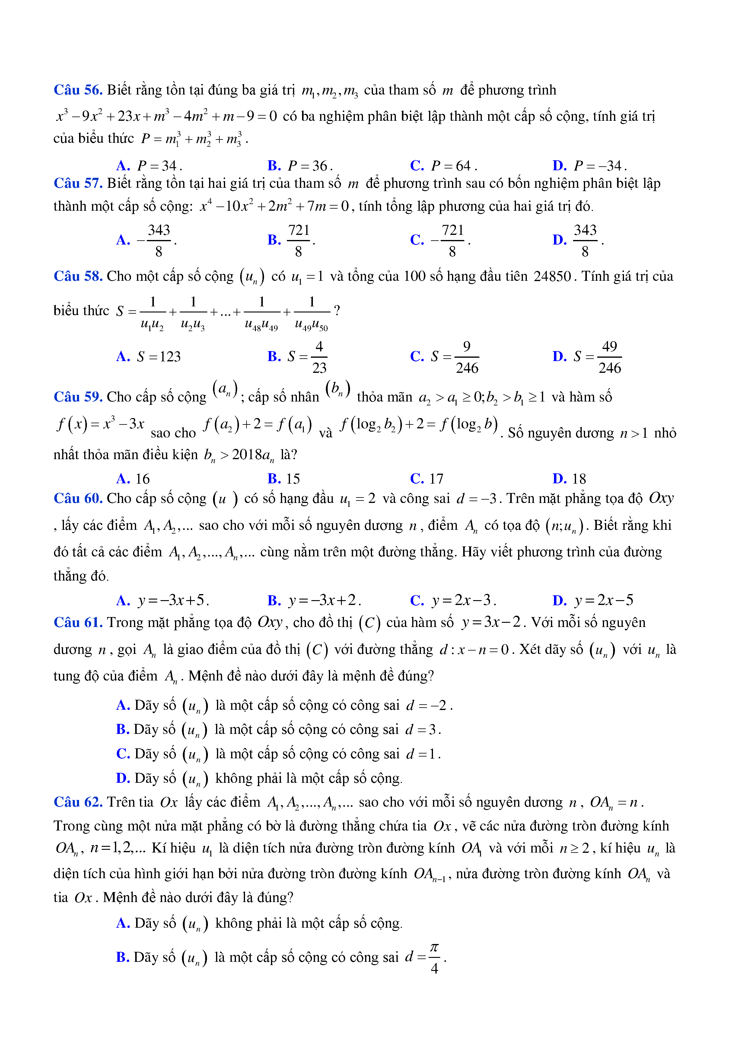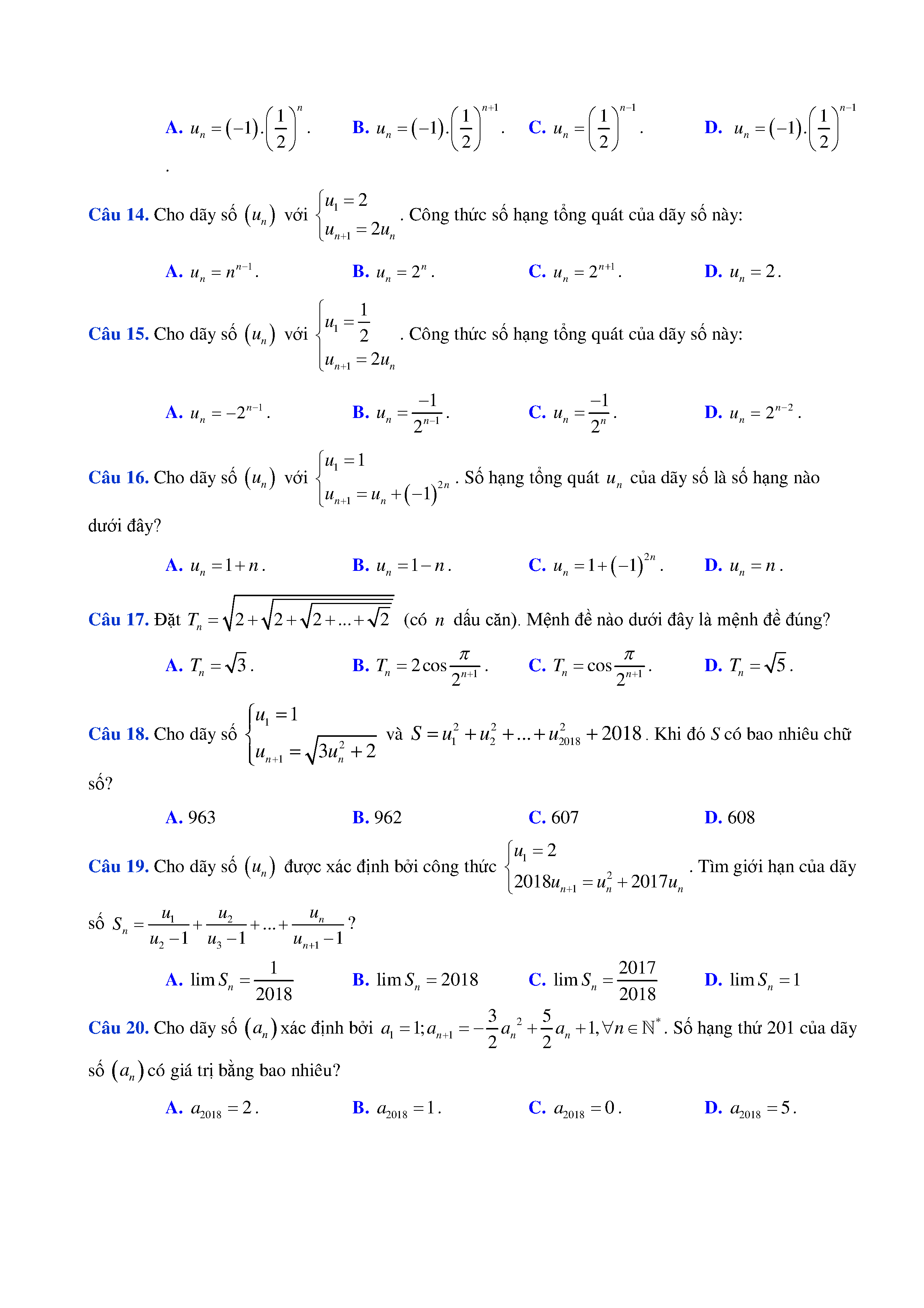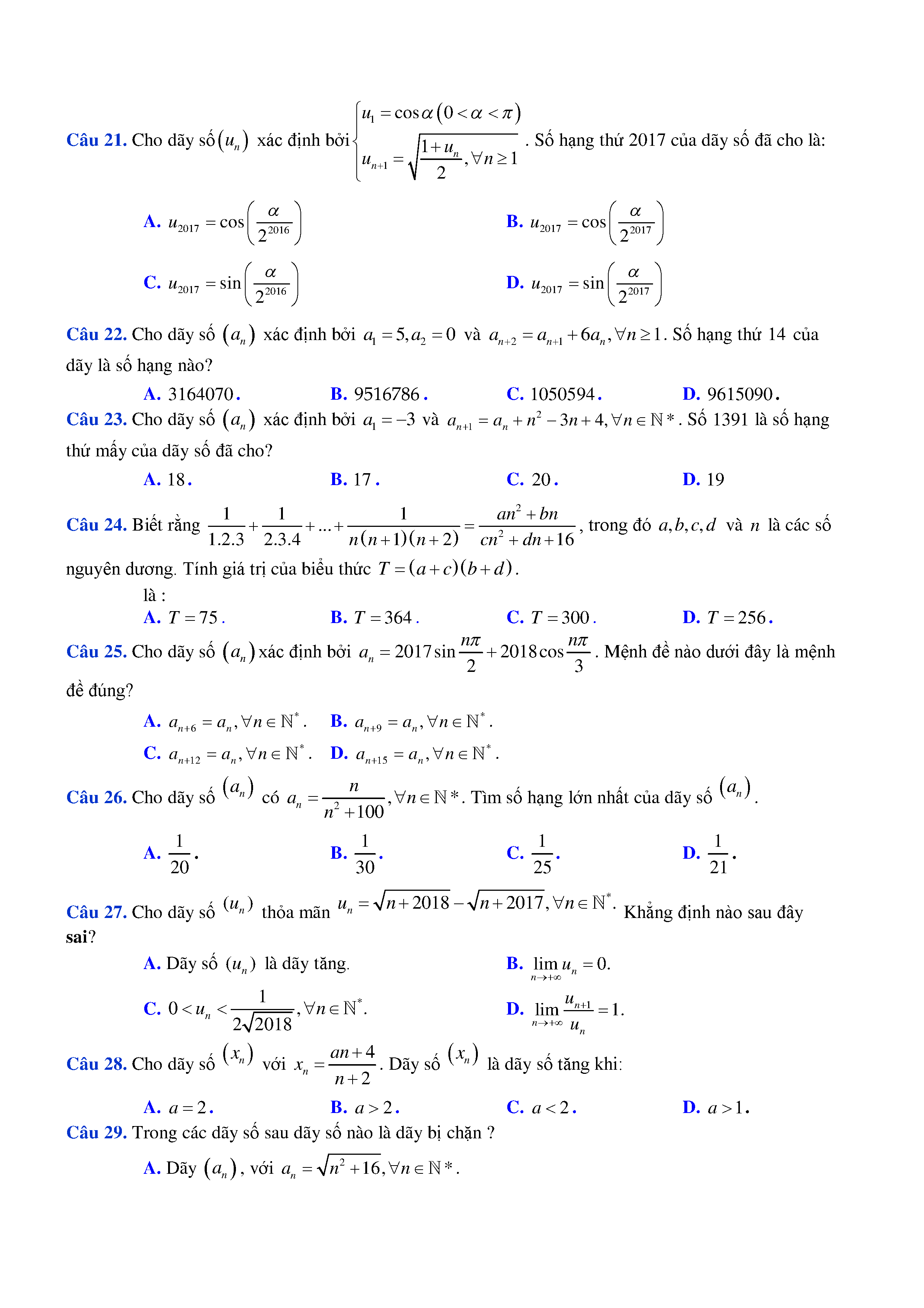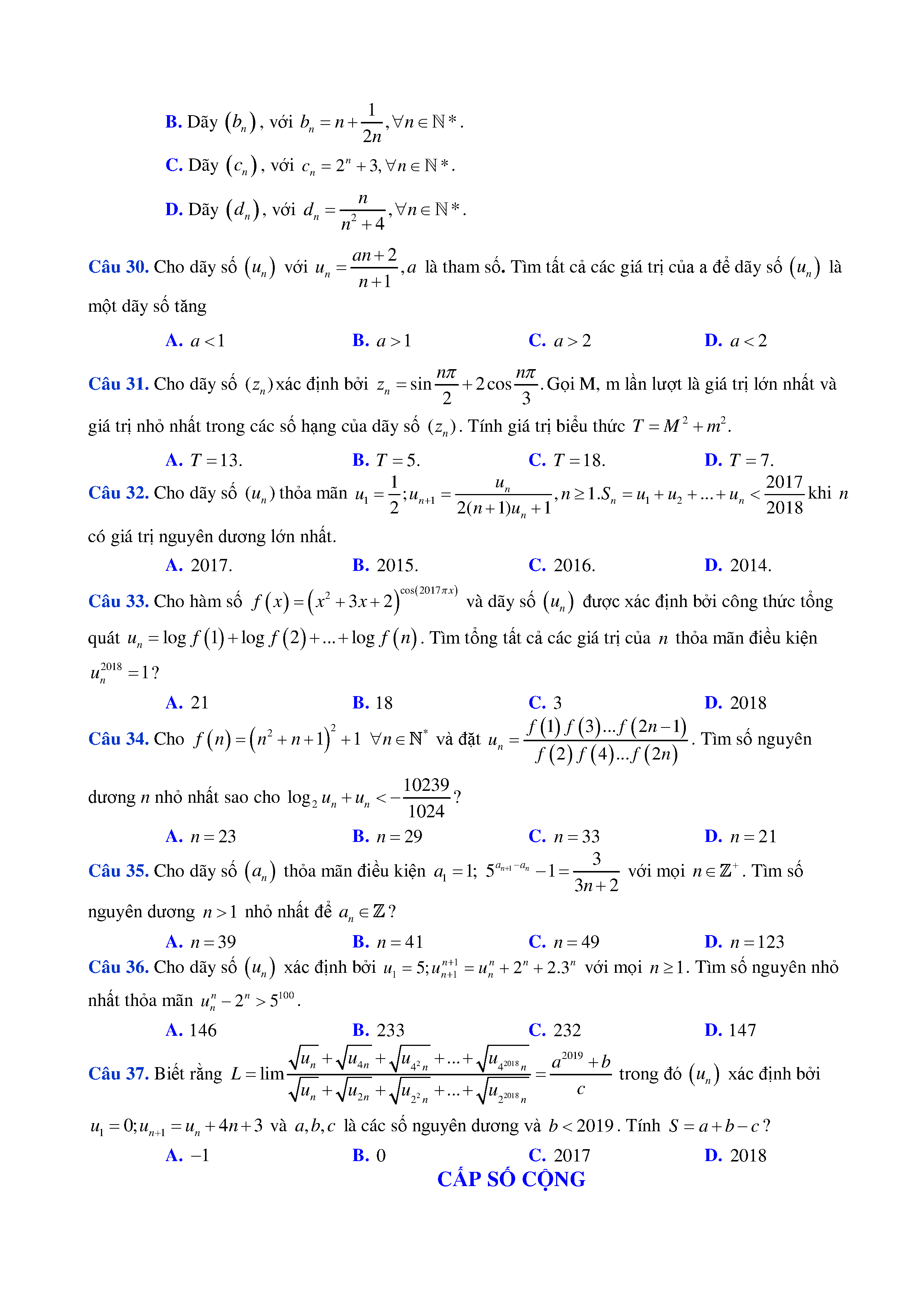 Trắc nghiệm nâng cao chuyên đề dãy số, cấp số cộng, cấp số nhân