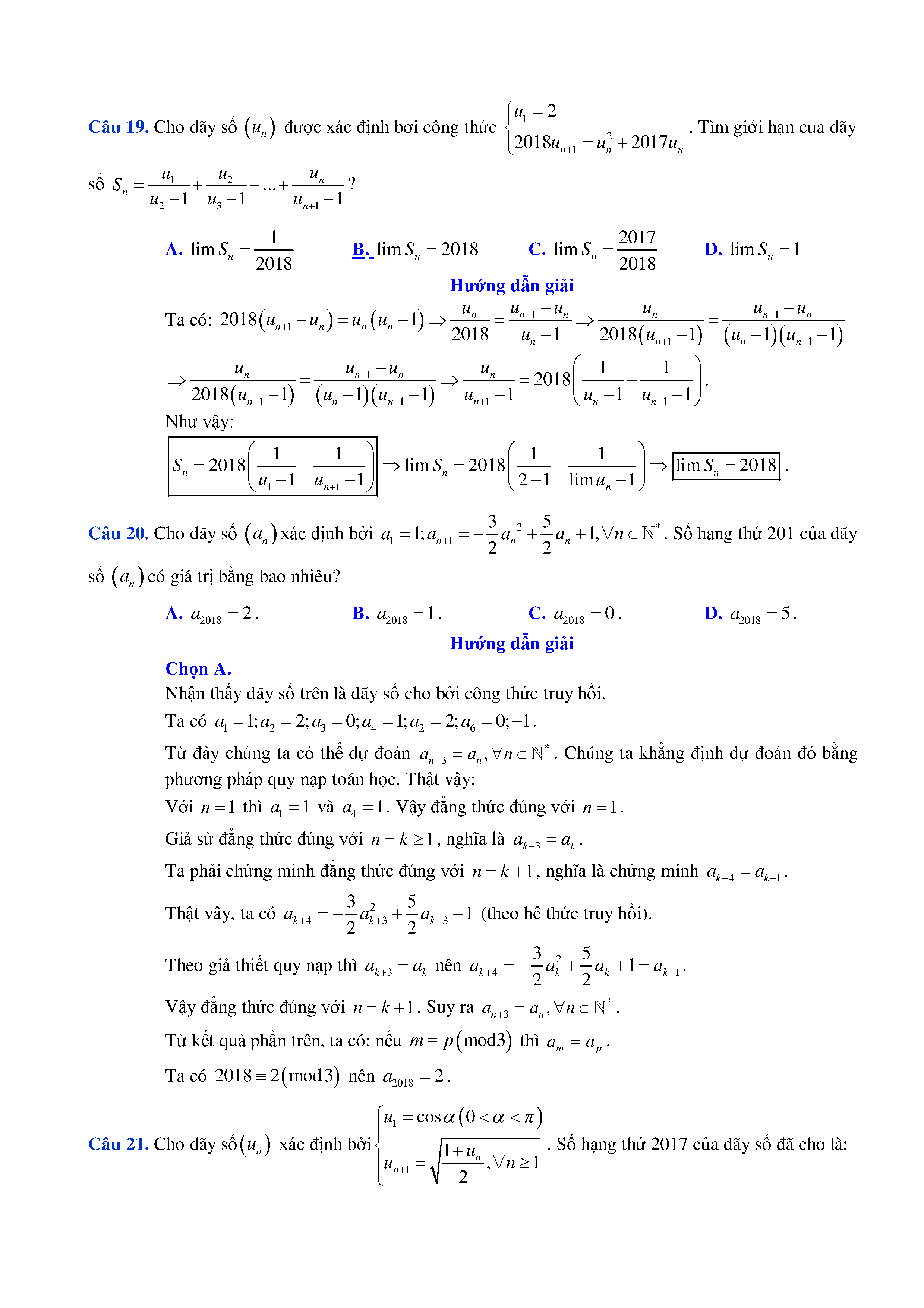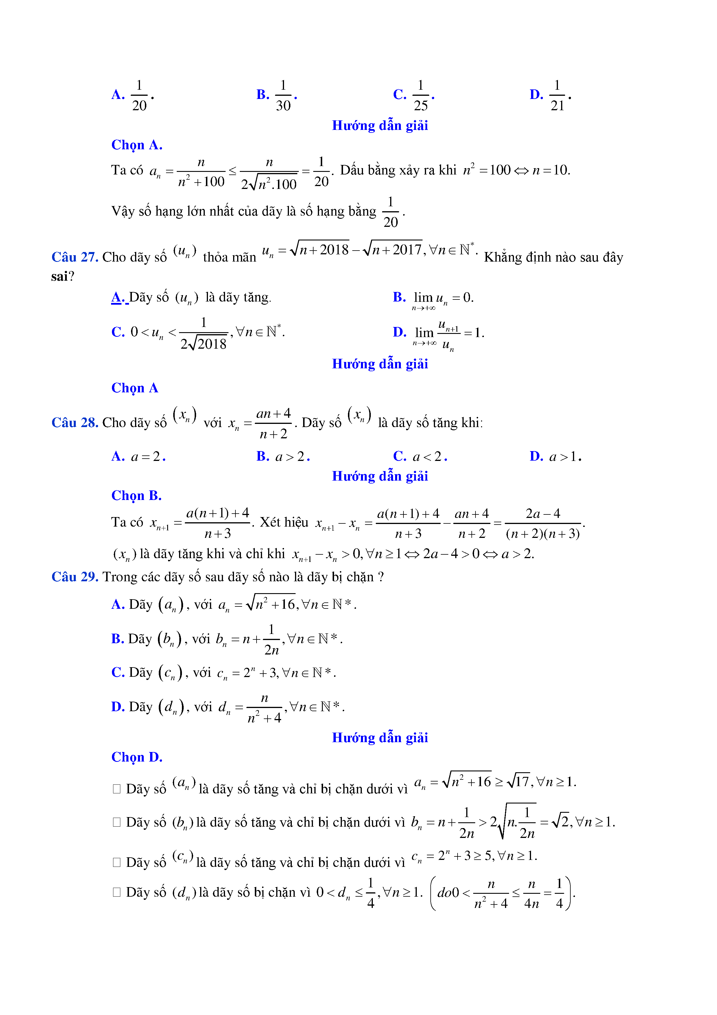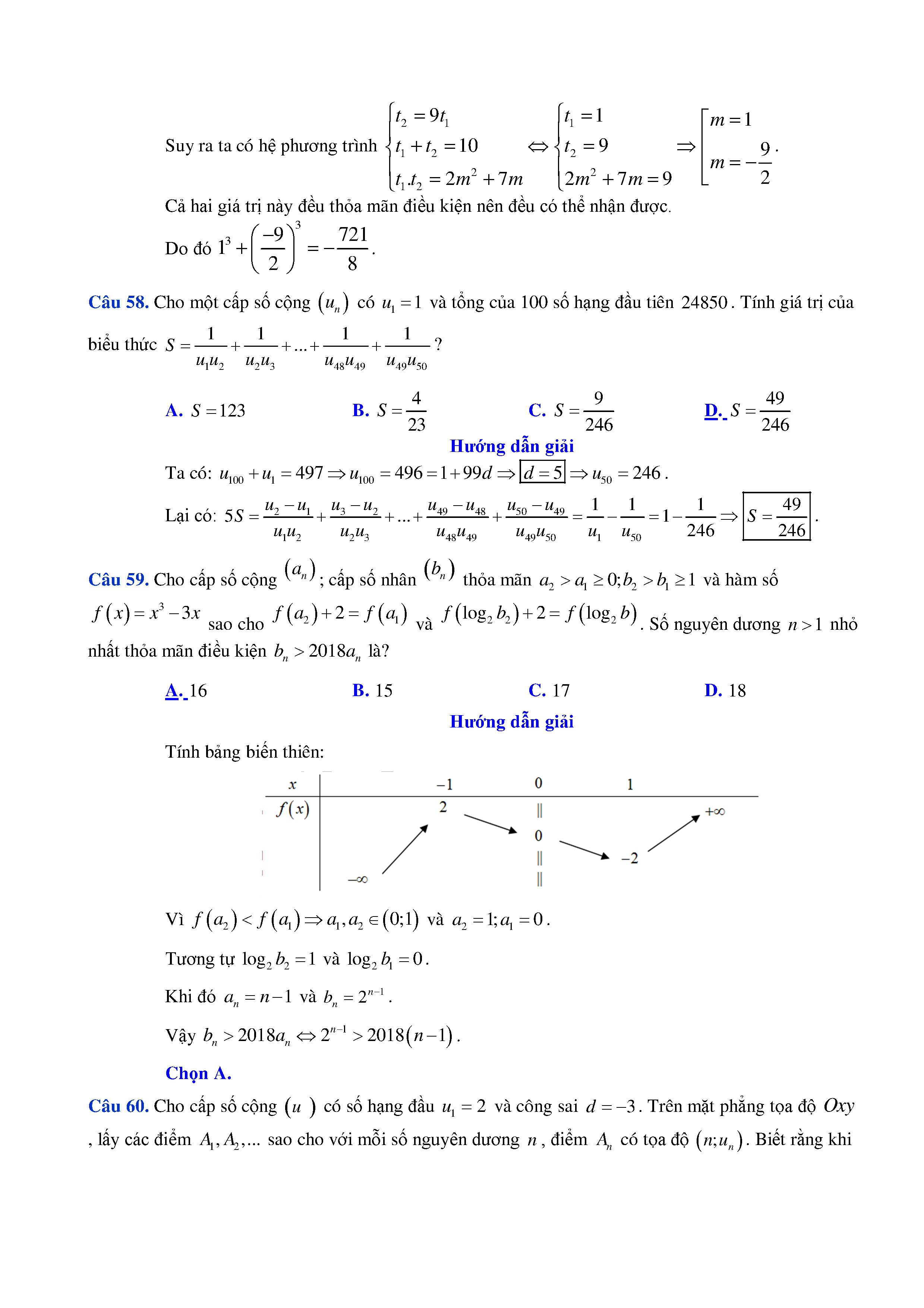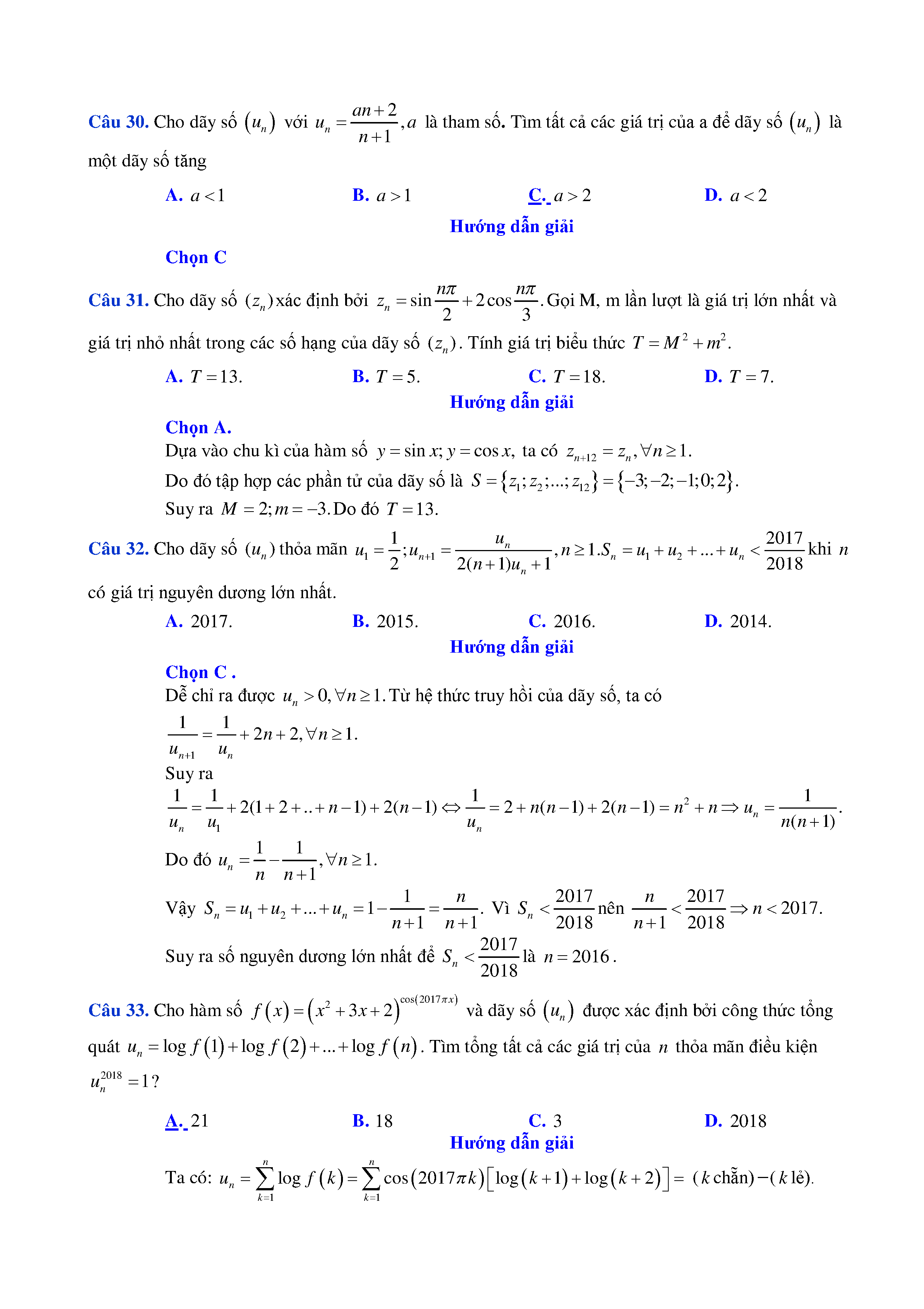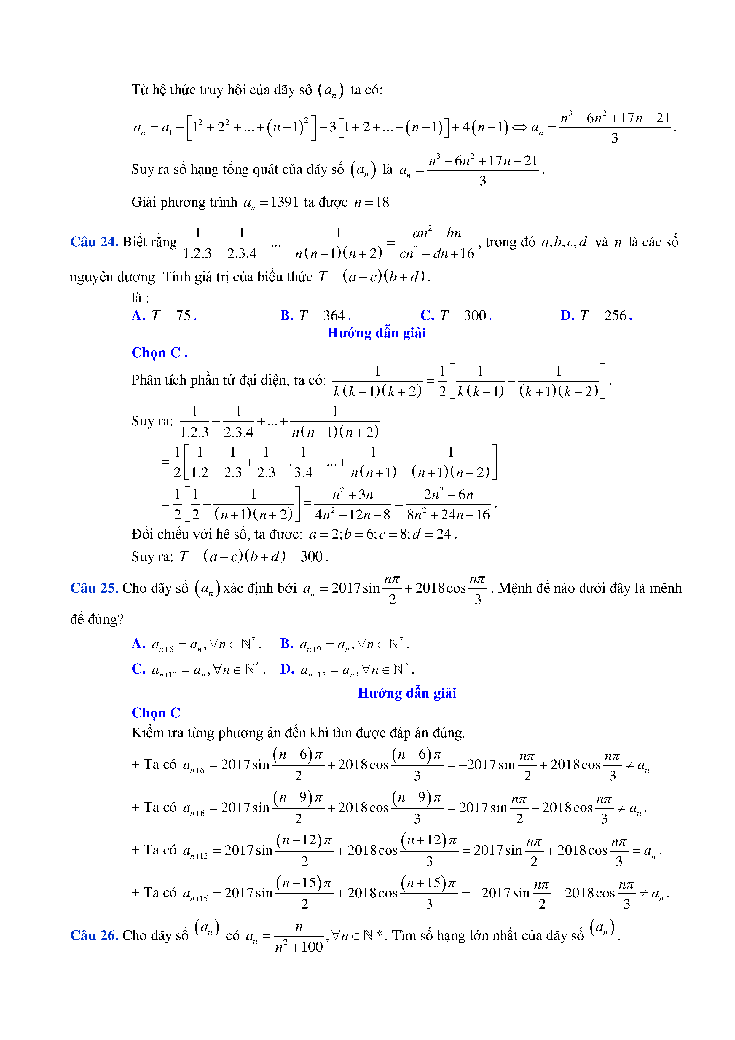 Trắc nghiệm nâng cao chuyên đề dãy số, cấp số cộng, cấp số nhân