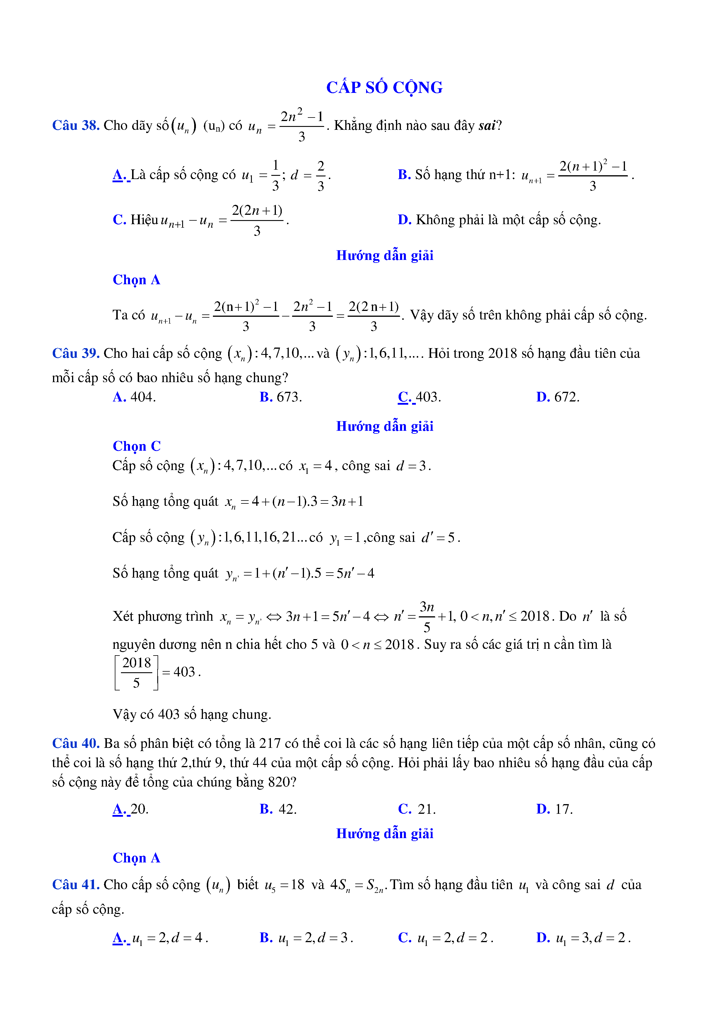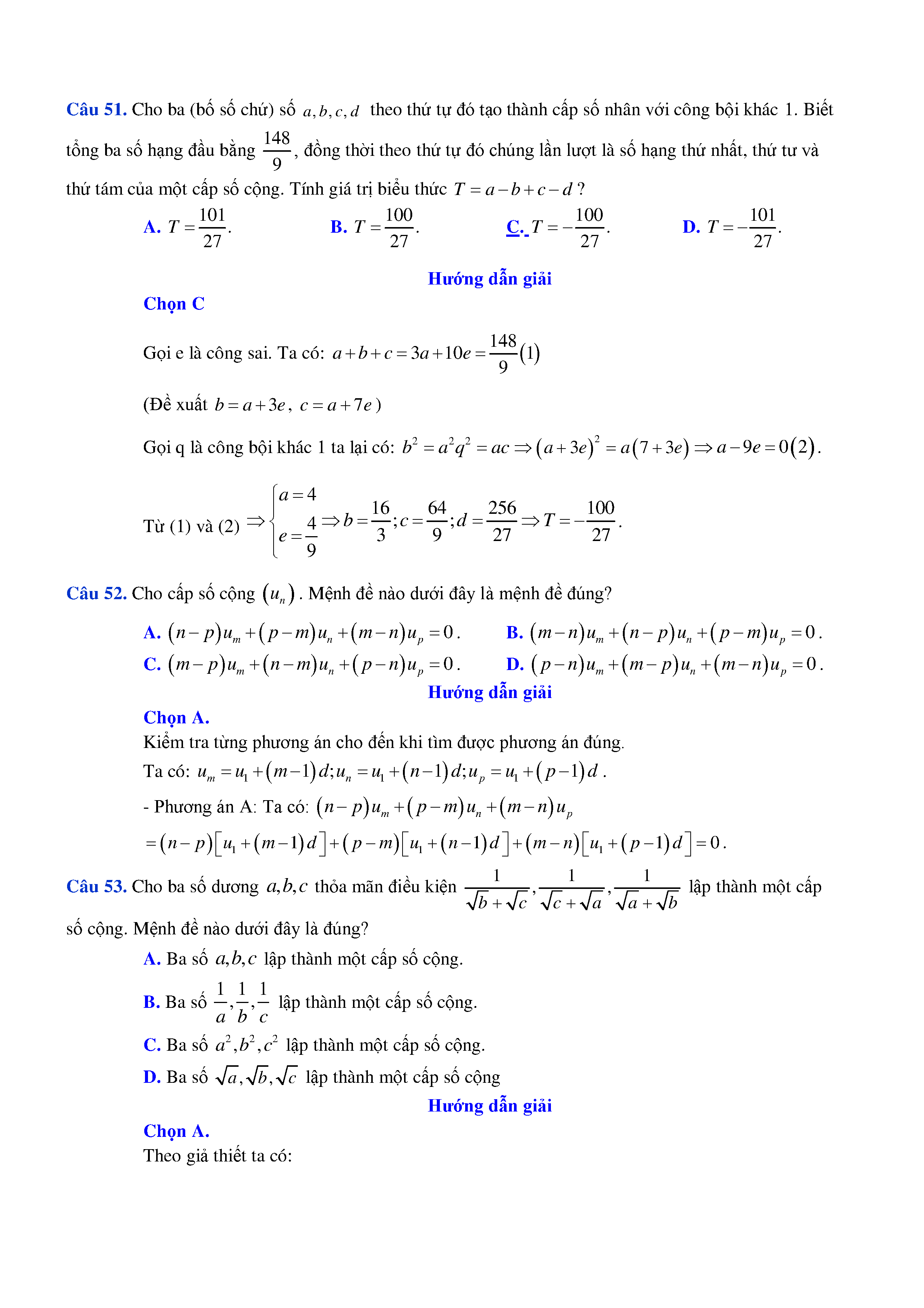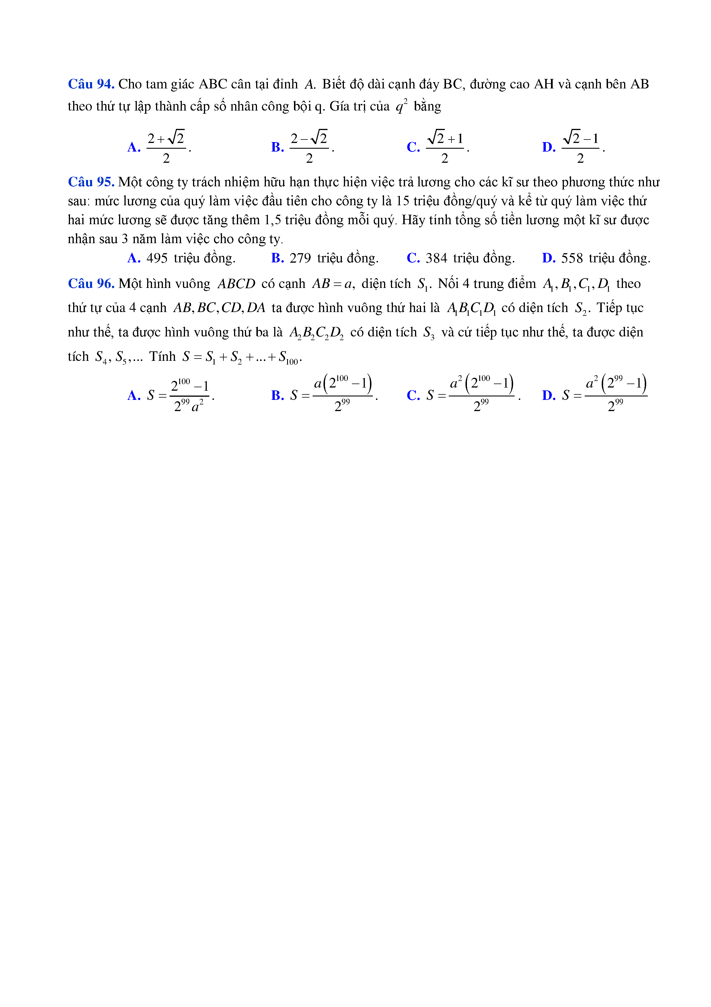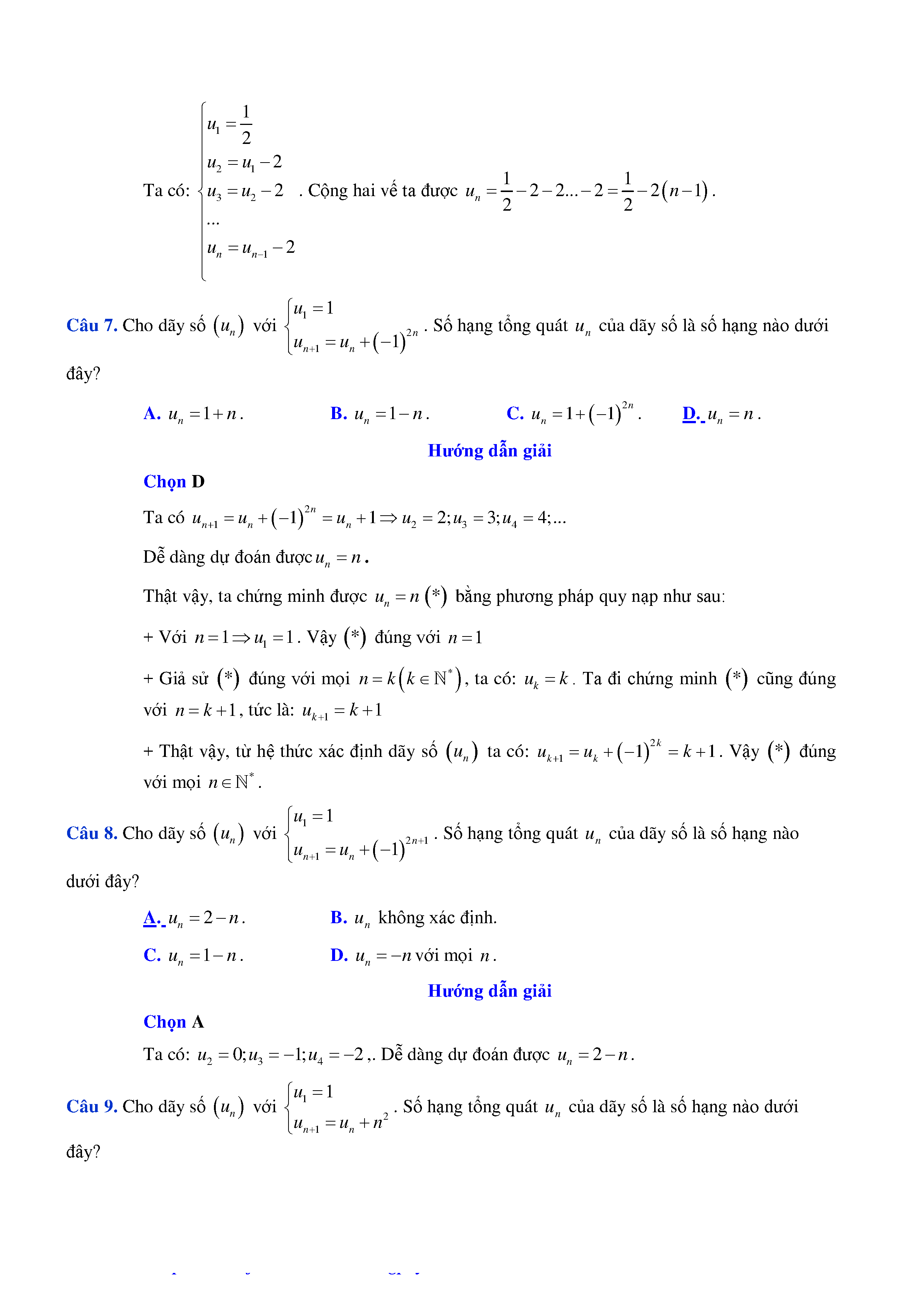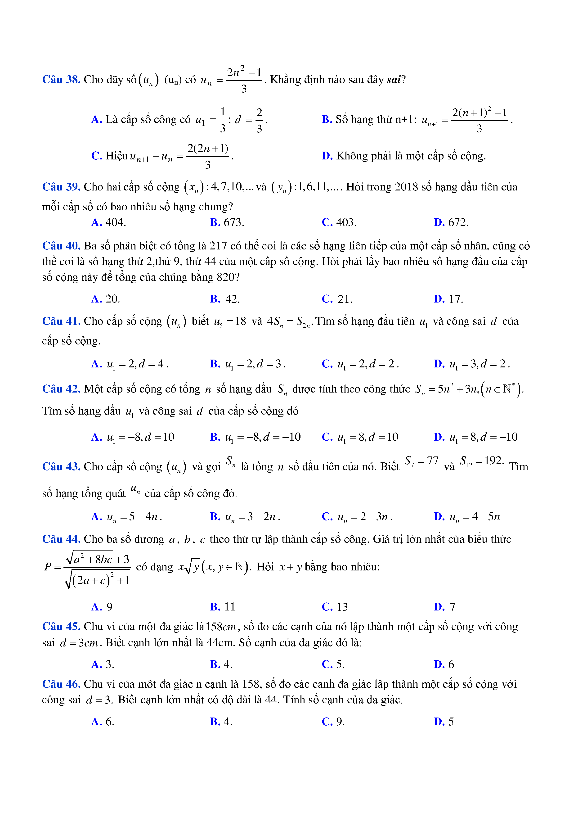 Trắc nghiệm nâng cao chuyên đề dãy số, cấp số cộng, cấp số nhân