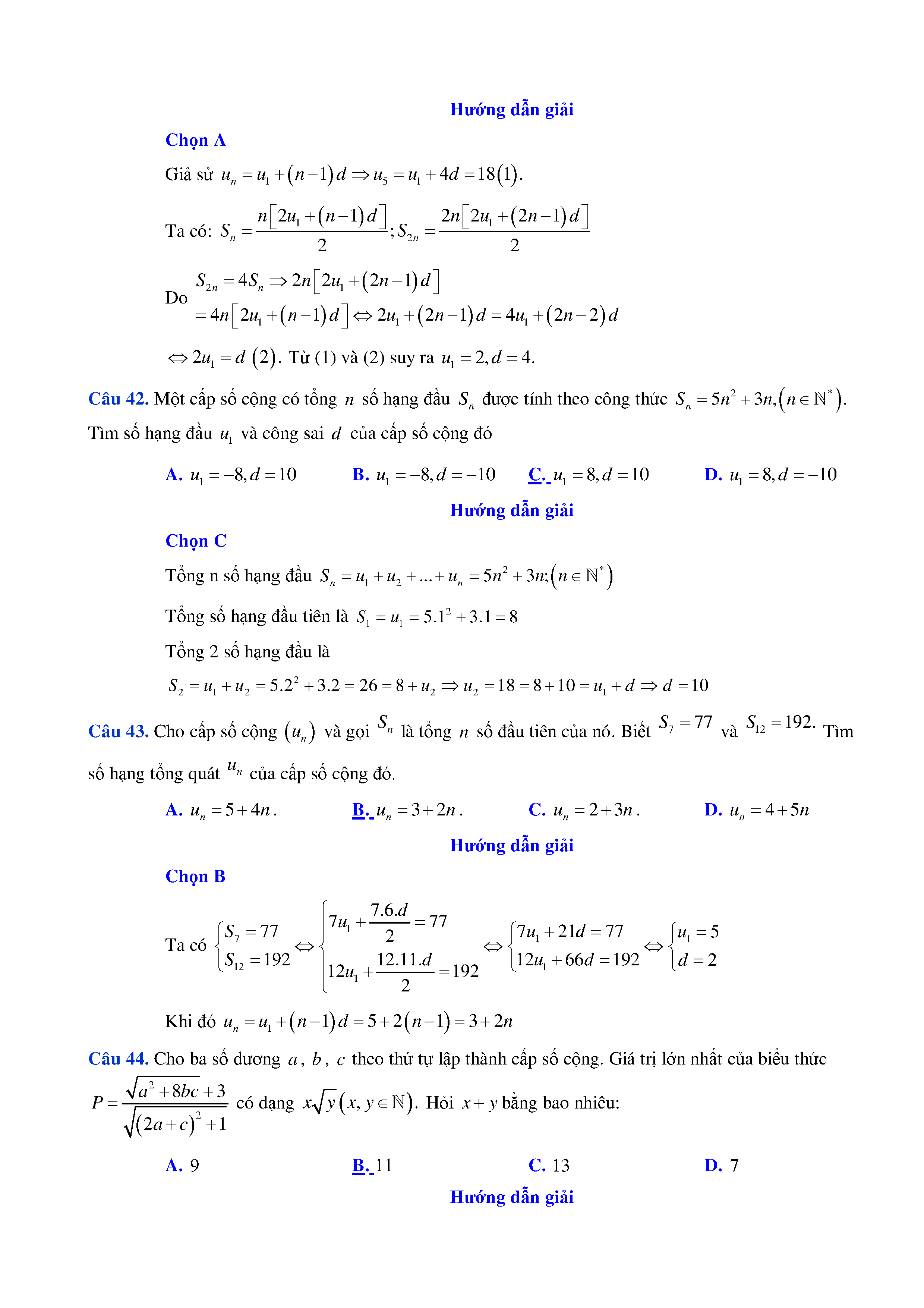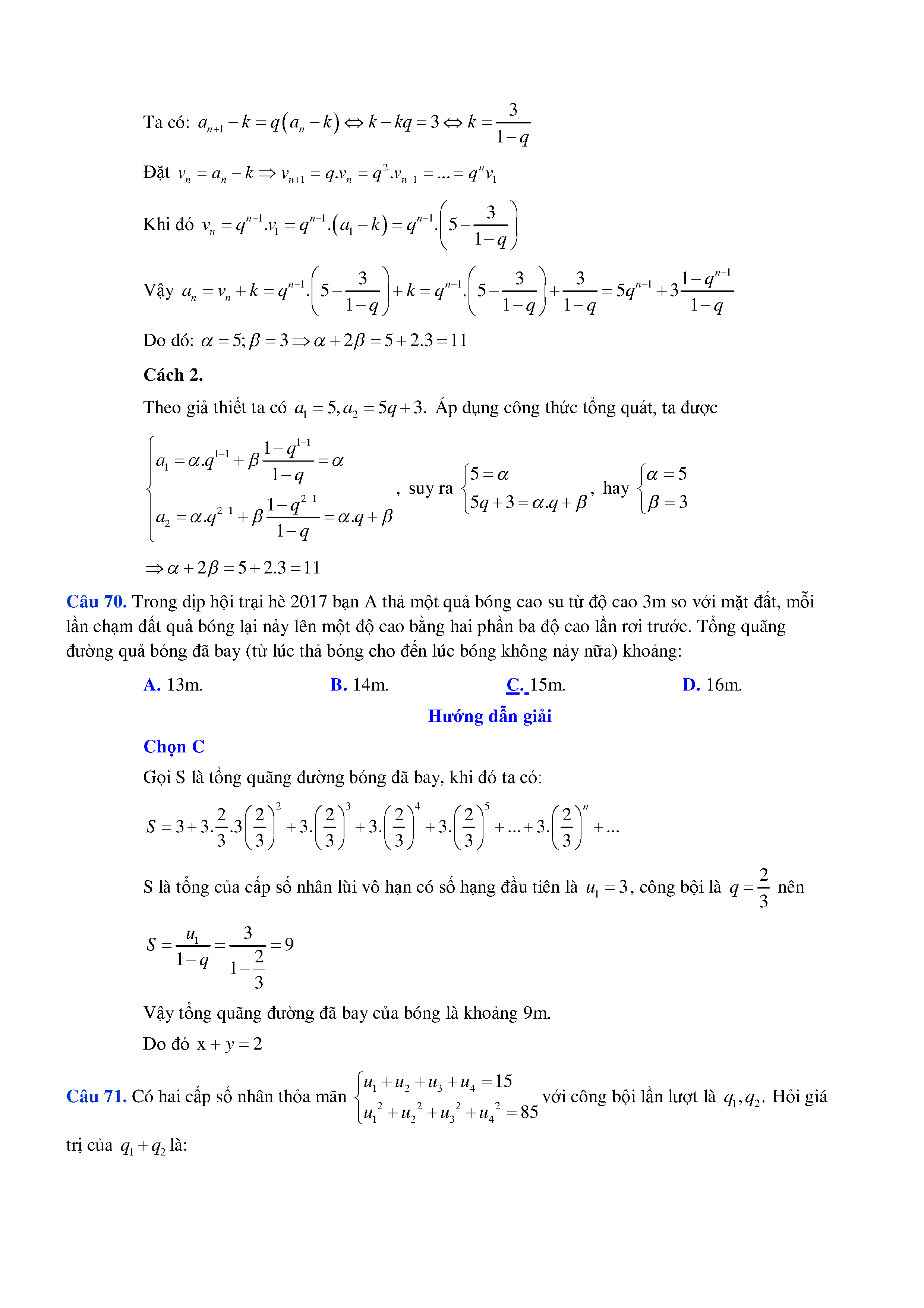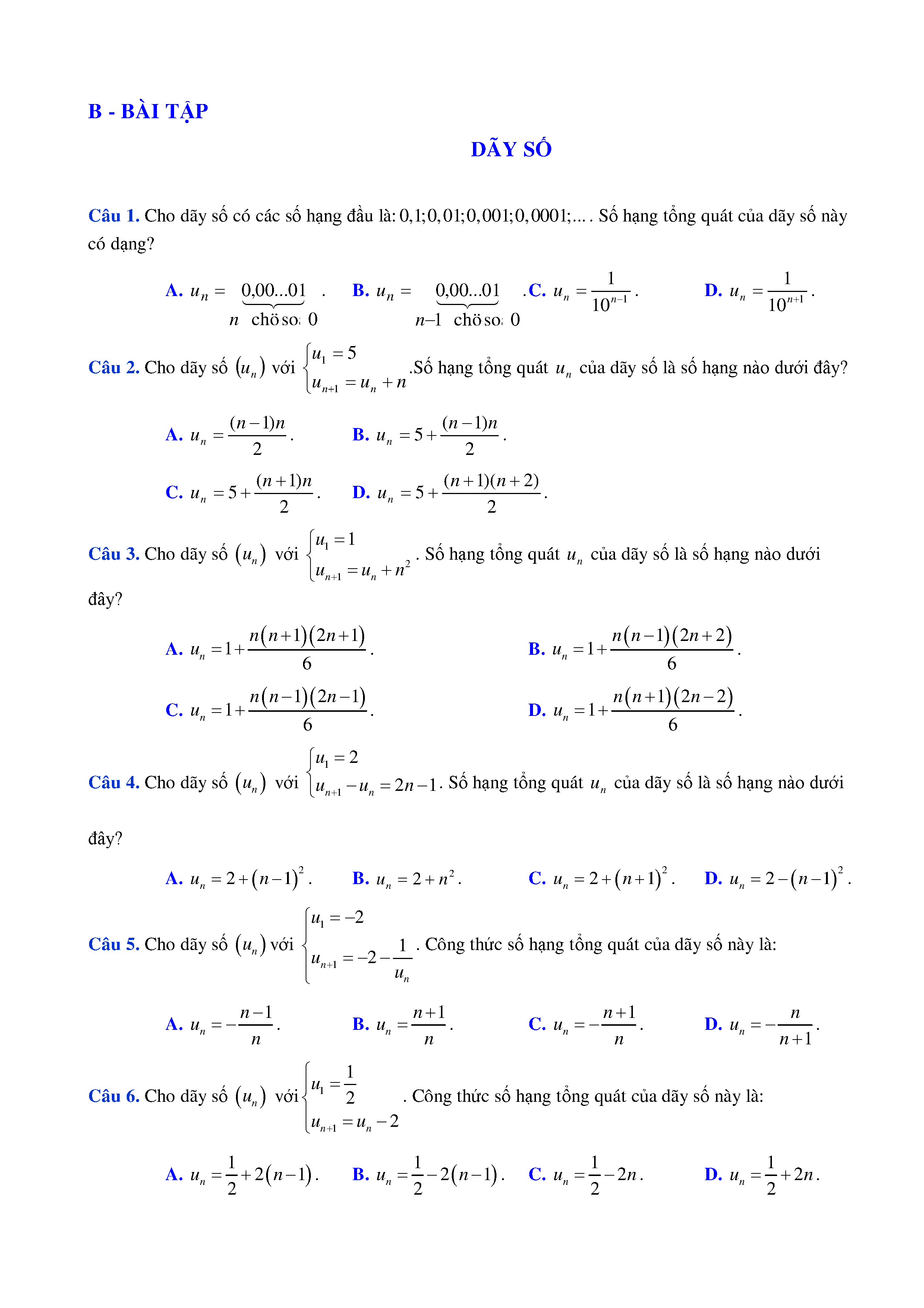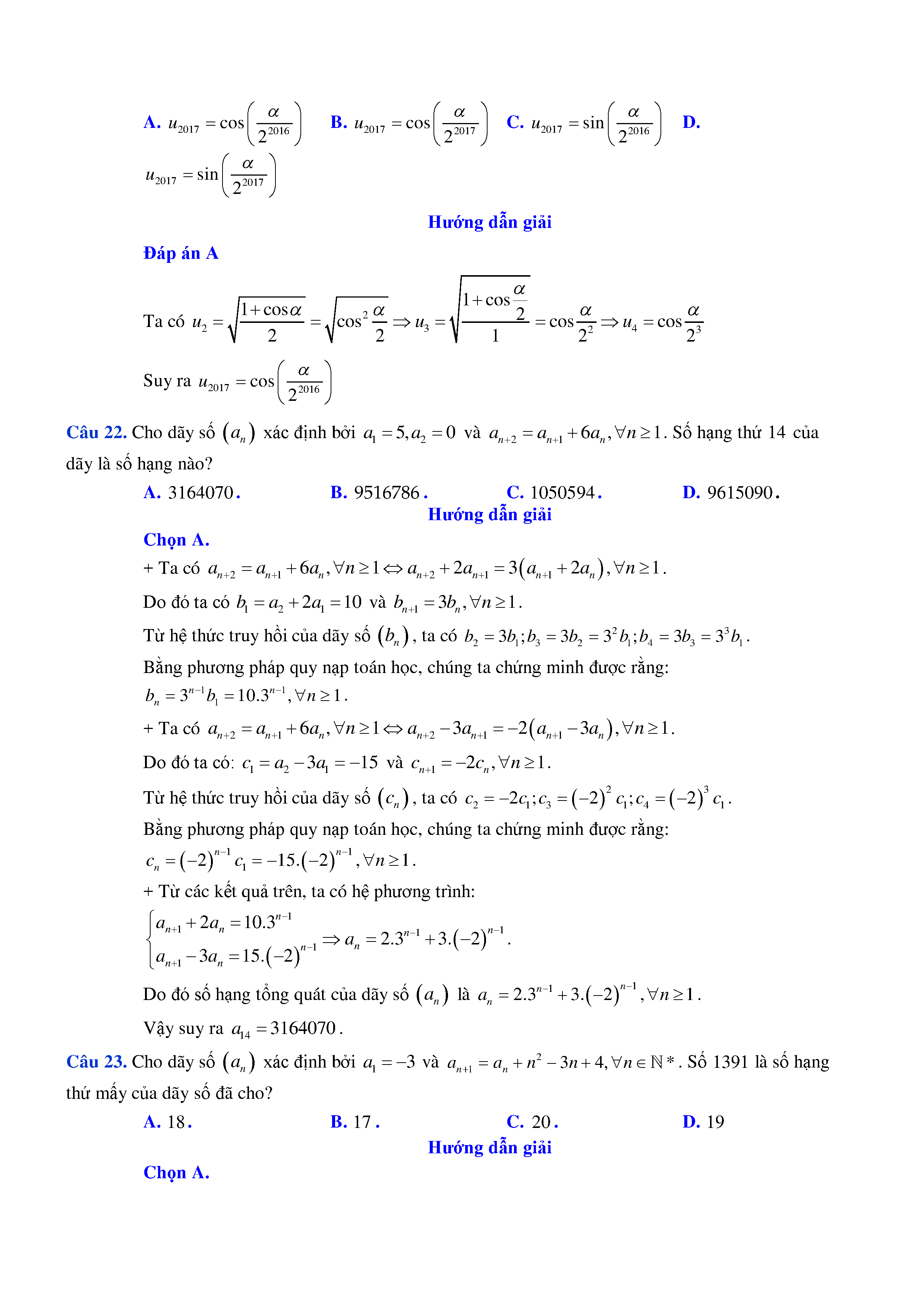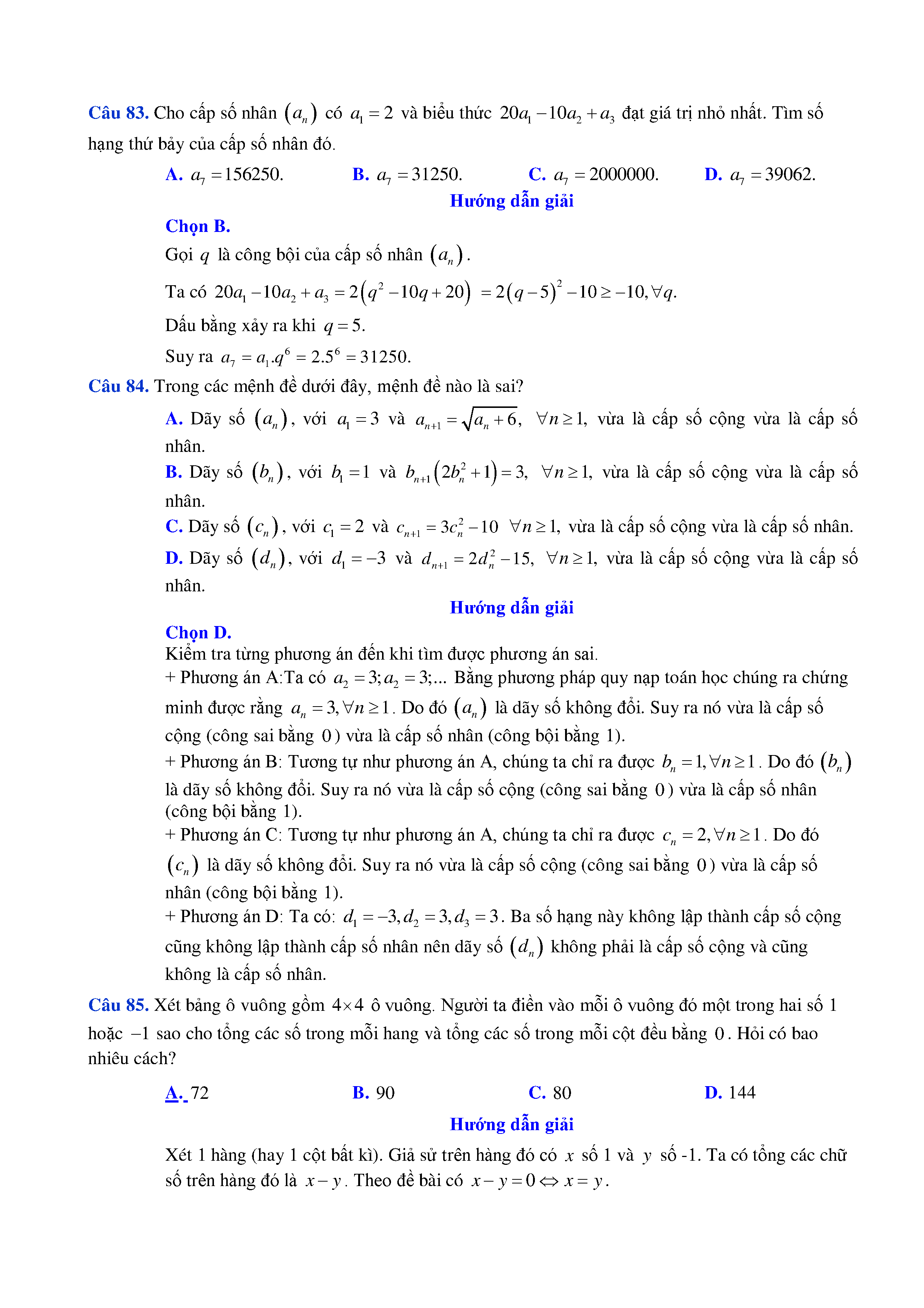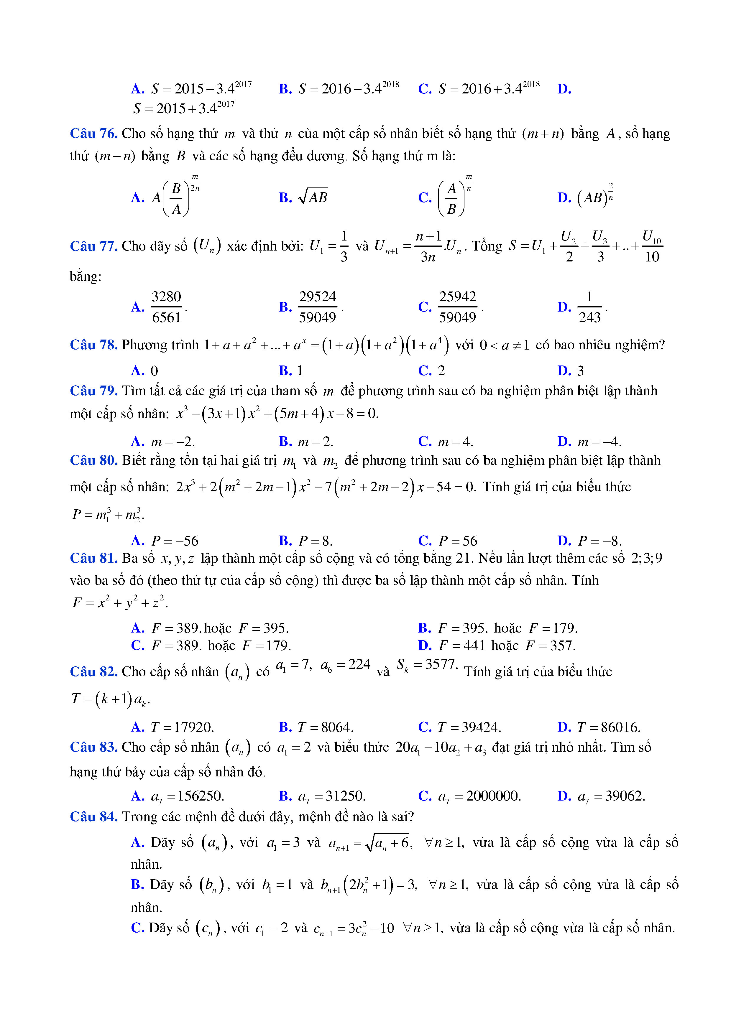 Trắc nghiệm nâng cao chuyên đề dãy số, cấp số cộng, cấp số nhân