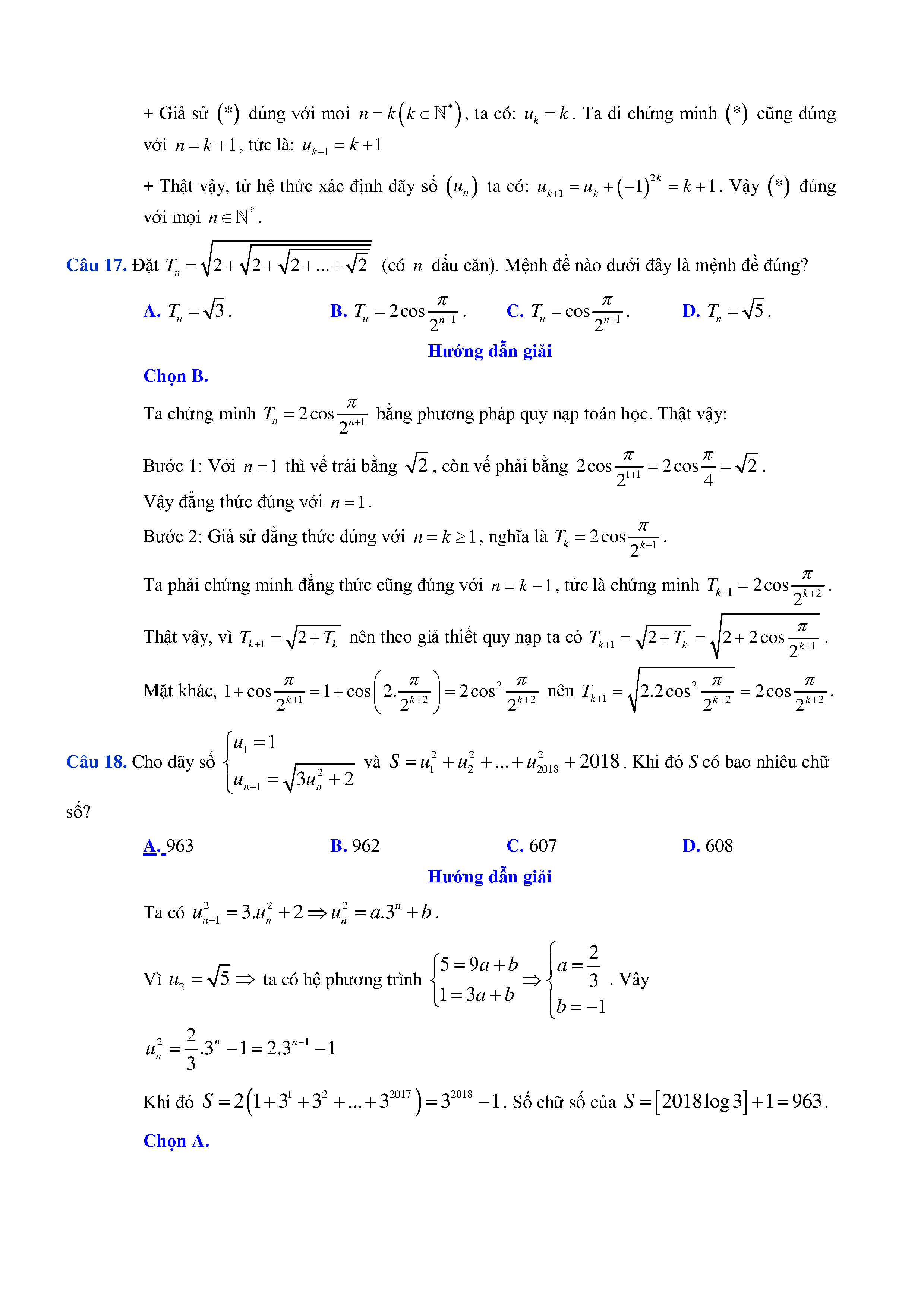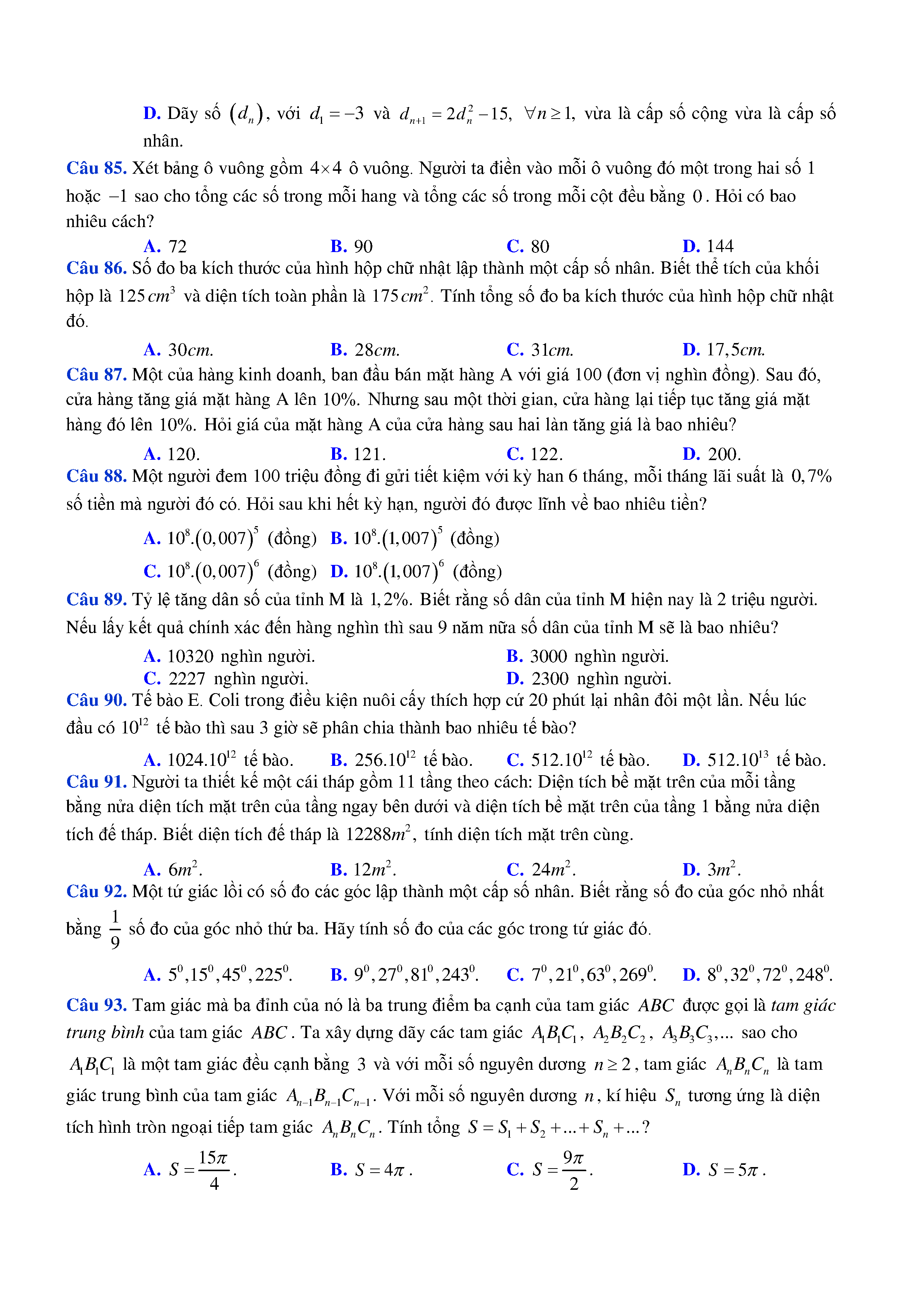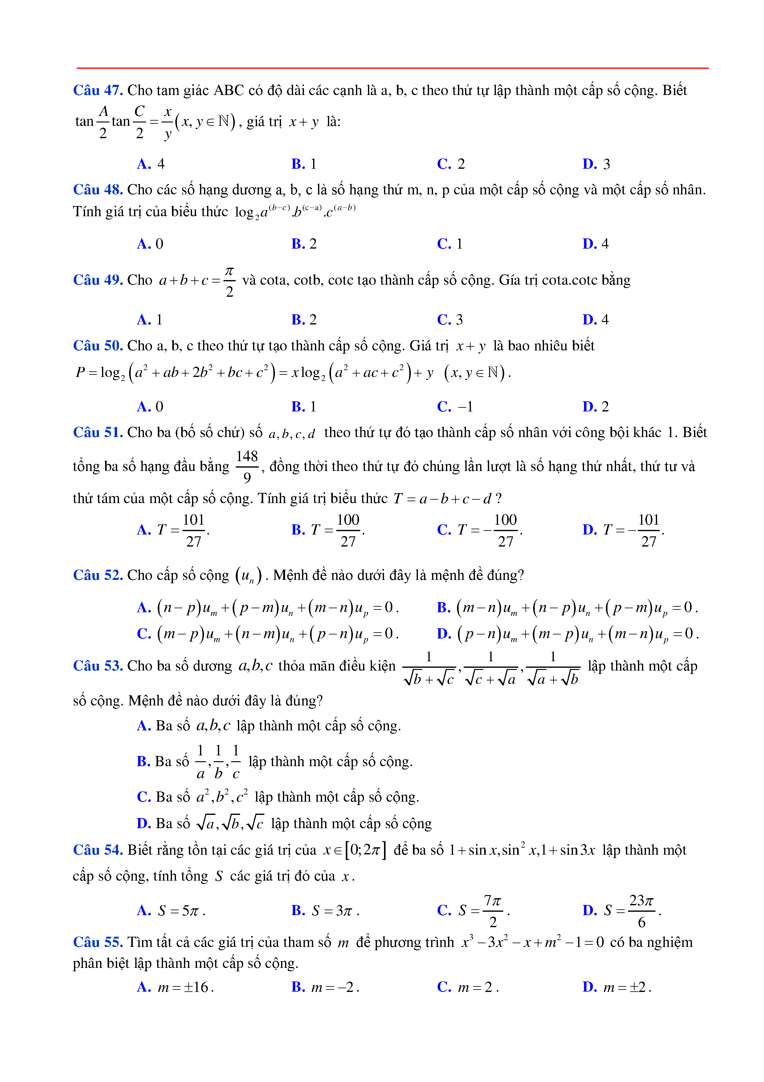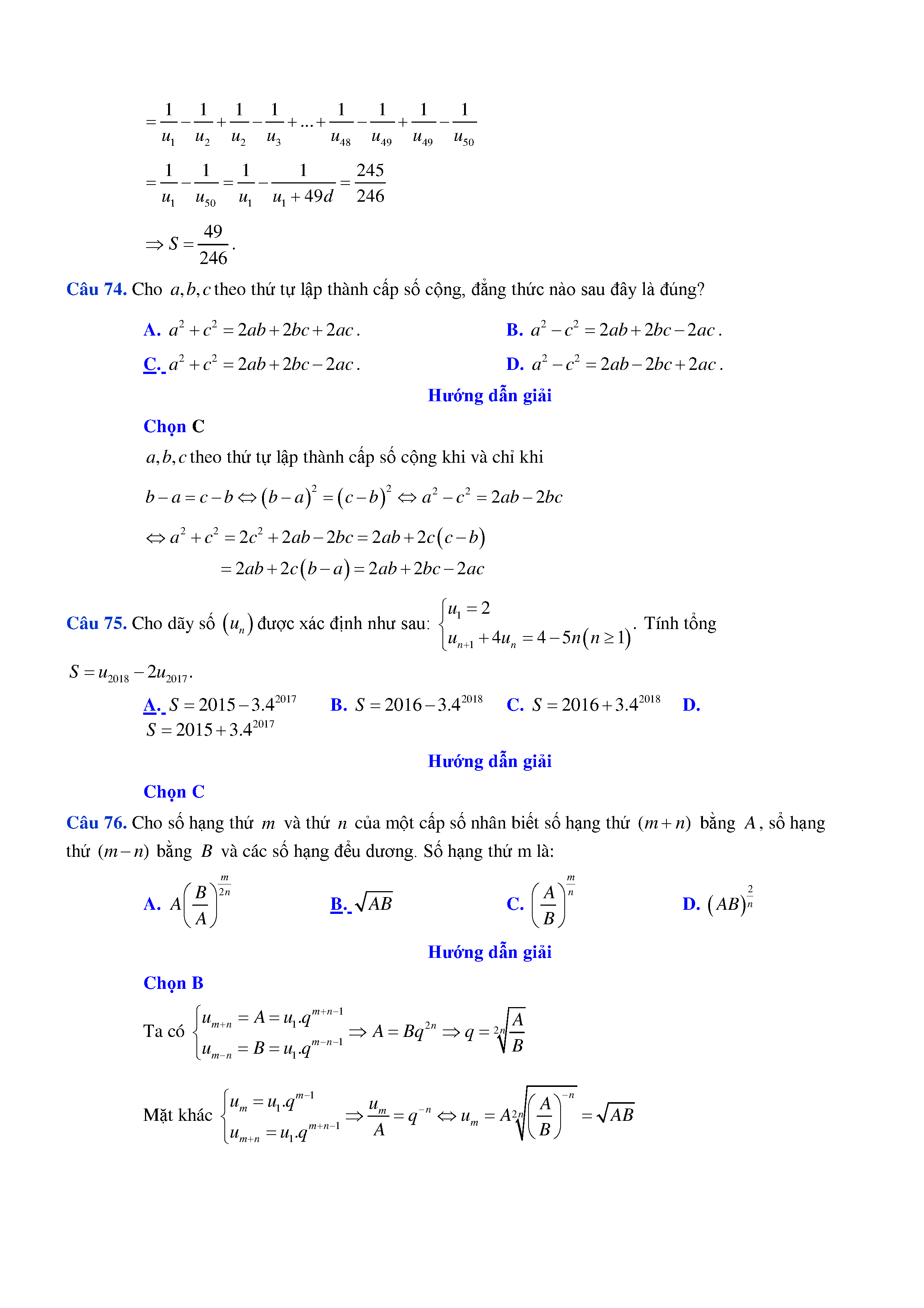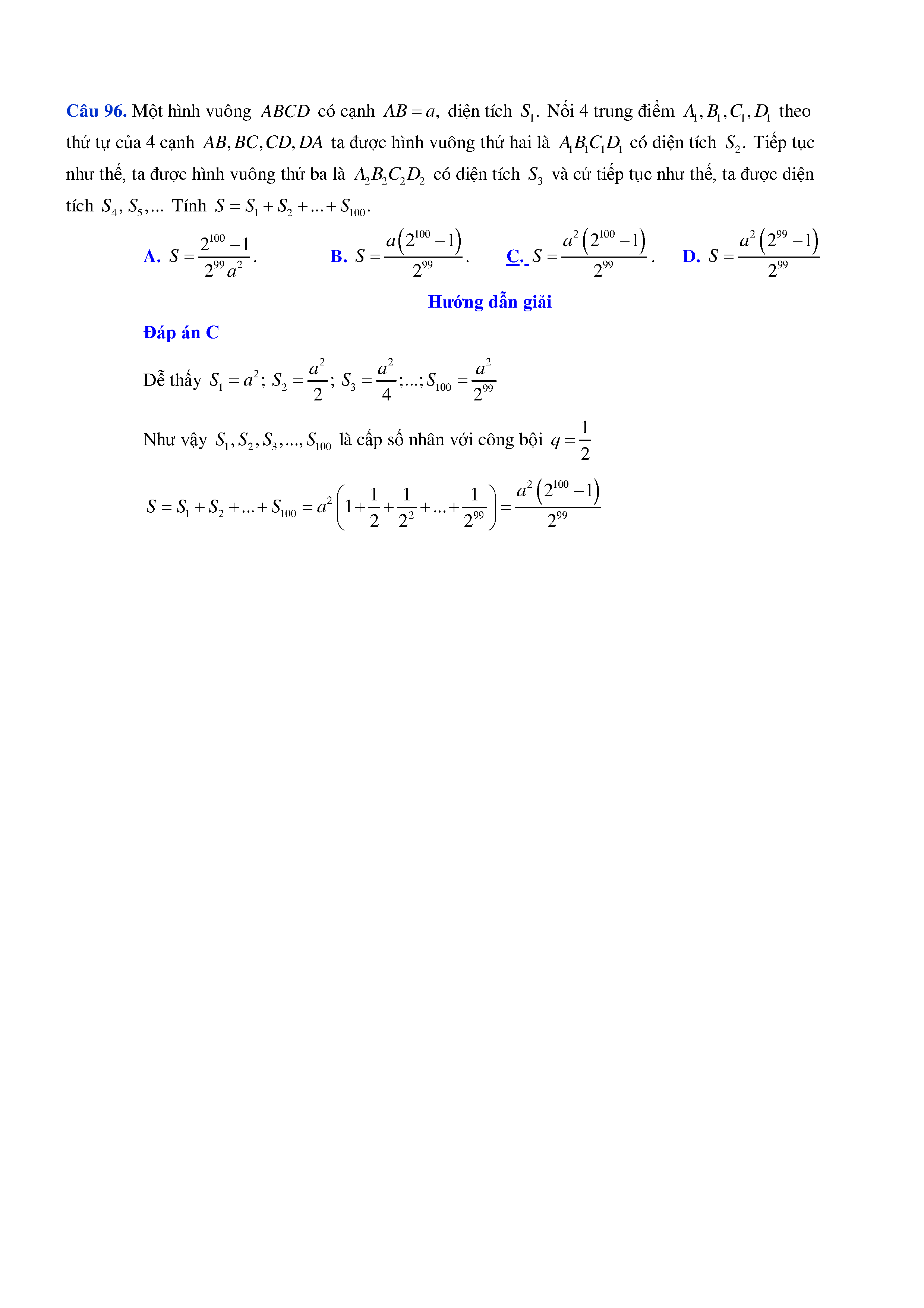 Trắc nghiệm nâng cao chuyên đề dãy số, cấp số cộng, cấp số nhân