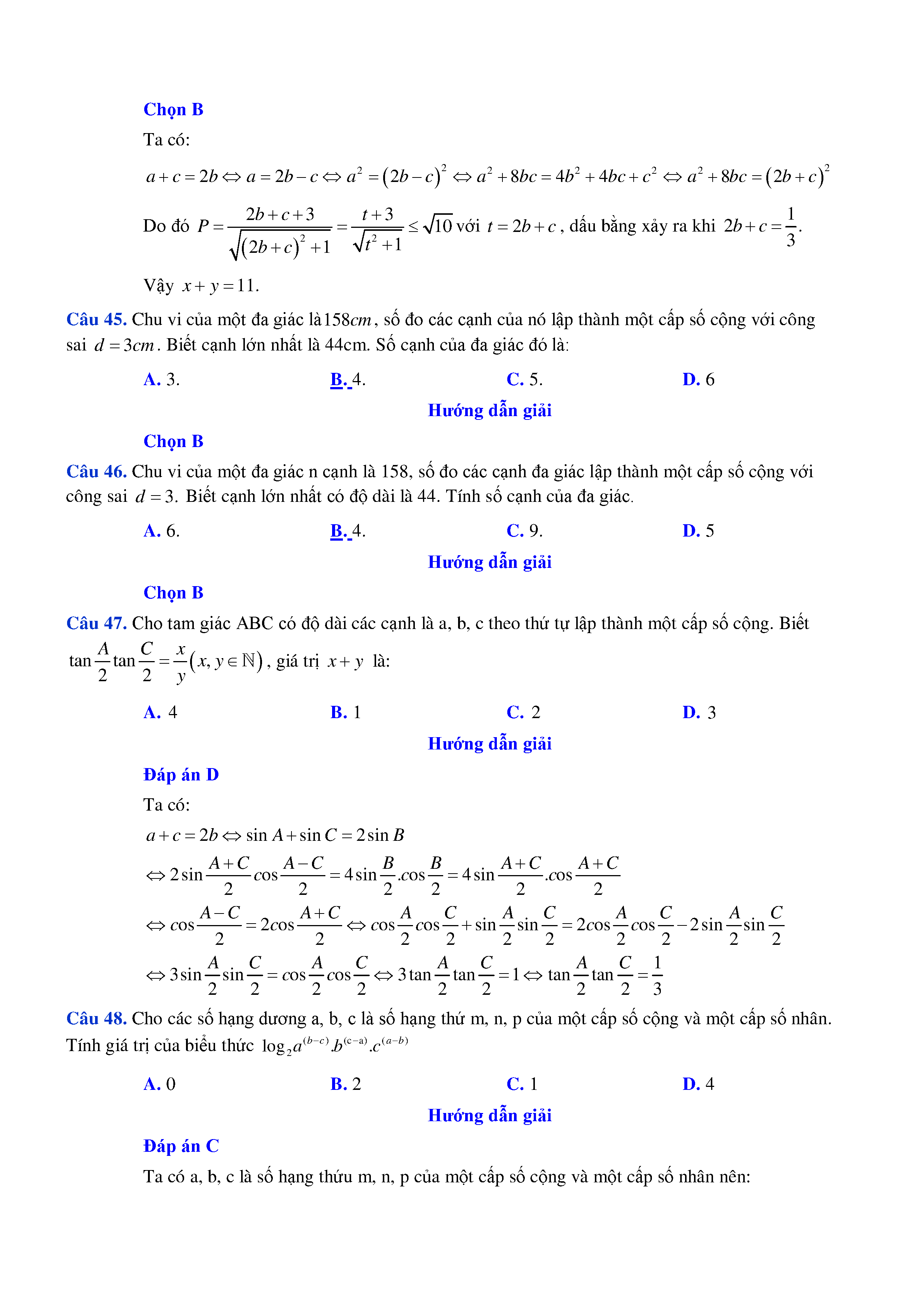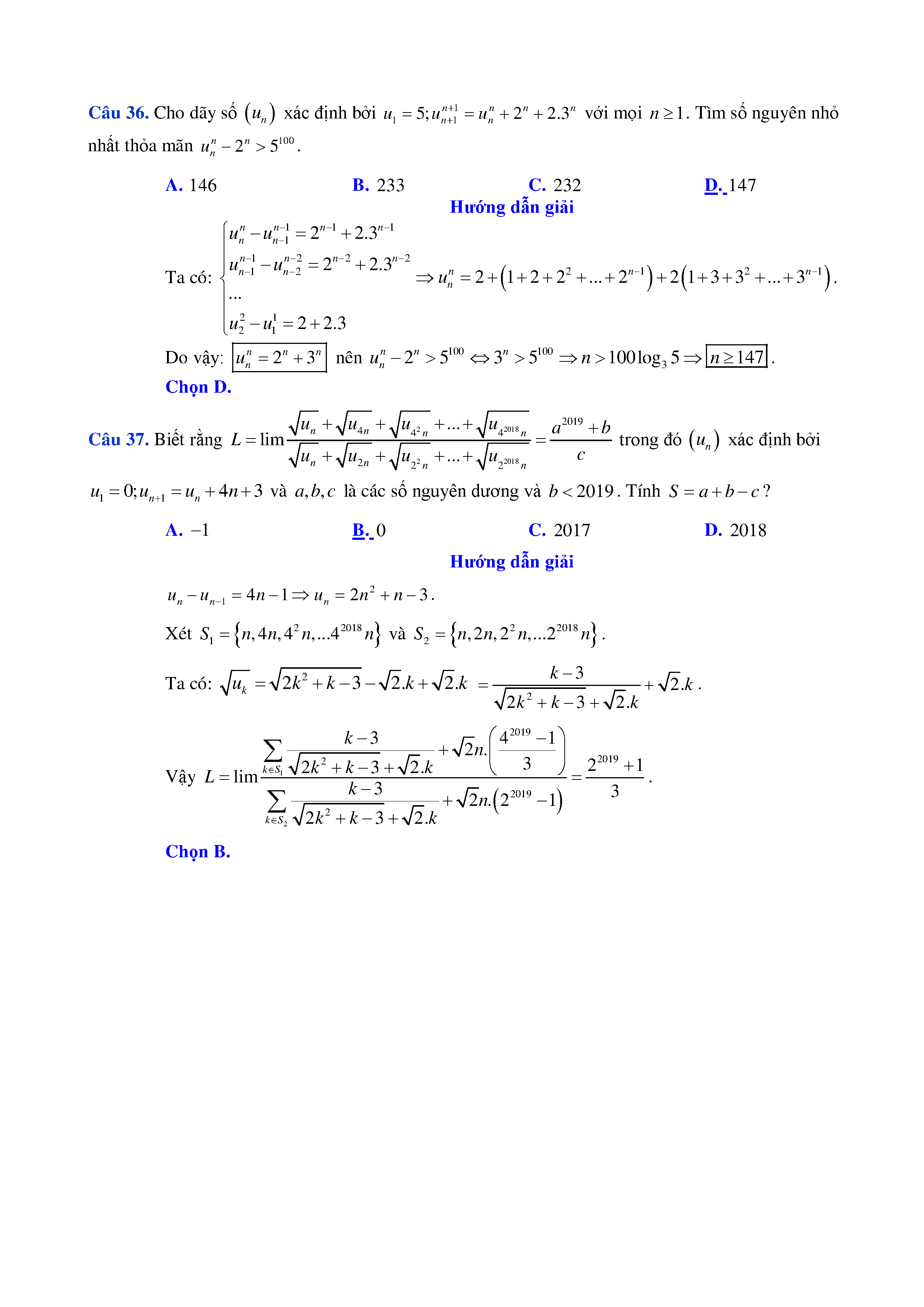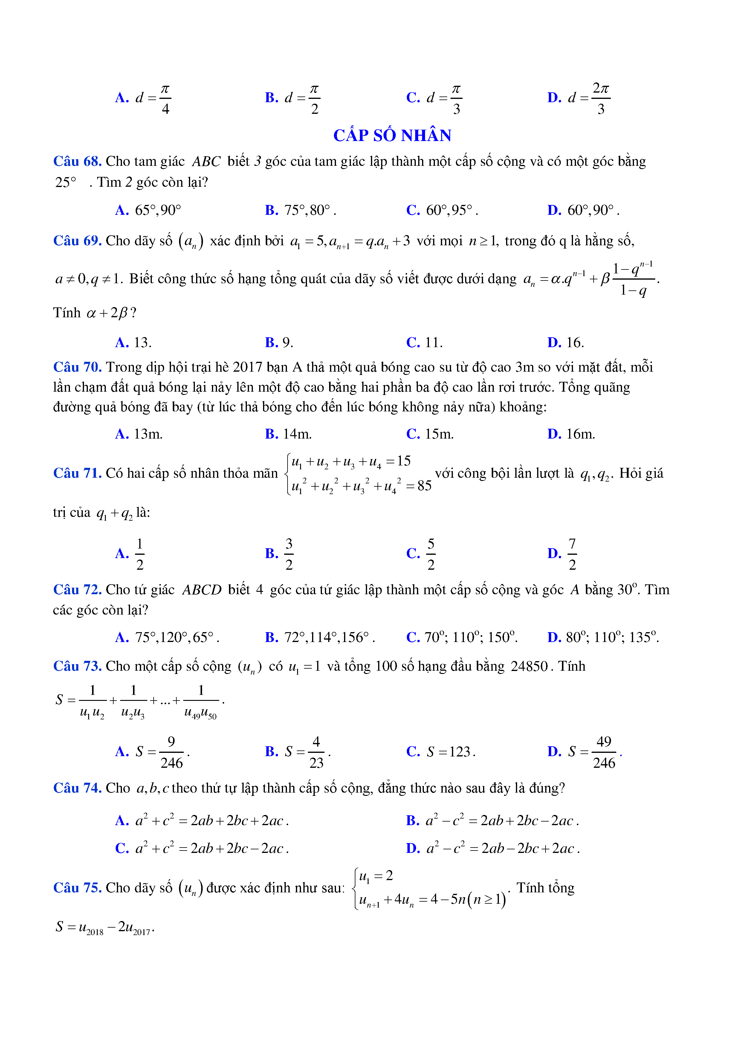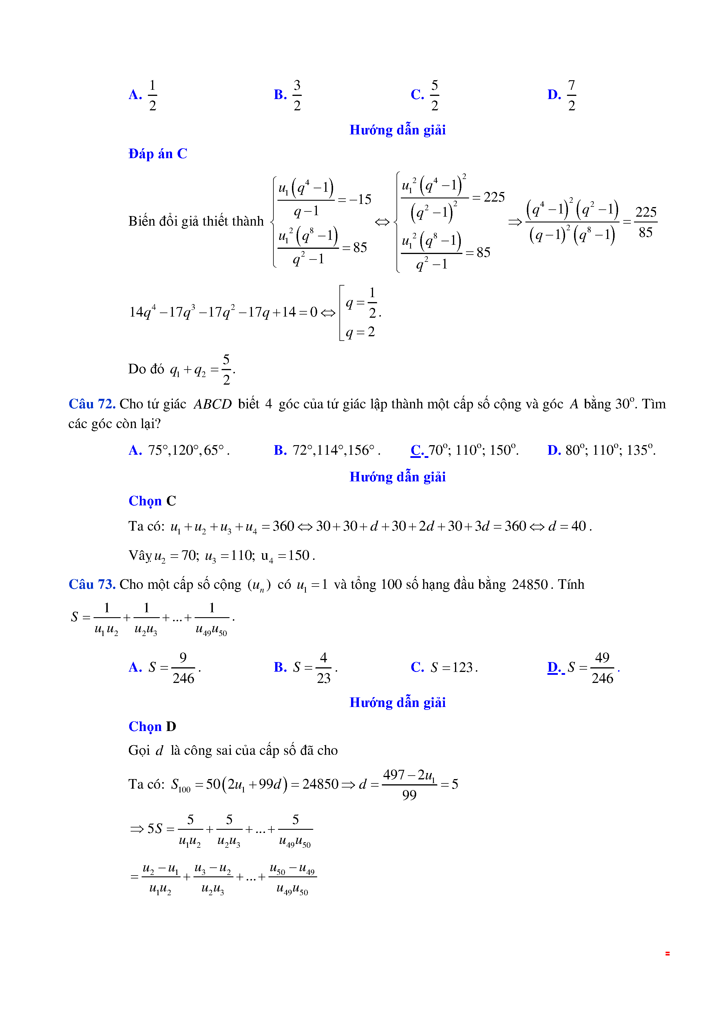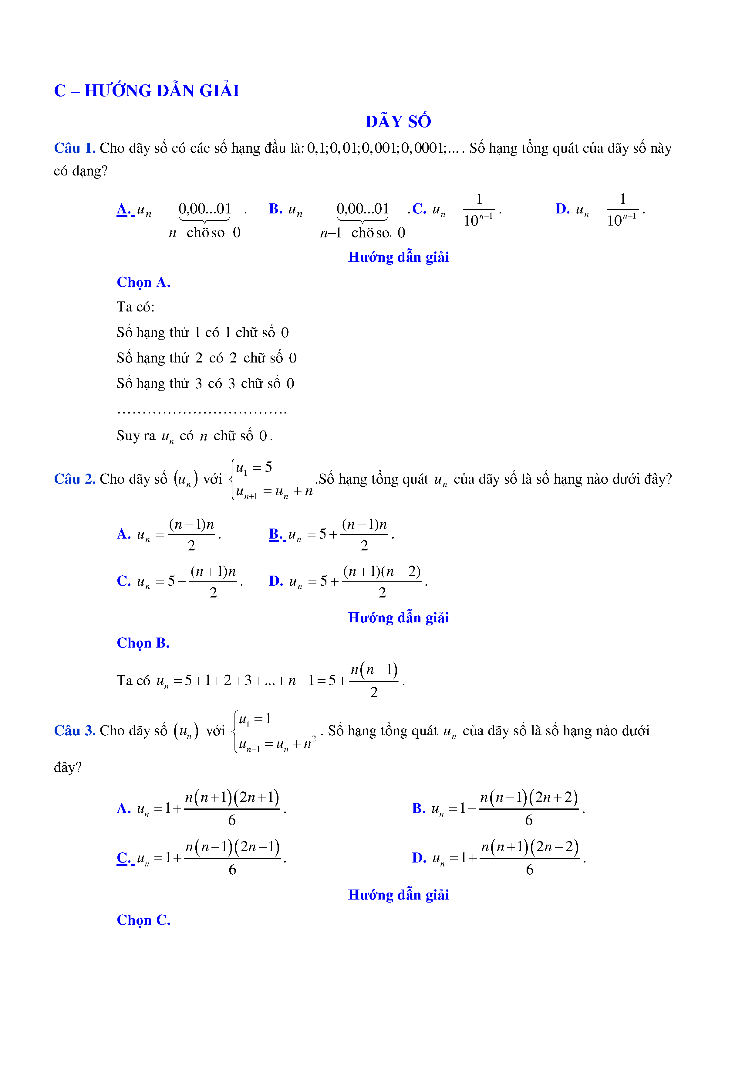 Trắc nghiệm nâng cao chuyên đề dãy số, cấp số cộng, cấp số nhân