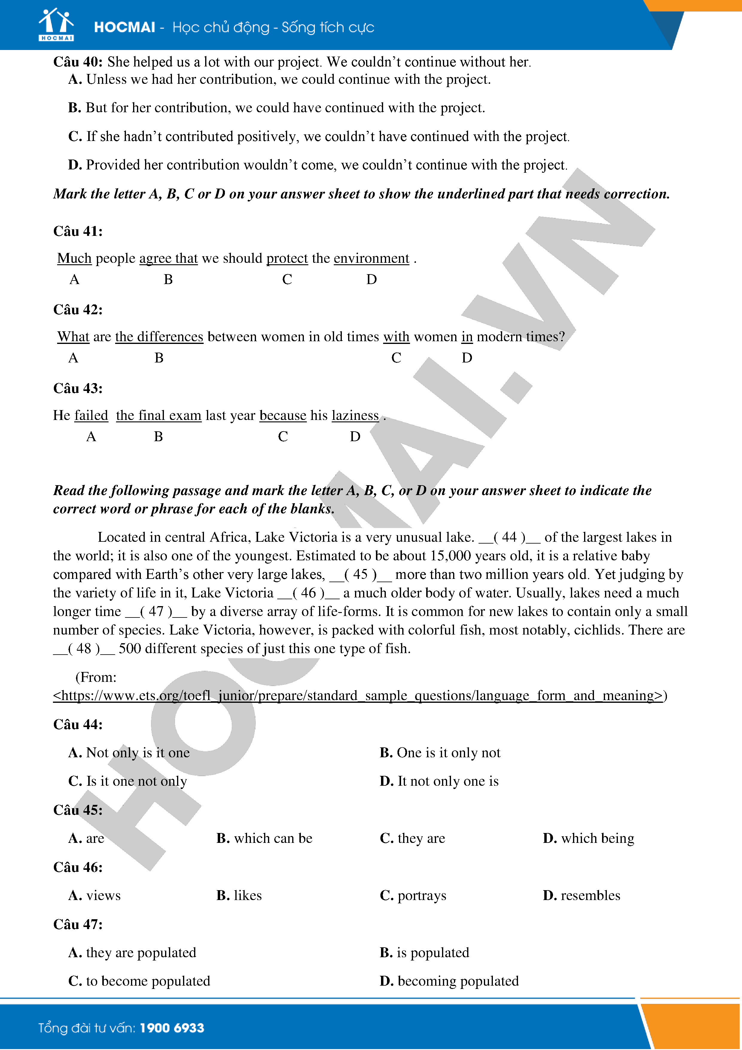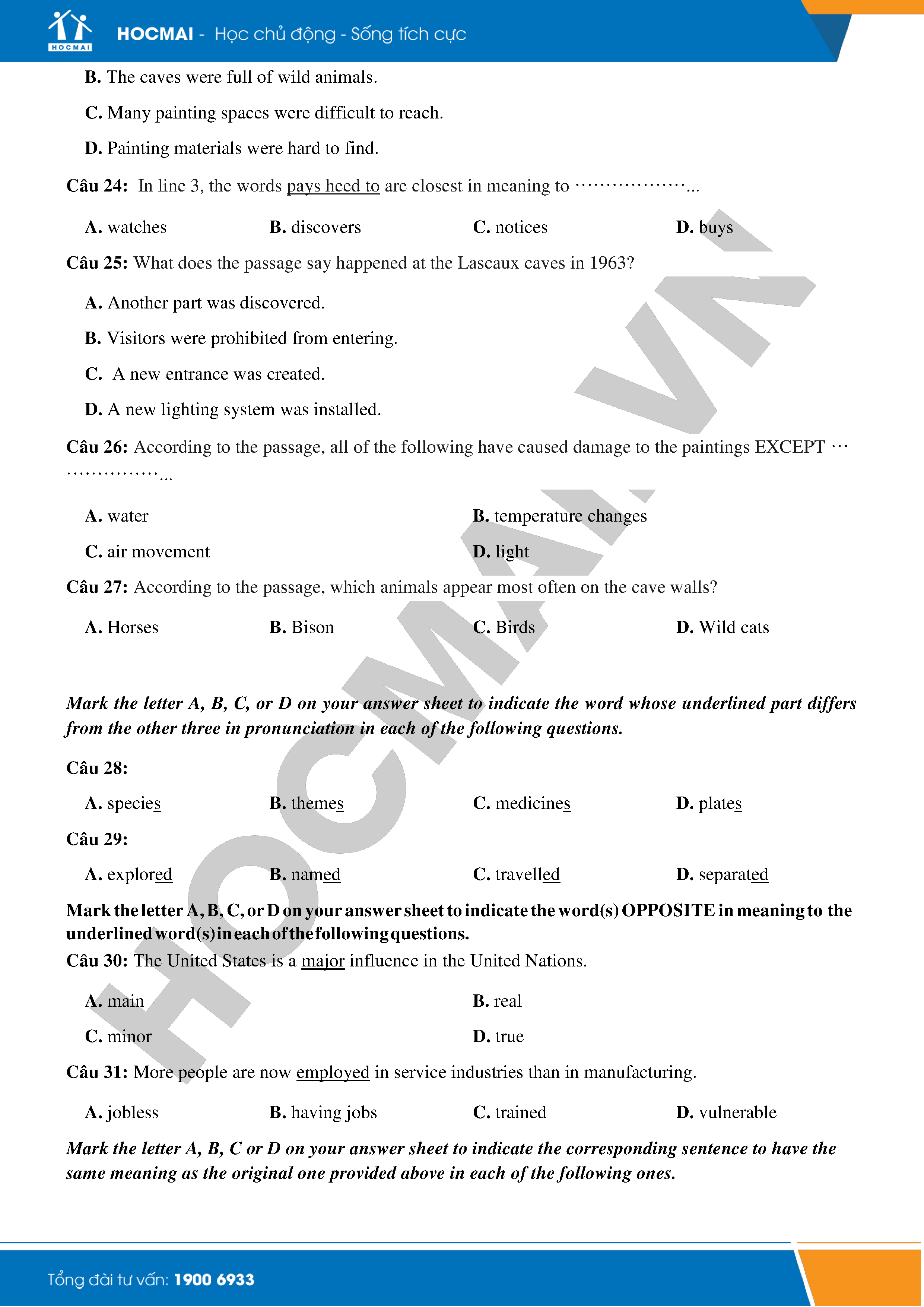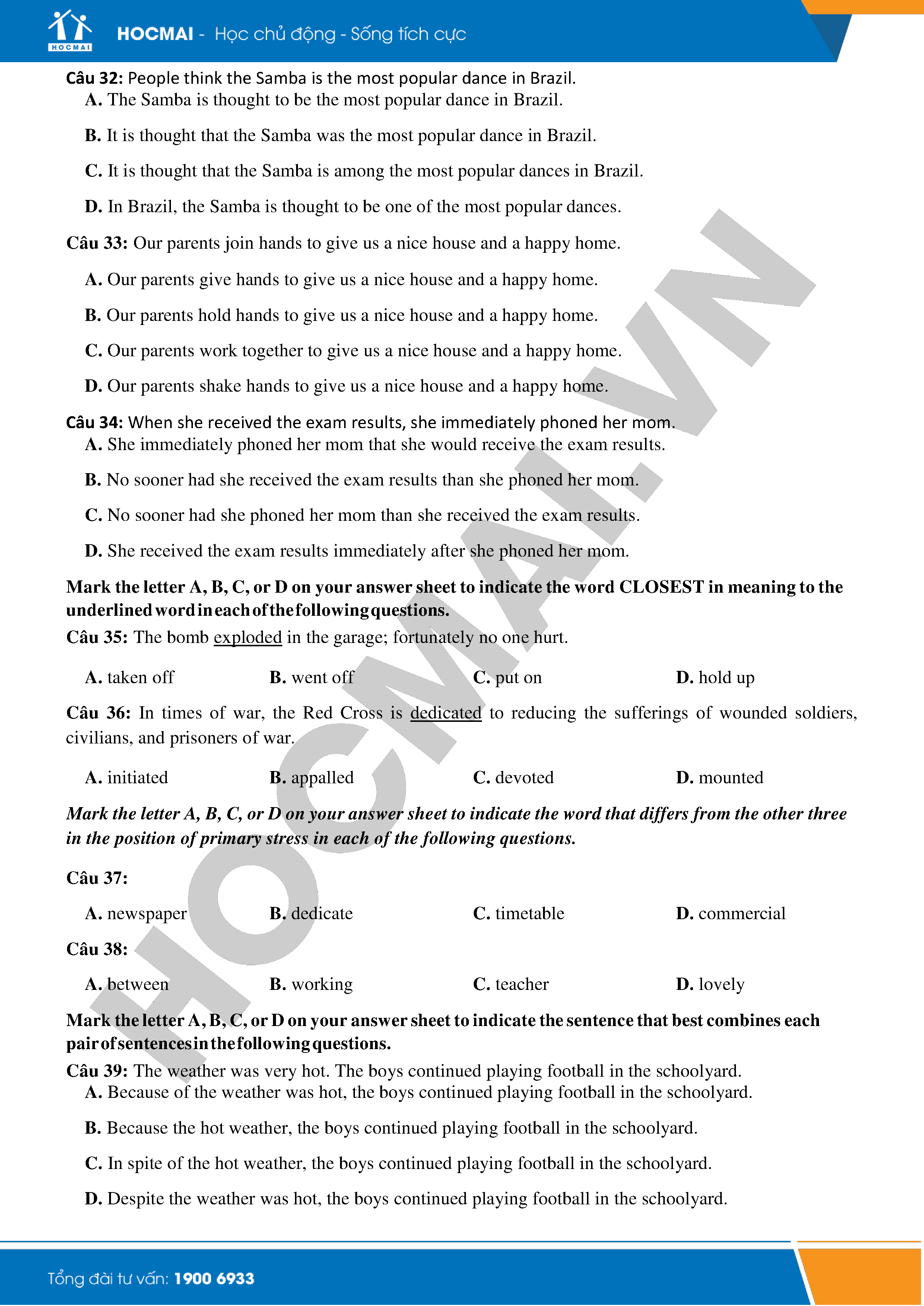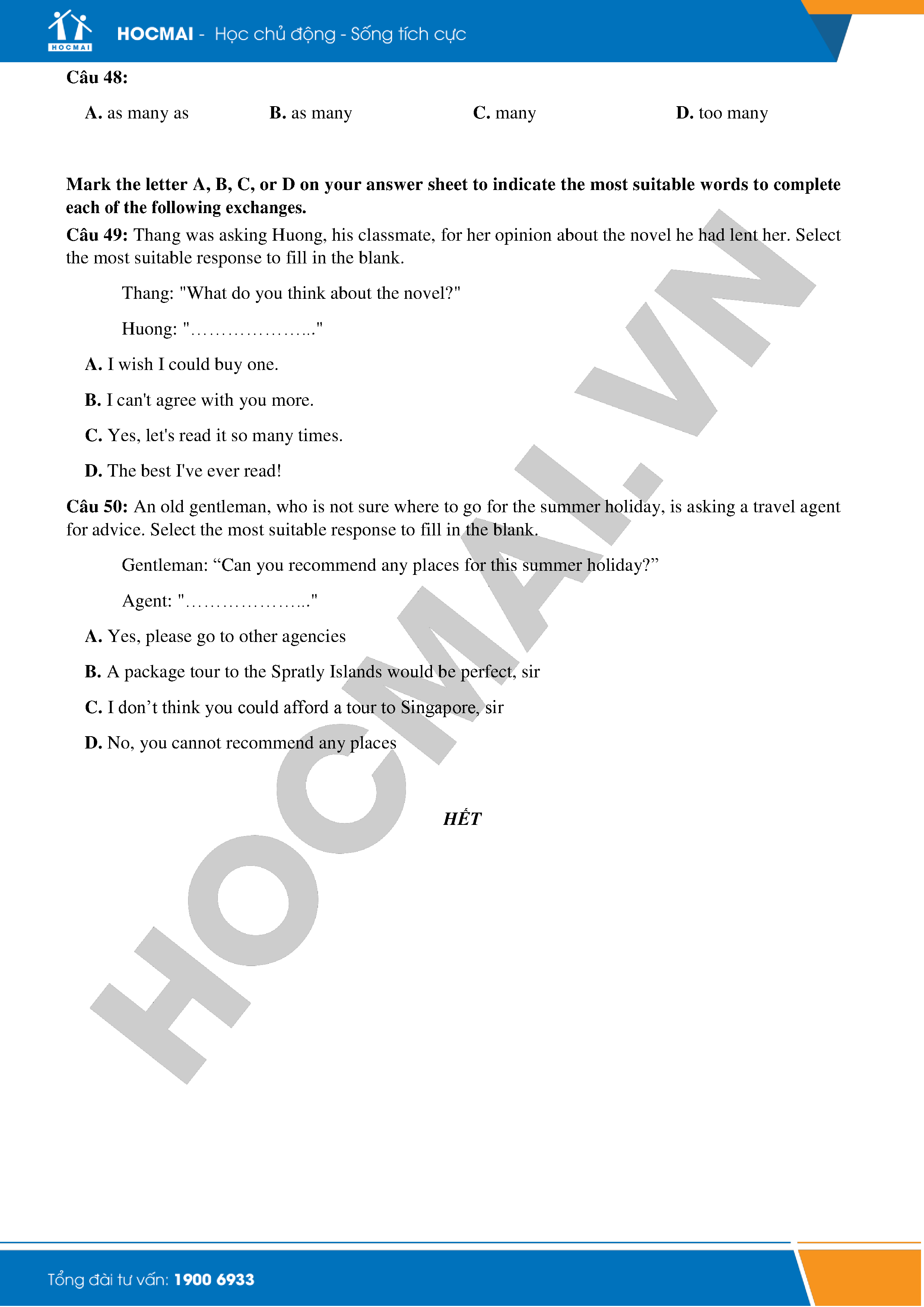 Đề thi thử THPTQG năm 2018 - Môn Tiếng Anh - THPT Thạnh Hóa - Long An - Lần 1 là bộ đề do HOCMAI sưu tầm, đề gồm 50 câu hỏi trắc nghiệm trong thời gian 60 phút, phạm vi kiến thức xoay quanh nội dung ôn thi THPT quốc gia 2018, cùng theo dõi các bạn nhé!