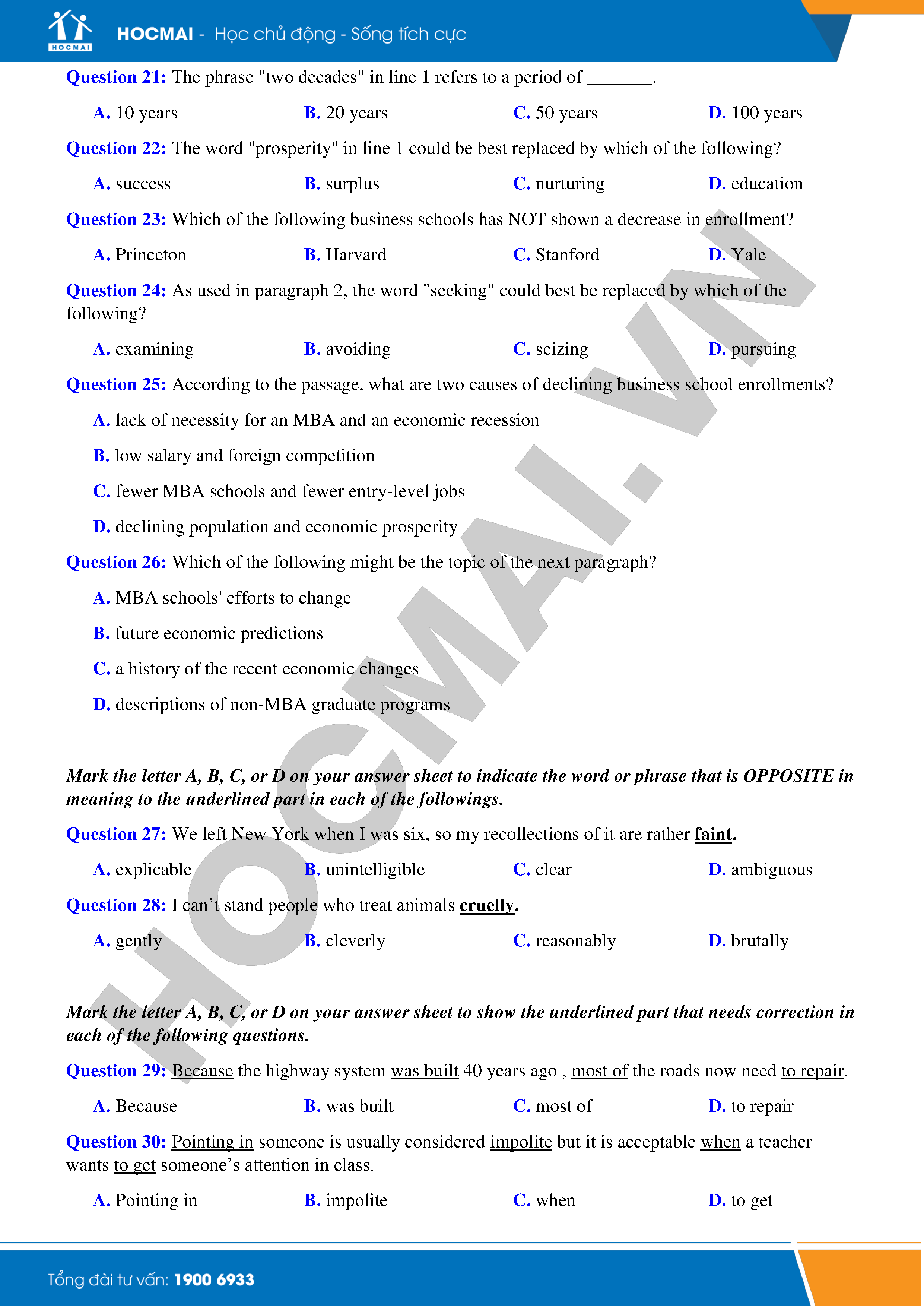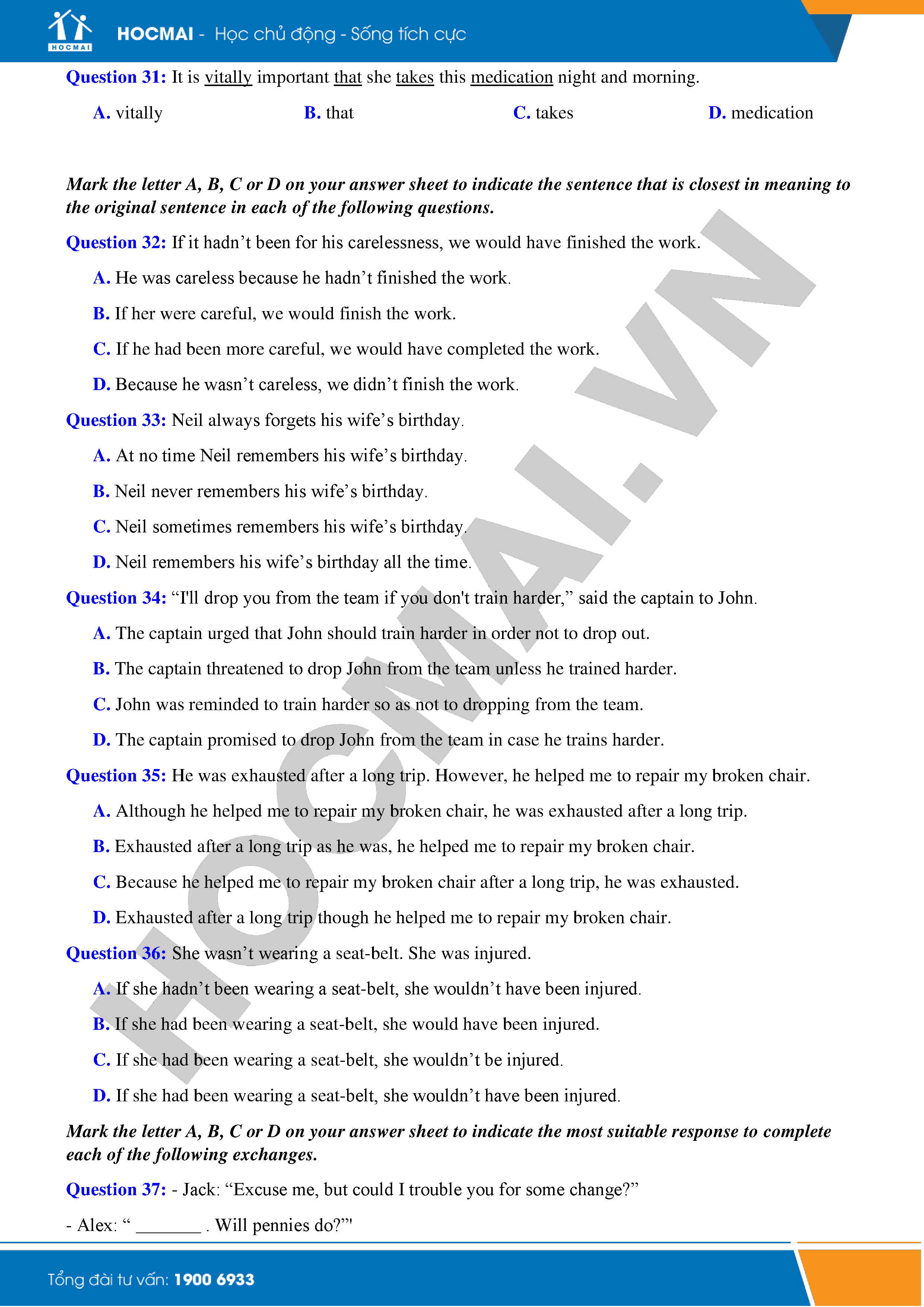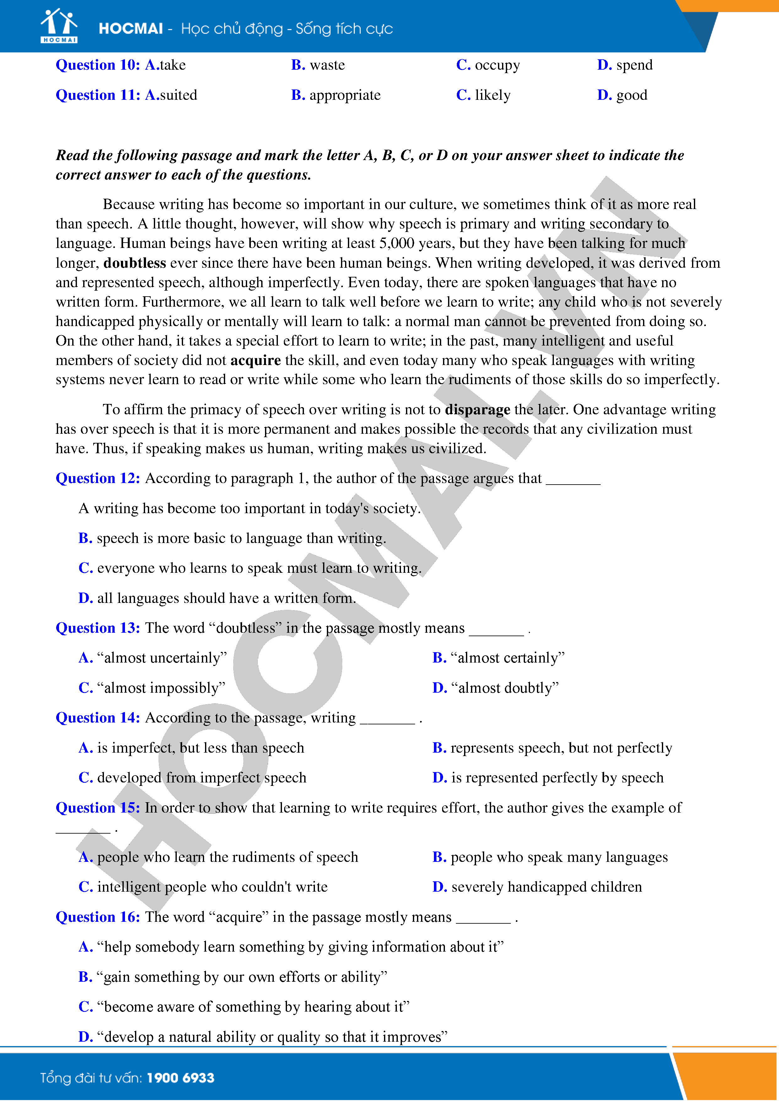 Đề thi thử THPTQG năm 2018 - Môn Tiếng Anh - THPT Phạm Công Bình - Vĩnh Phúc - Lần 1 là bộ đề do HOCMAI sưu tầm, bộ đề gồm 50 câu hỏi trắc nghiệm, thời gian làm bài trong vòng 60 phút, phạm vi chủ yếu trong nội dung ôn tập thi THPTQG 2018. Các bạn cùng th