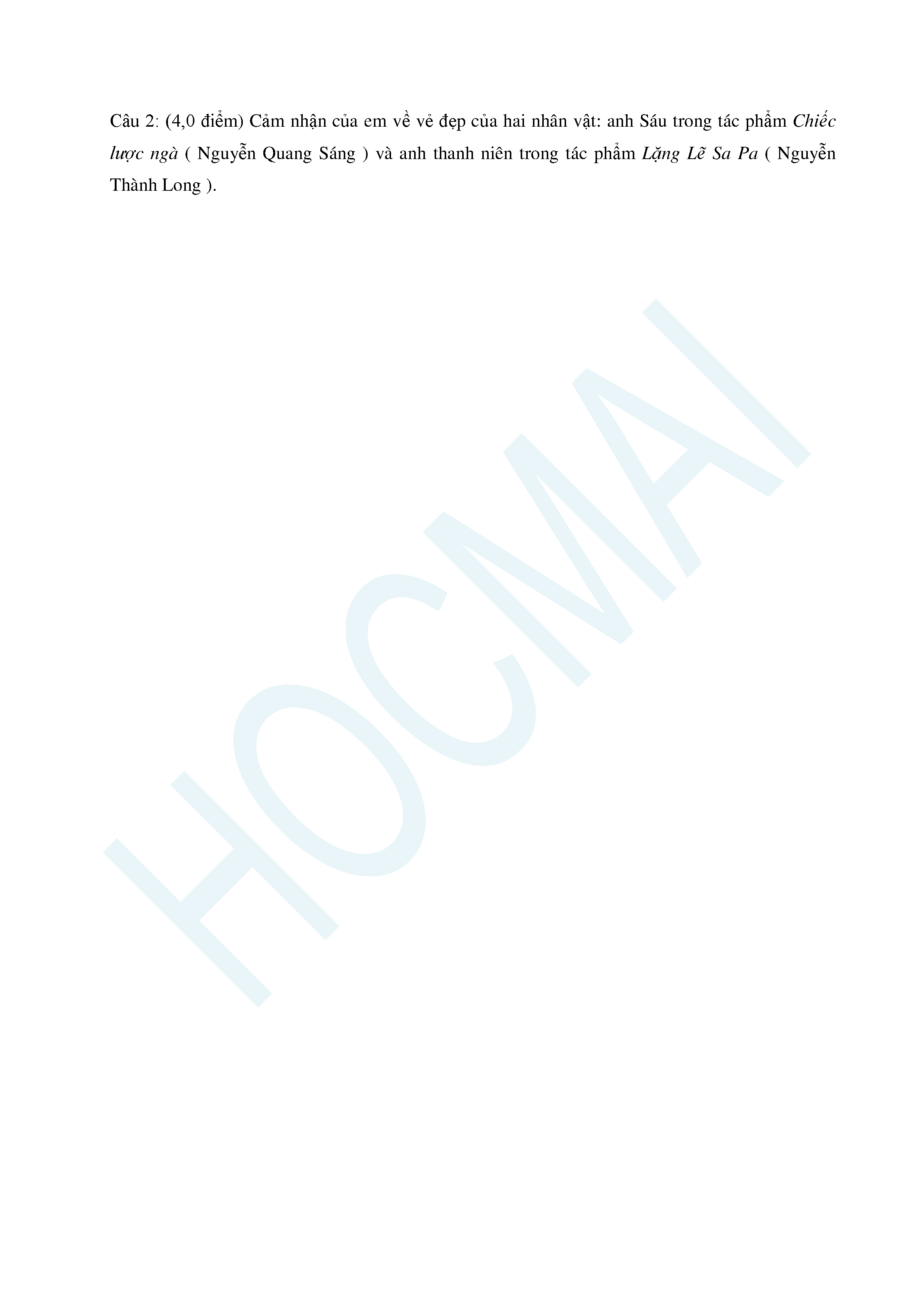 ĐỀ THI VÀO 10 NĂM 2018 - 2019 NGỮ VĂN THÀNH PHỐ HUẾ