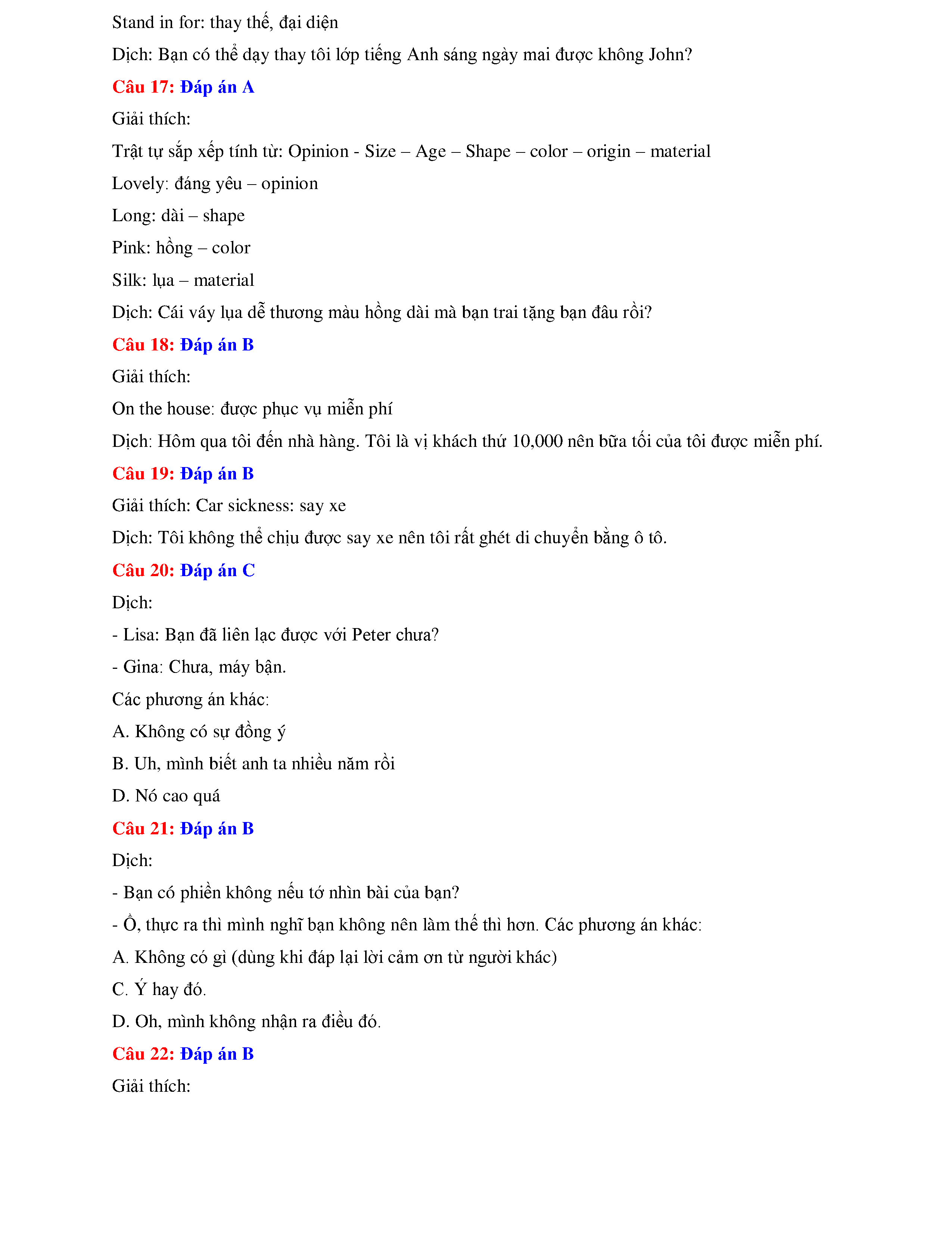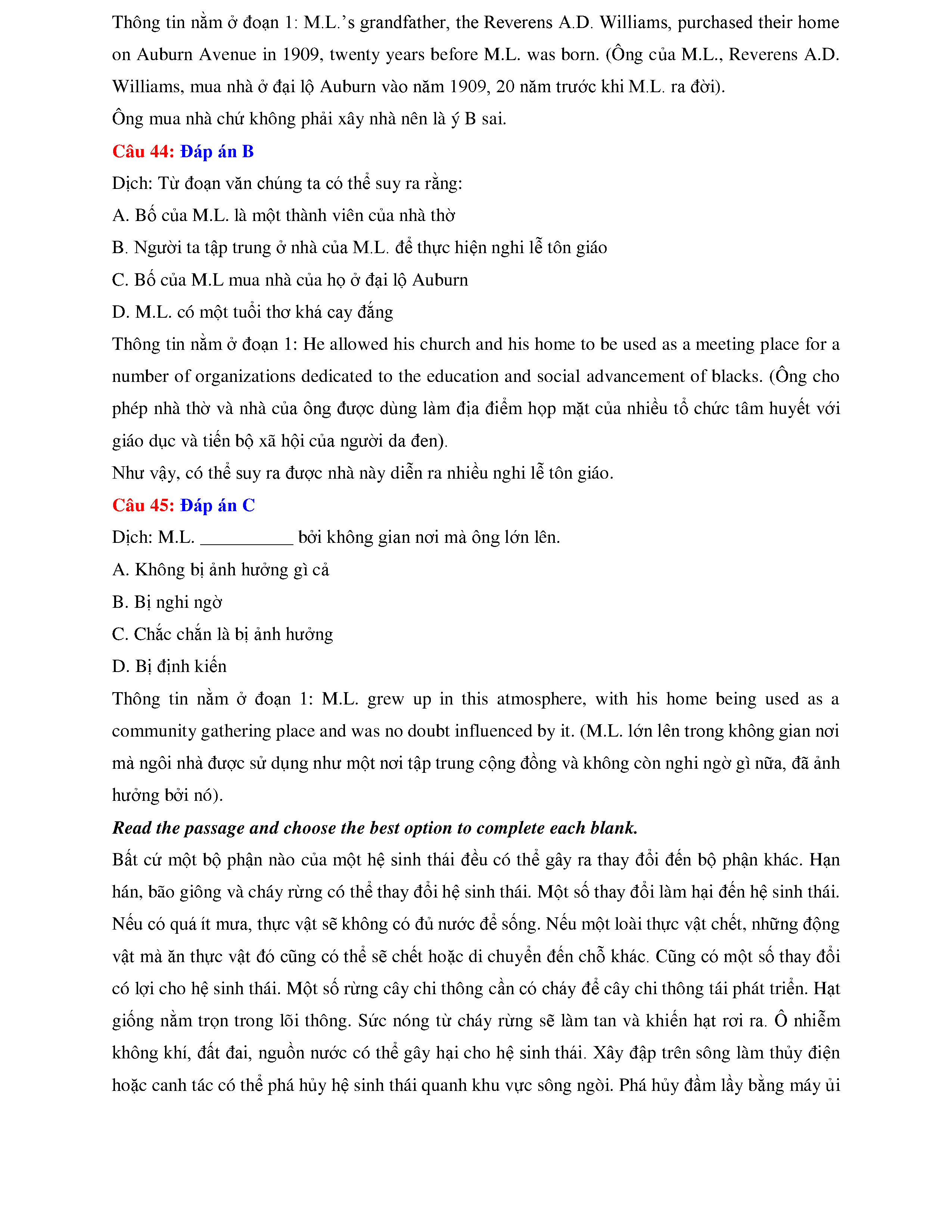 ĐÁP ÁN CHI TIẾT ĐỀ THI THỬ THPTQG - MÔN TIẾNG ANH - THPT QUỲ HỢP 1 - NGHỆ AN - LẦN 1