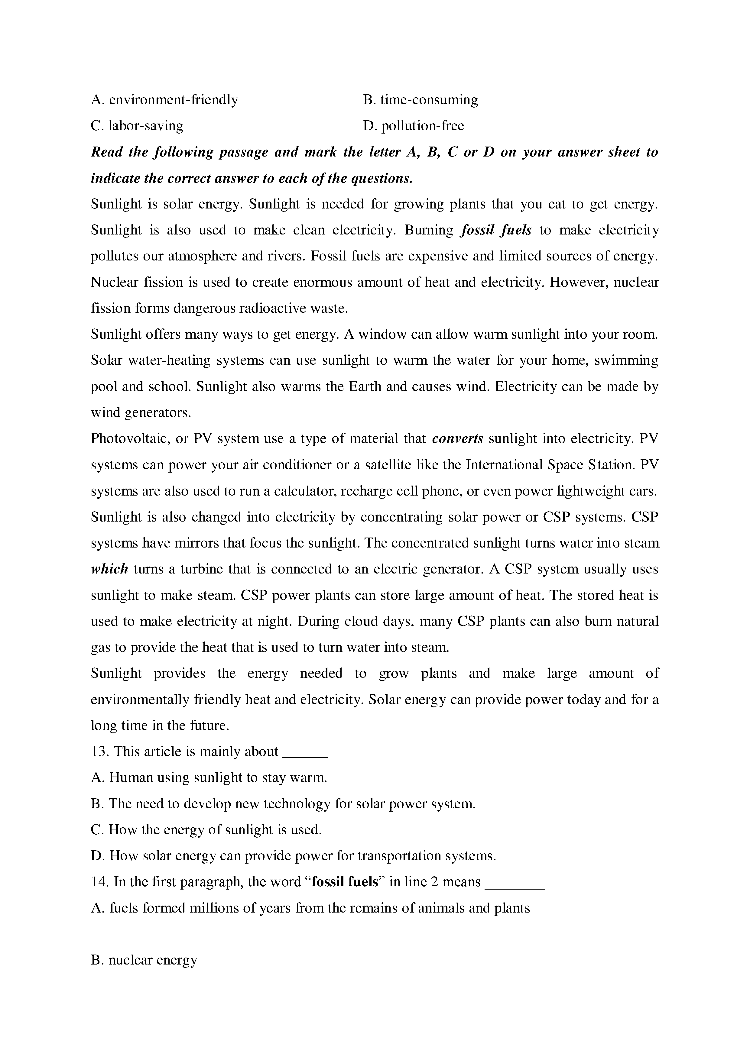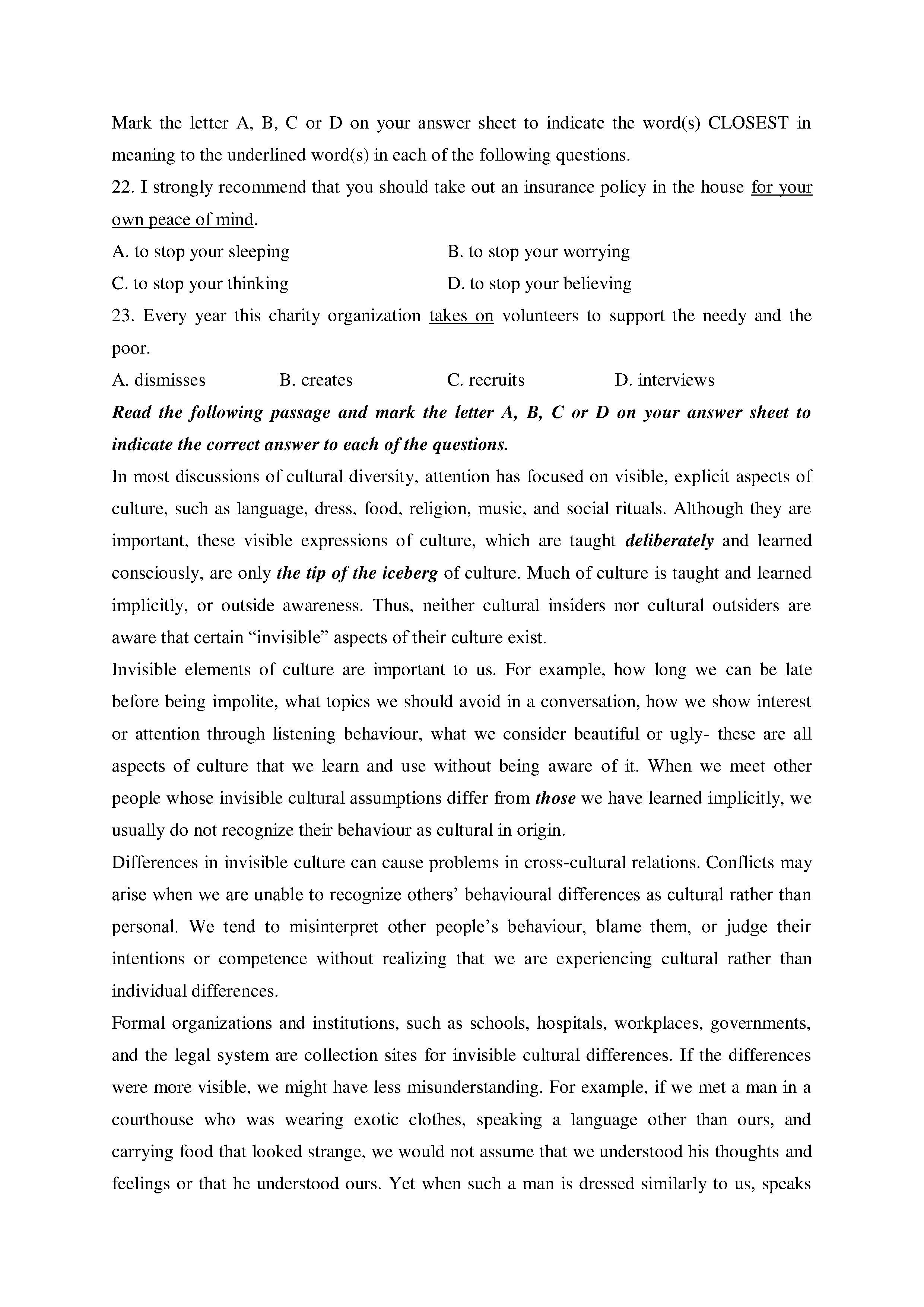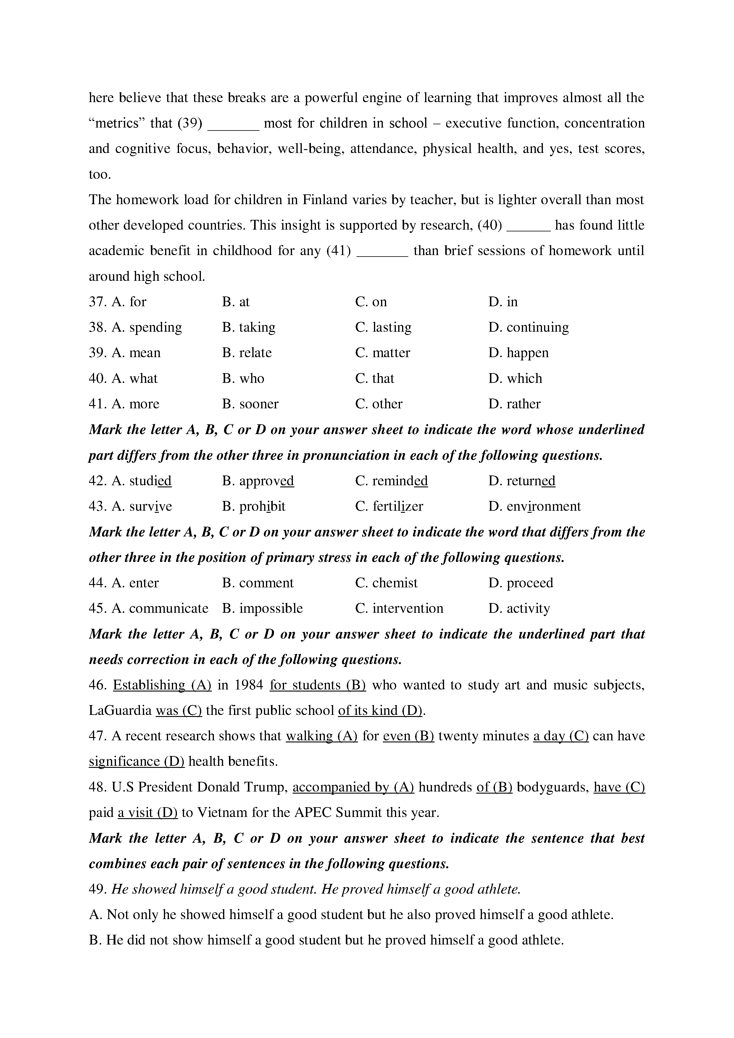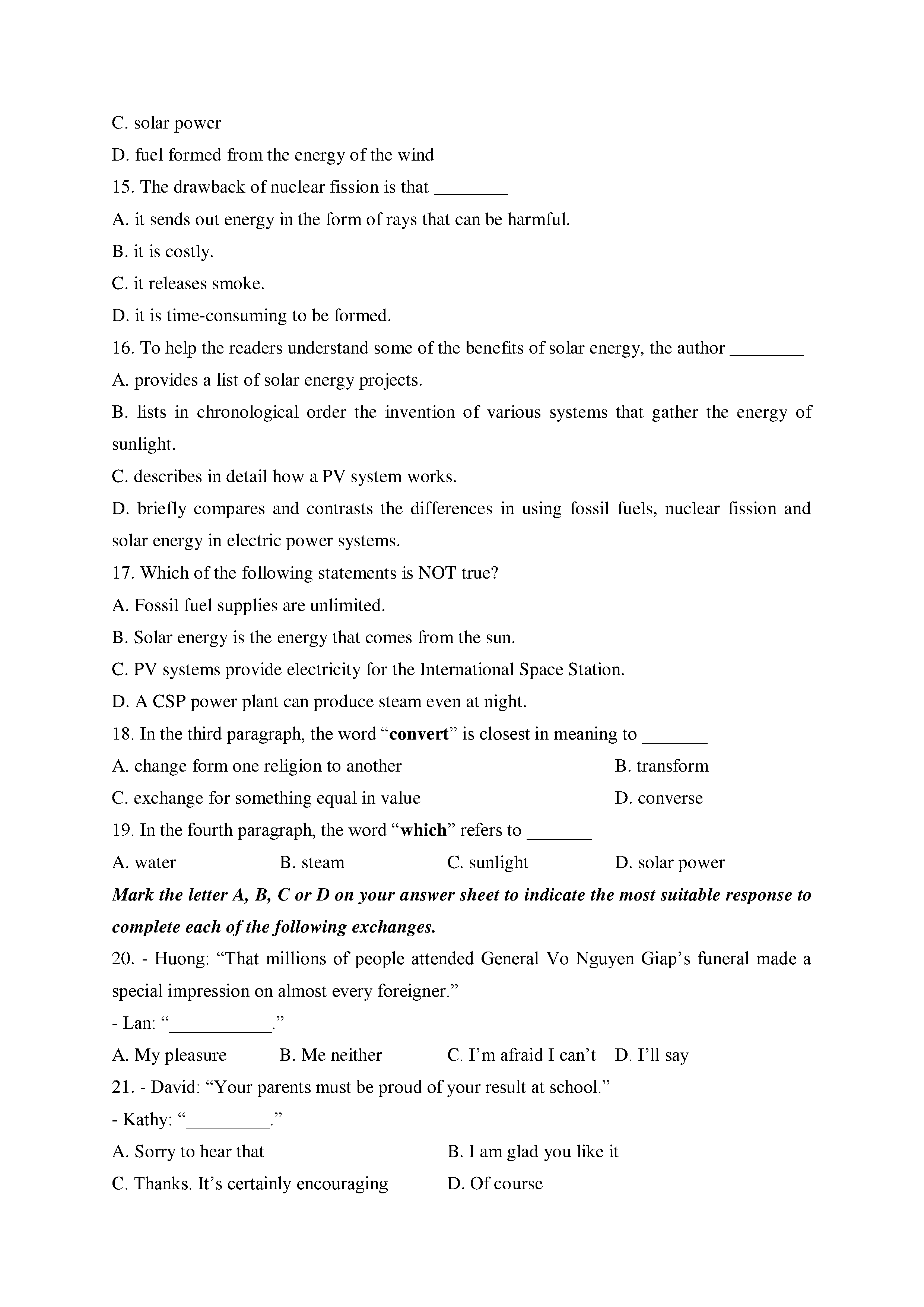ĐỀ THI THỬ THPTQG - MÔN TIẾNG ANH - THPT QUẢNG XƯƠNG - THANH HÓA