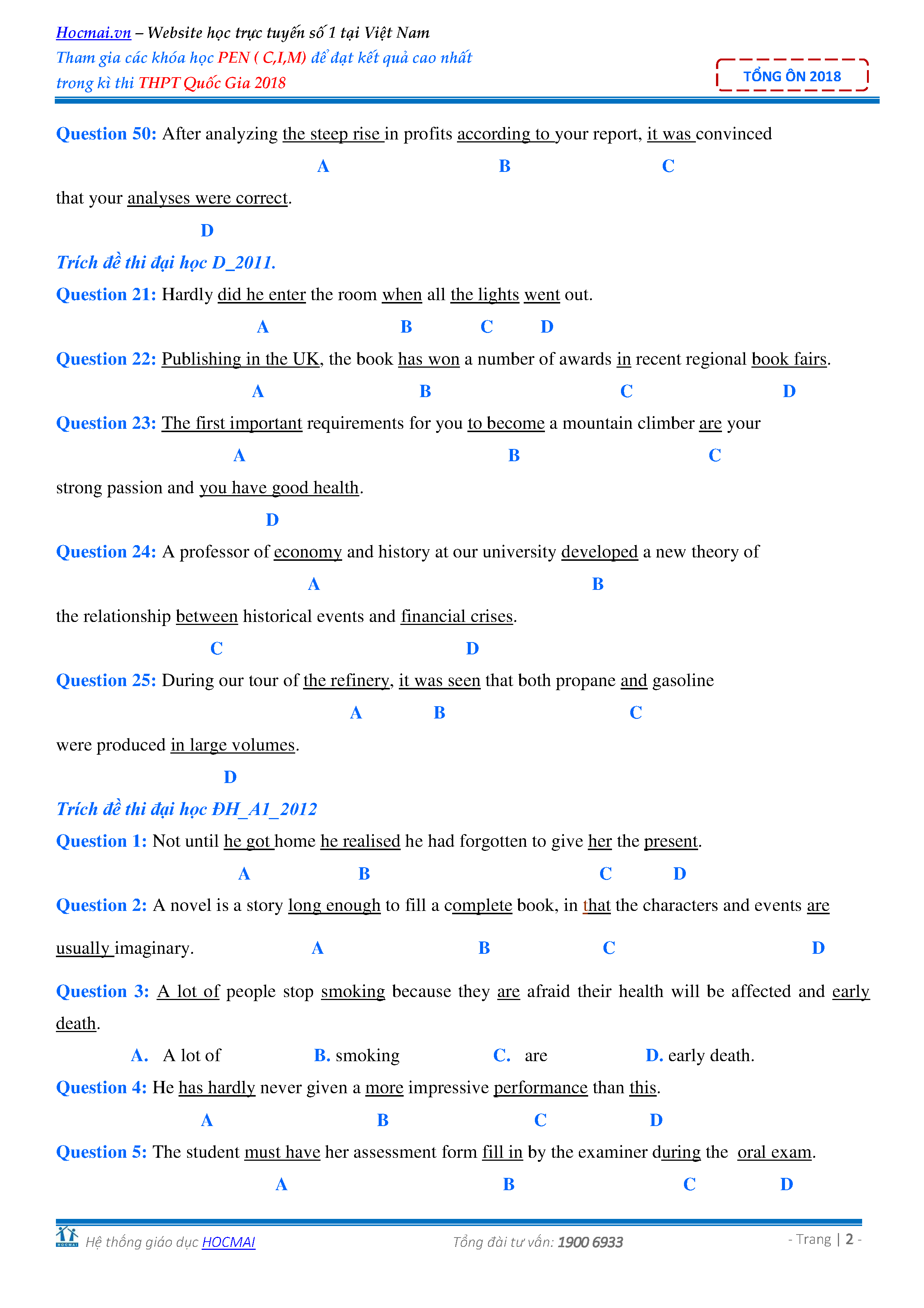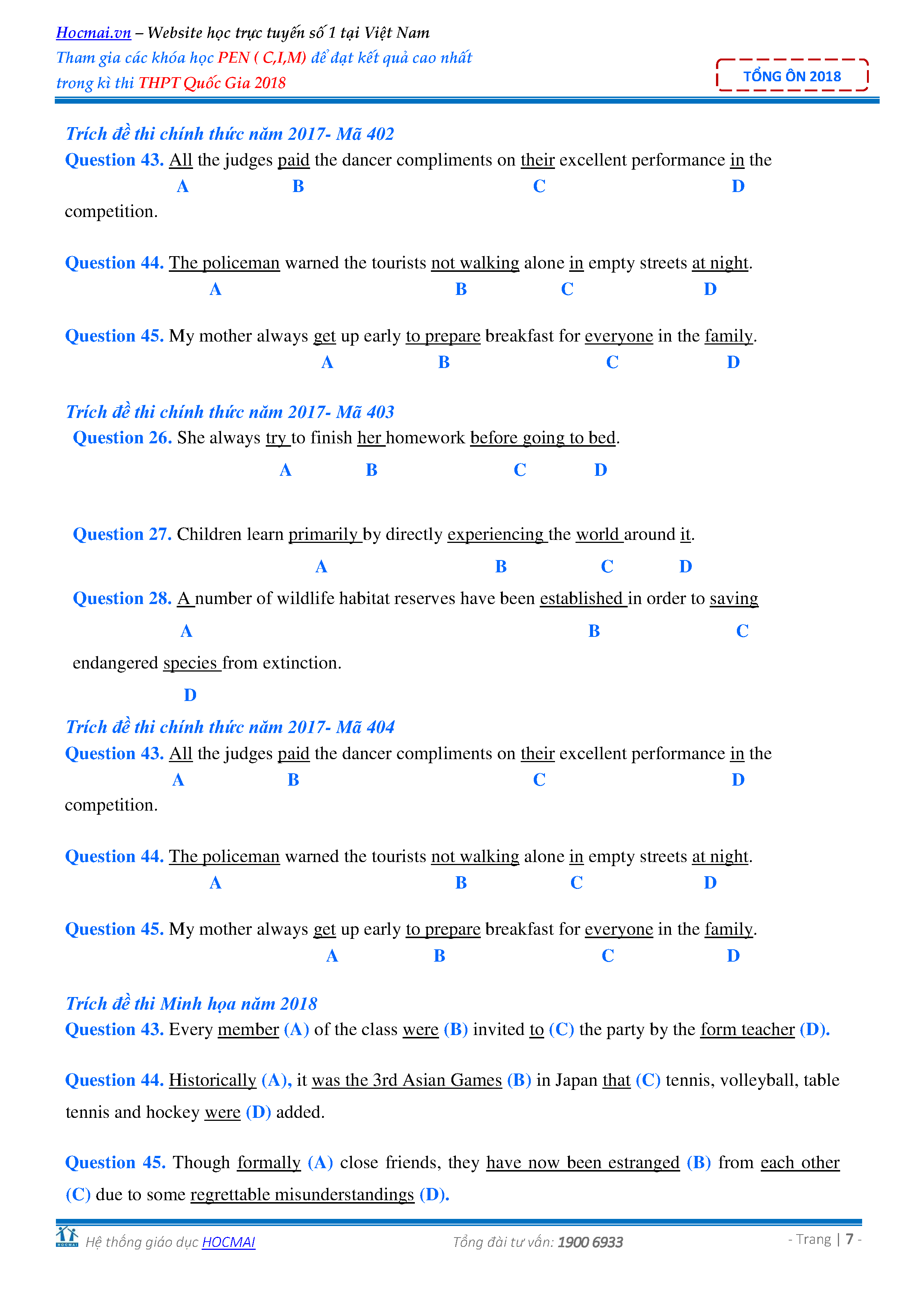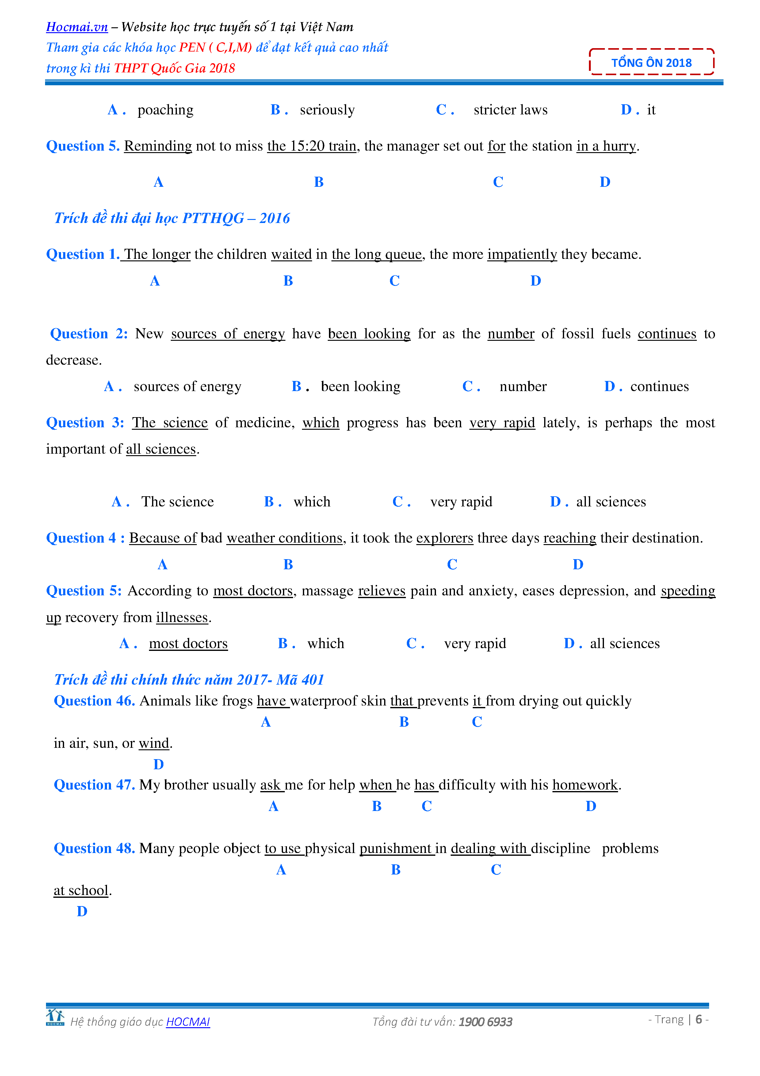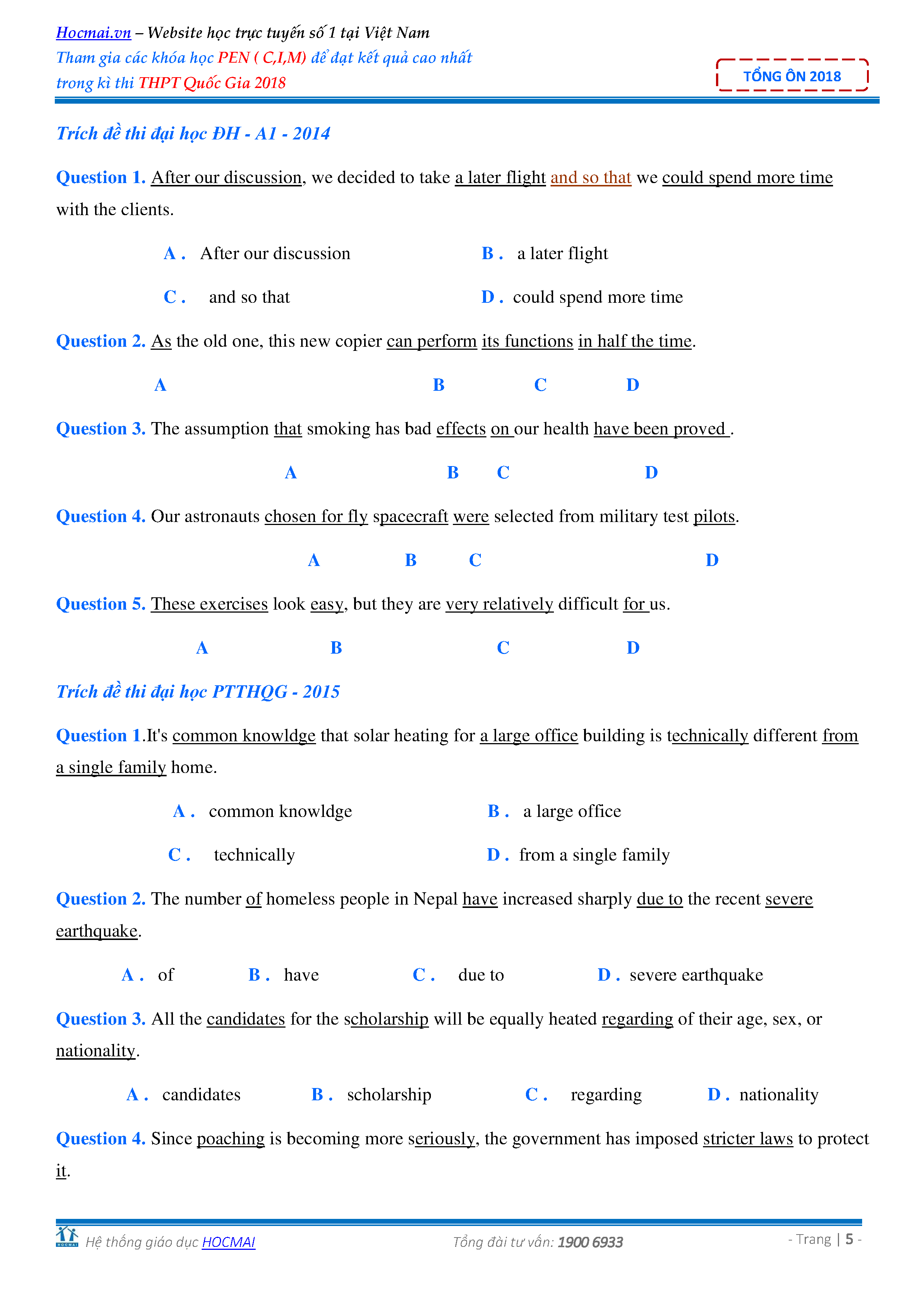 Sửa lỗi sai qua đề thi THPT Quốc Gia 2009 - 2018