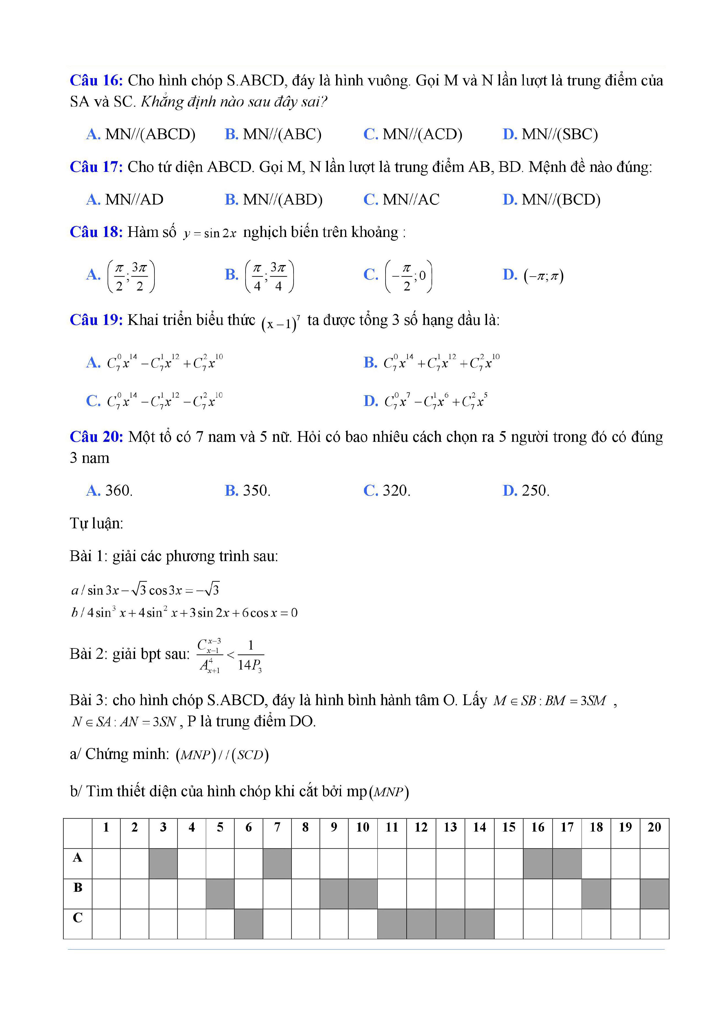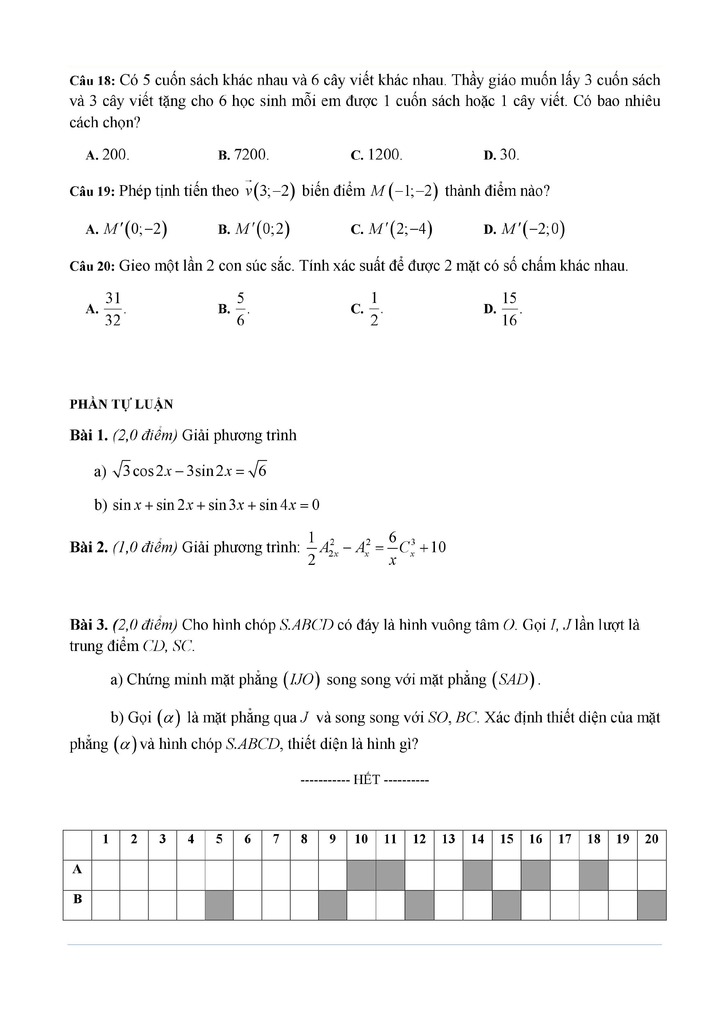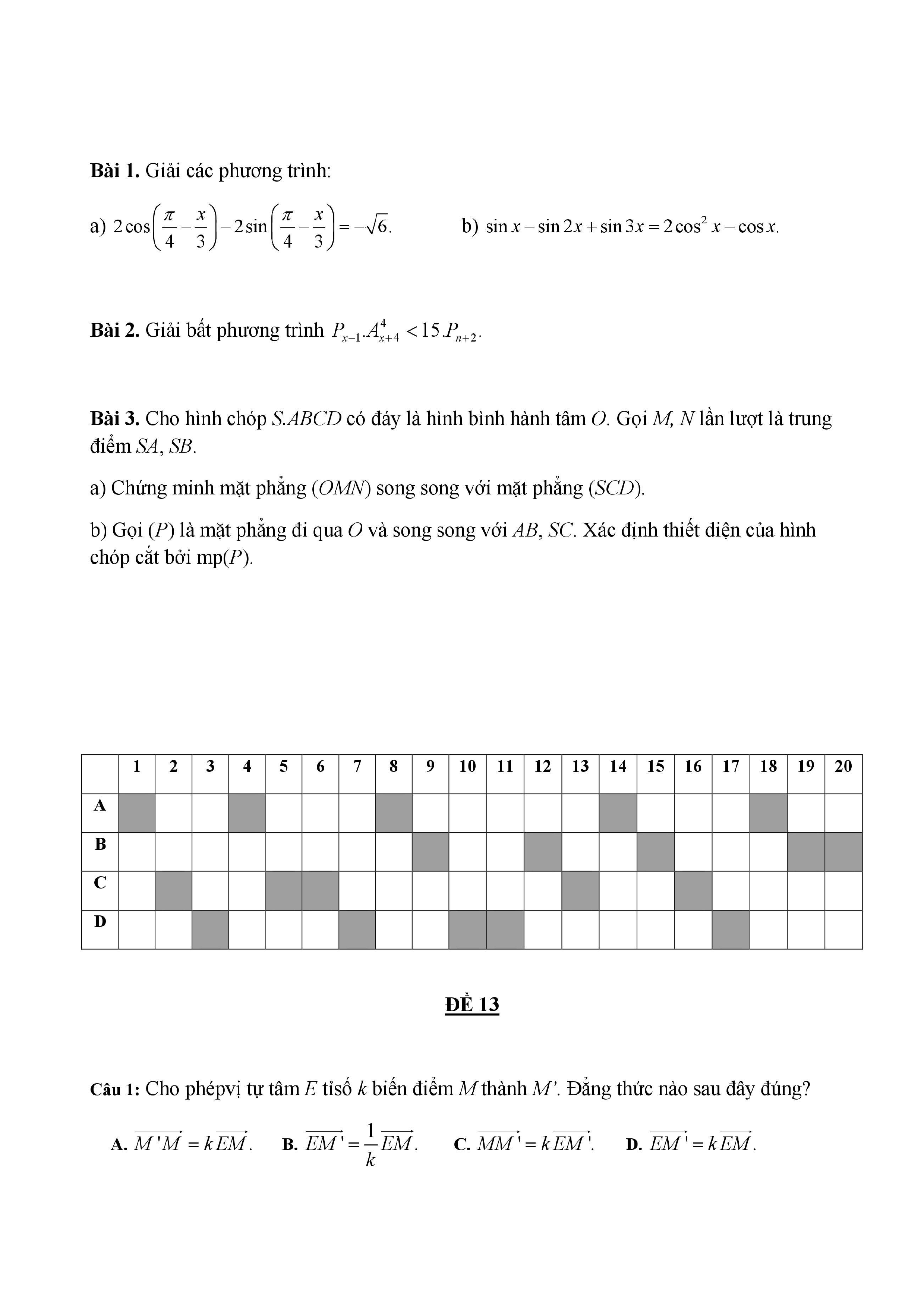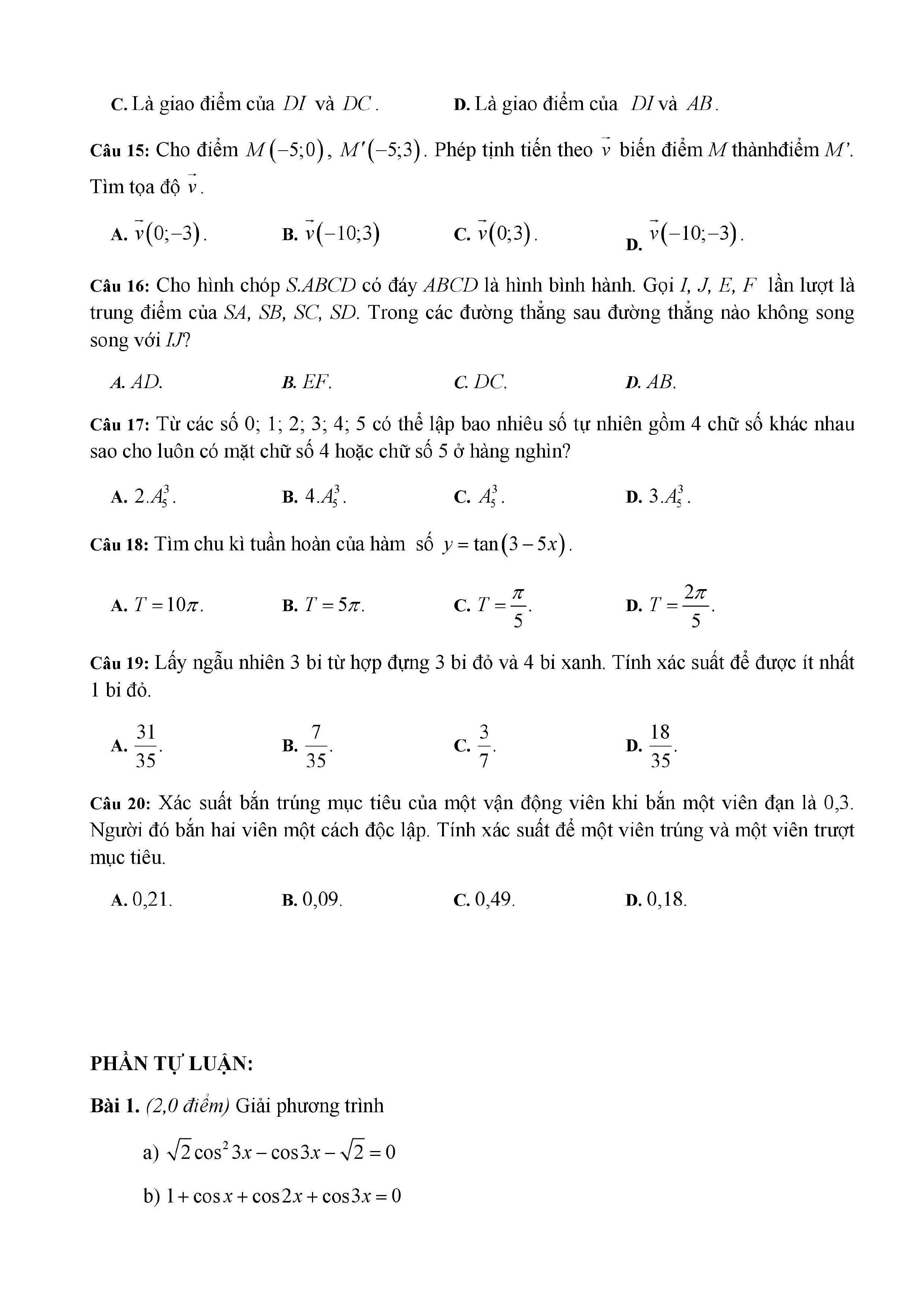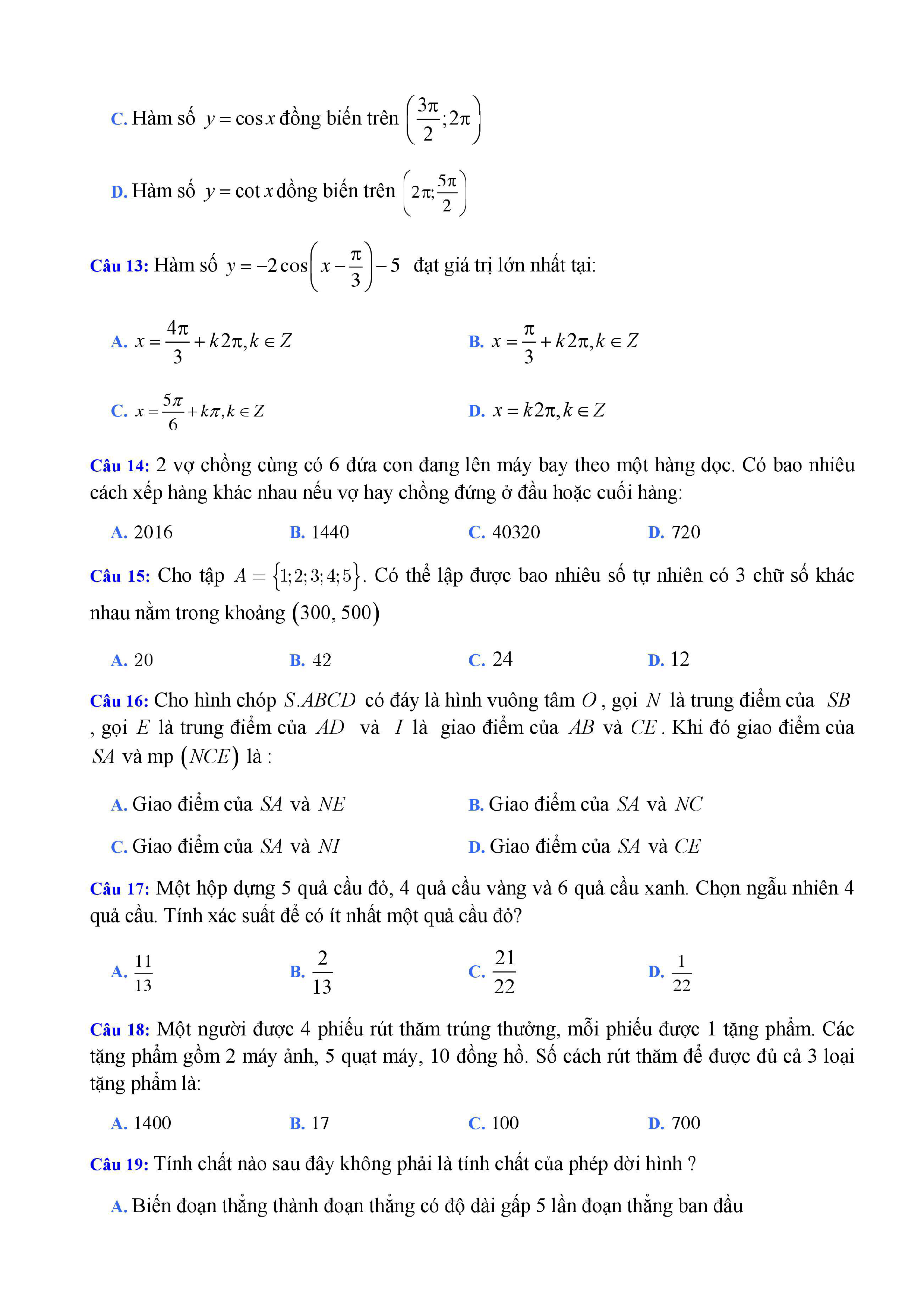 20 đề Toán ôn thi học kì 1 lớp 11