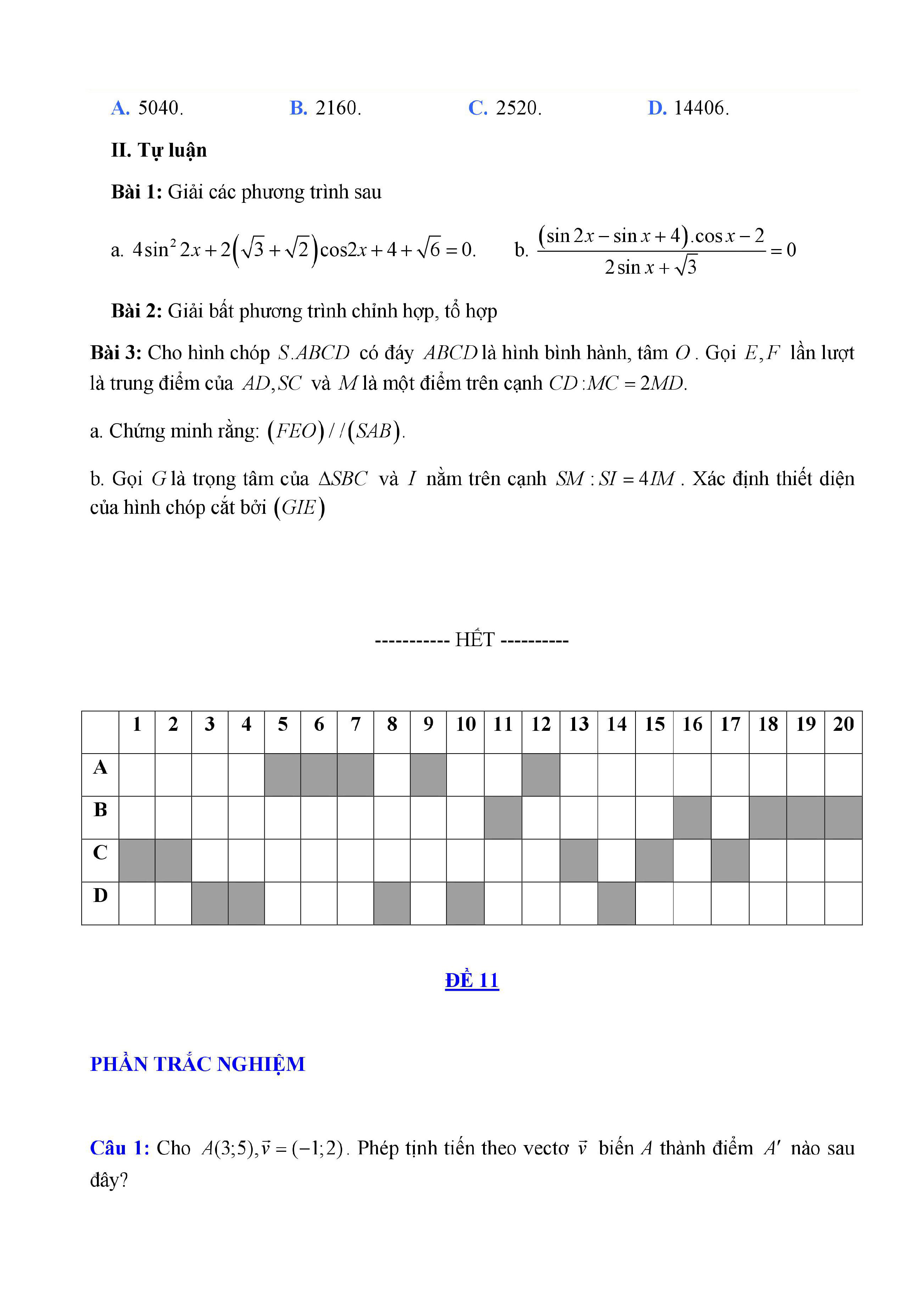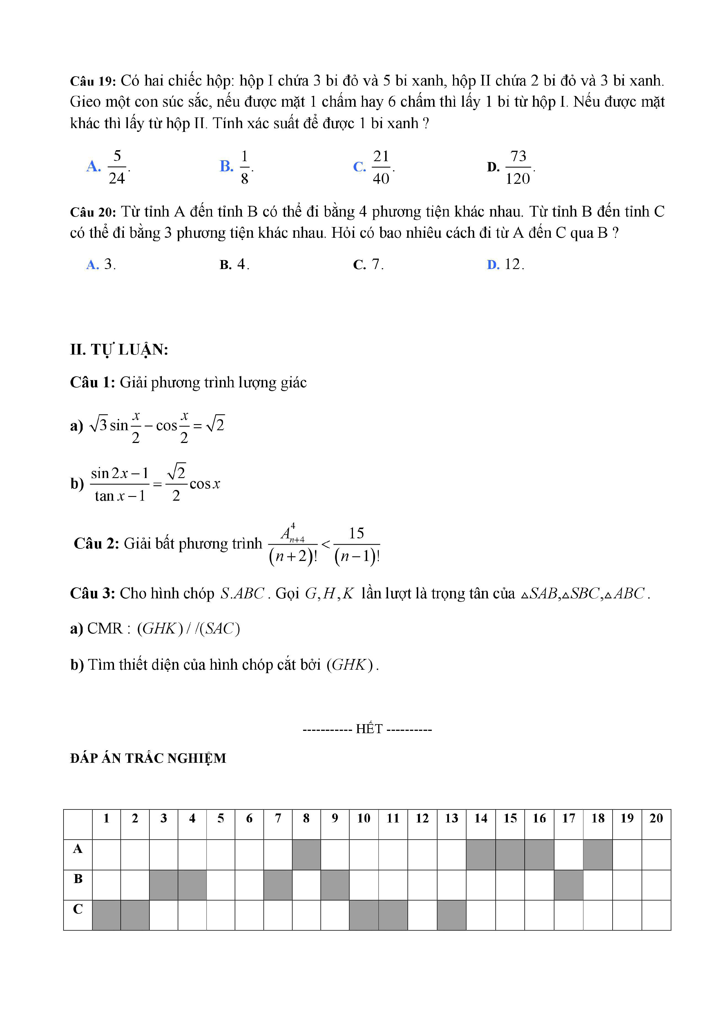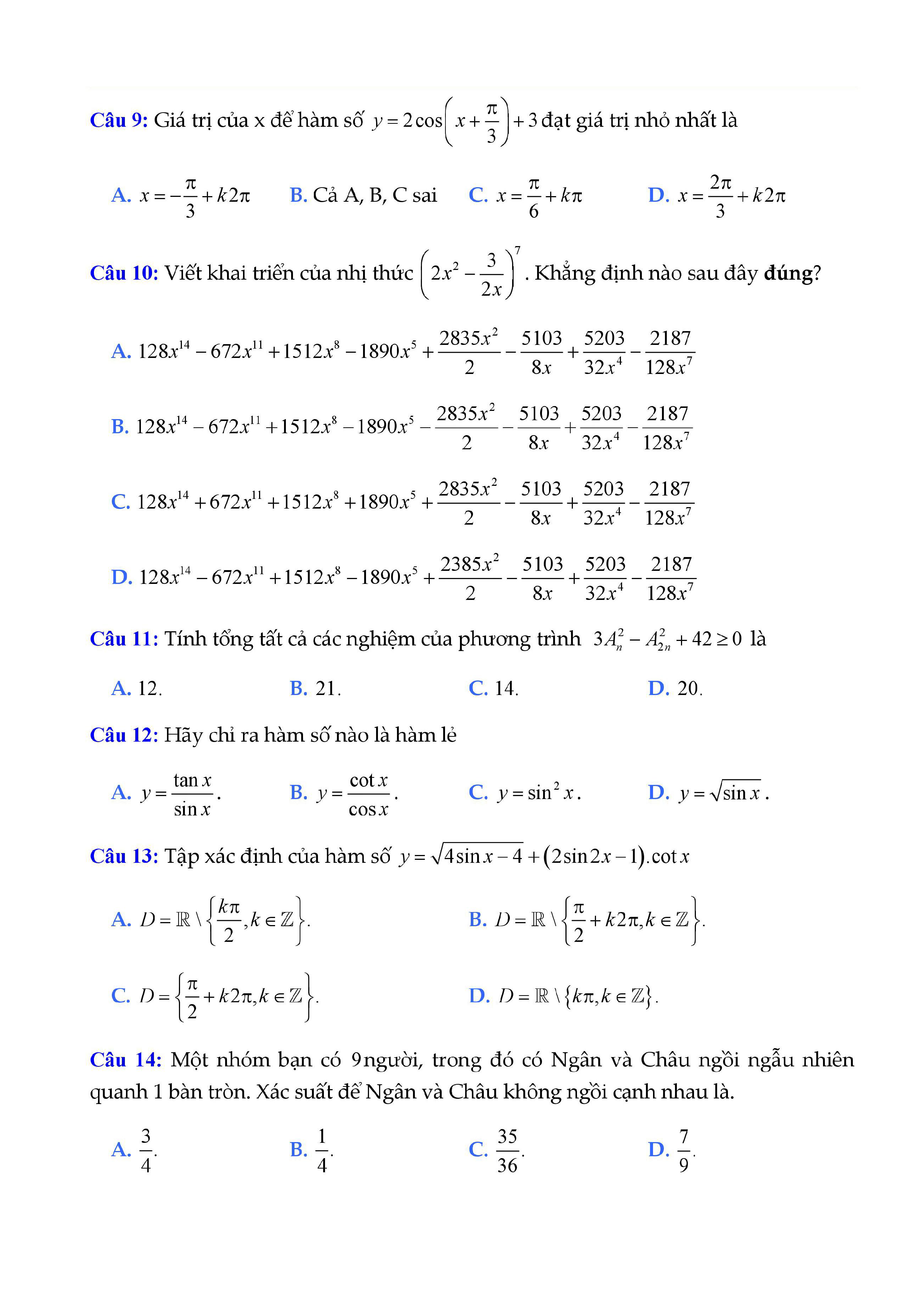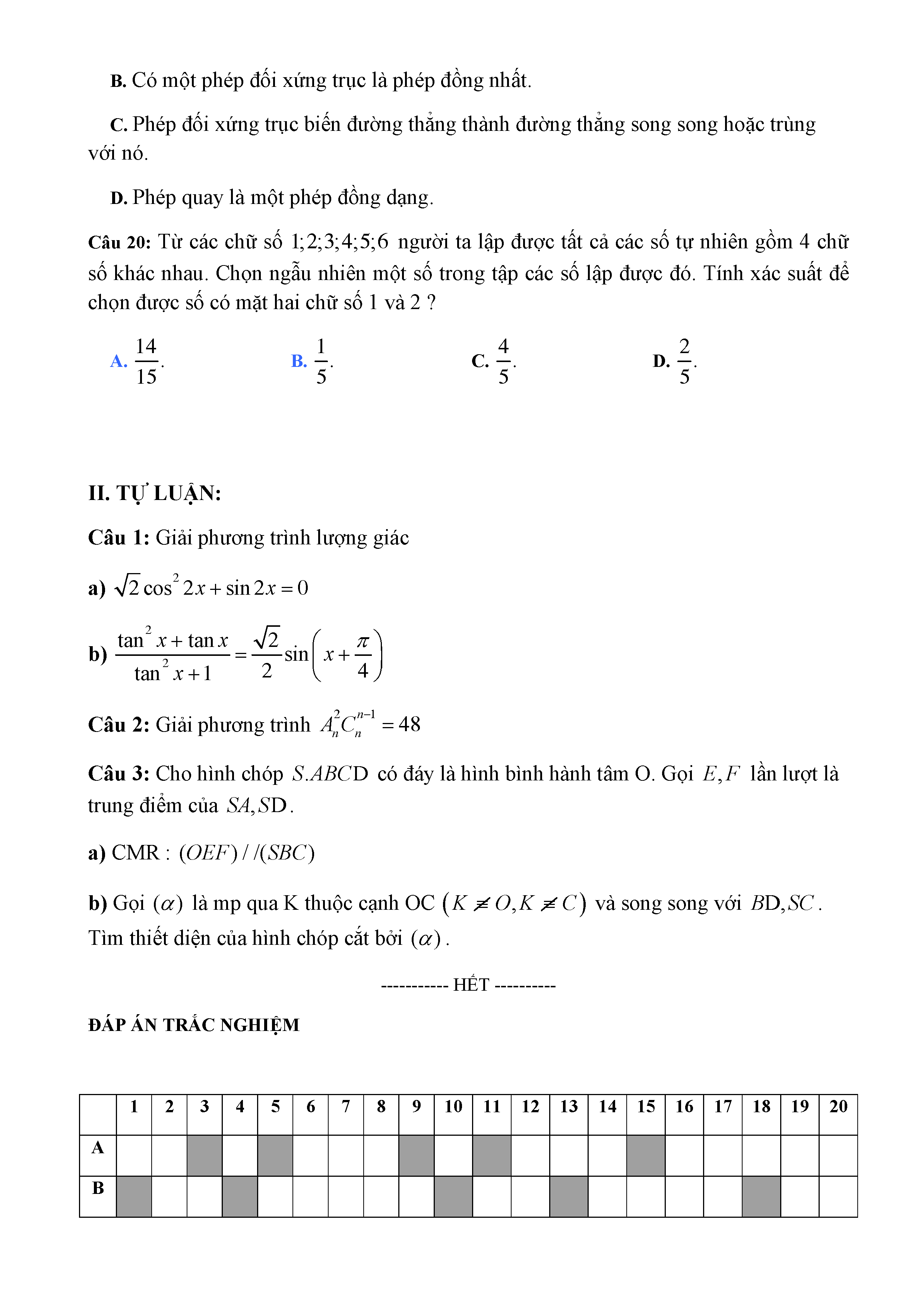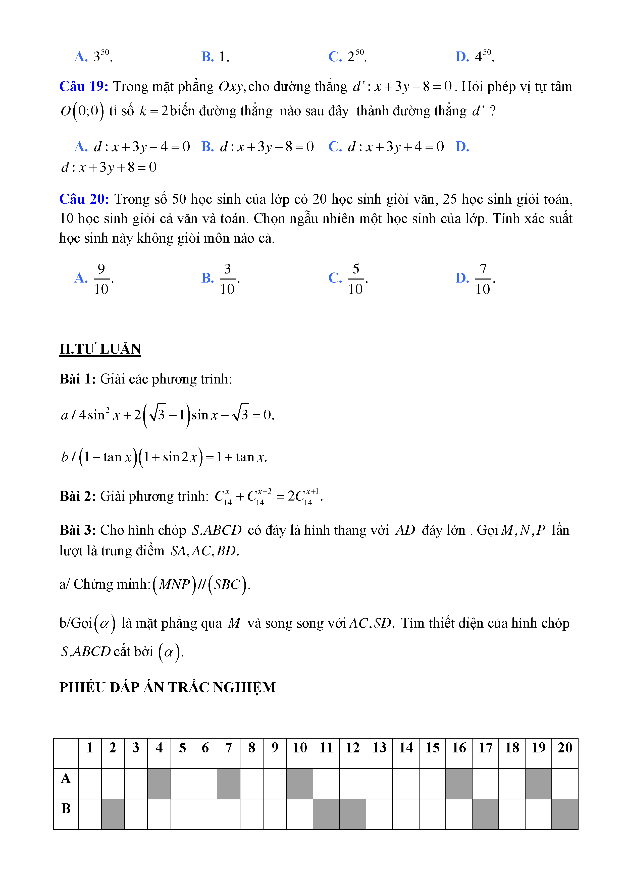 20 đề Toán ôn thi học kì 1 lớp 11