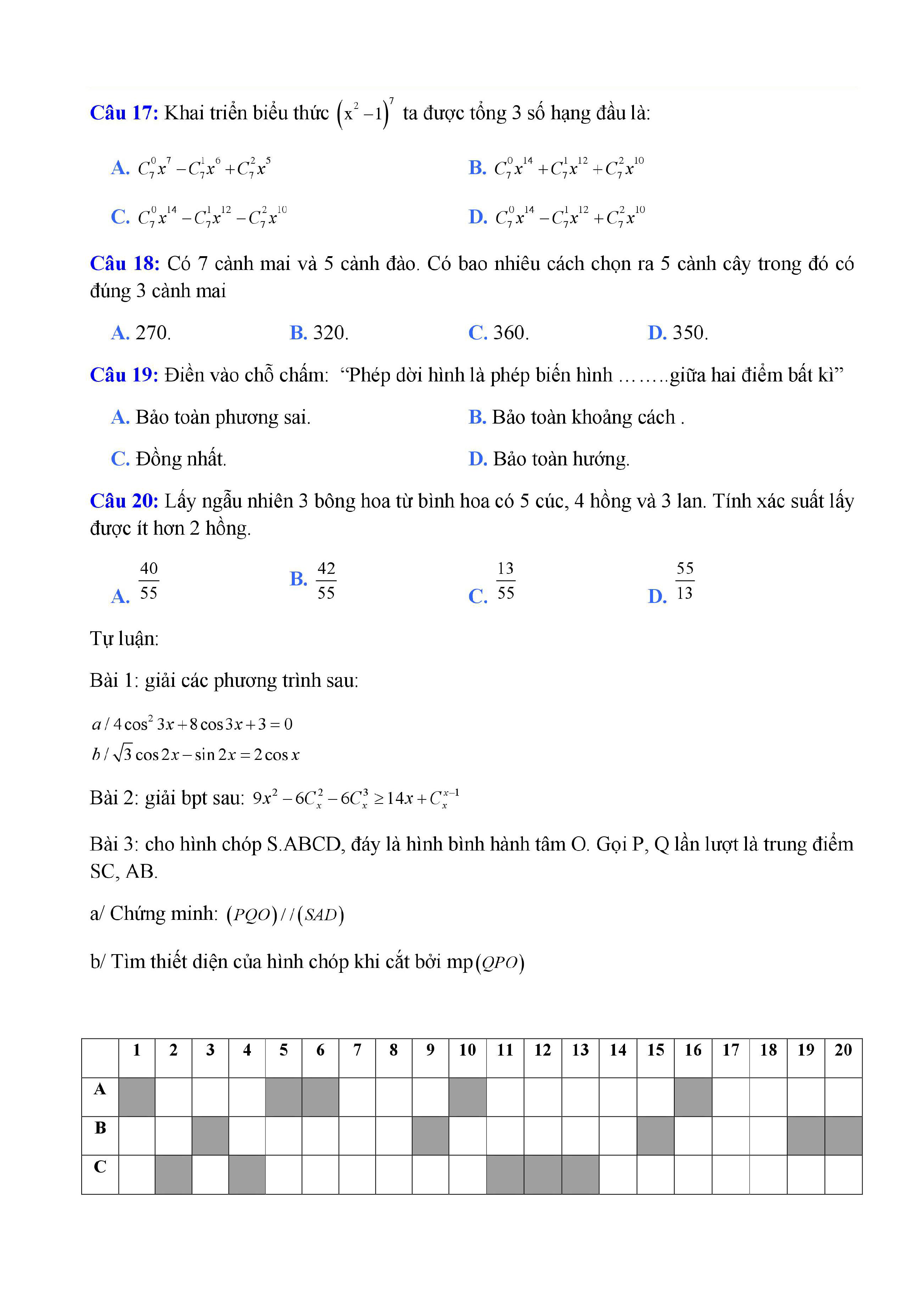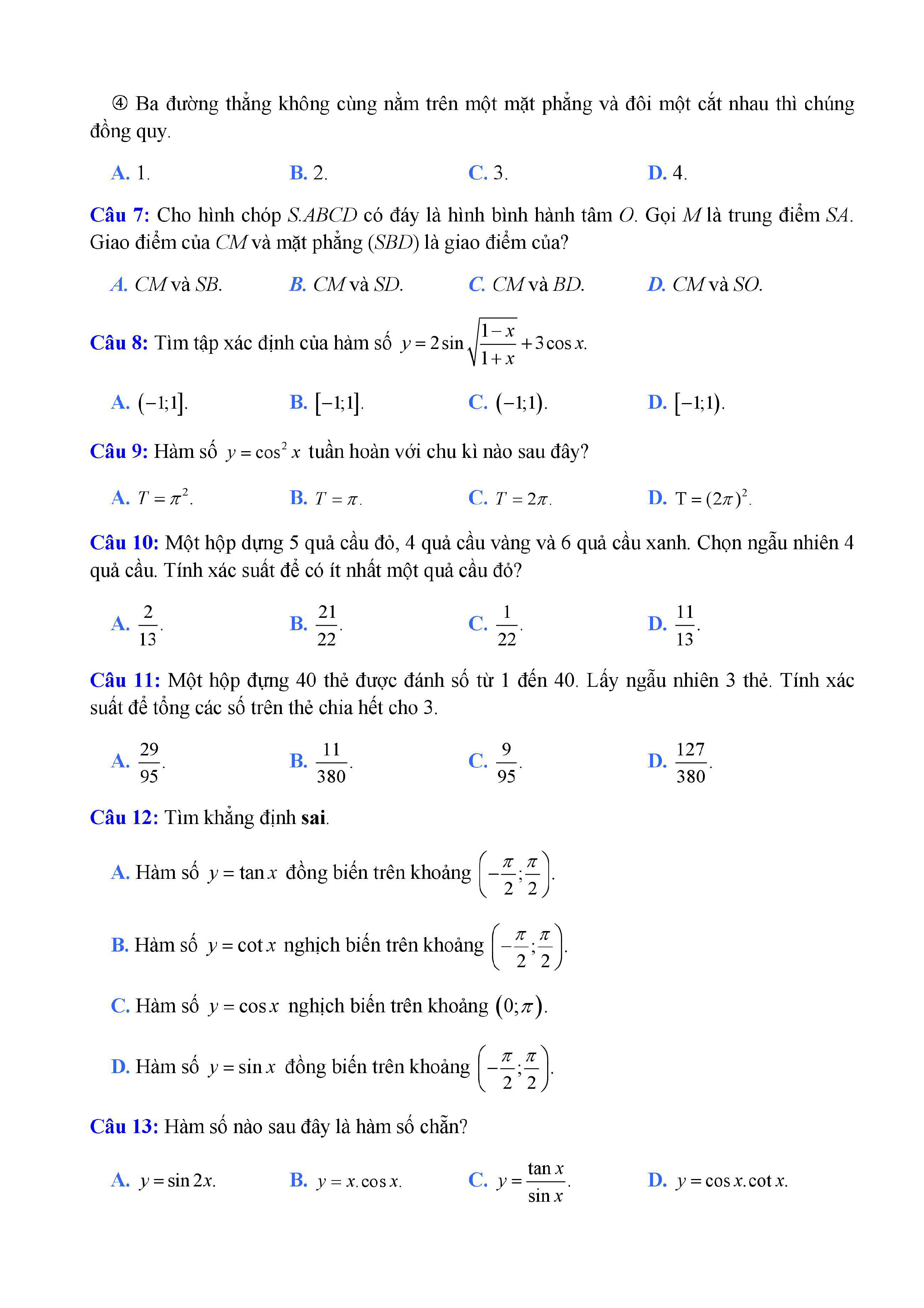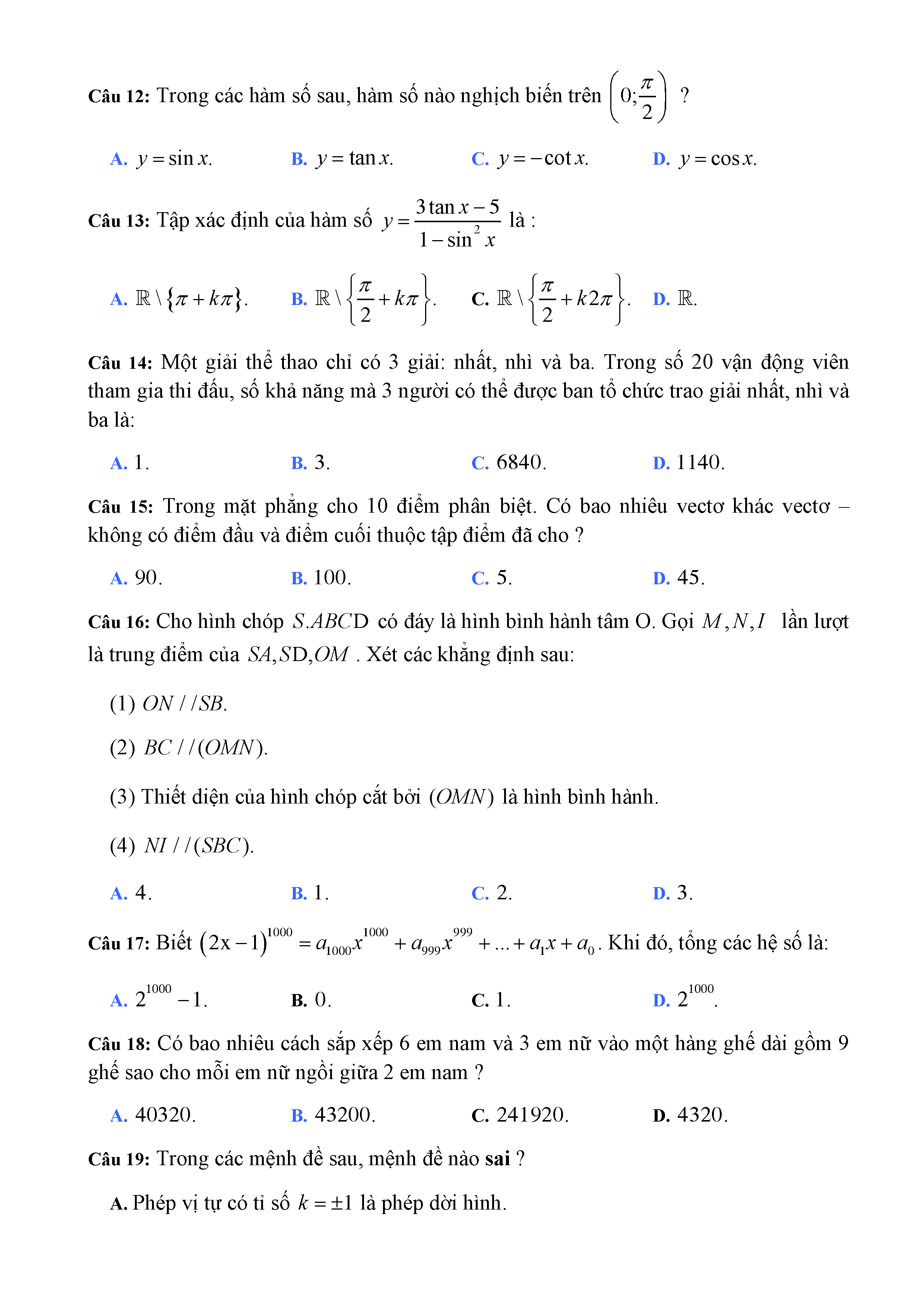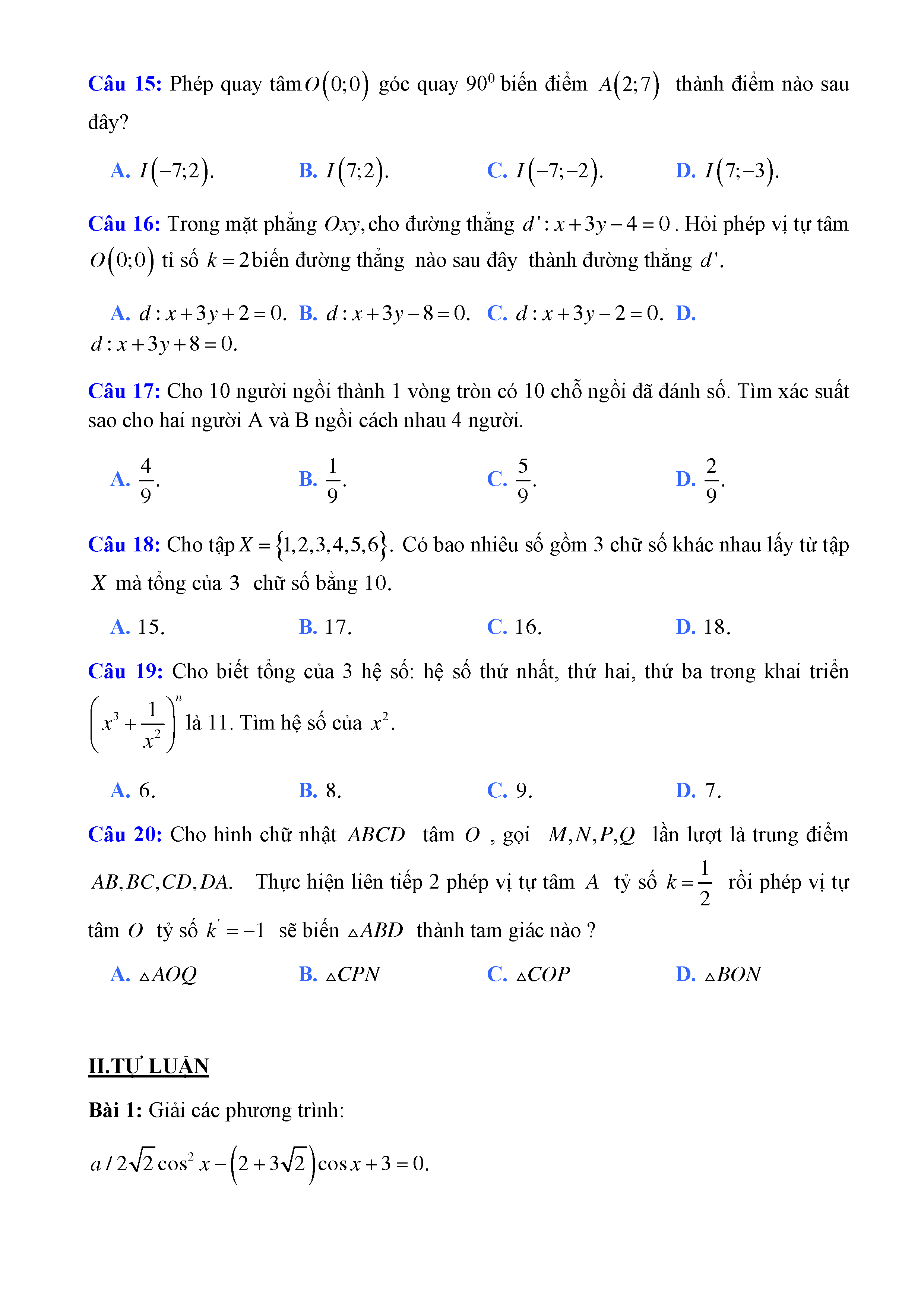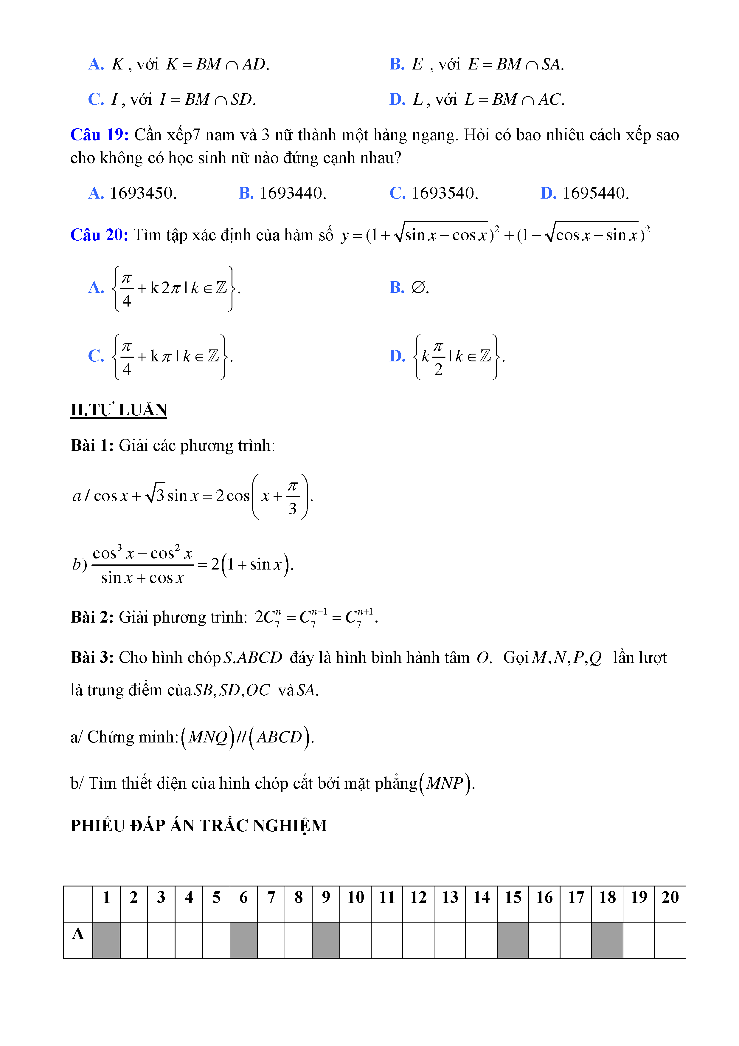 20 đề Toán ôn thi học kì 1 lớp 11