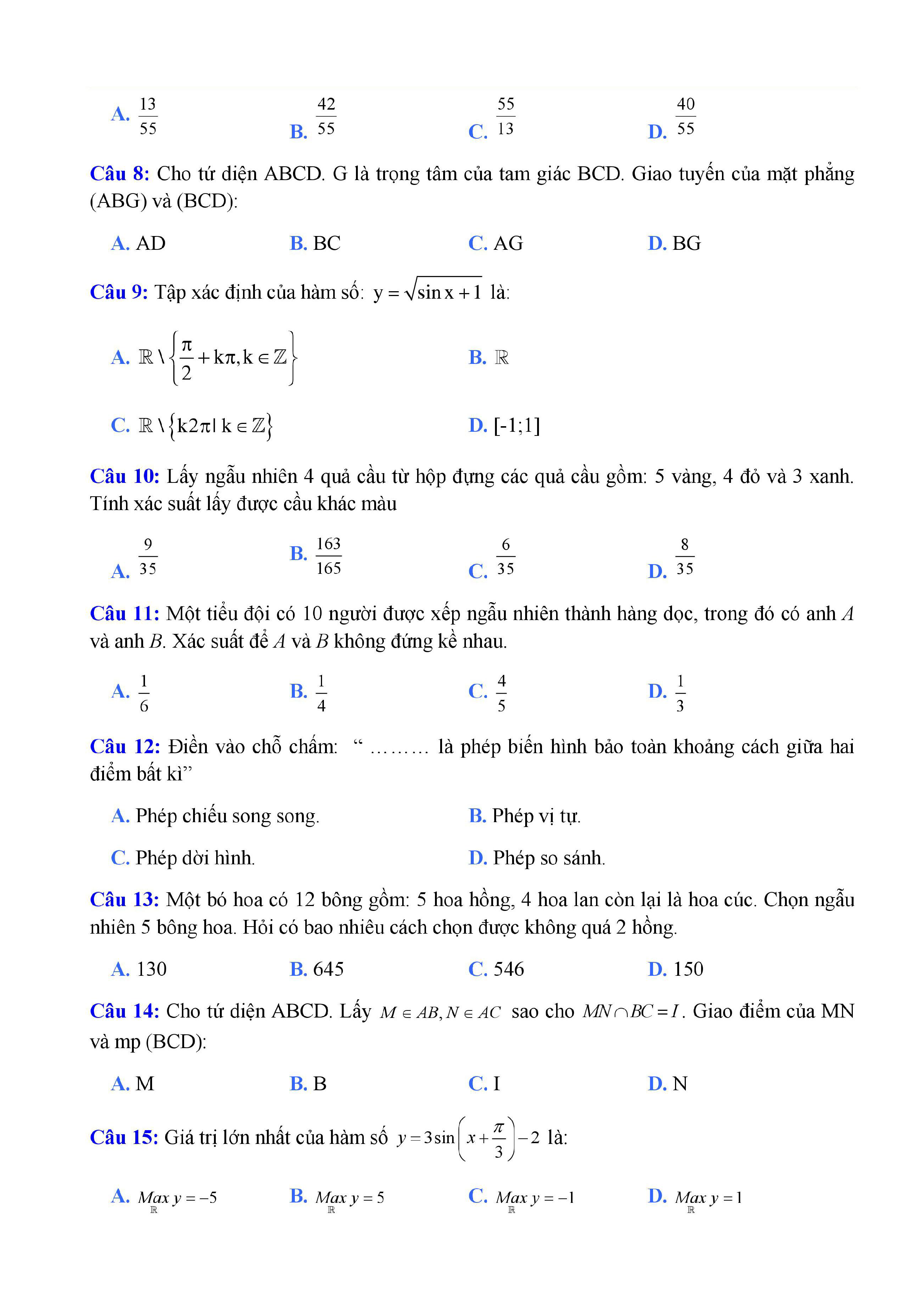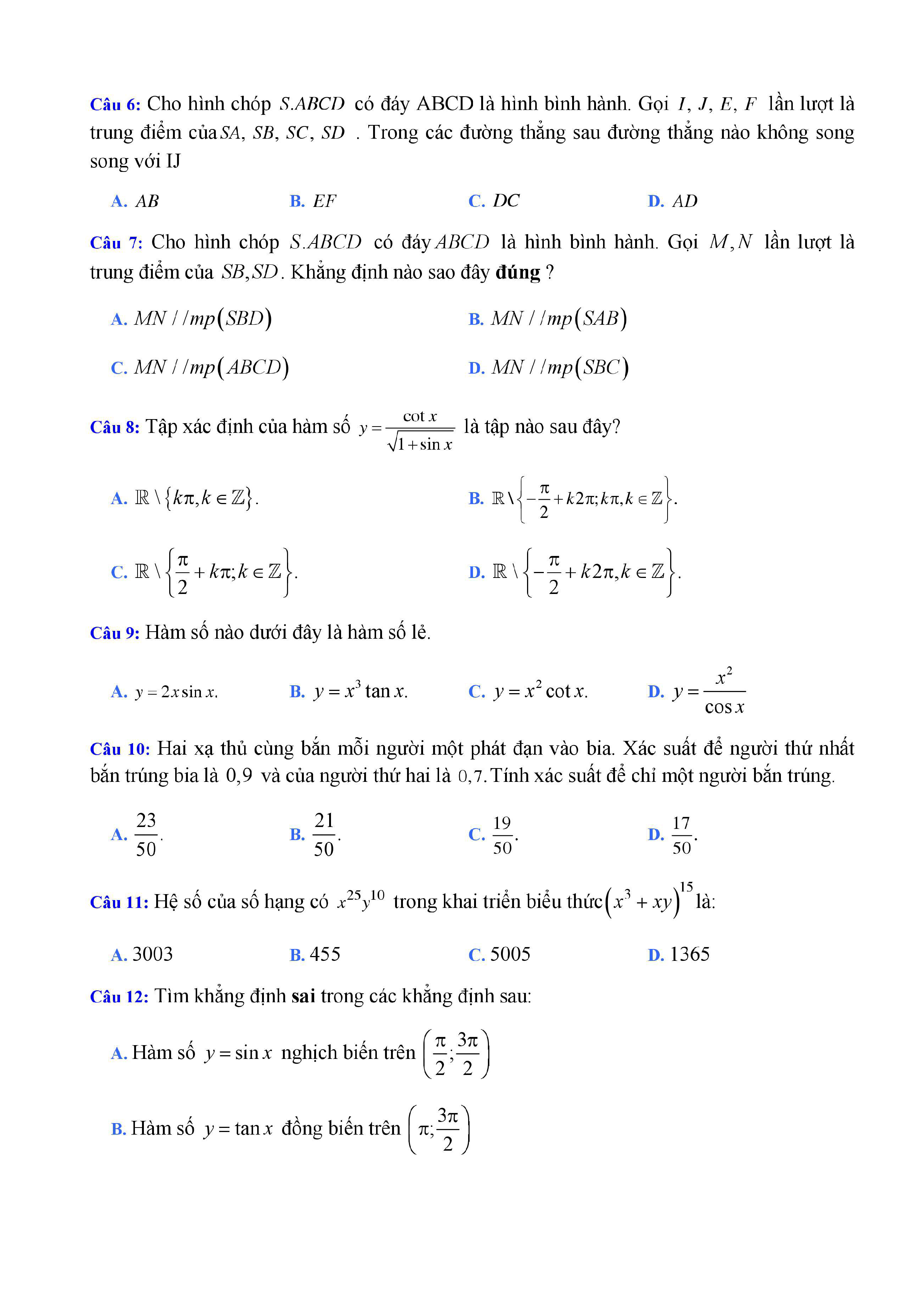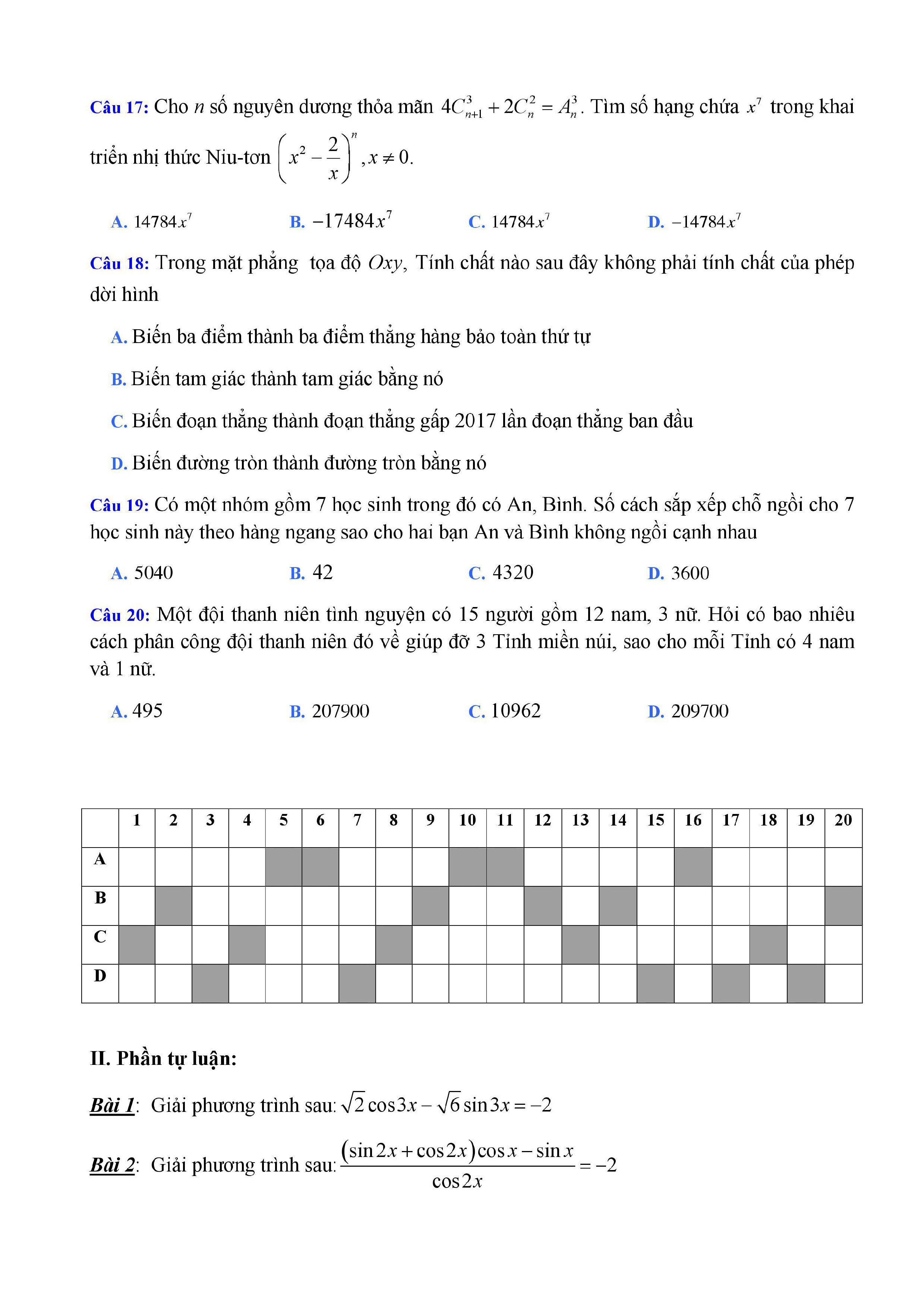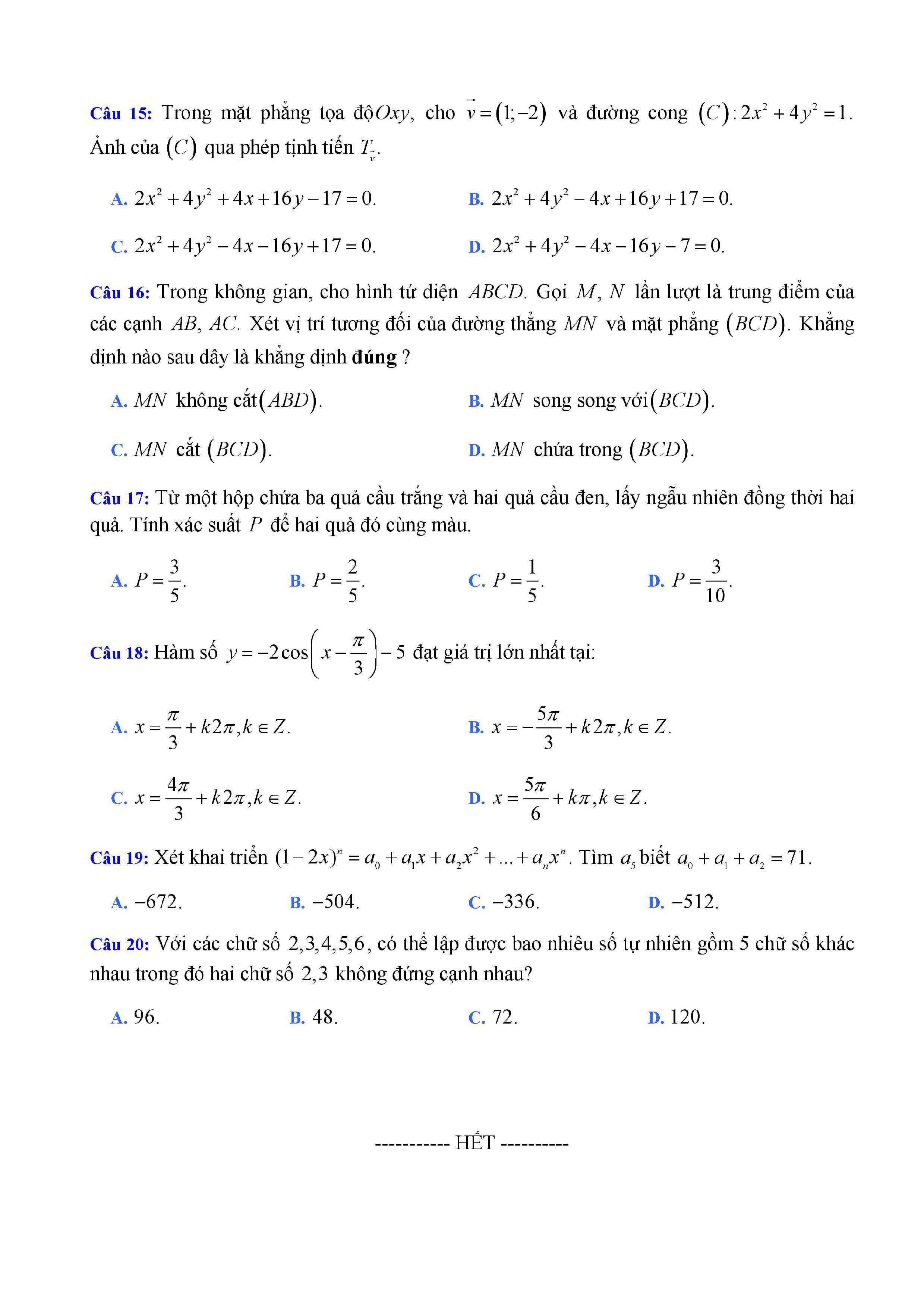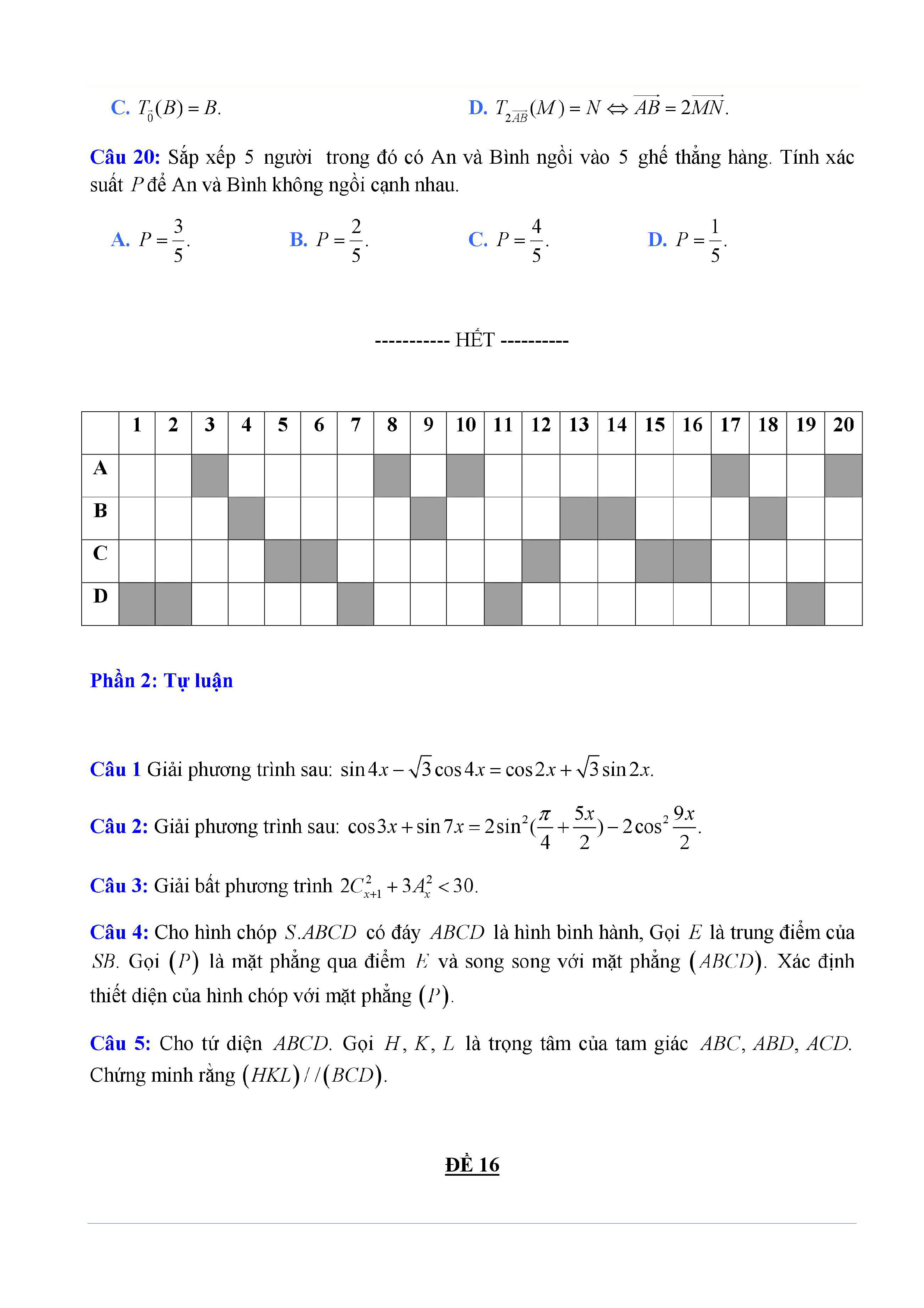20 đề Toán ôn thi học kì 1 lớp 11