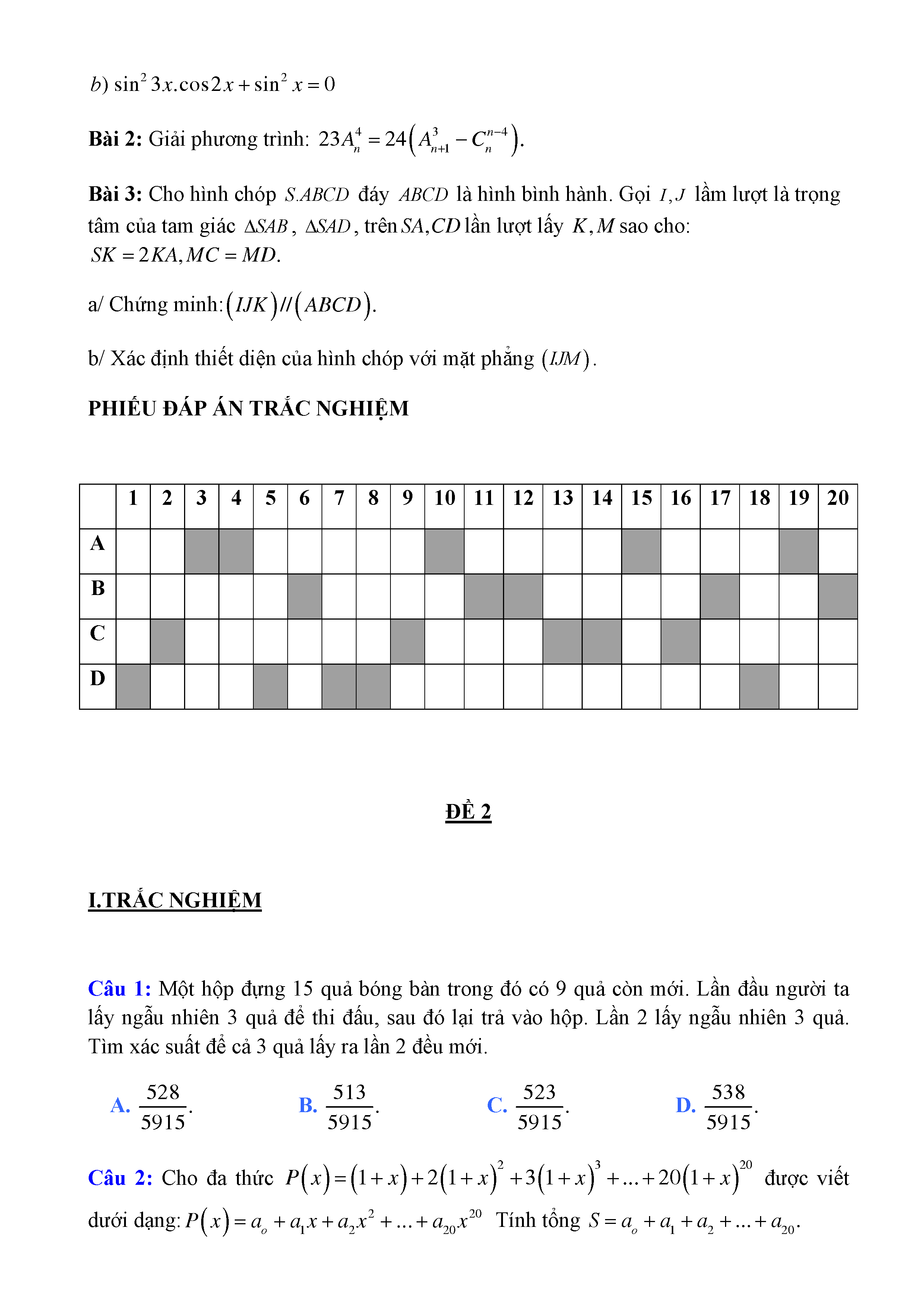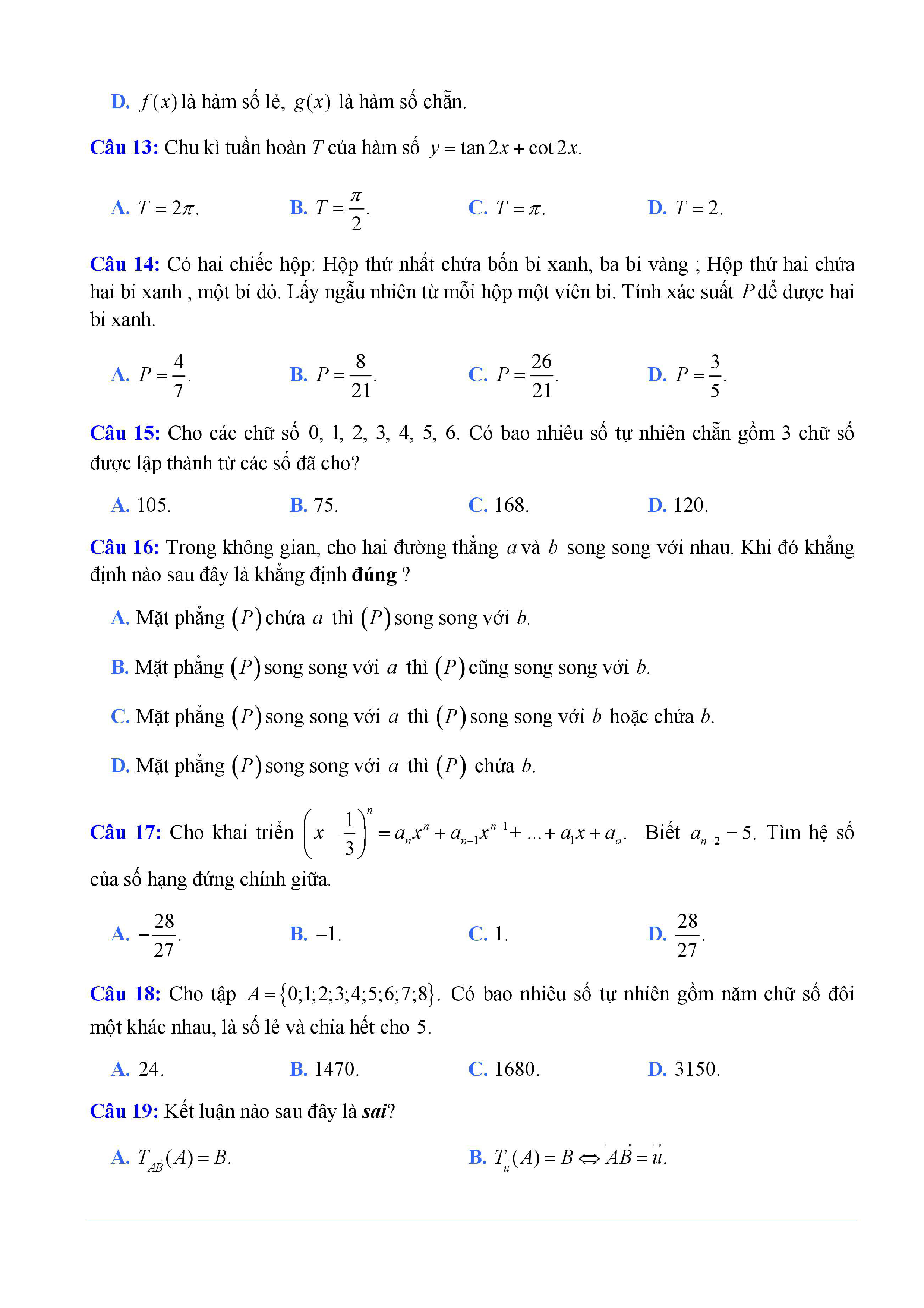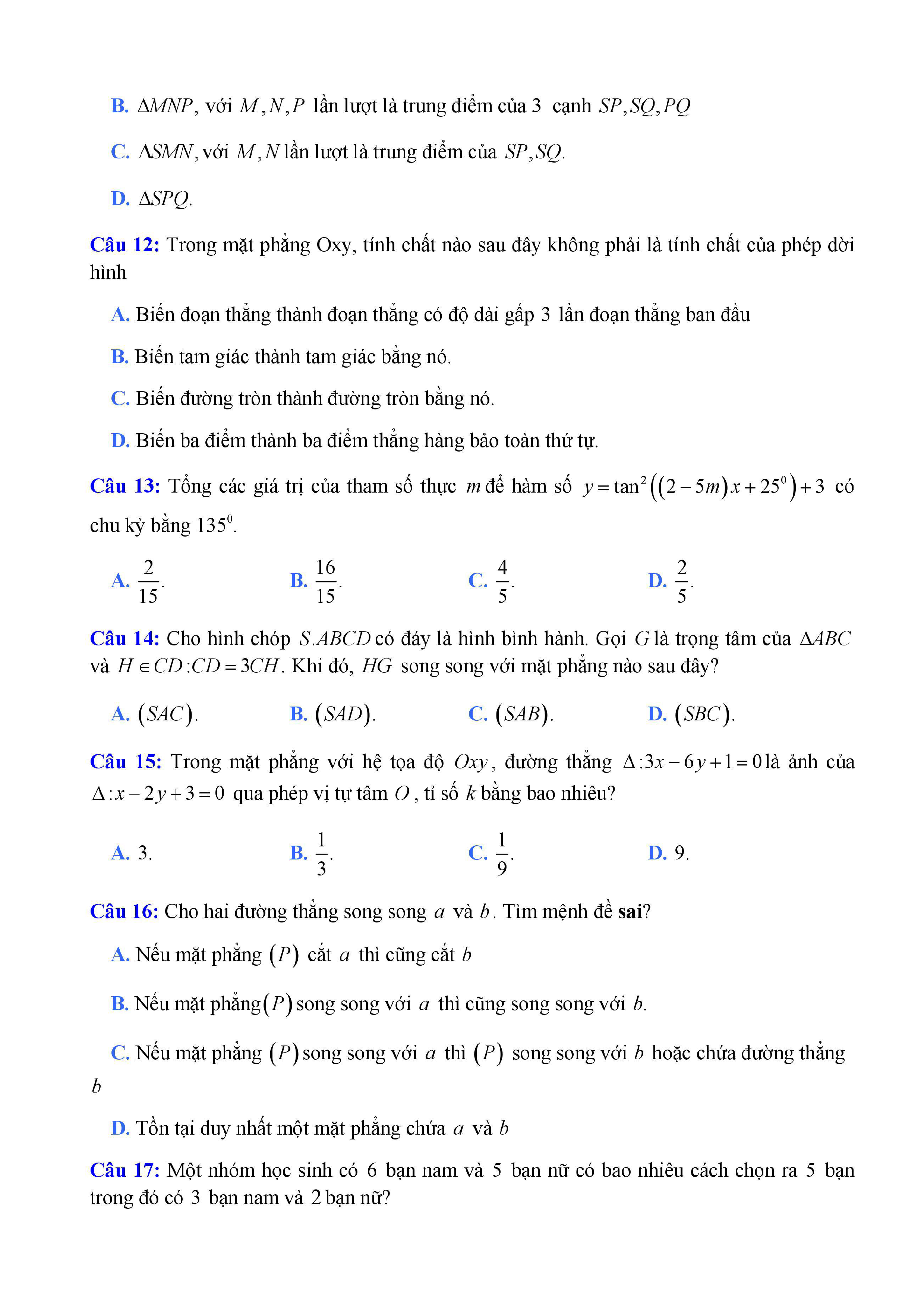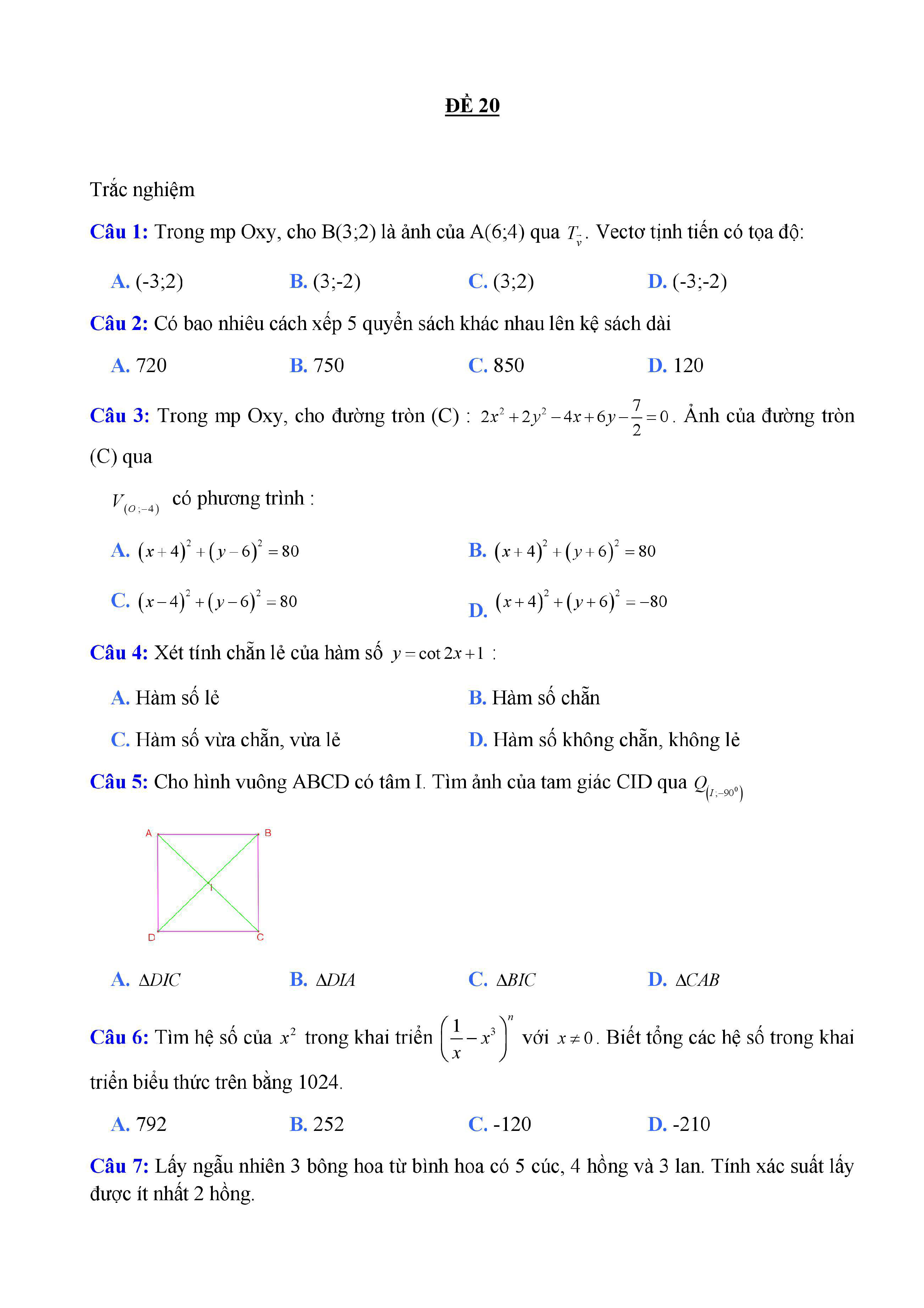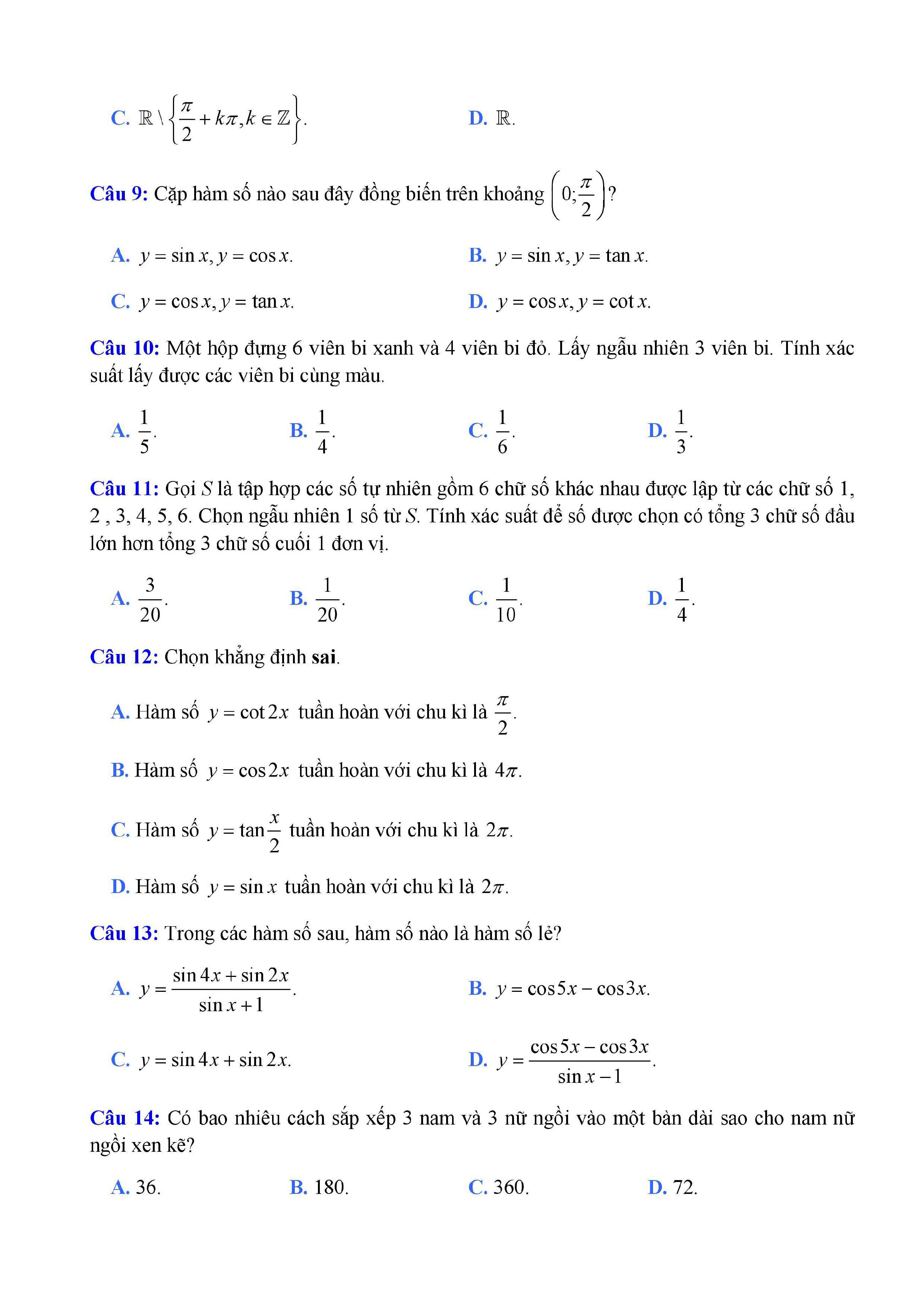 20 đề Toán ôn thi học kì 1 lớp 11