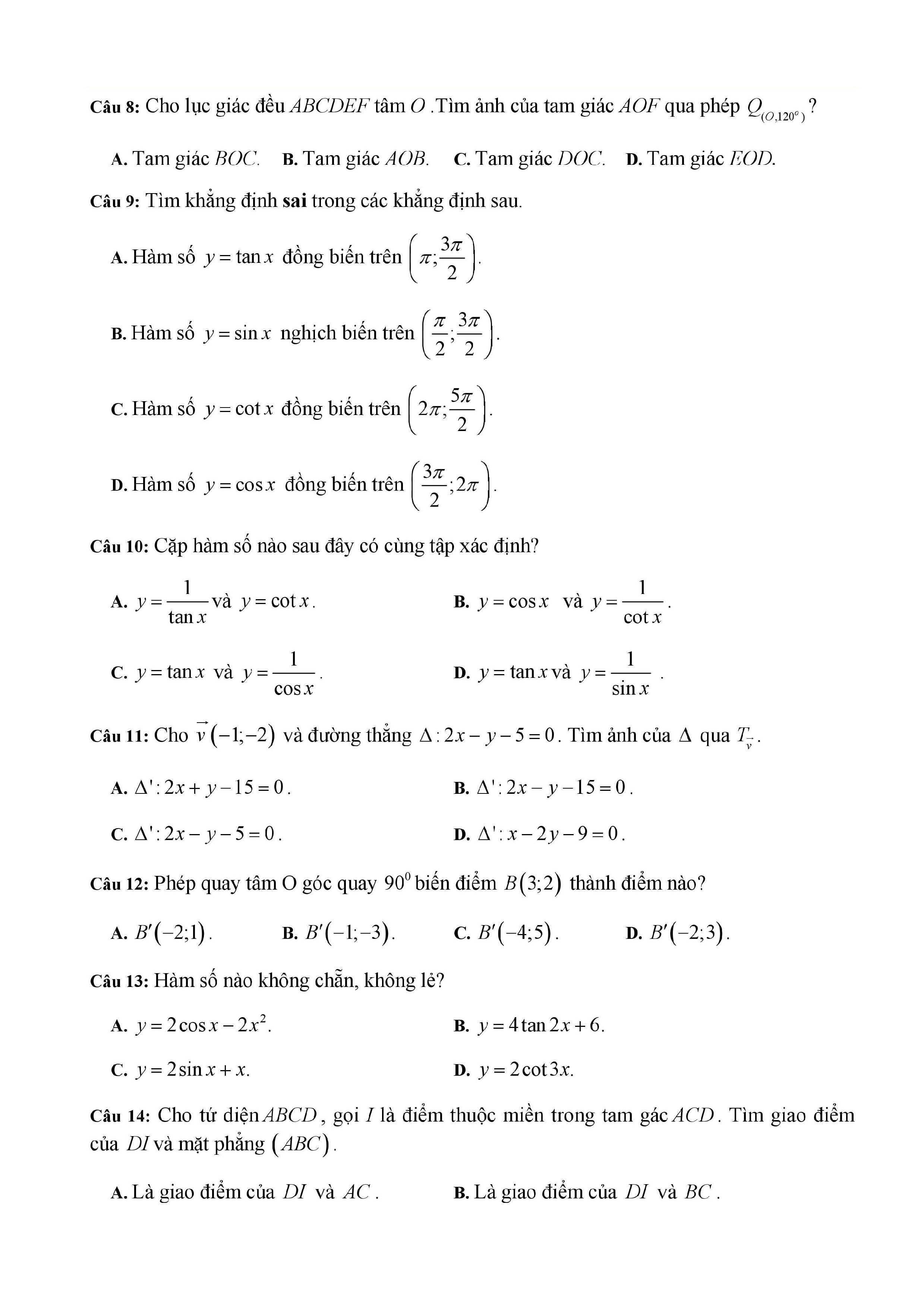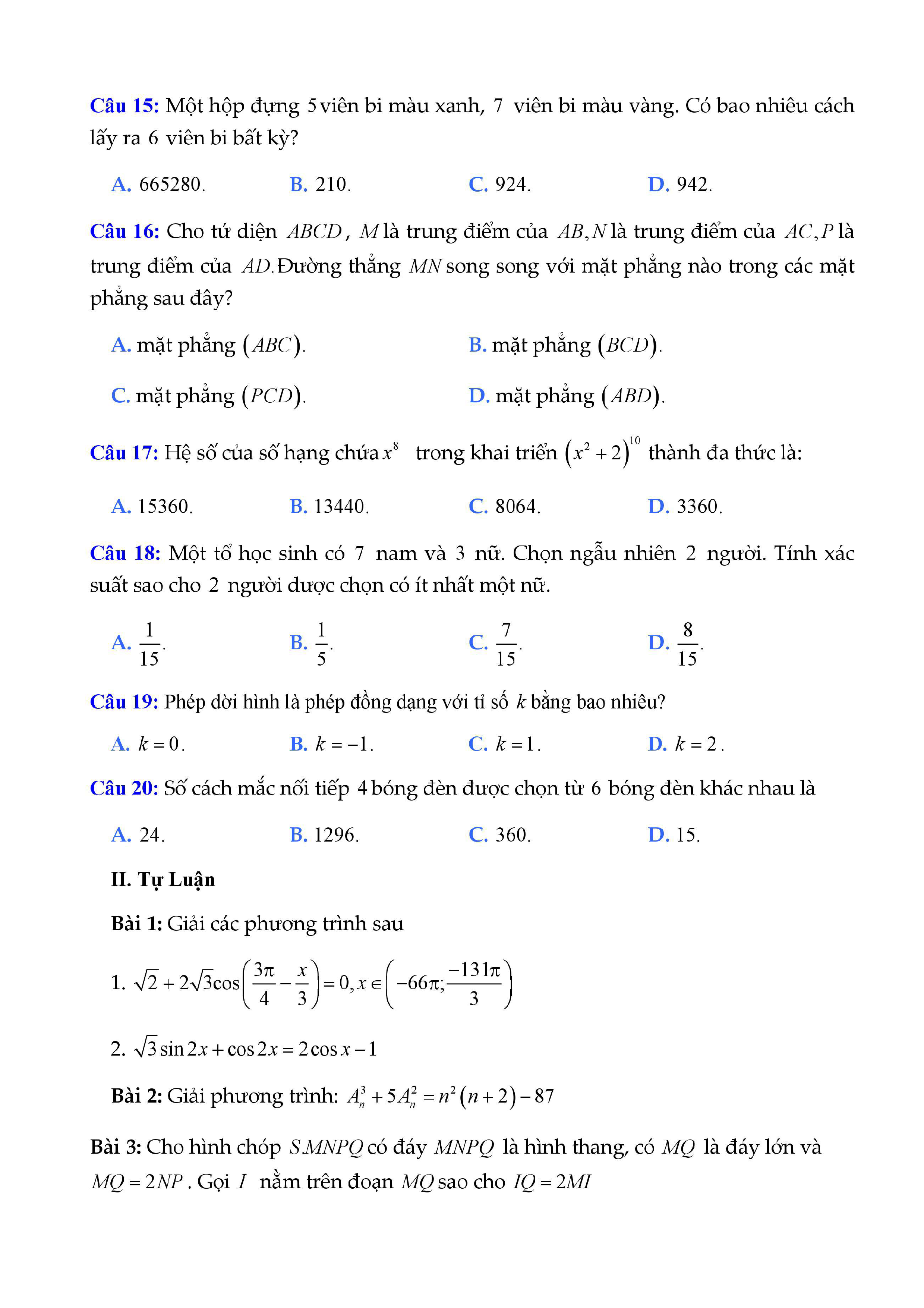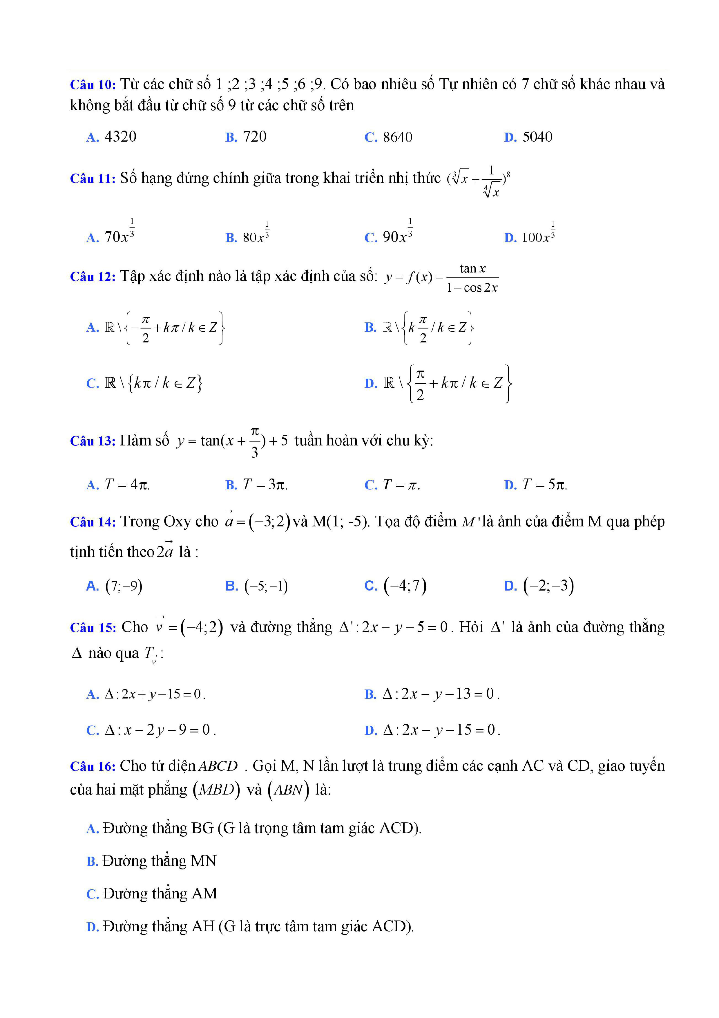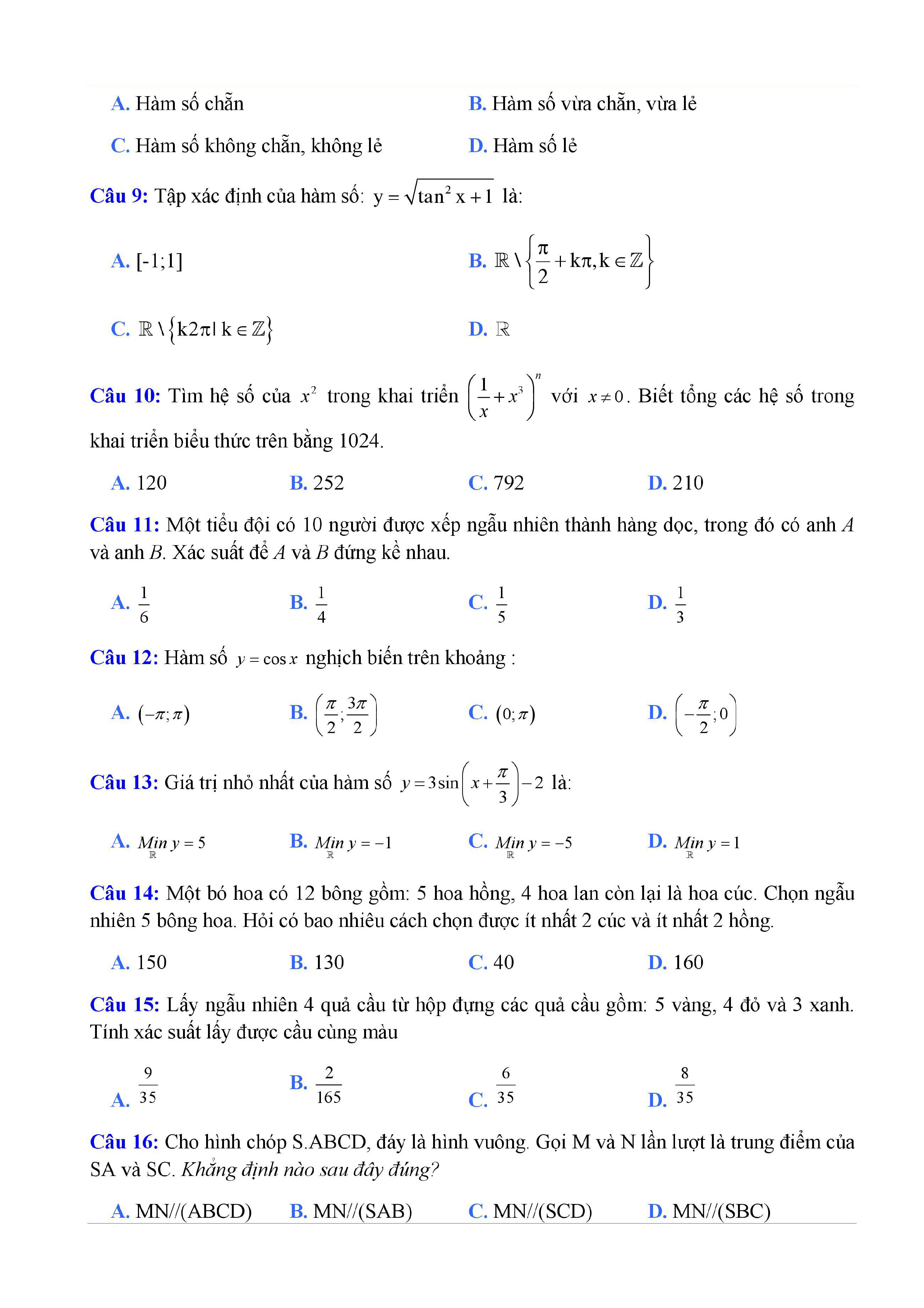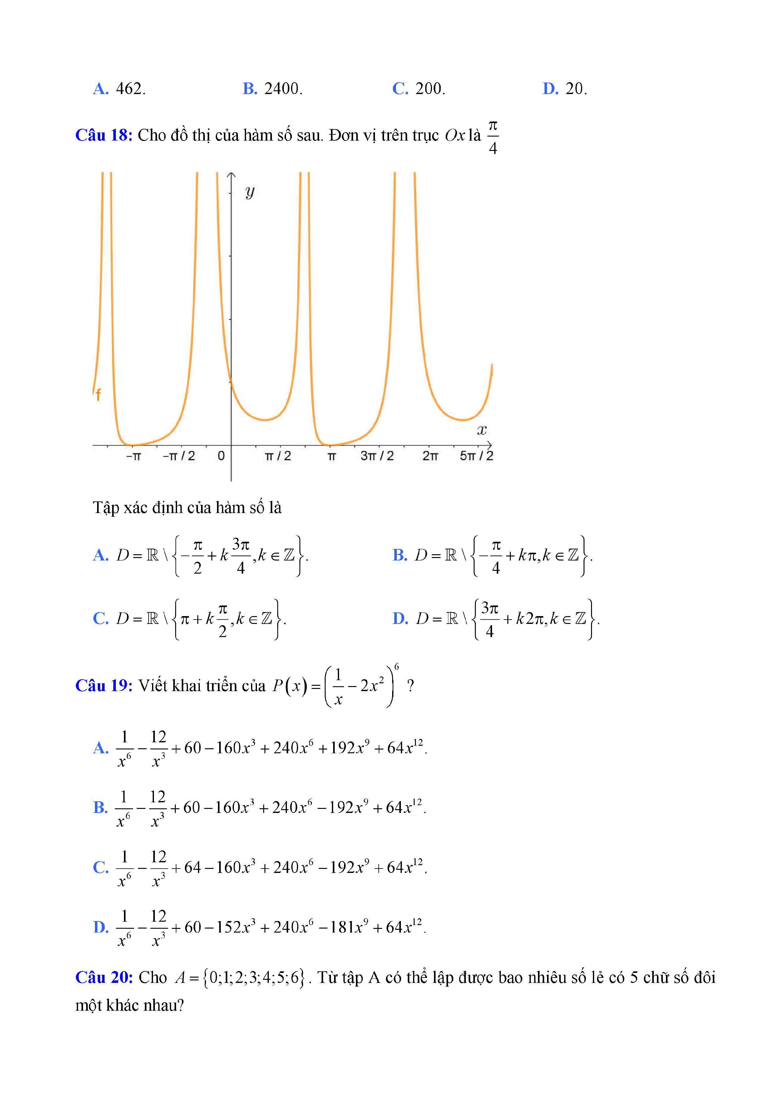 20 đề Toán ôn thi học kì 1 lớp 11