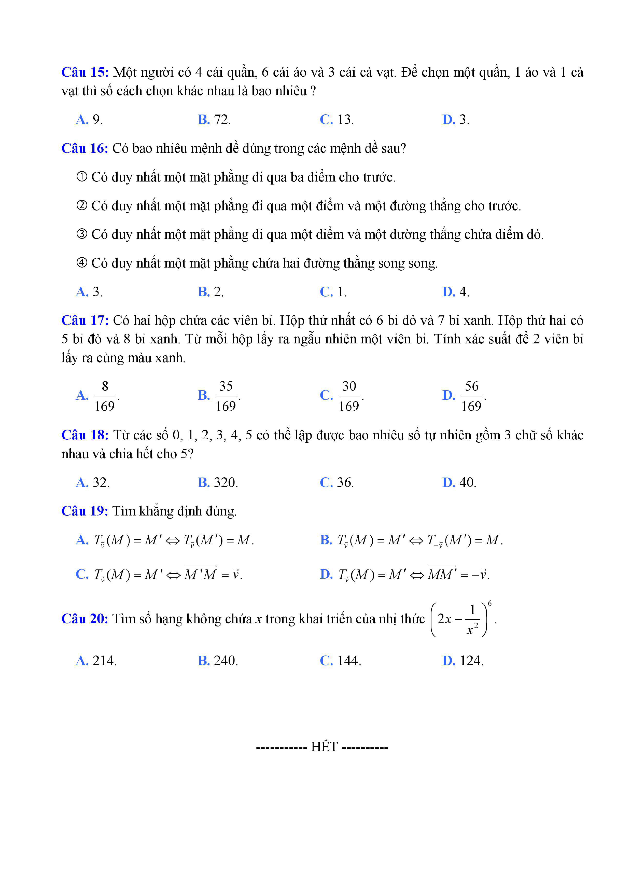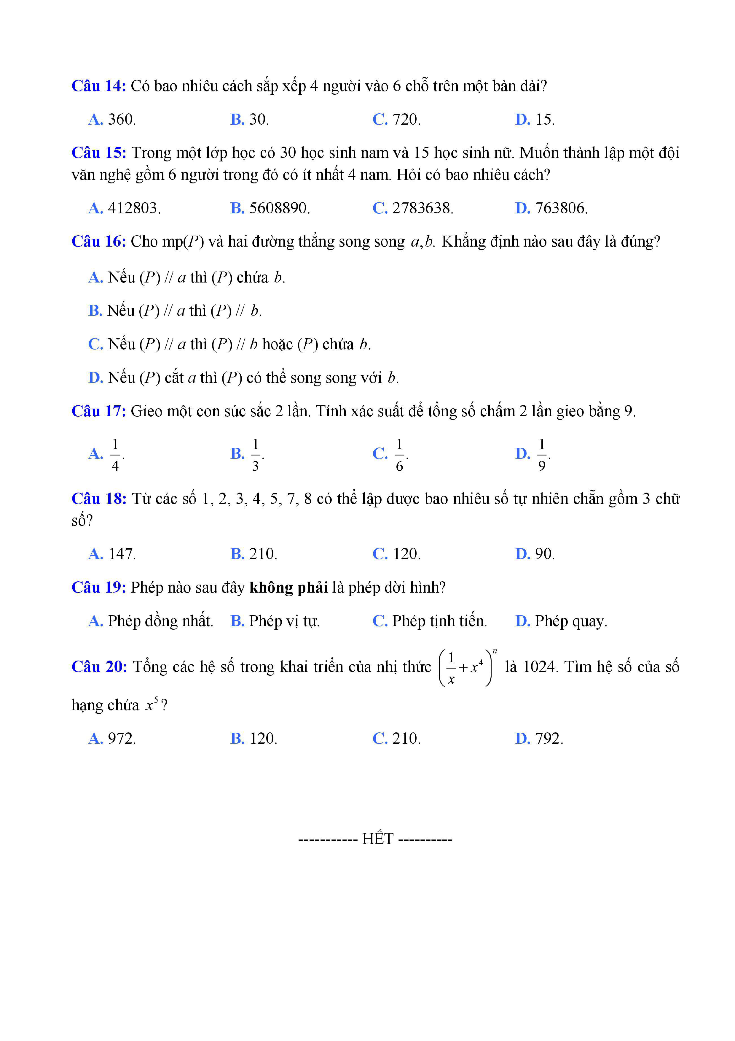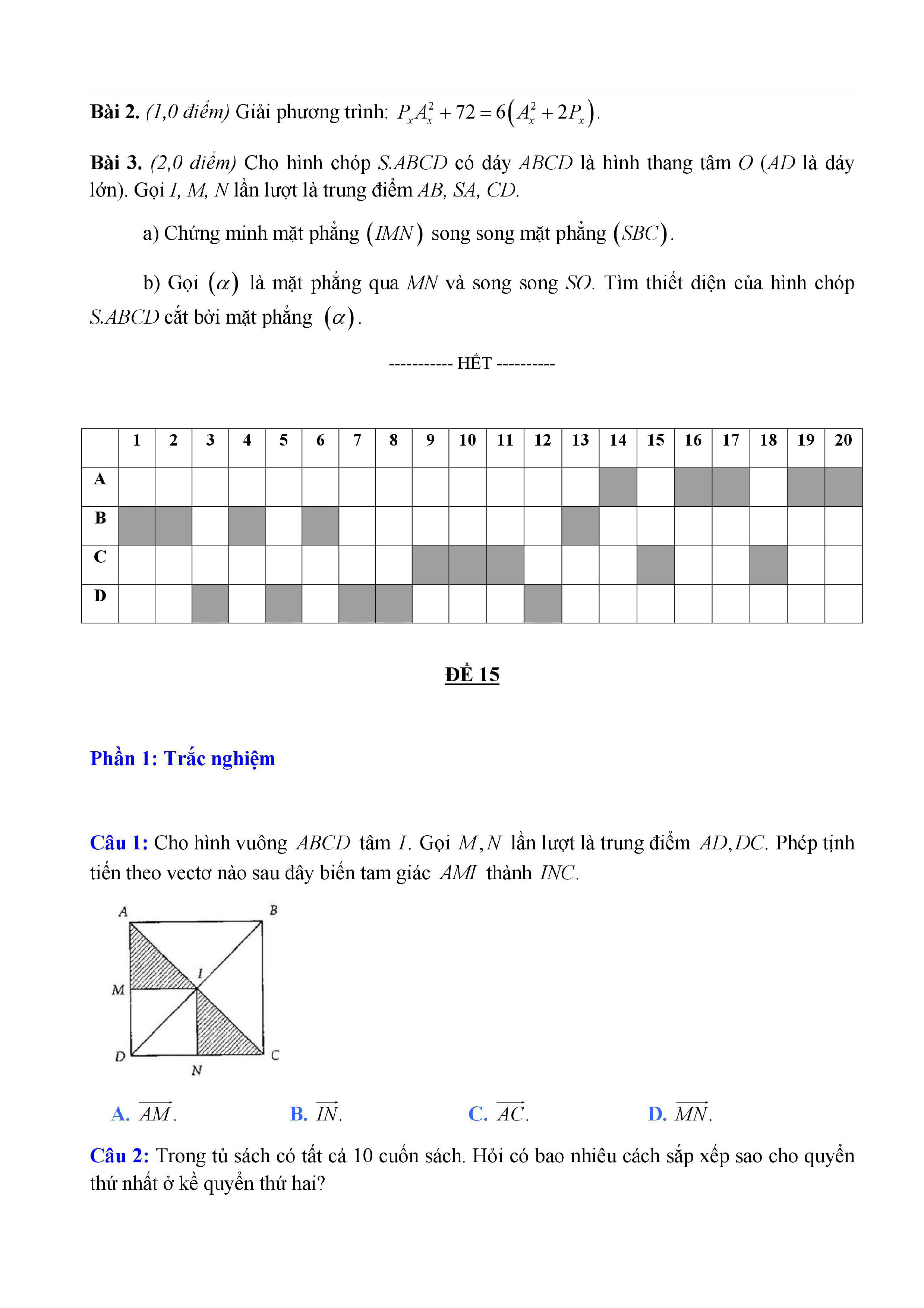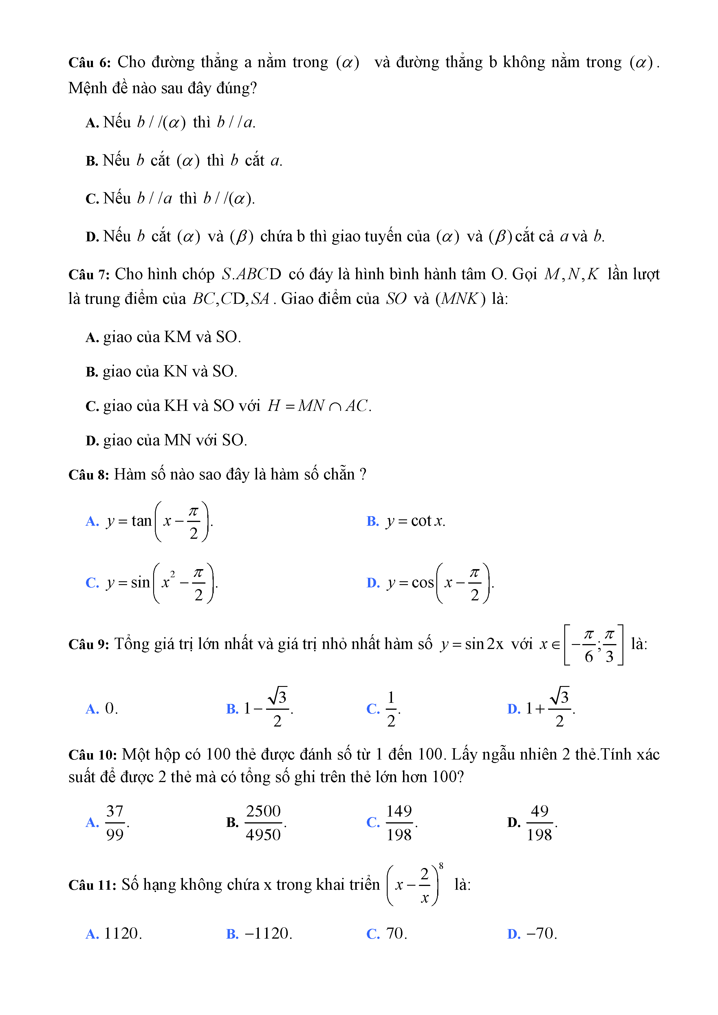 20 đề Toán ôn thi học kì 1 lớp 11