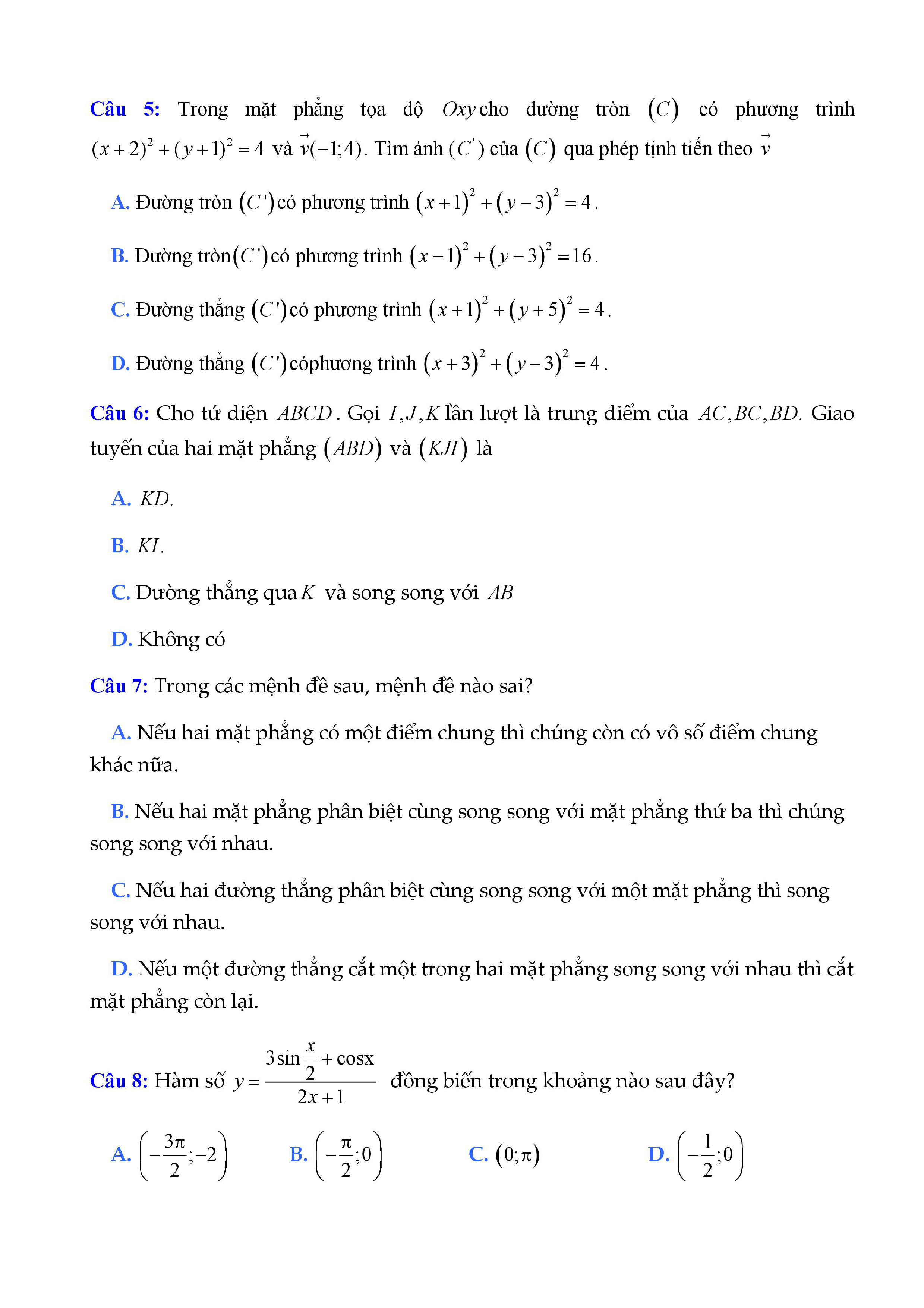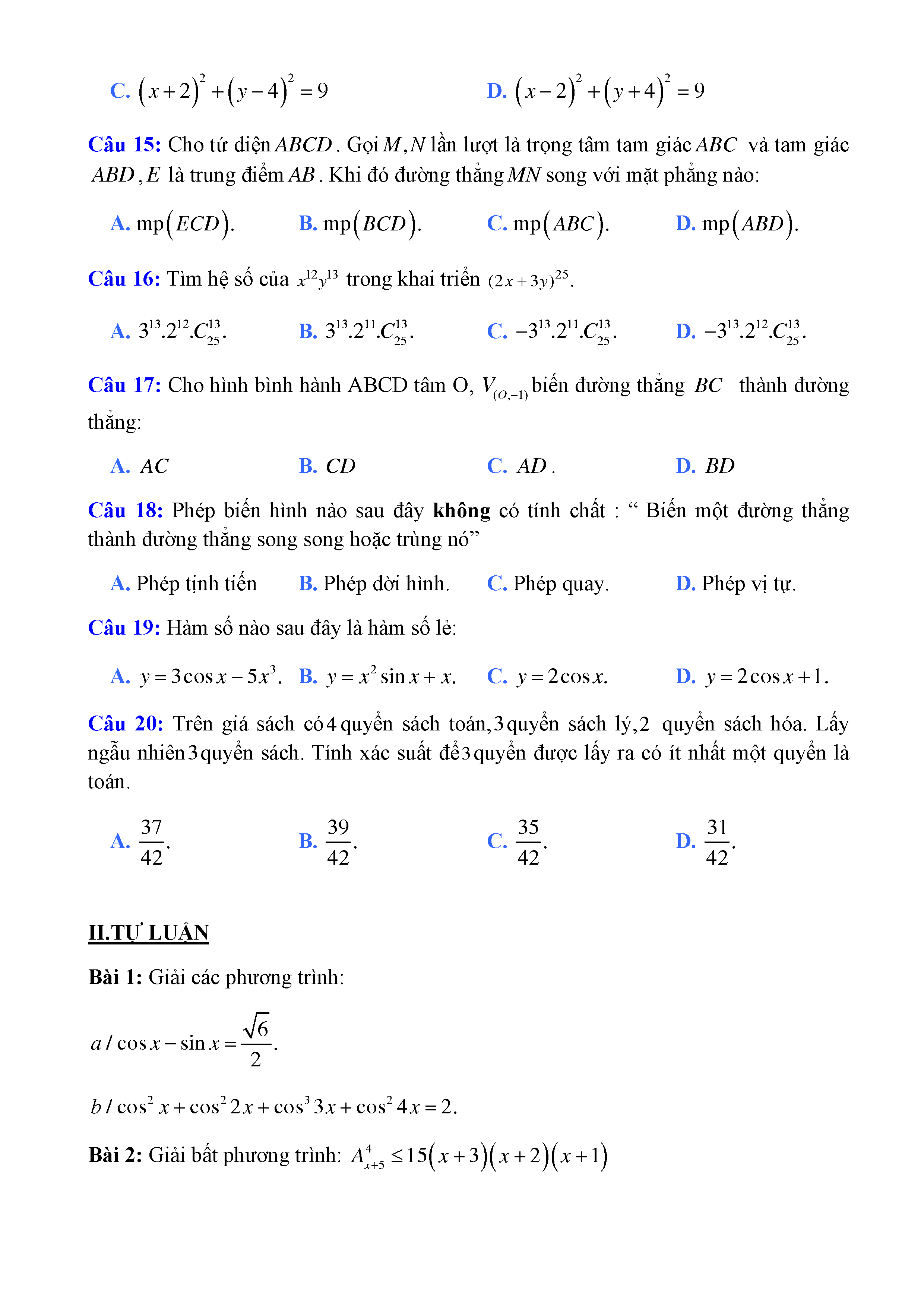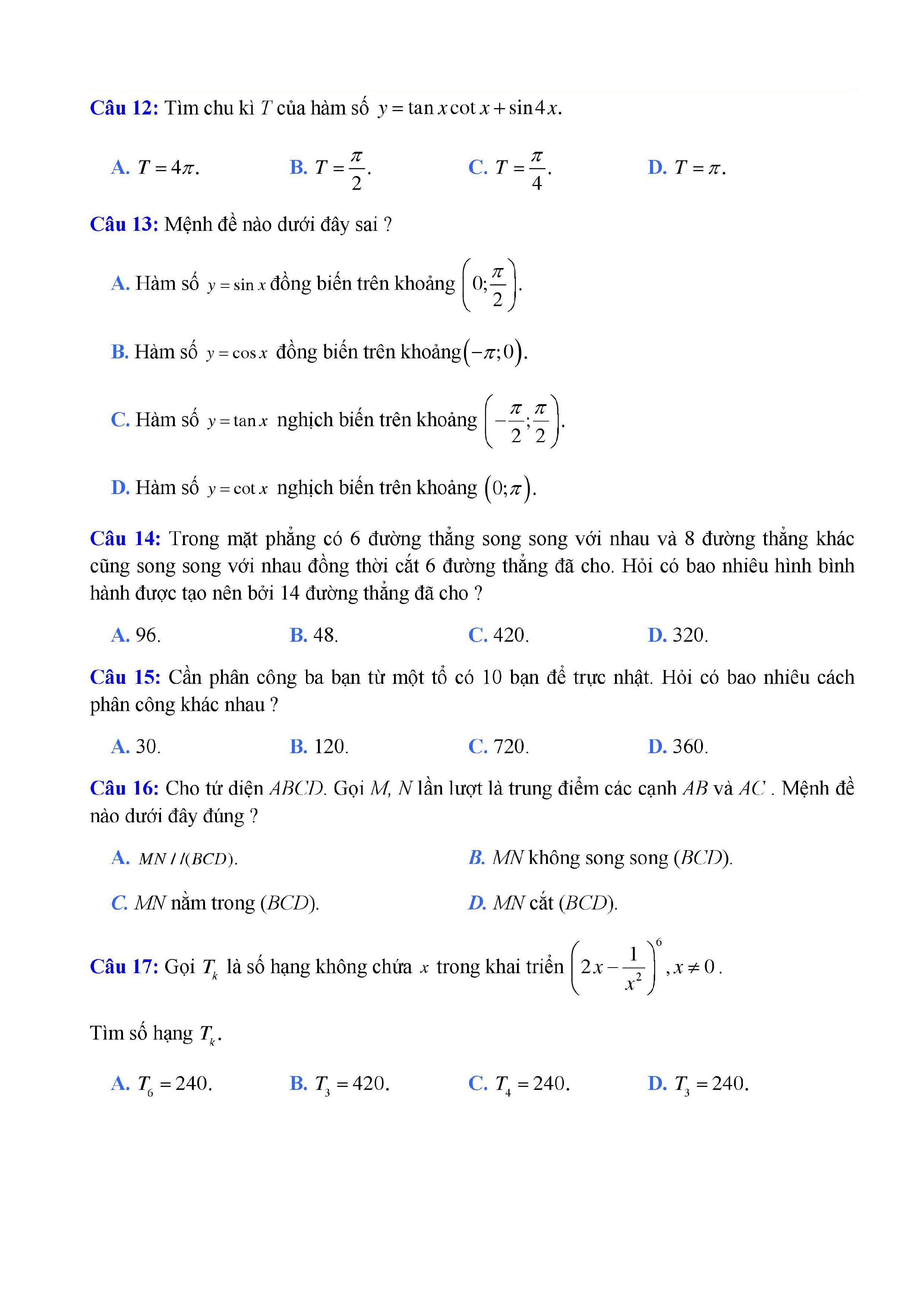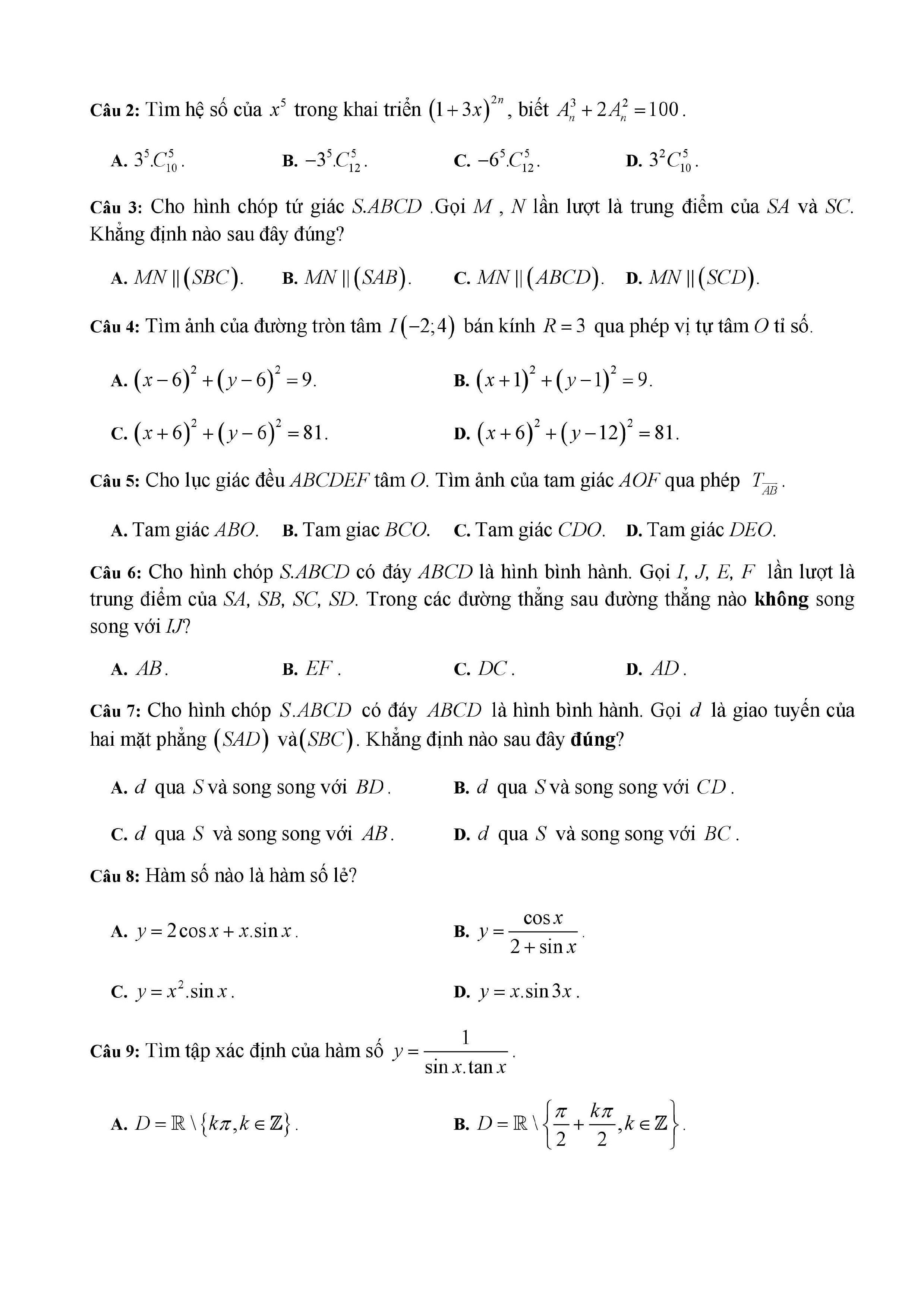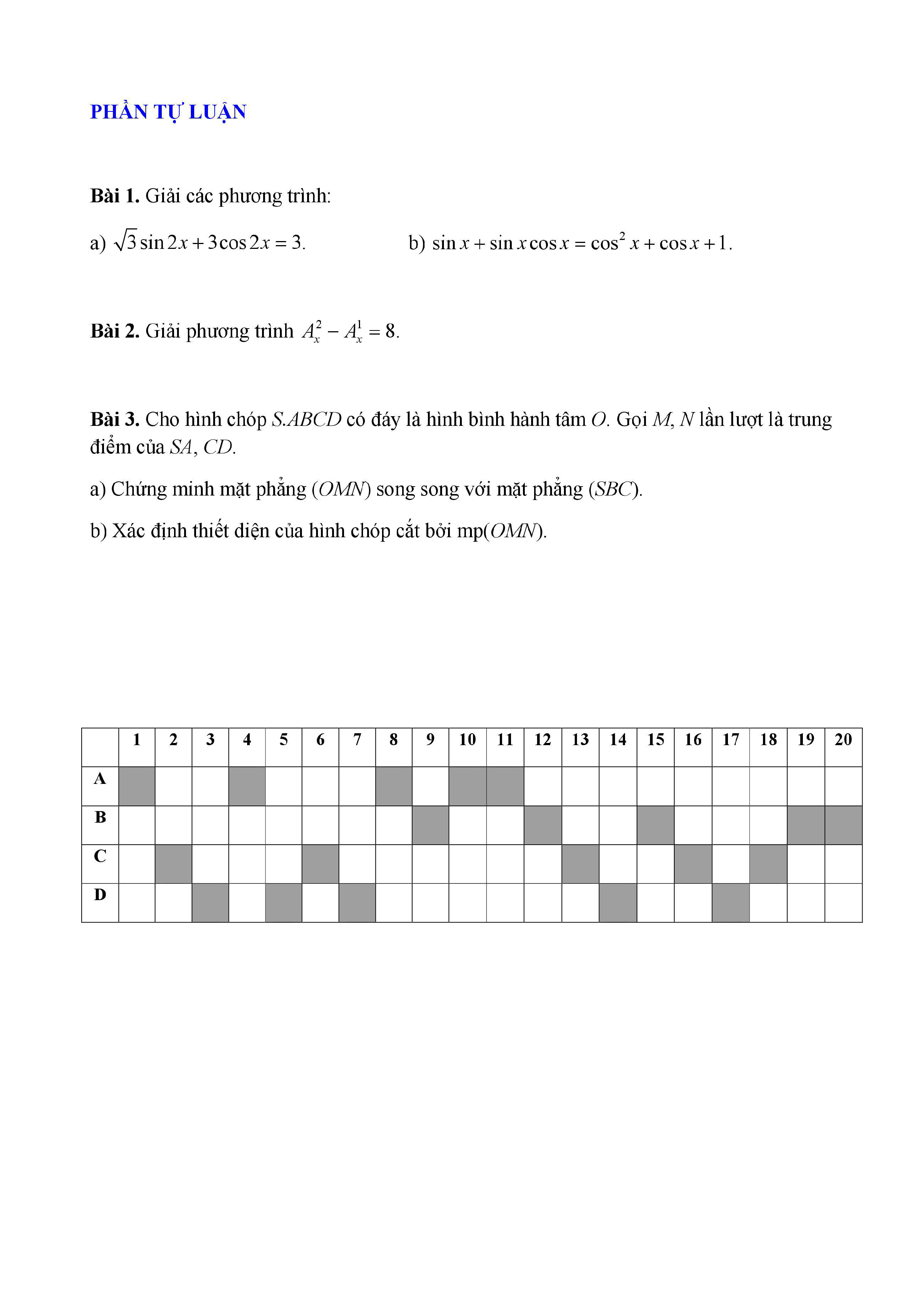 20 đề Toán ôn thi học kì 1 lớp 11