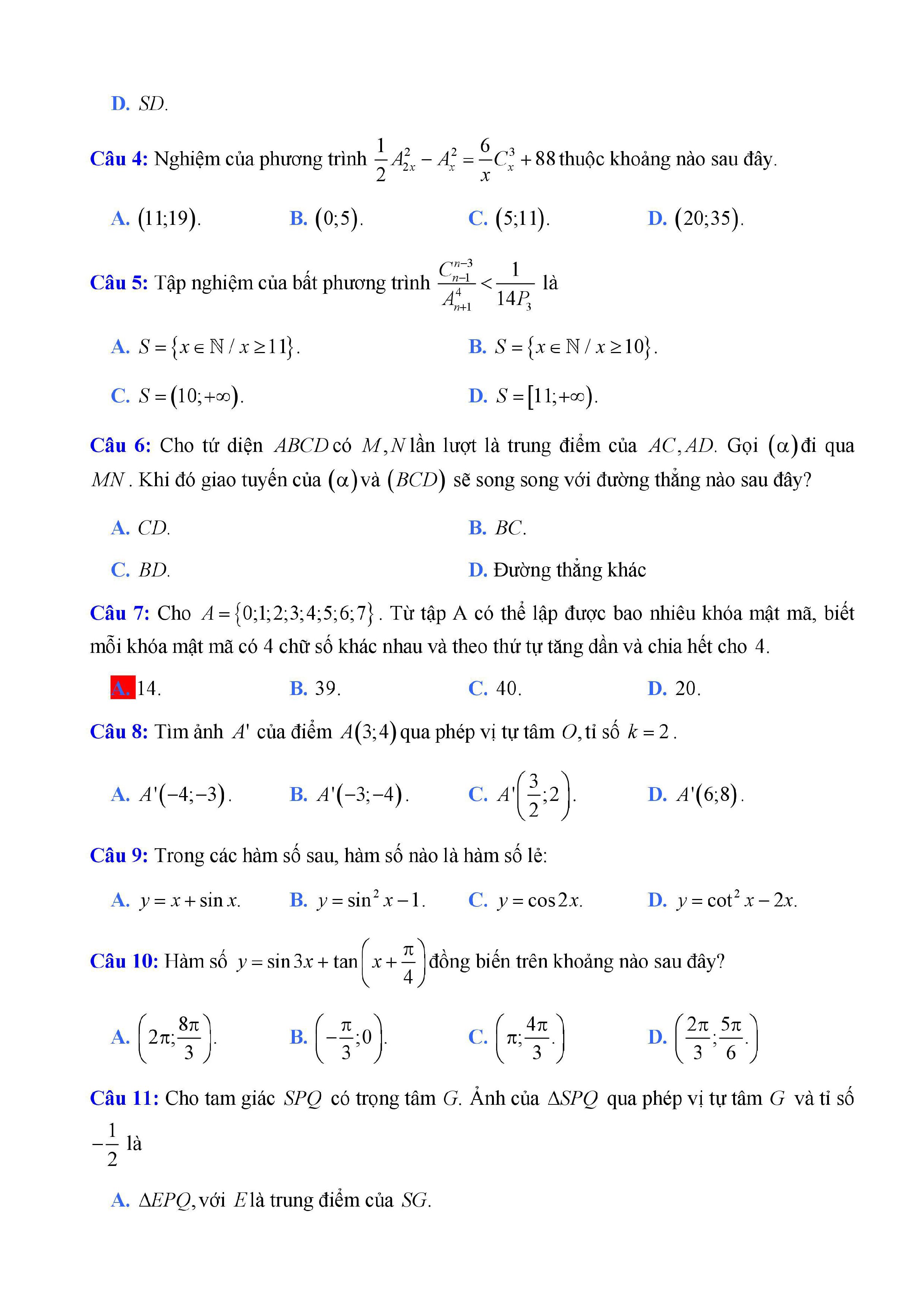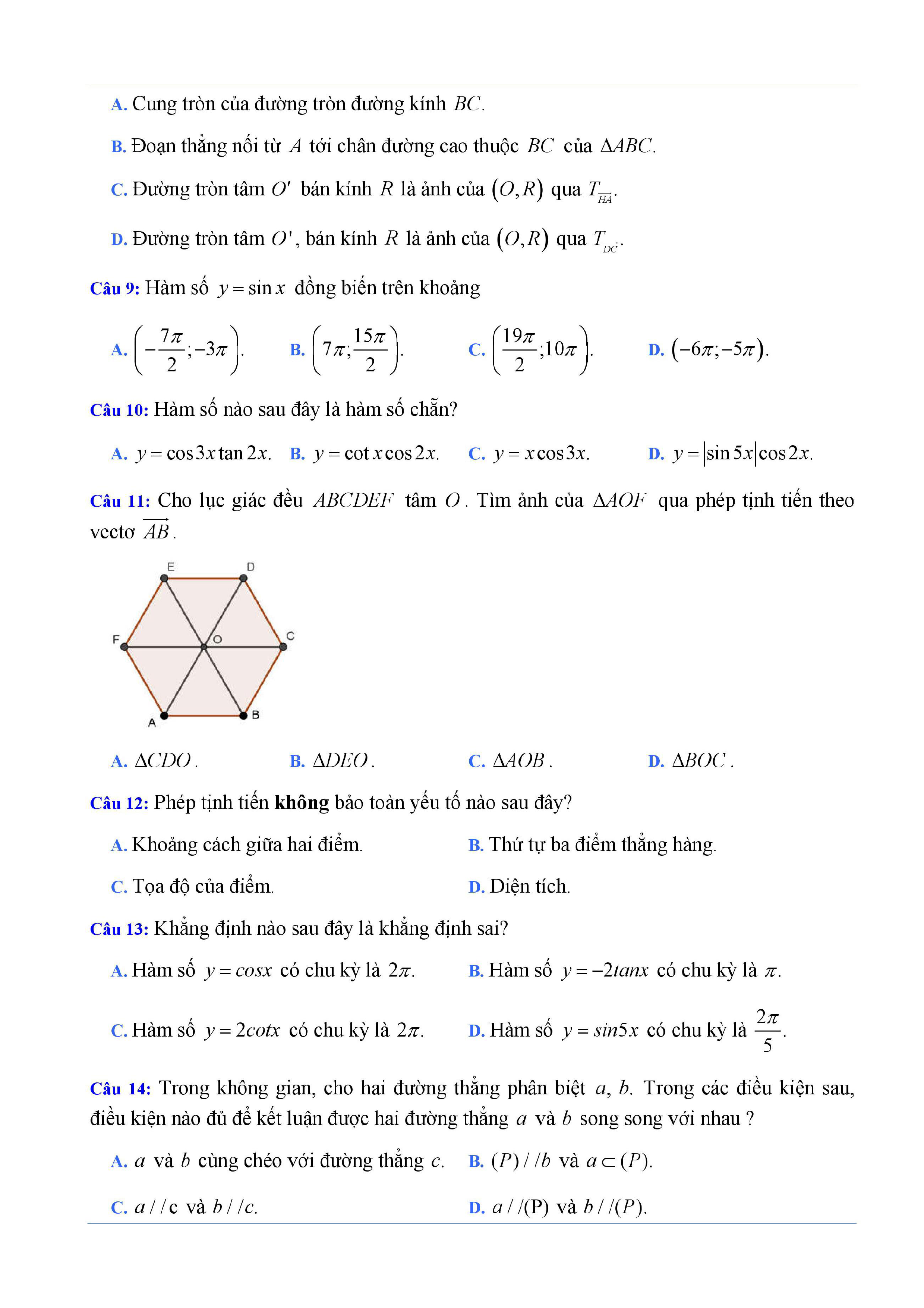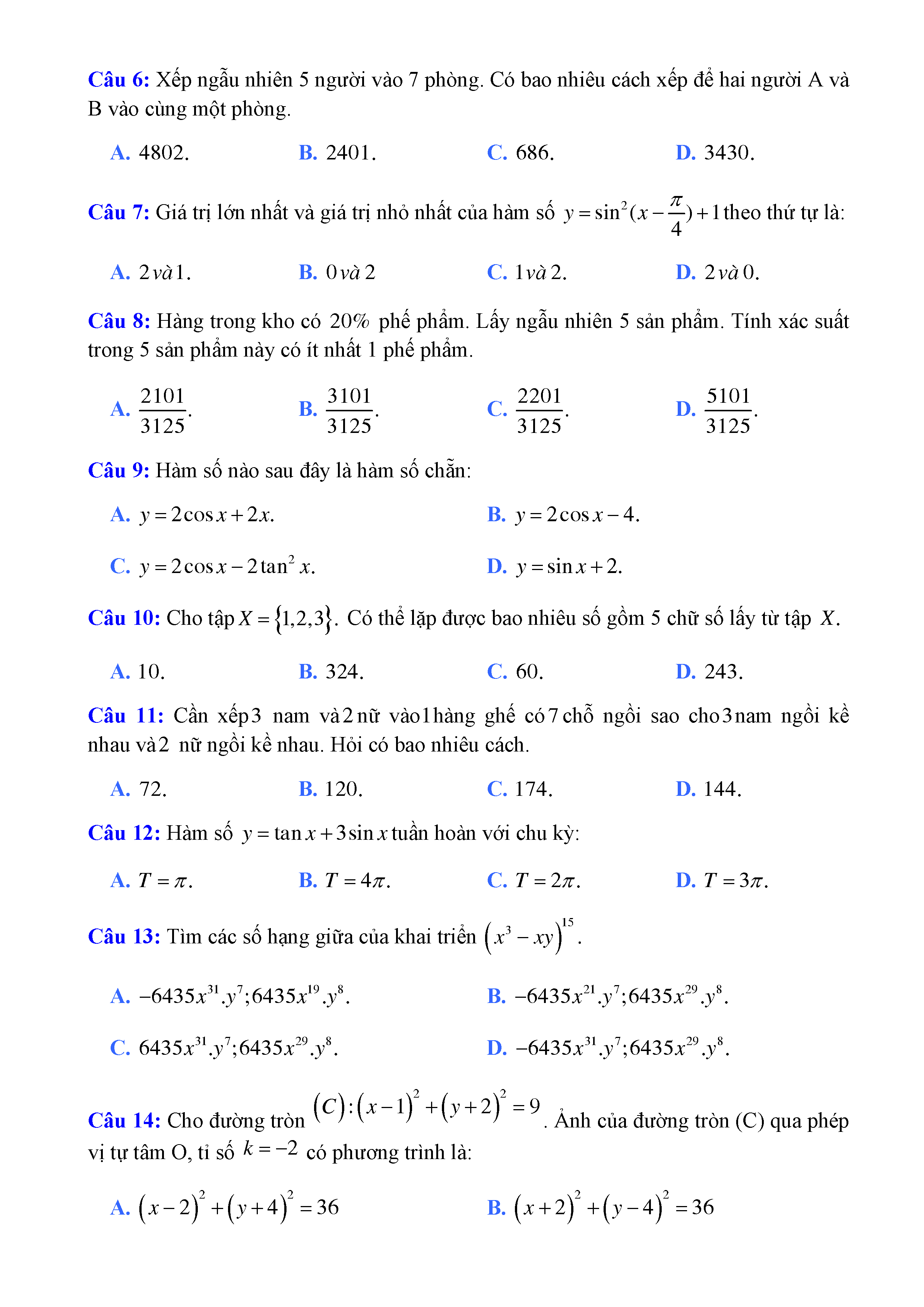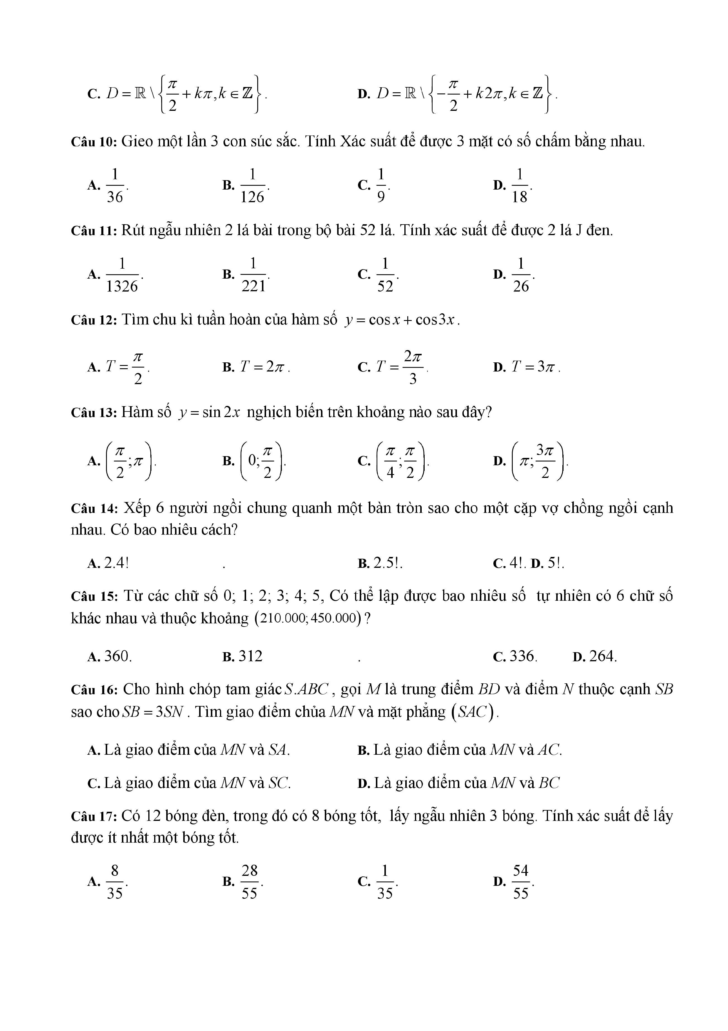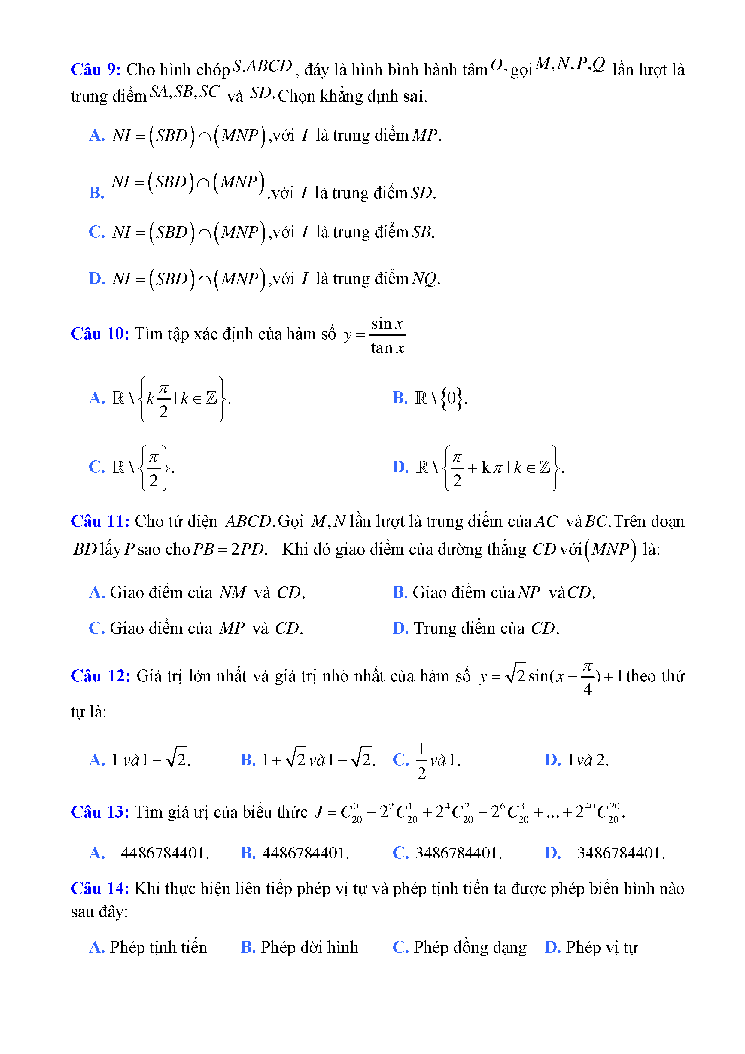20 đề Toán ôn thi học kì 1 lớp 11